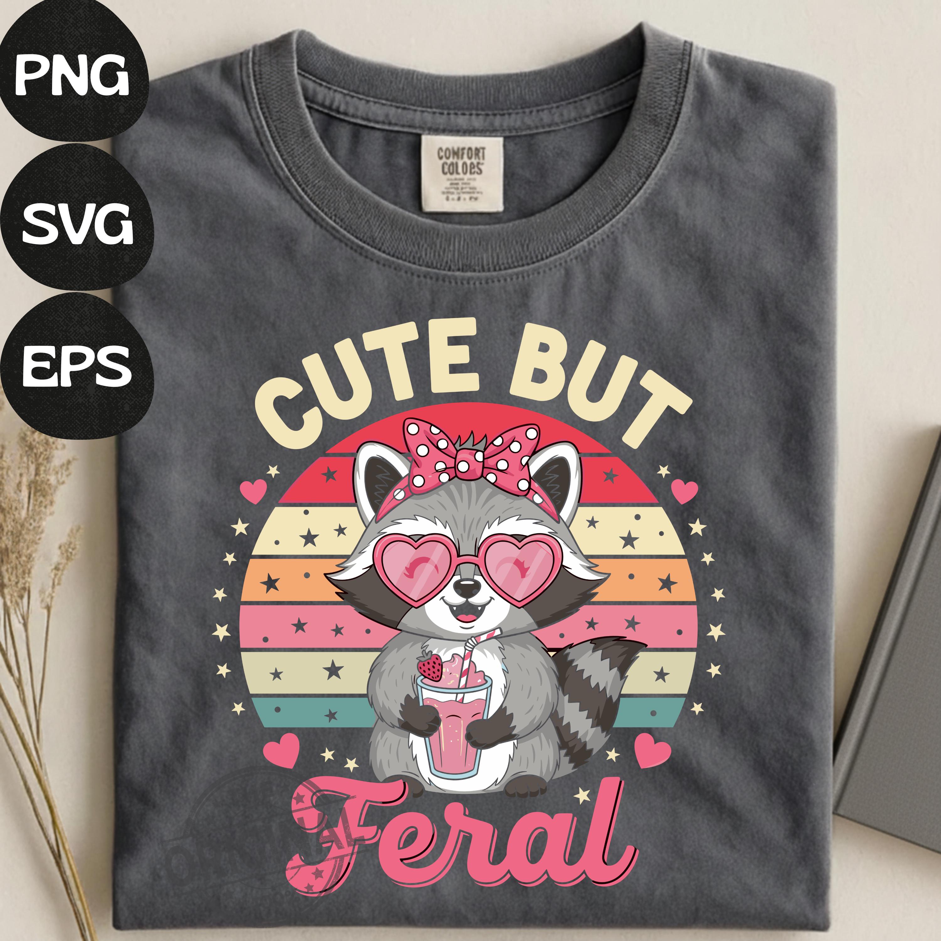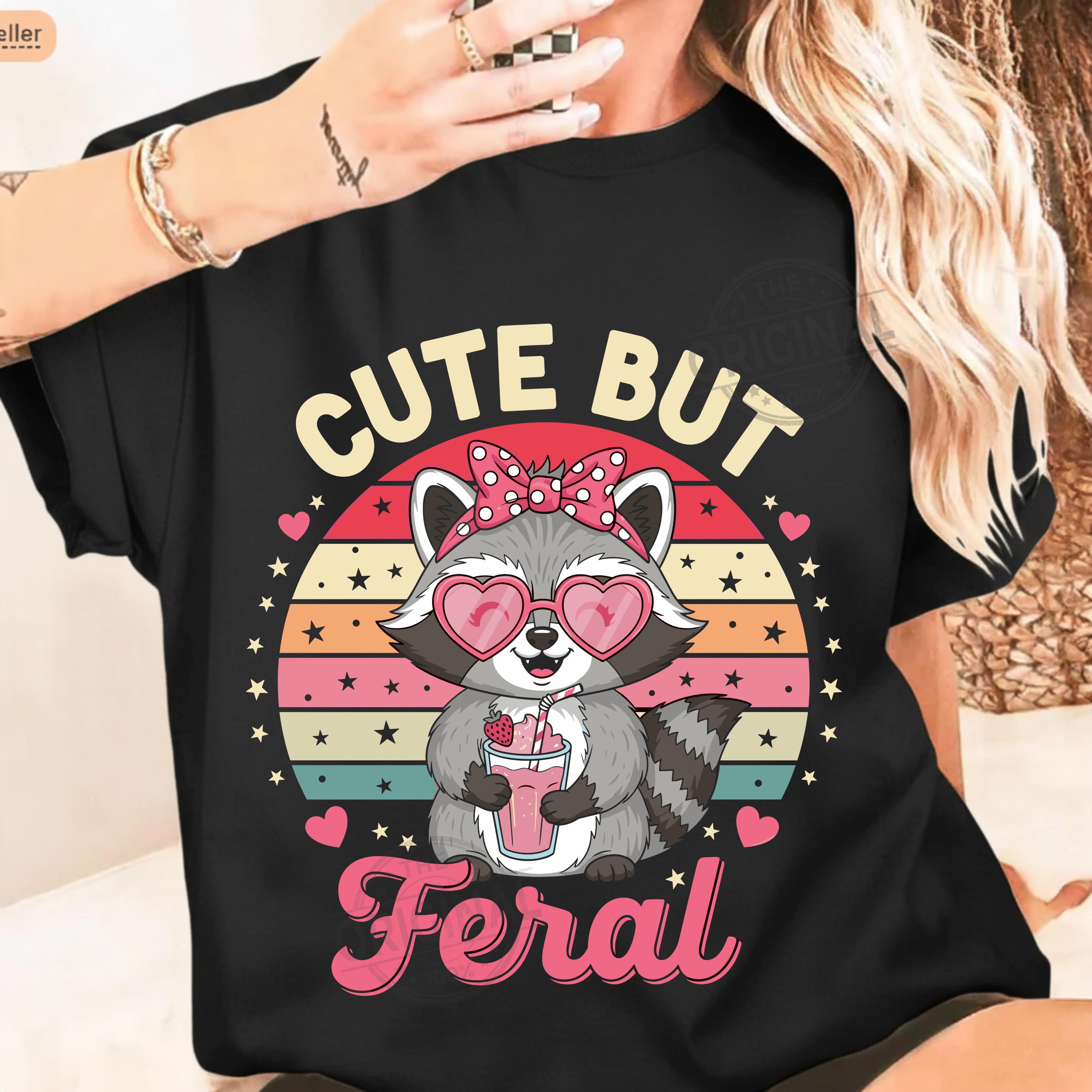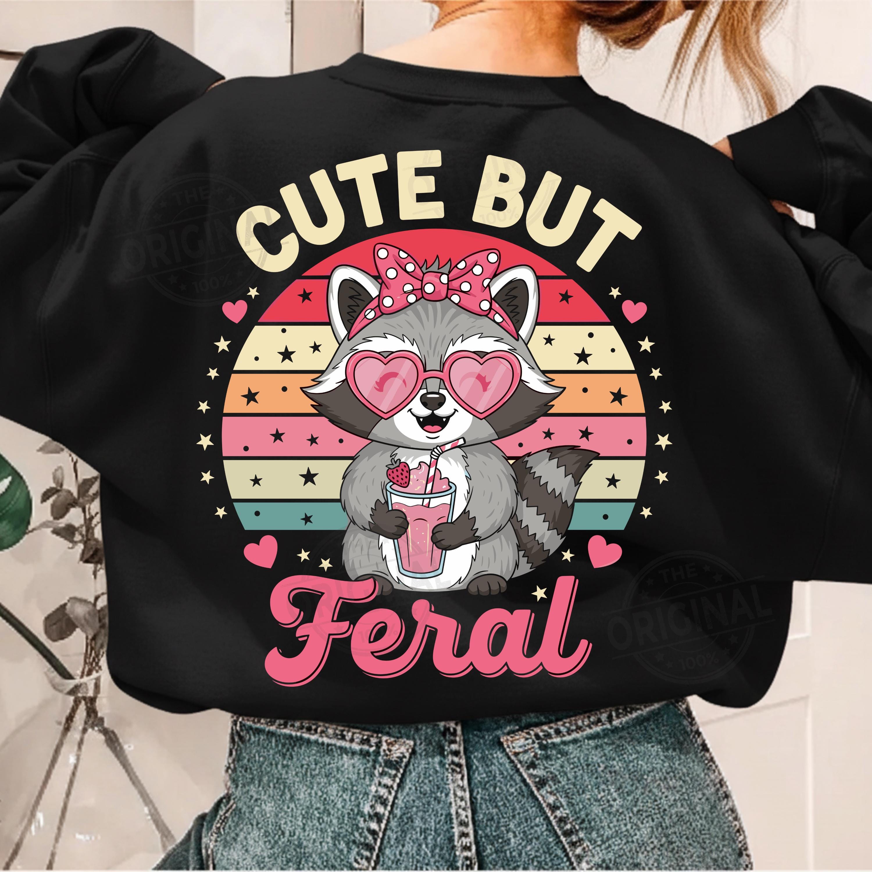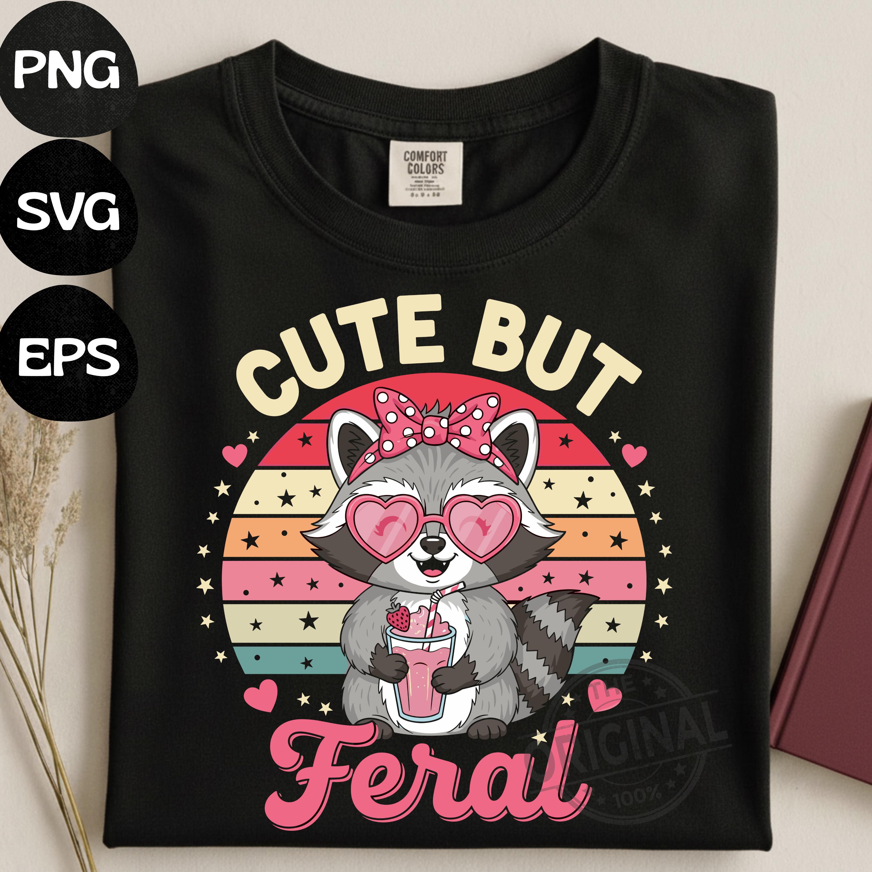 Cute But Feral Png, Instant Digital Download, SVG,EPS, Funny Raccoon With Bow Png, Retro Png, Trendy Png, T-Shirt Design, Sublimation Design Perfect For T-shirts, sweaters, mugs, stickers, cards, tumblers, and all holiday crafting
