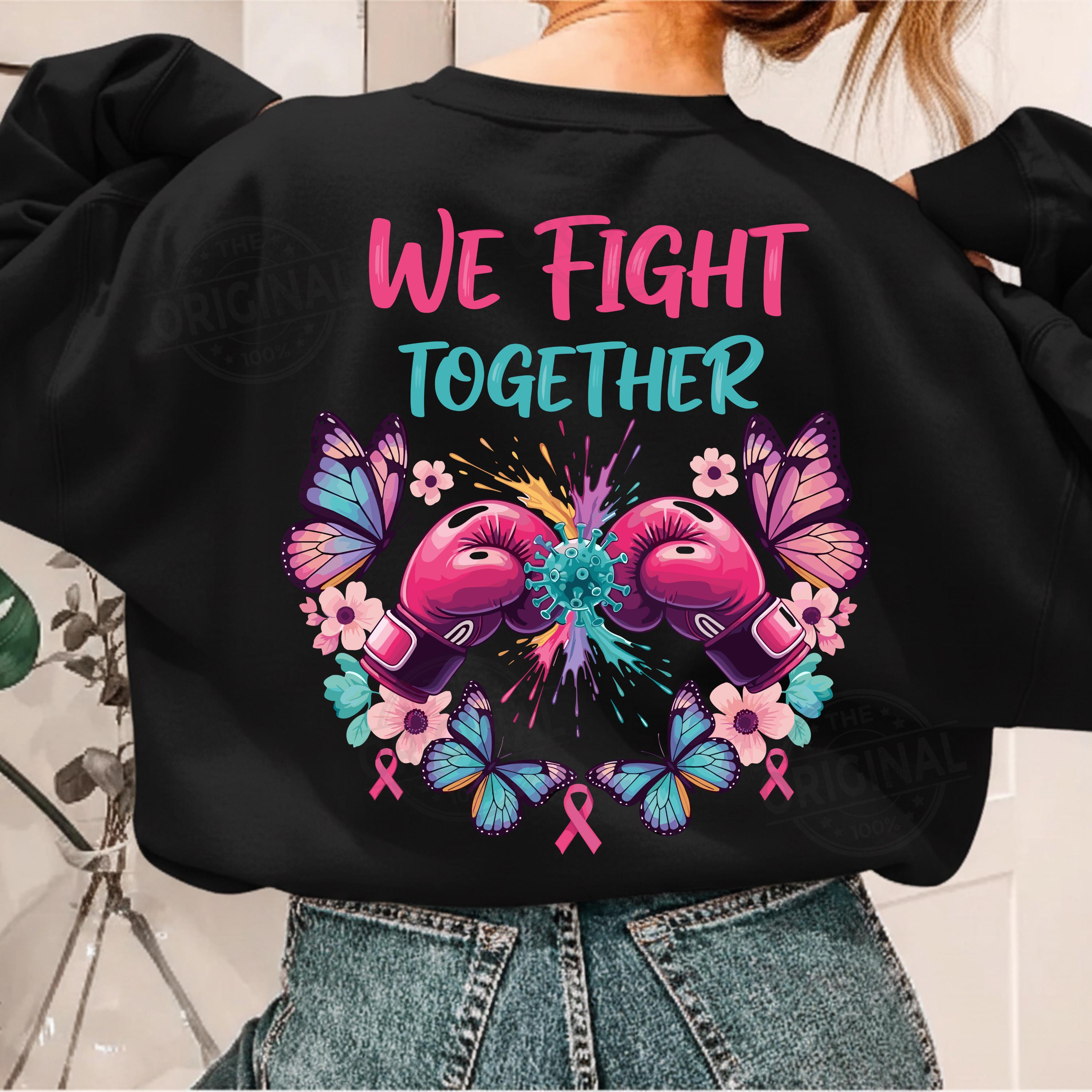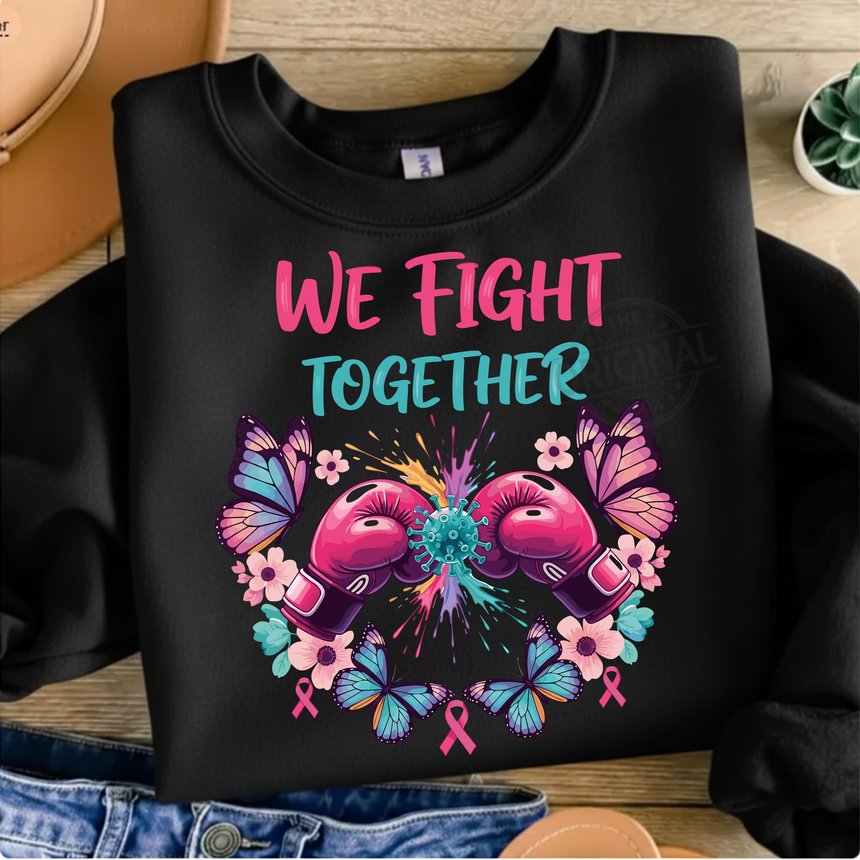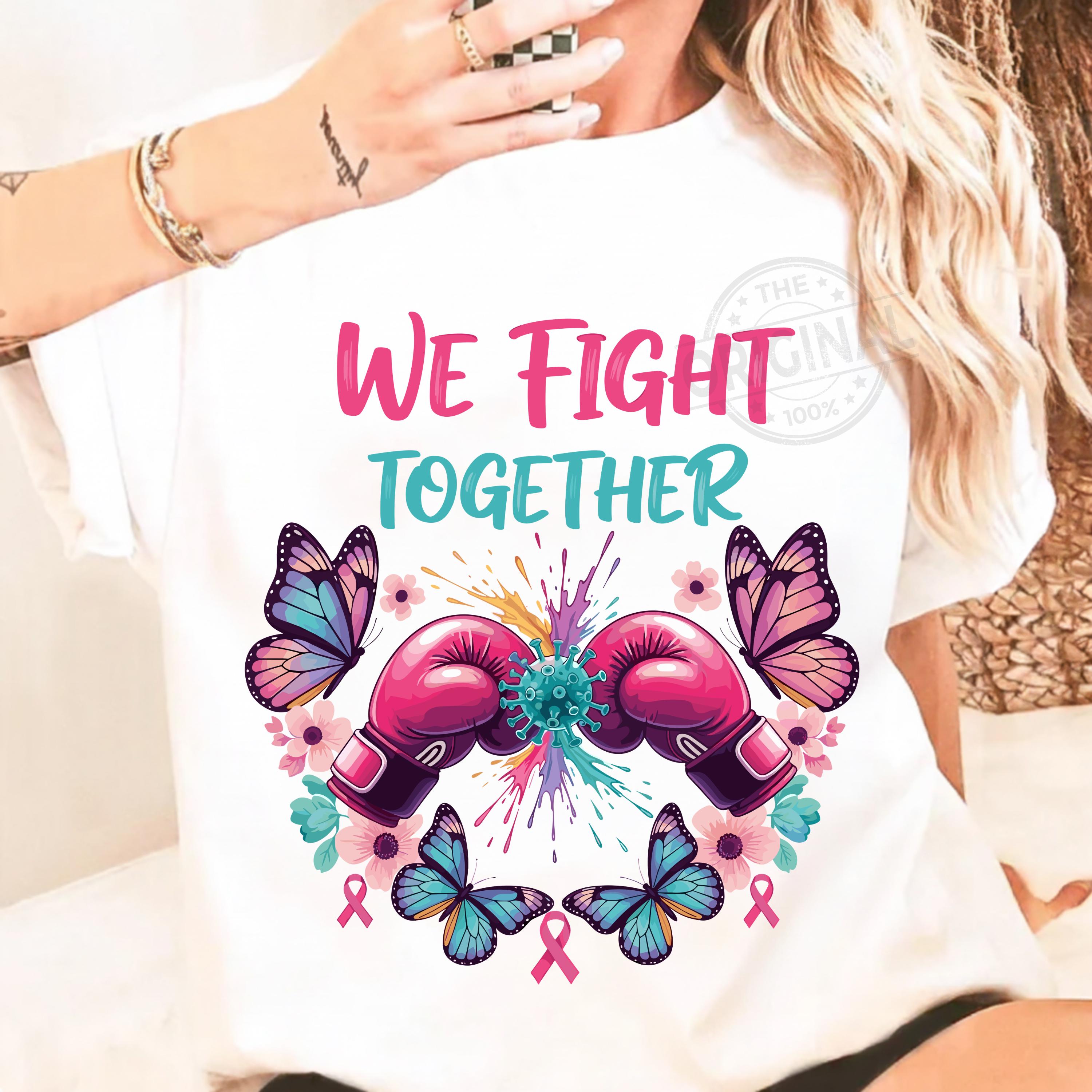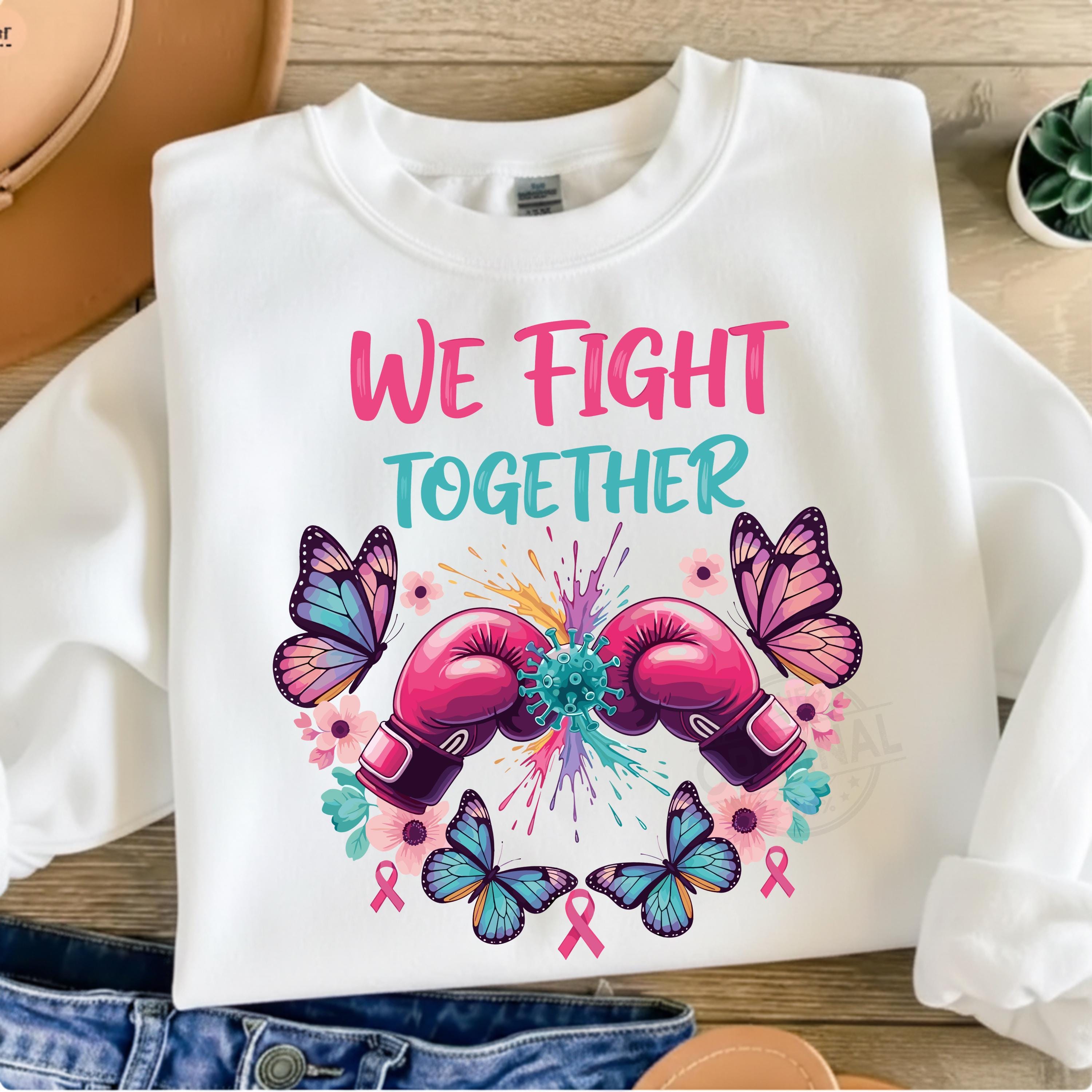 We Fight Together T-Shirt, Ovarian Cancer PNG, Boxing Gloves & Butterflies, Cancer Awareness Sublimation Perfect For T-shirts, sweaters, mugs, stickers, cards, tumblers, and all holiday crafting