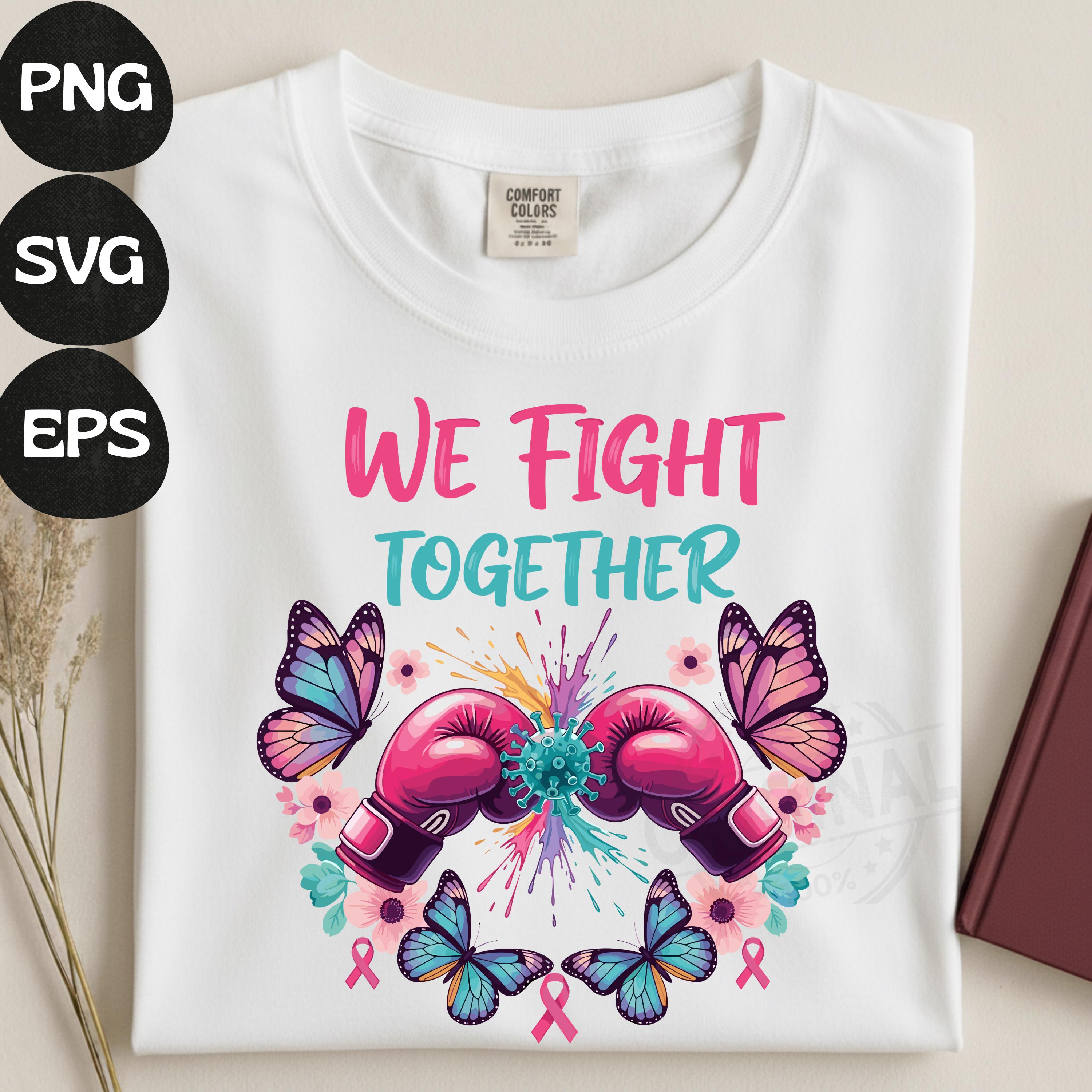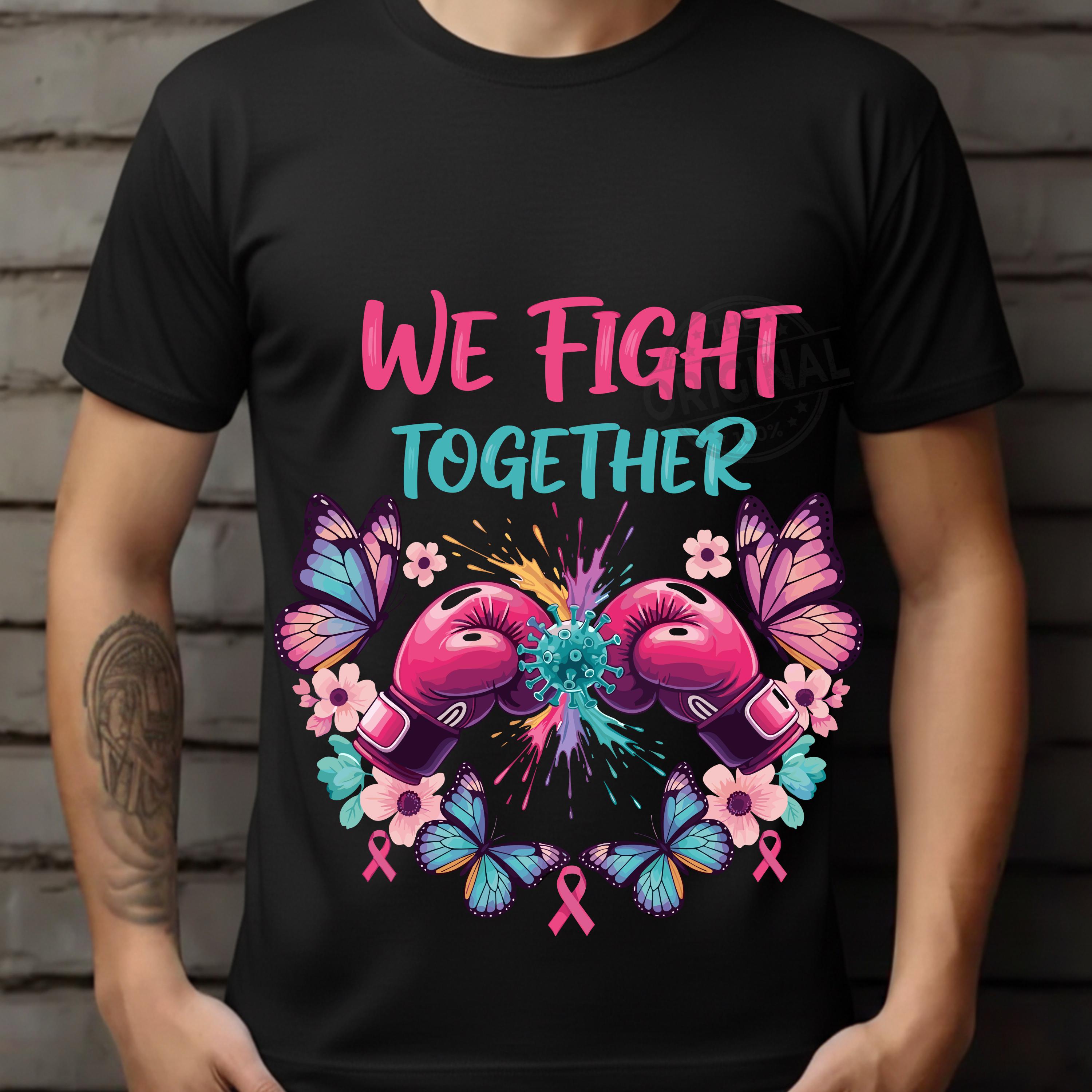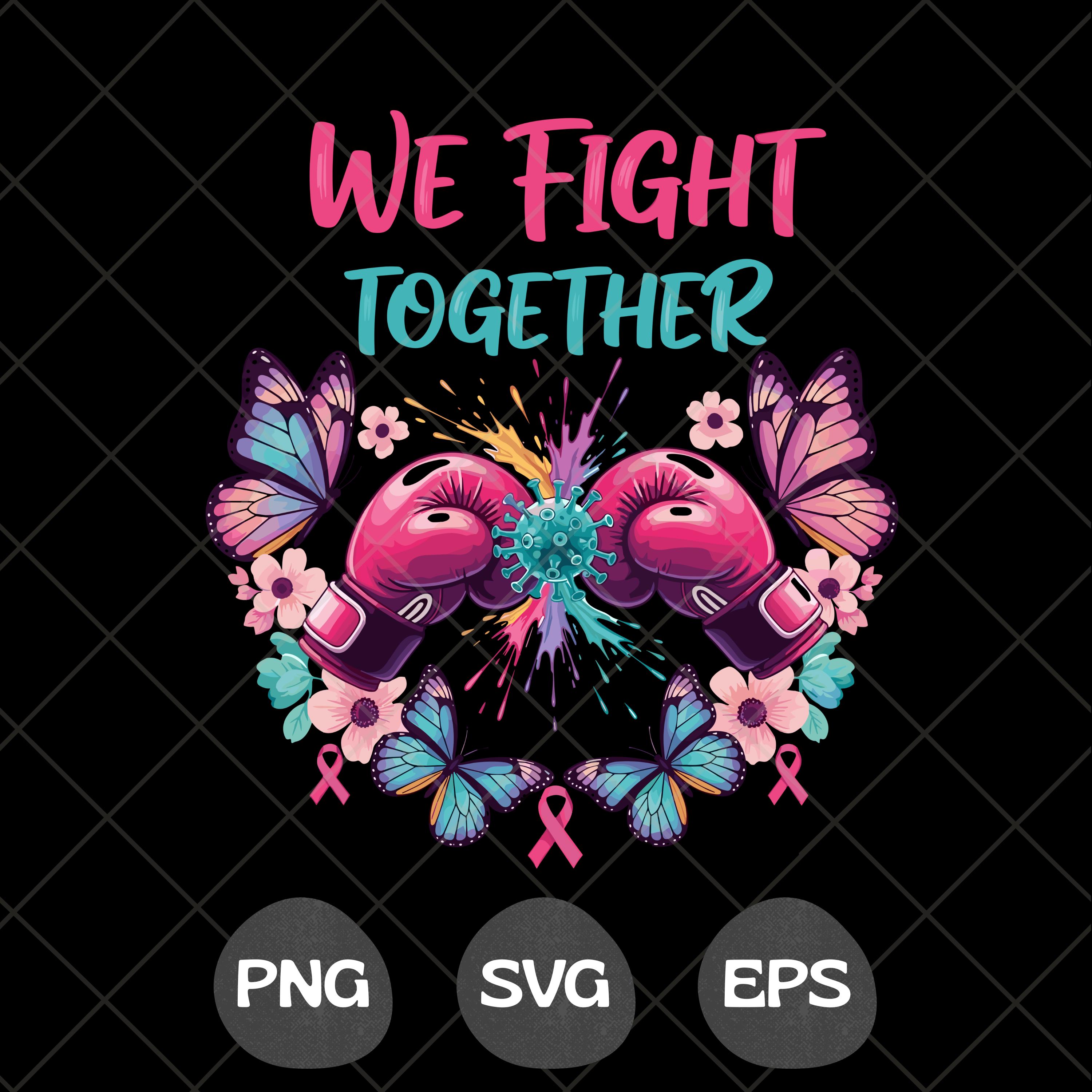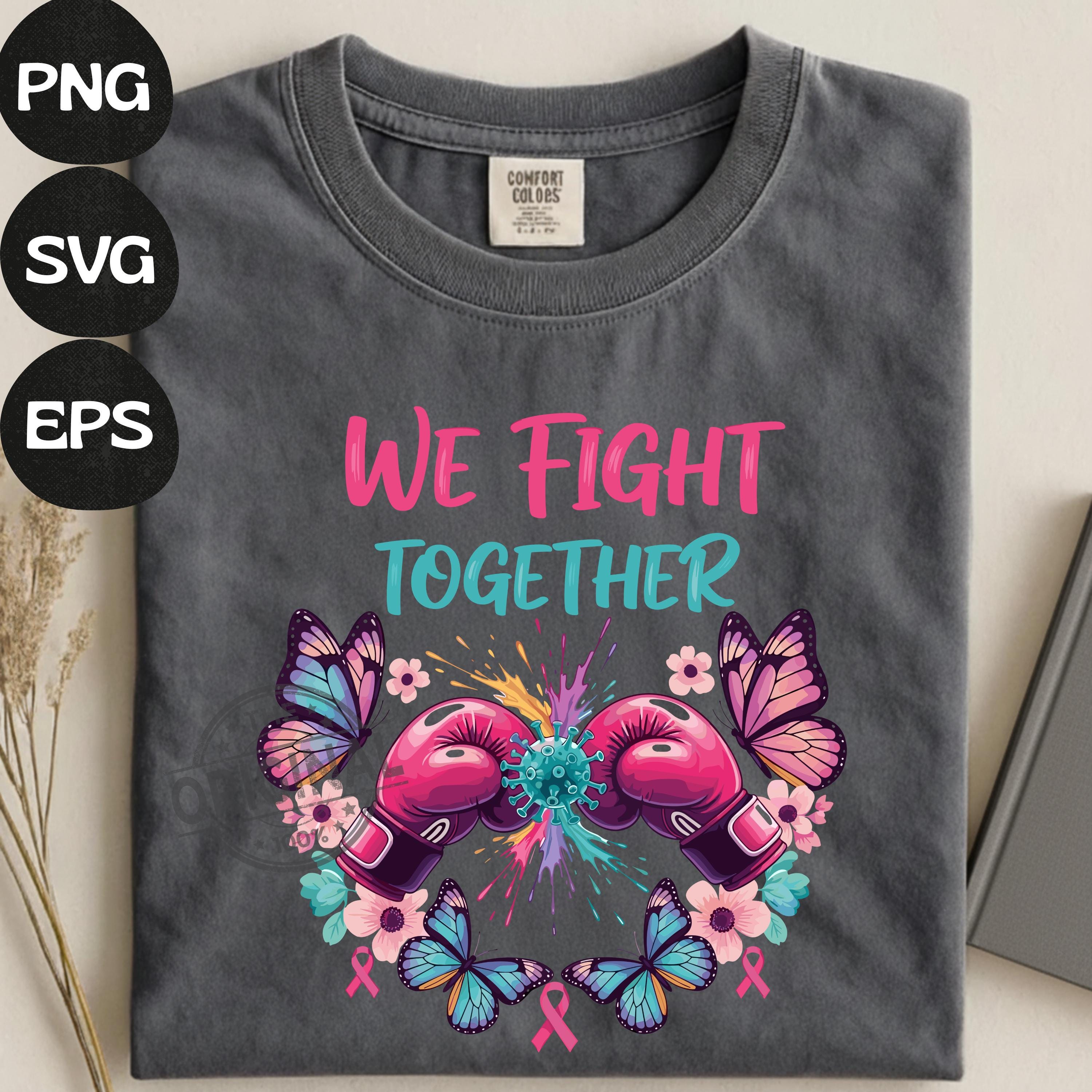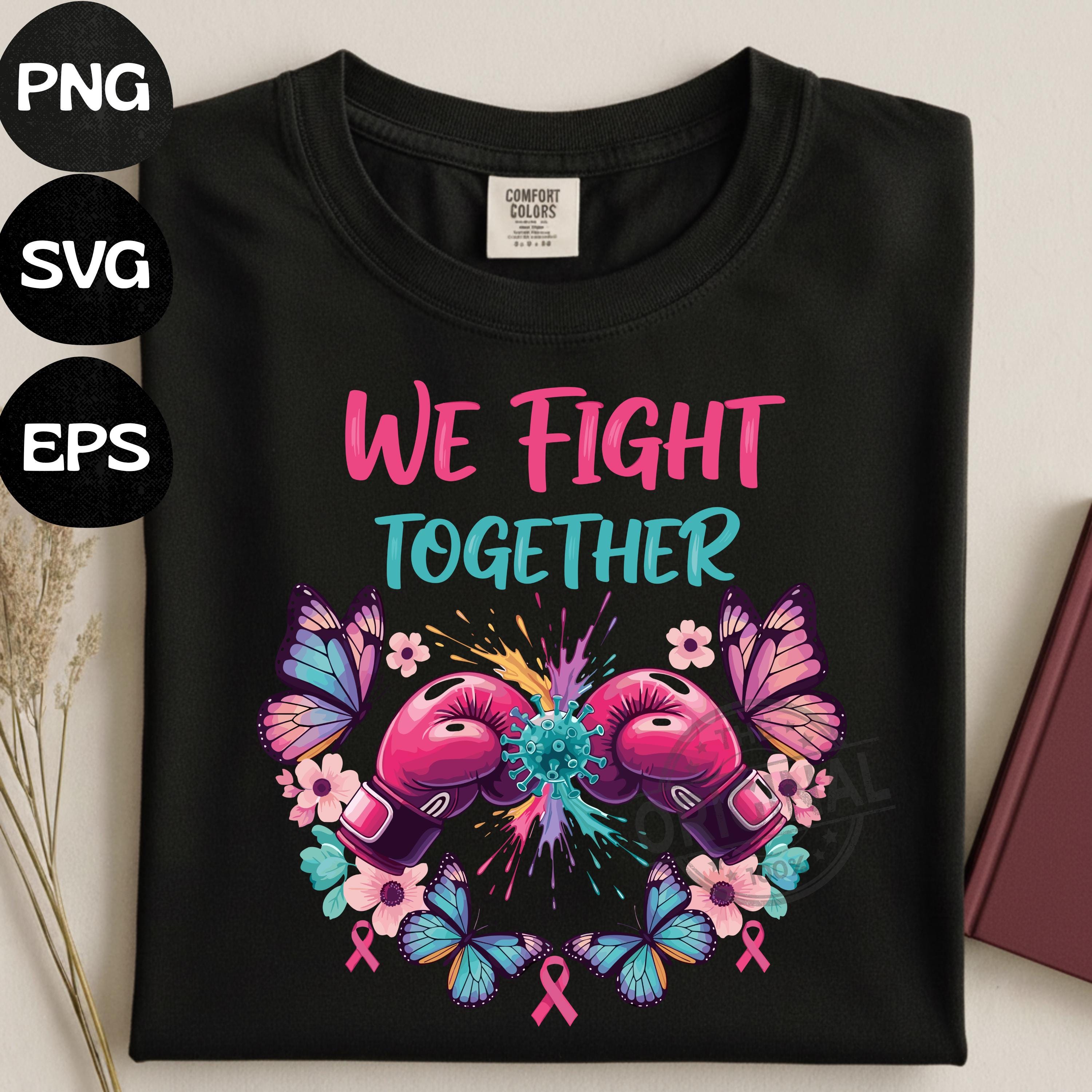 We Fight Together T-Shirt, Ovarian Cancer PNG, Boxing Gloves & Butterflies, Cancer Awareness Sublimation Perfect For T-shirts, sweaters, mugs, stickers, cards, tumblers, and all holiday crafting
