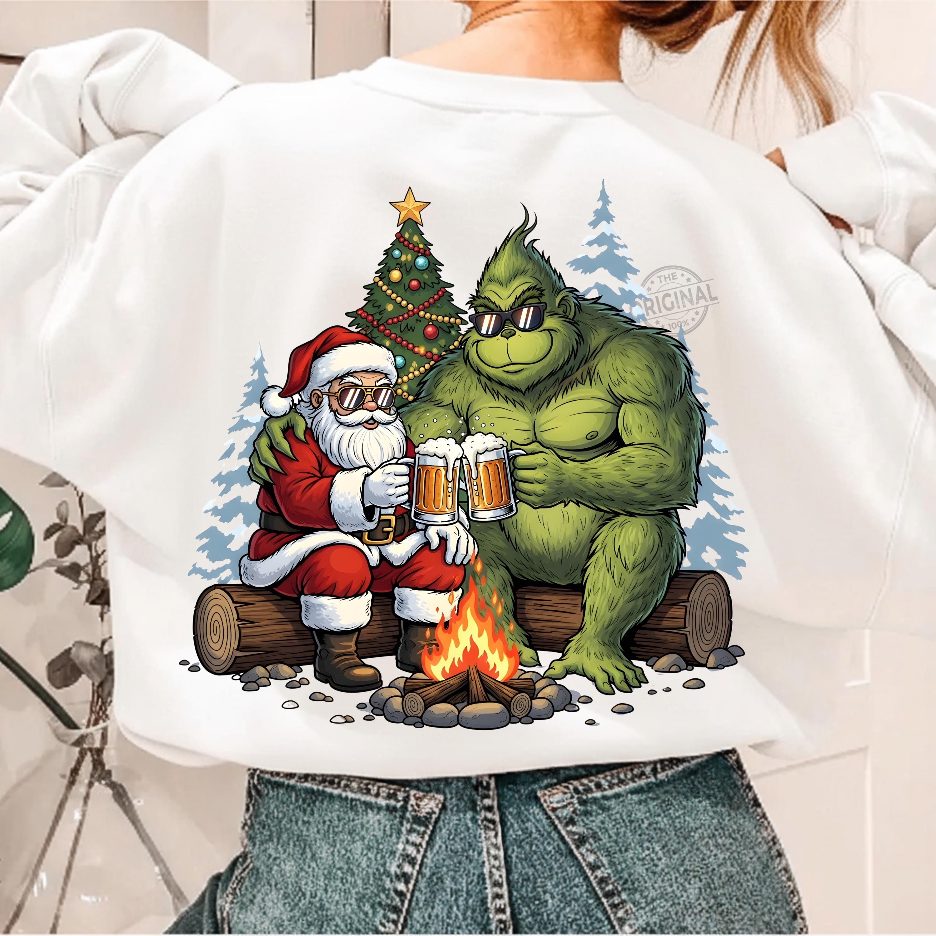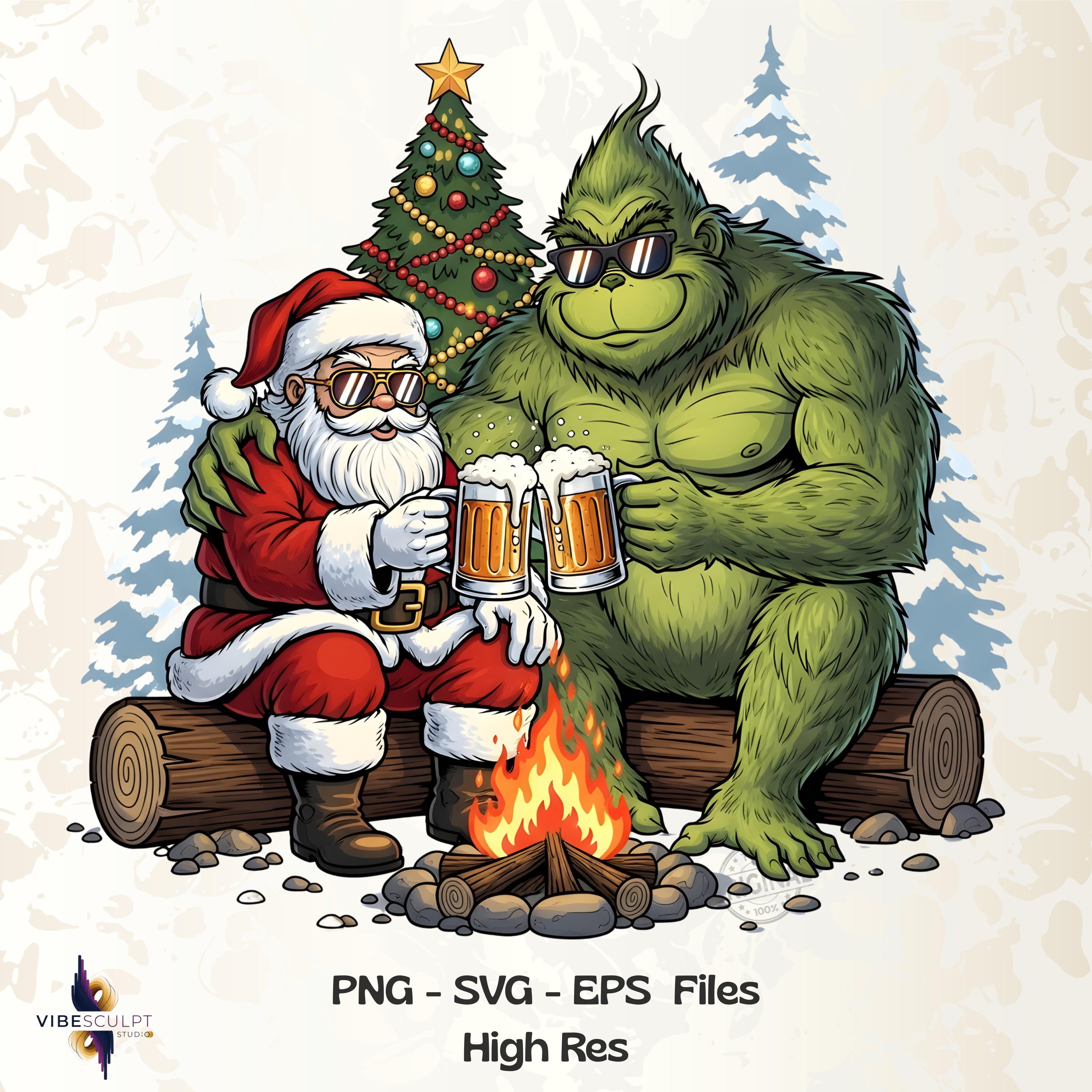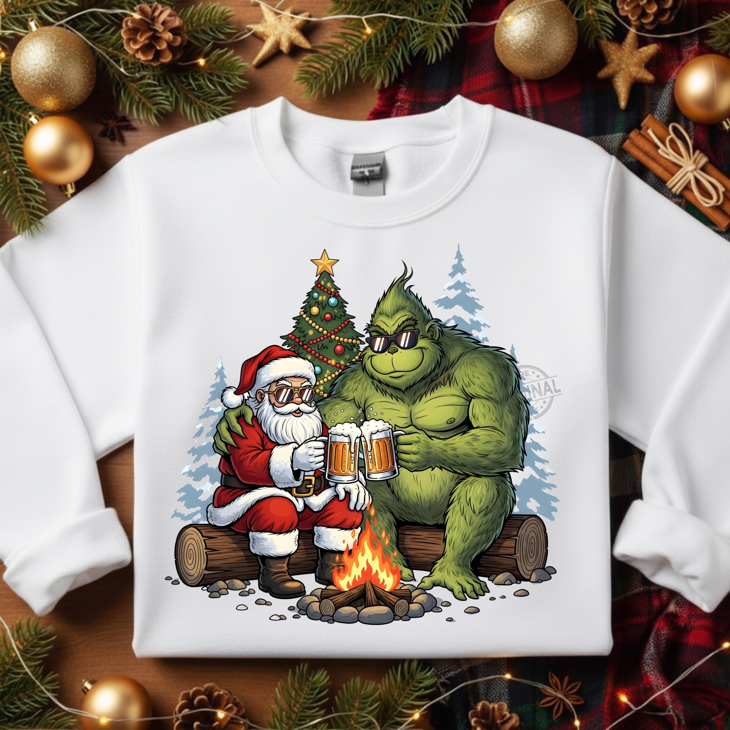 Retro Santa and Grinch Christmas PNG, Funny Merry Squatchmas PNG, Sasquatch Holiday Friends PNG, Trendy Christmas Crew Png, Holiday Design