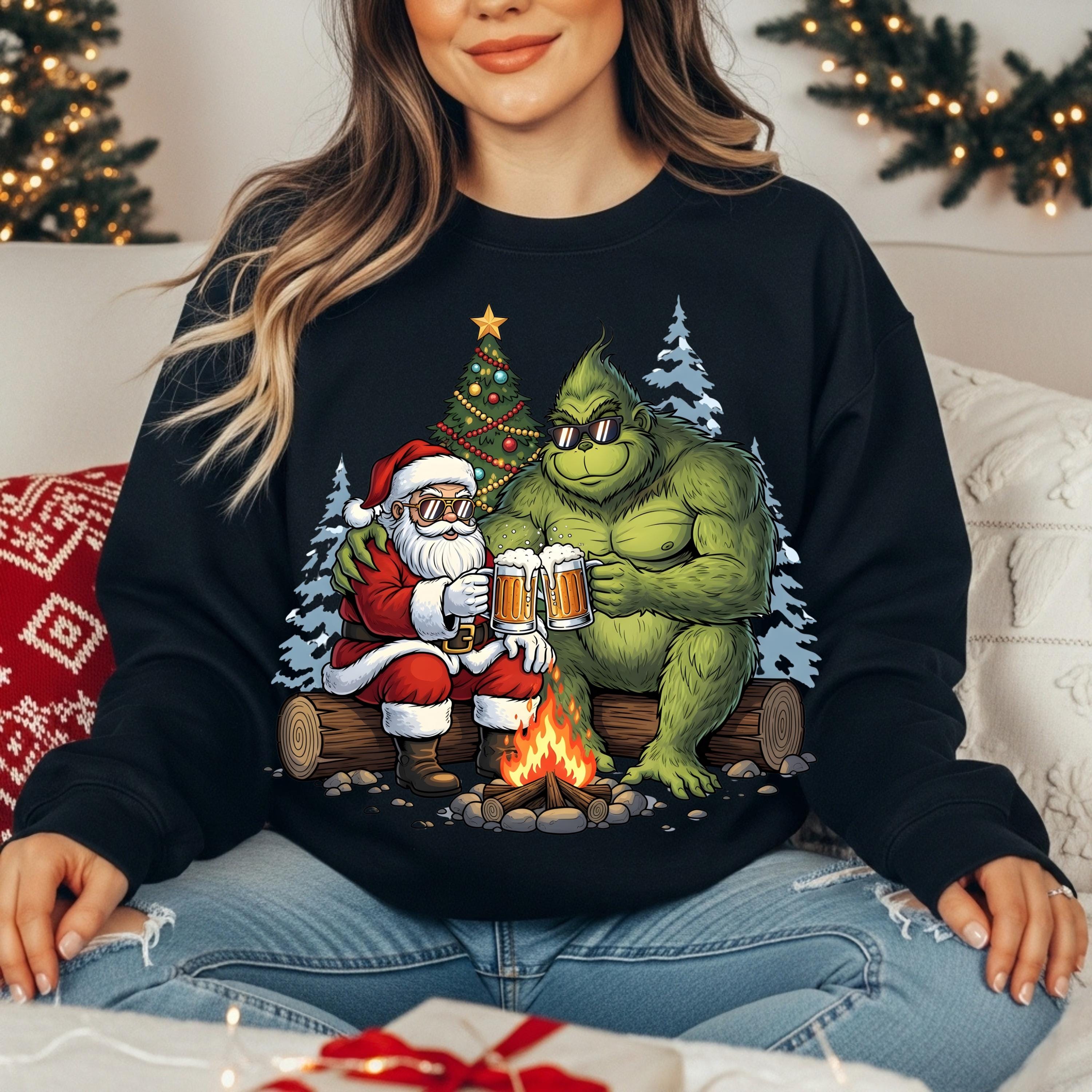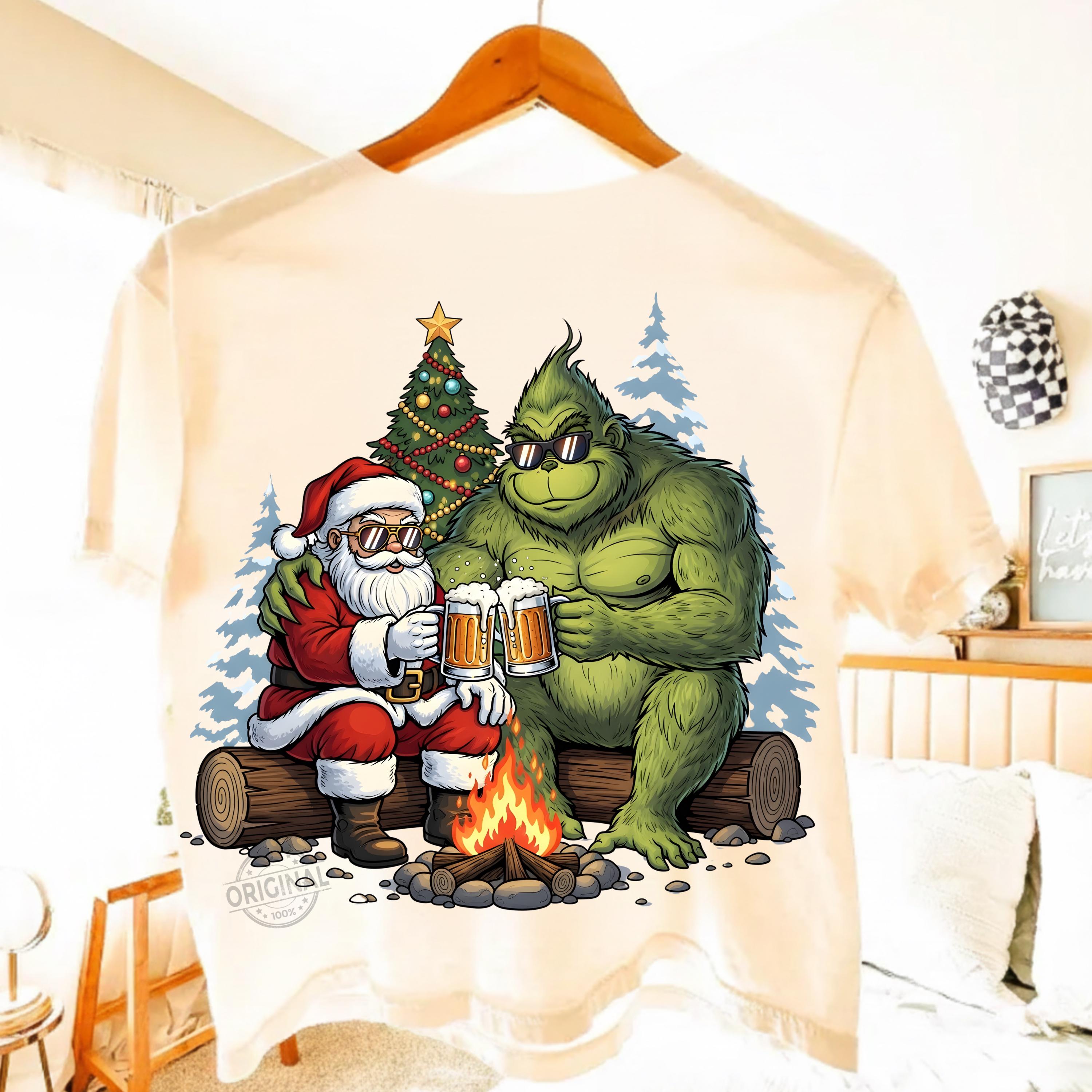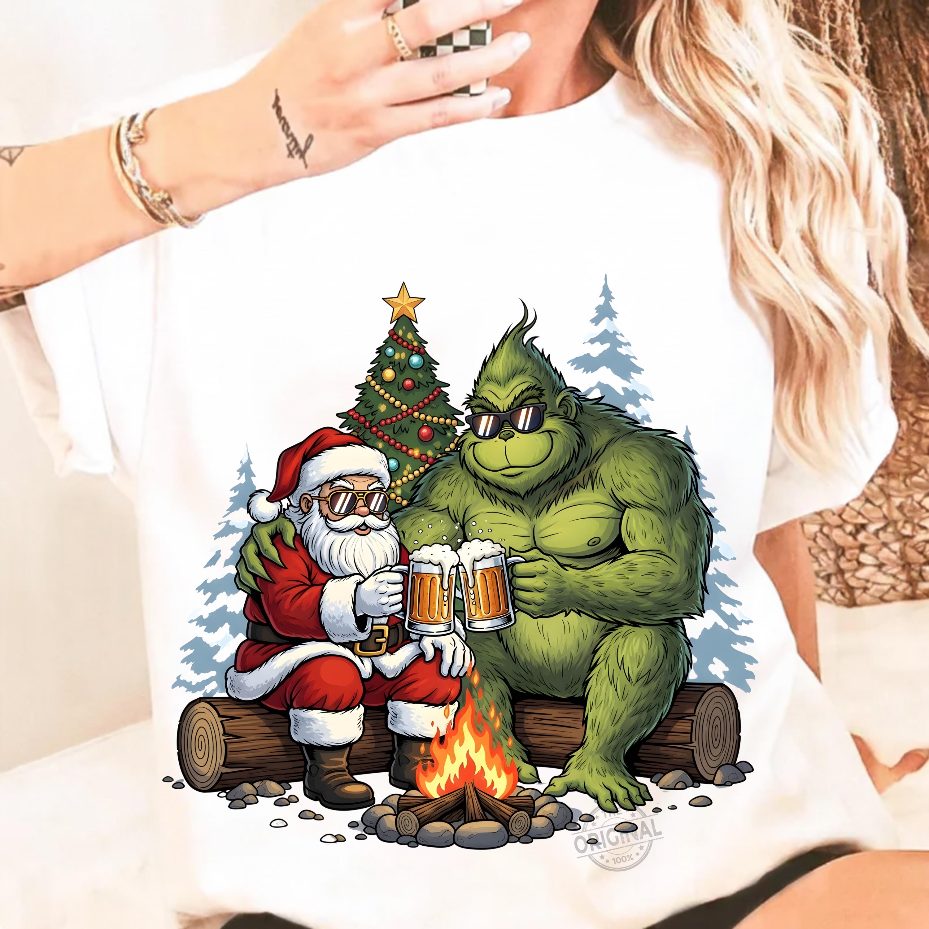 Retro Santa and Grinch Christmas PNG, Funny Merry Squatchmas PNG, Sasquatch Holiday Friends PNG, Trendy Christmas Crew Png, Holiday Design