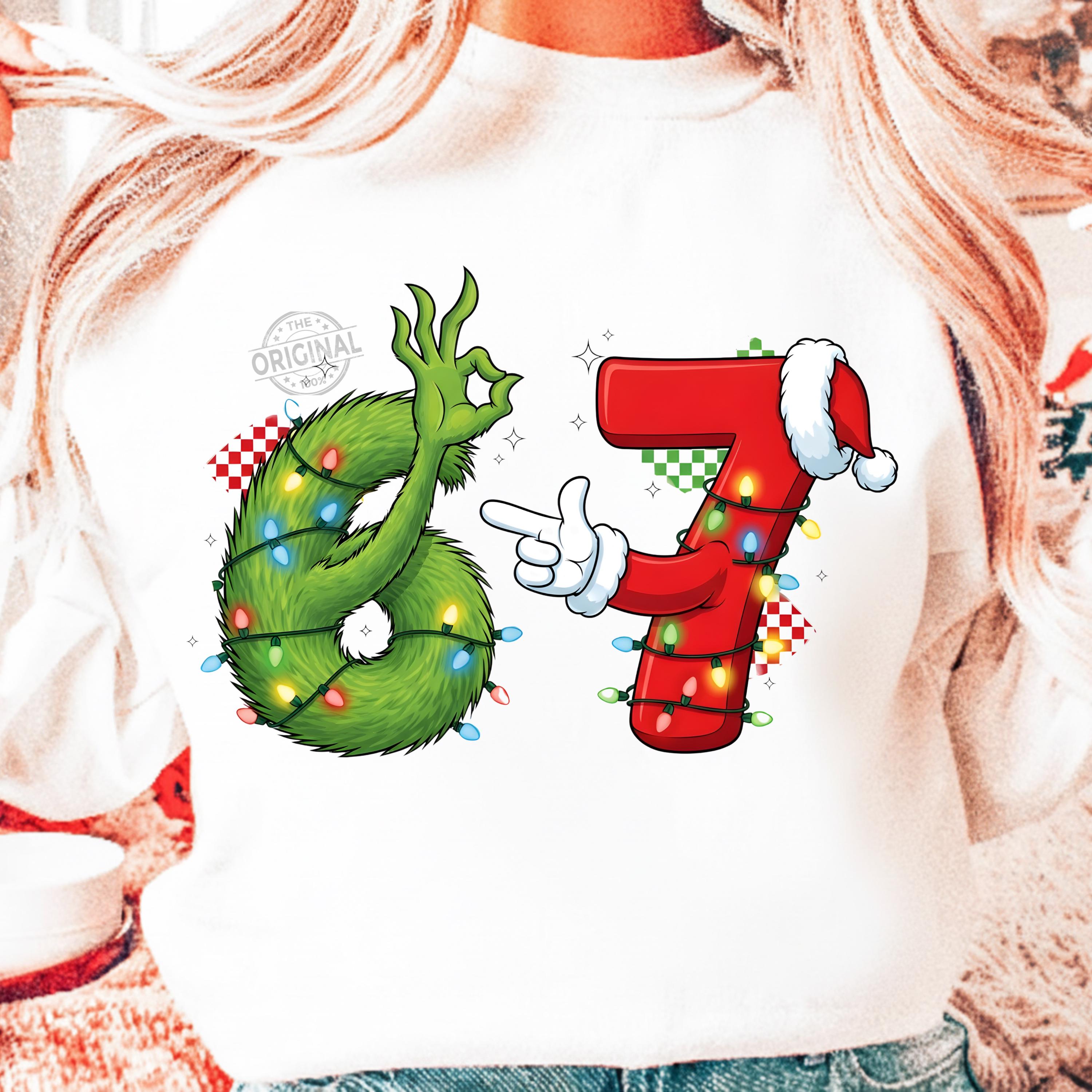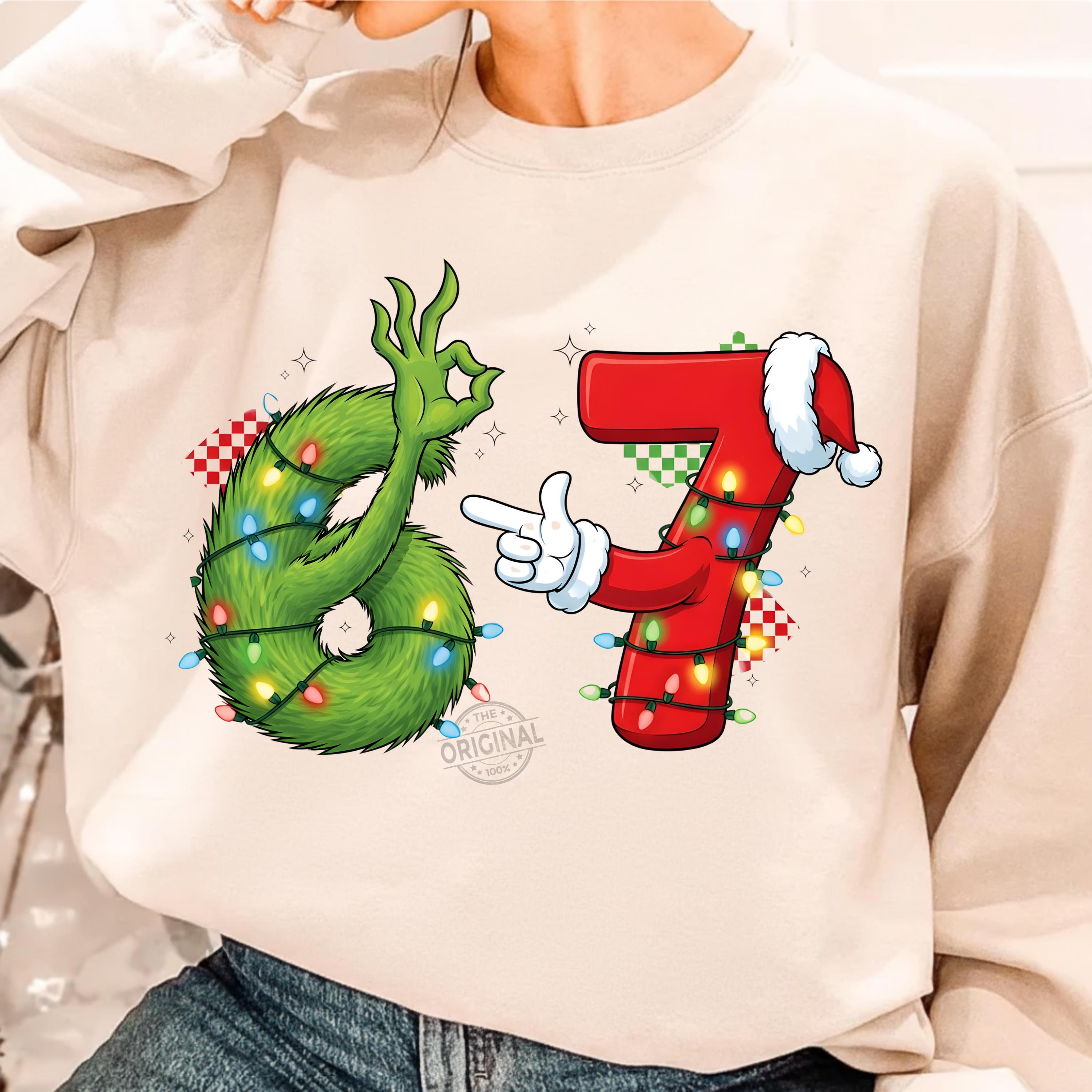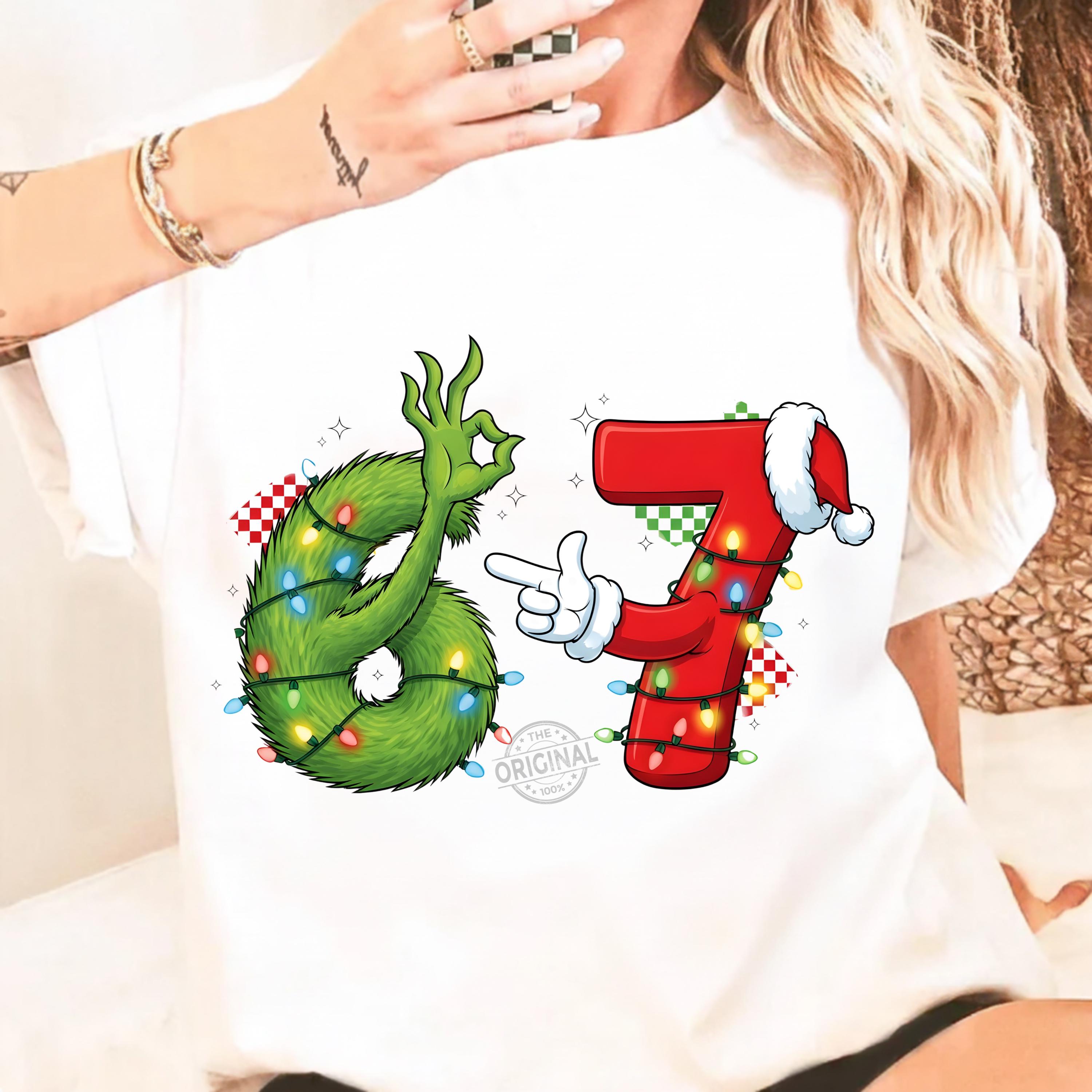 Six Seven 6 7 Christmas PNG, Trending 67 Christmas, Trendy Christmas Meme Viral Digital design Checkered Xmas Humour, Funny Christmas png