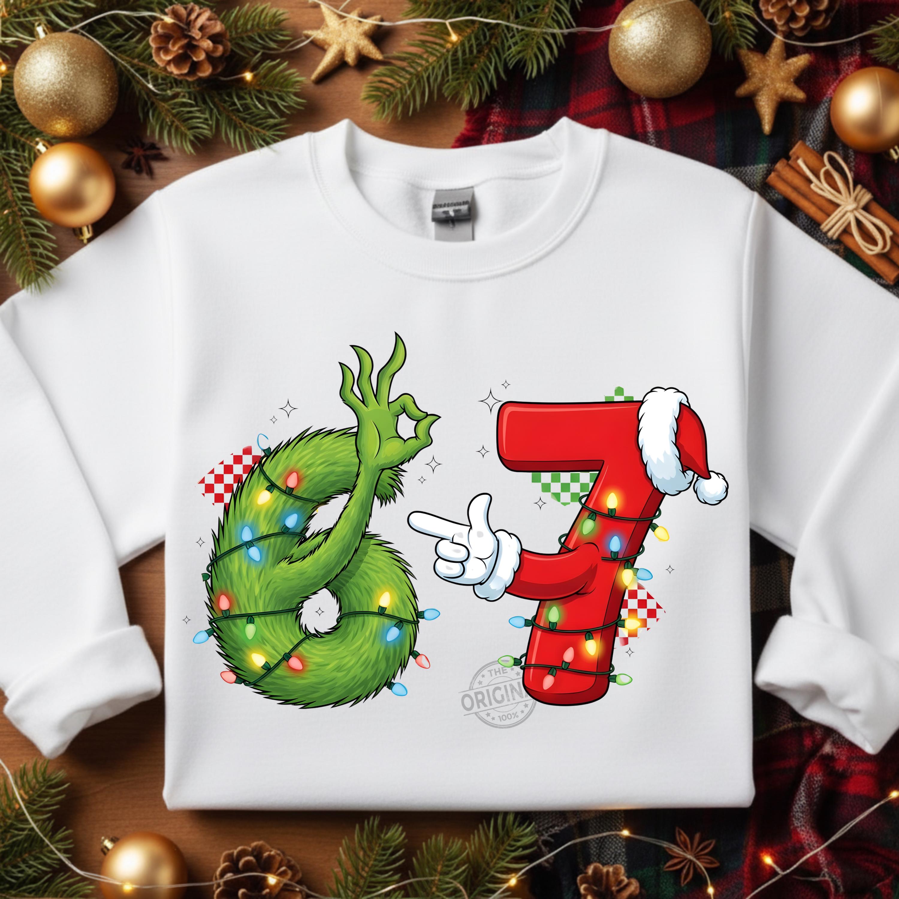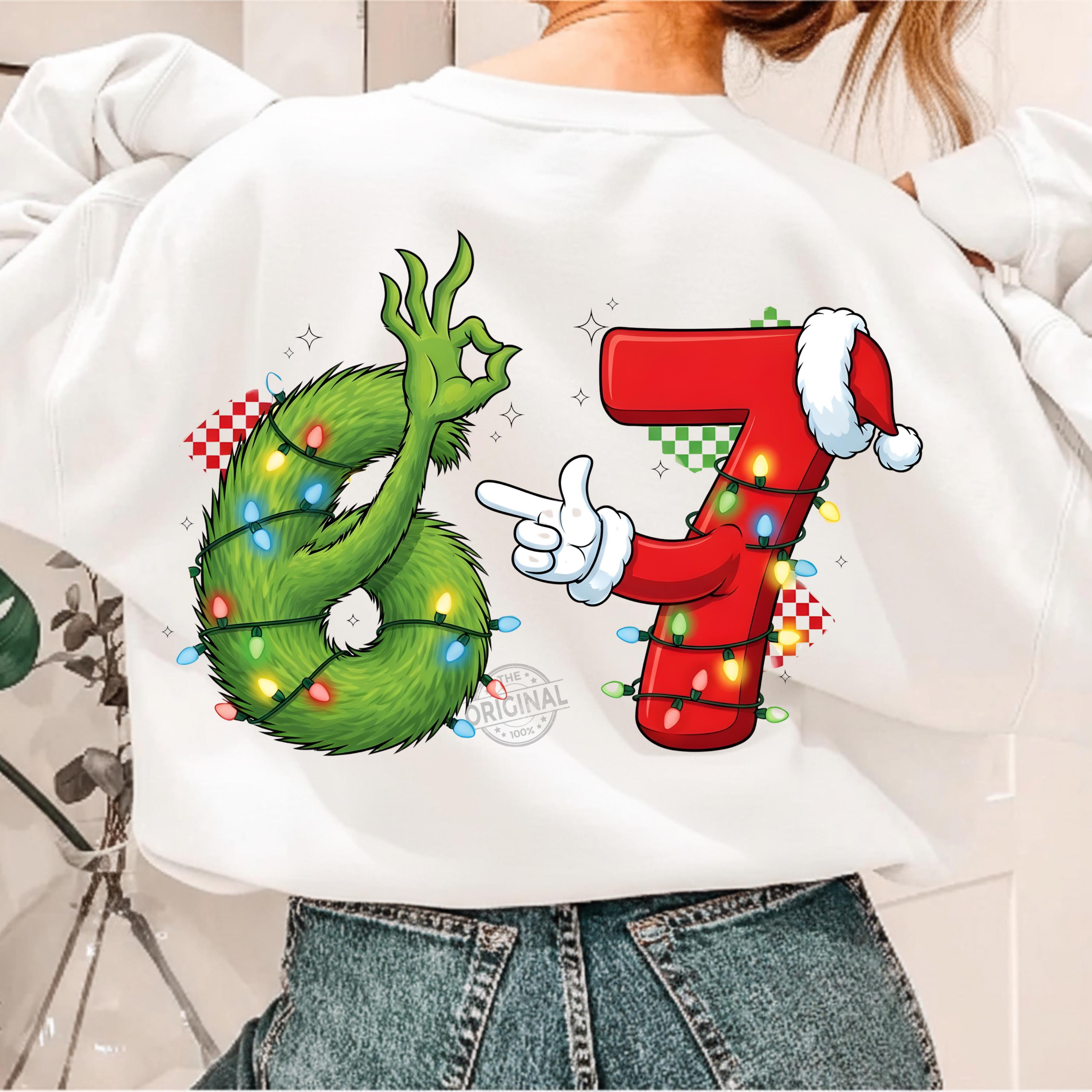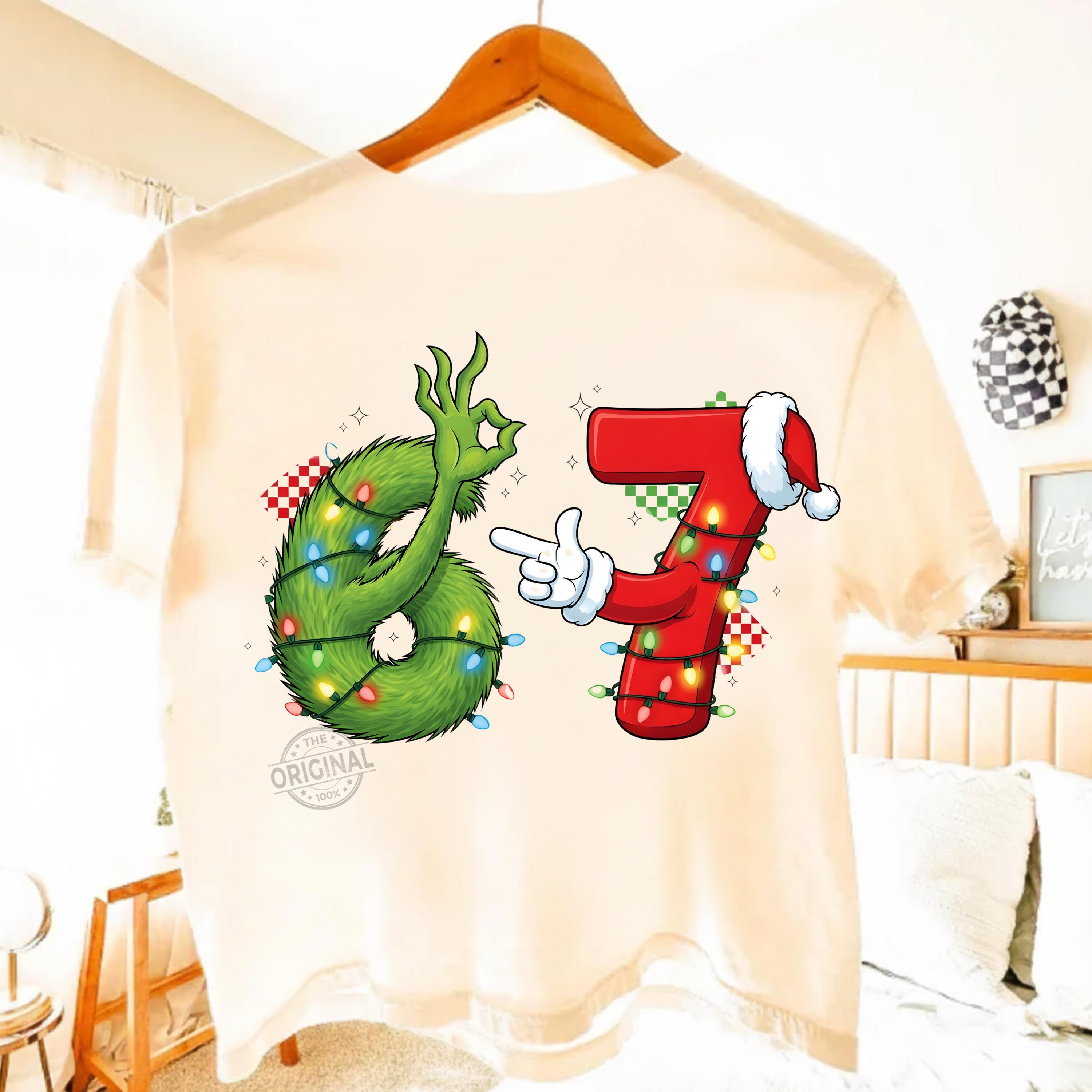Six Seven 6 7 Christmas PNG, Trending 67 Christmas, Trendy Christmas Meme Viral Digital design Checkered Xmas Humour, Funny Christmas png