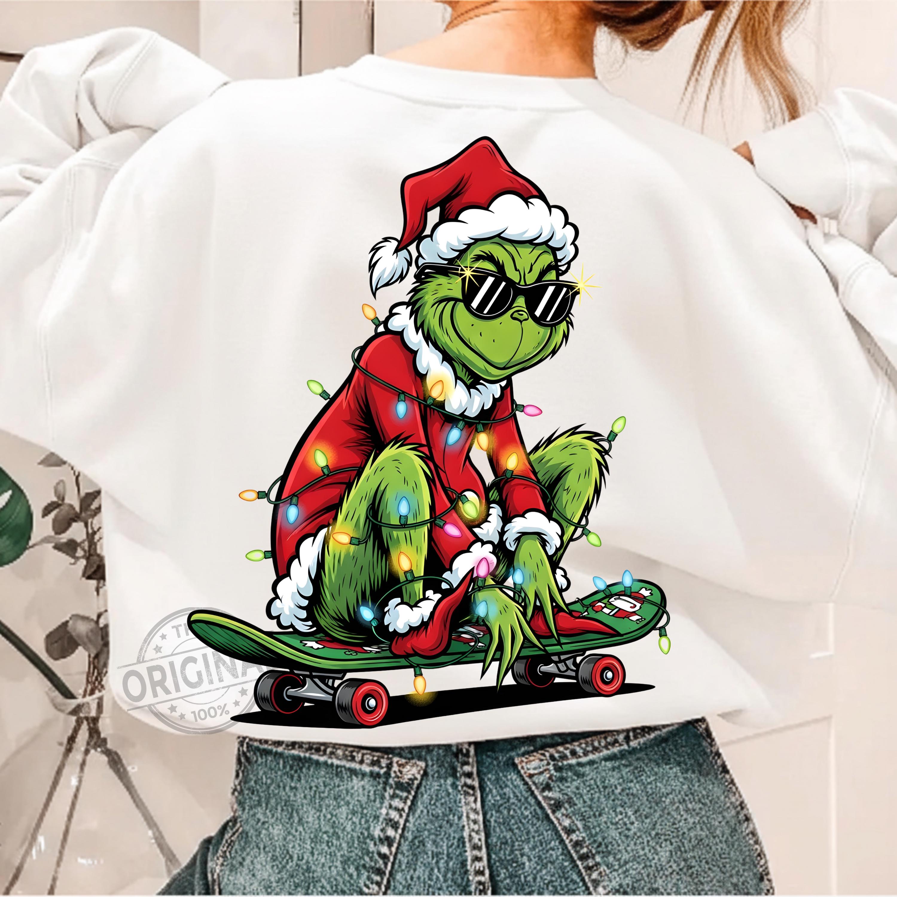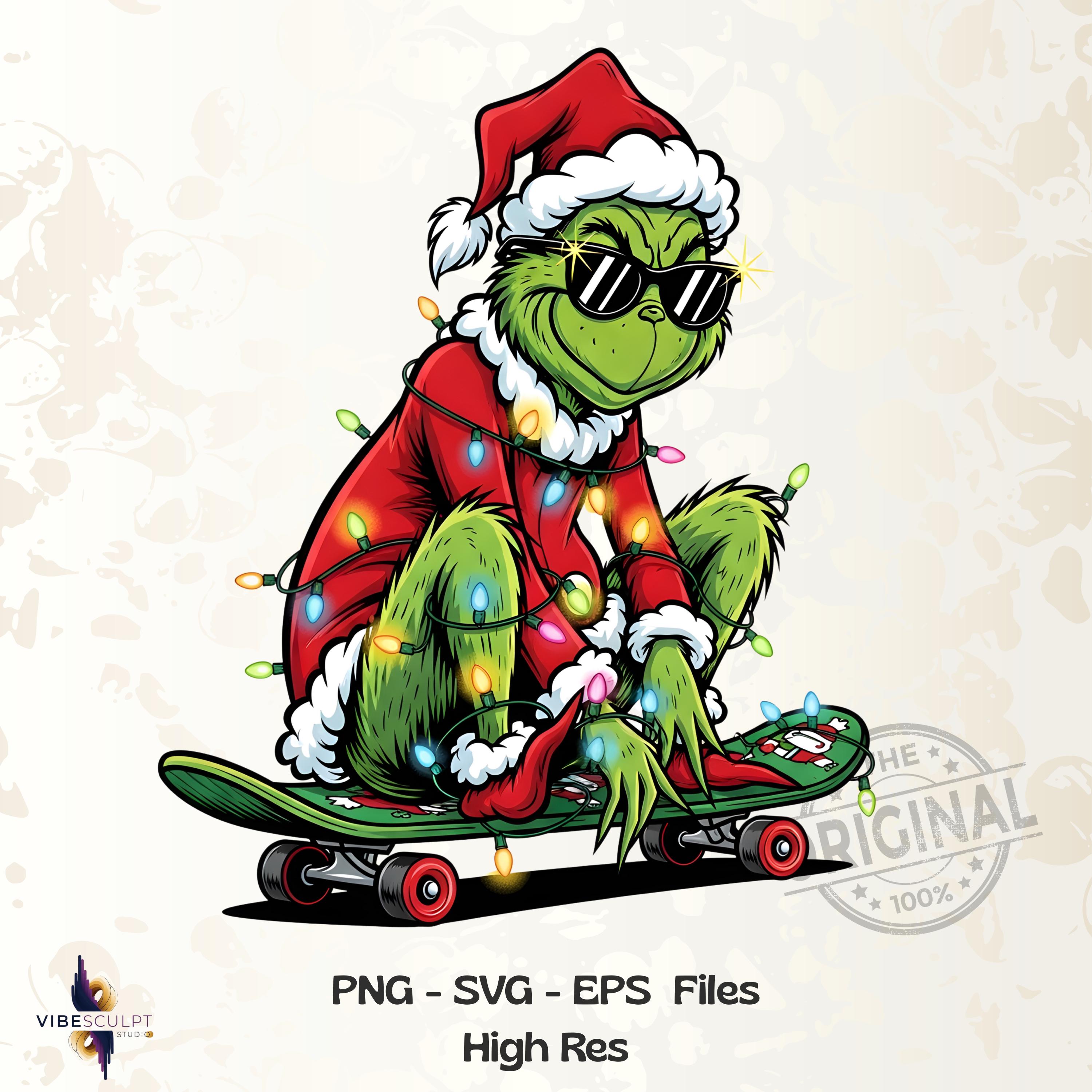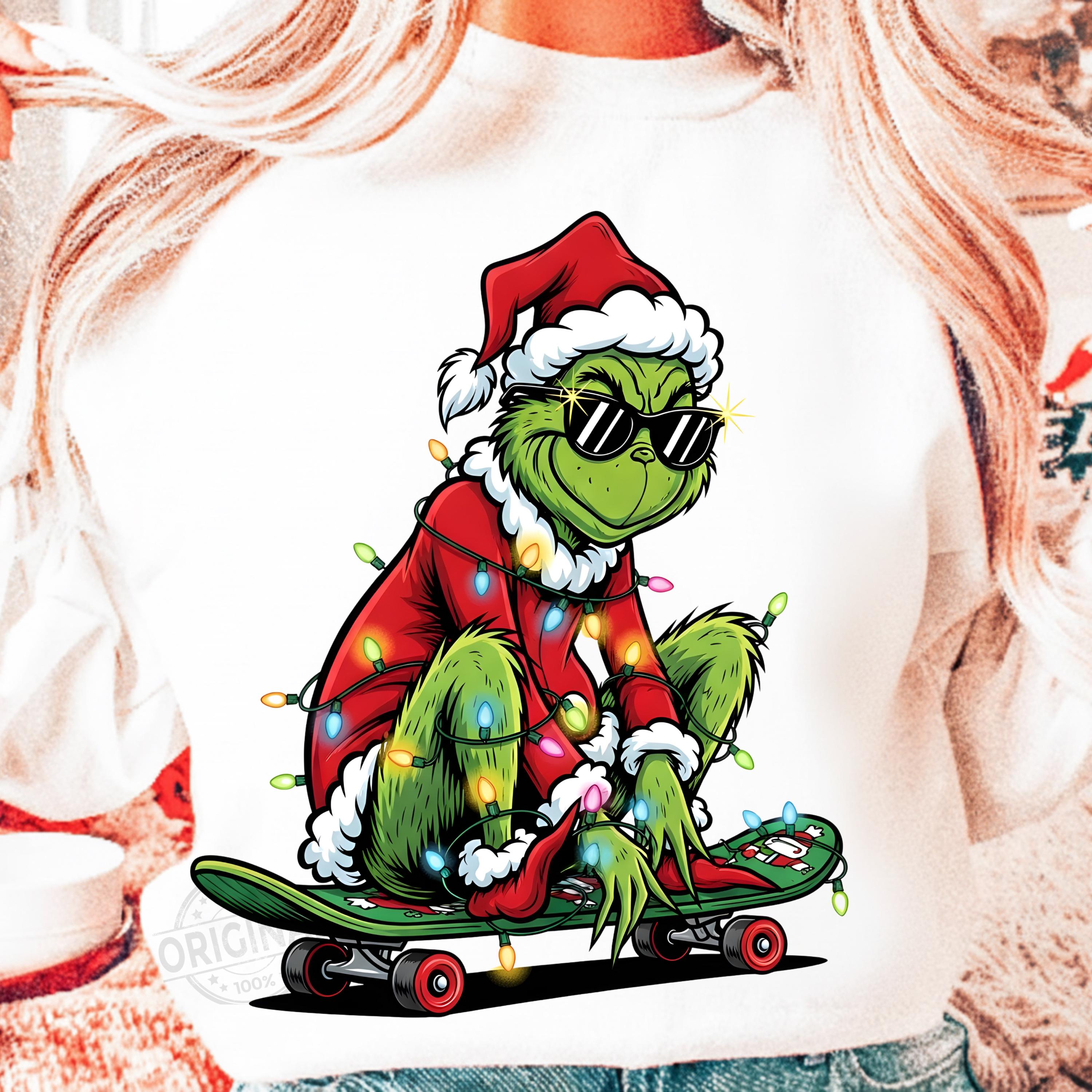 Cool Grinch Skateboarding PNG, Retro Christmas Grinch Clipart, Merry Grinchmas Skateboard Art, Grinch SVG, Grinch png, Christmas Movie png