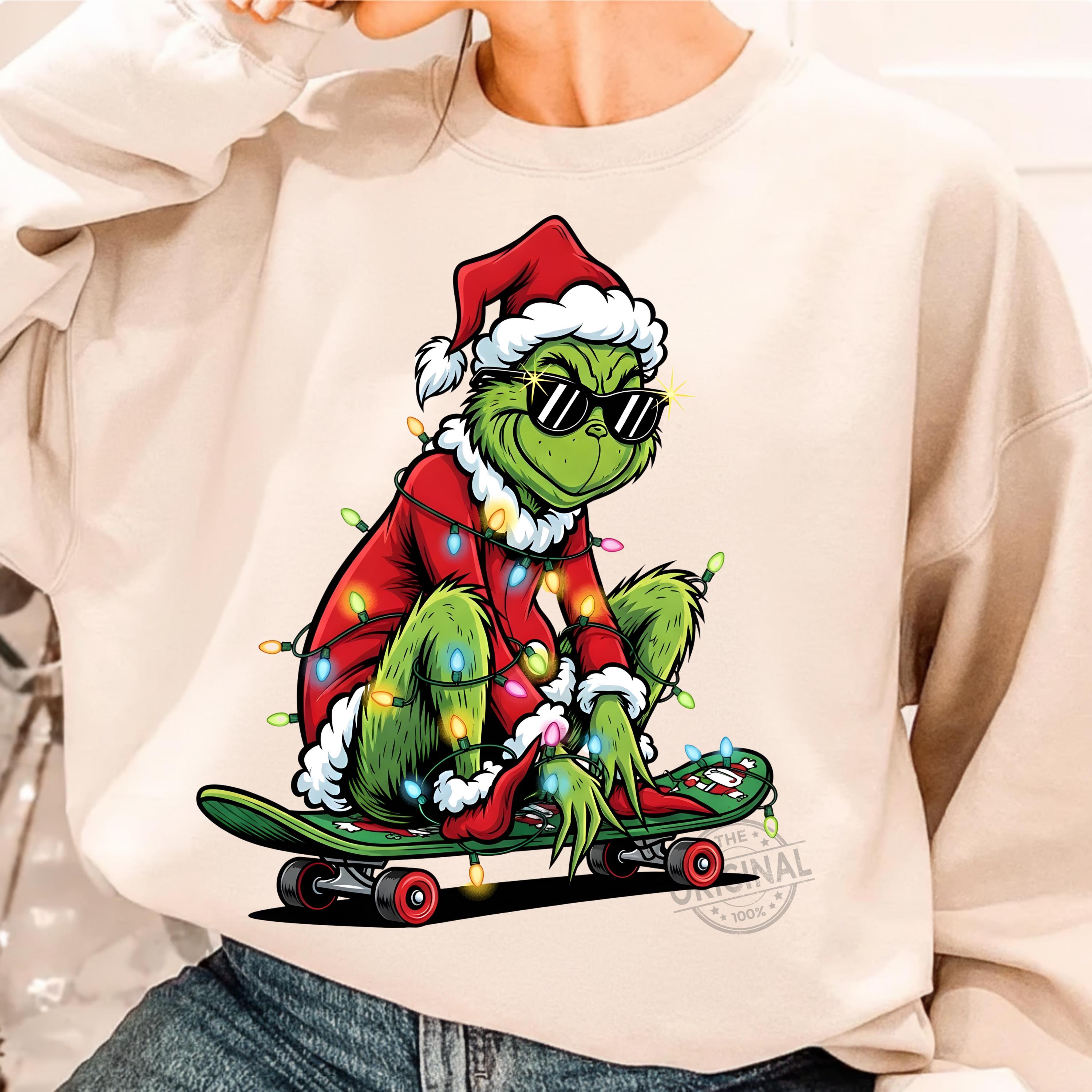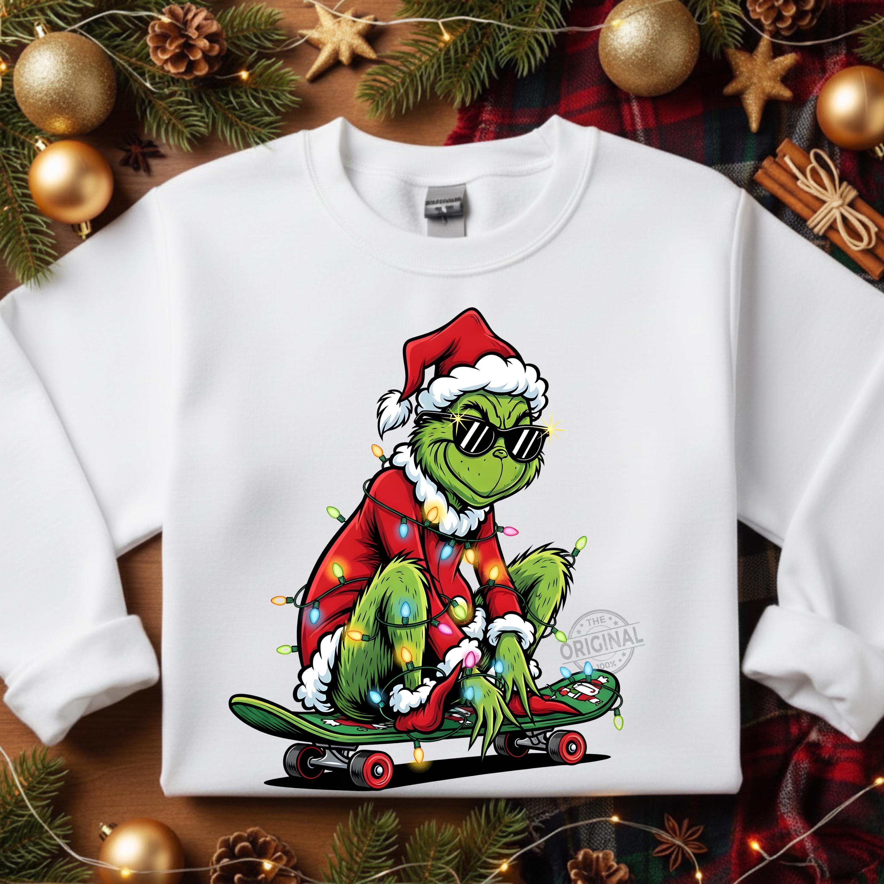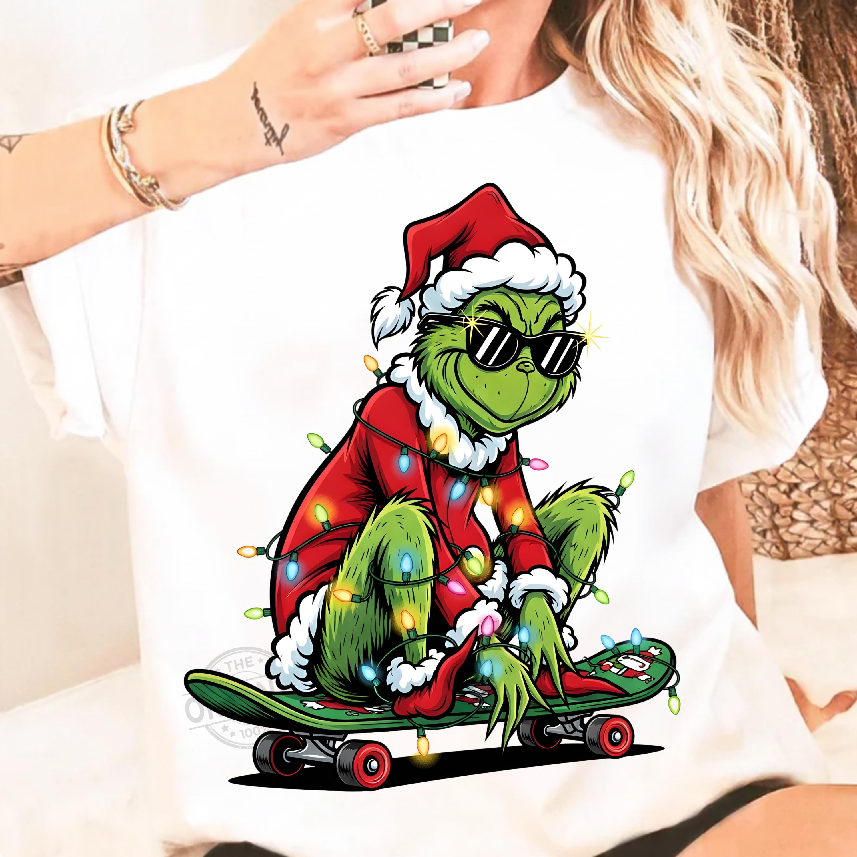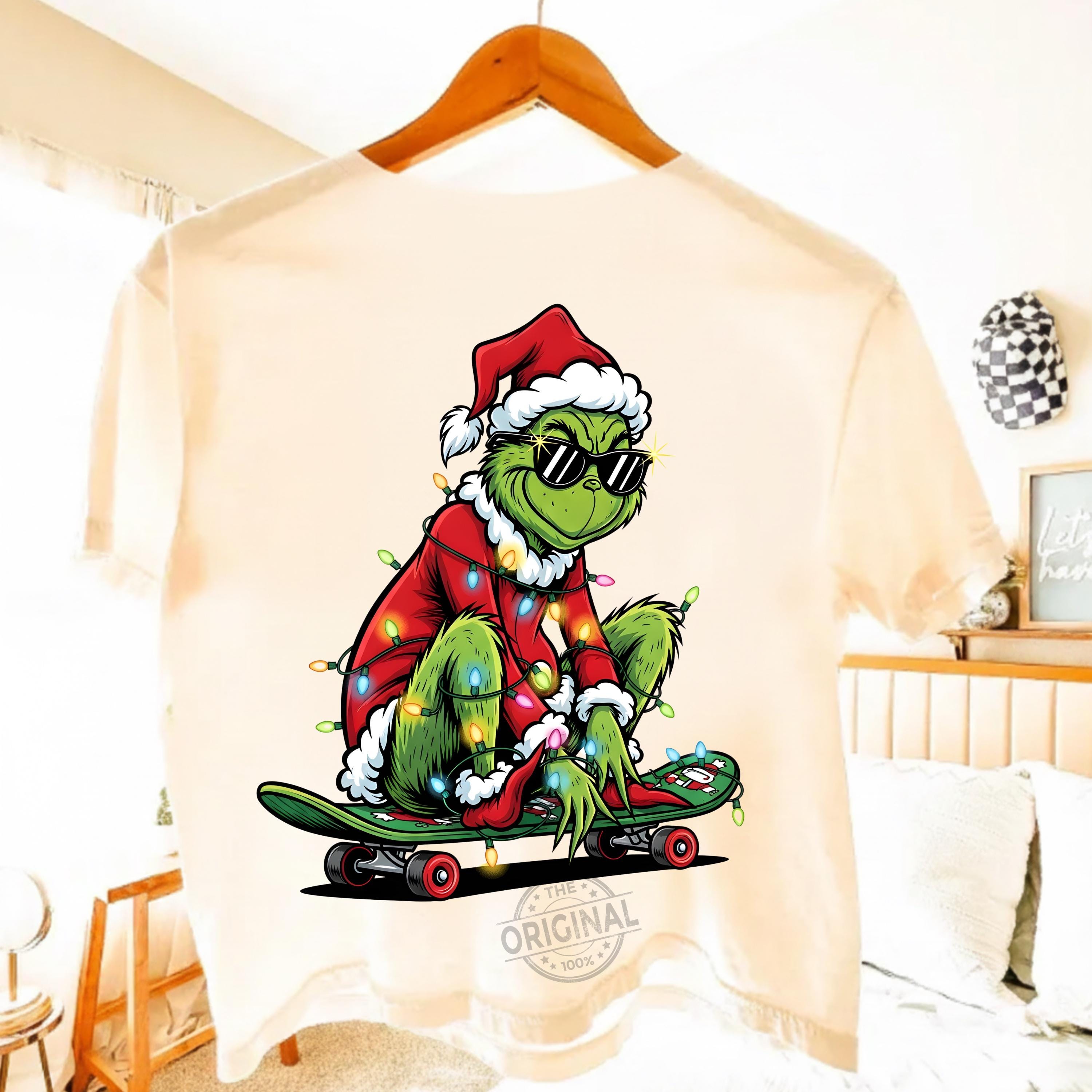 Cool Grinch Skateboarding PNG, Retro Christmas Grinch Clipart, Merry Grinchmas Skateboard Art, Grinch SVG, Grinch png, Christmas Movie png