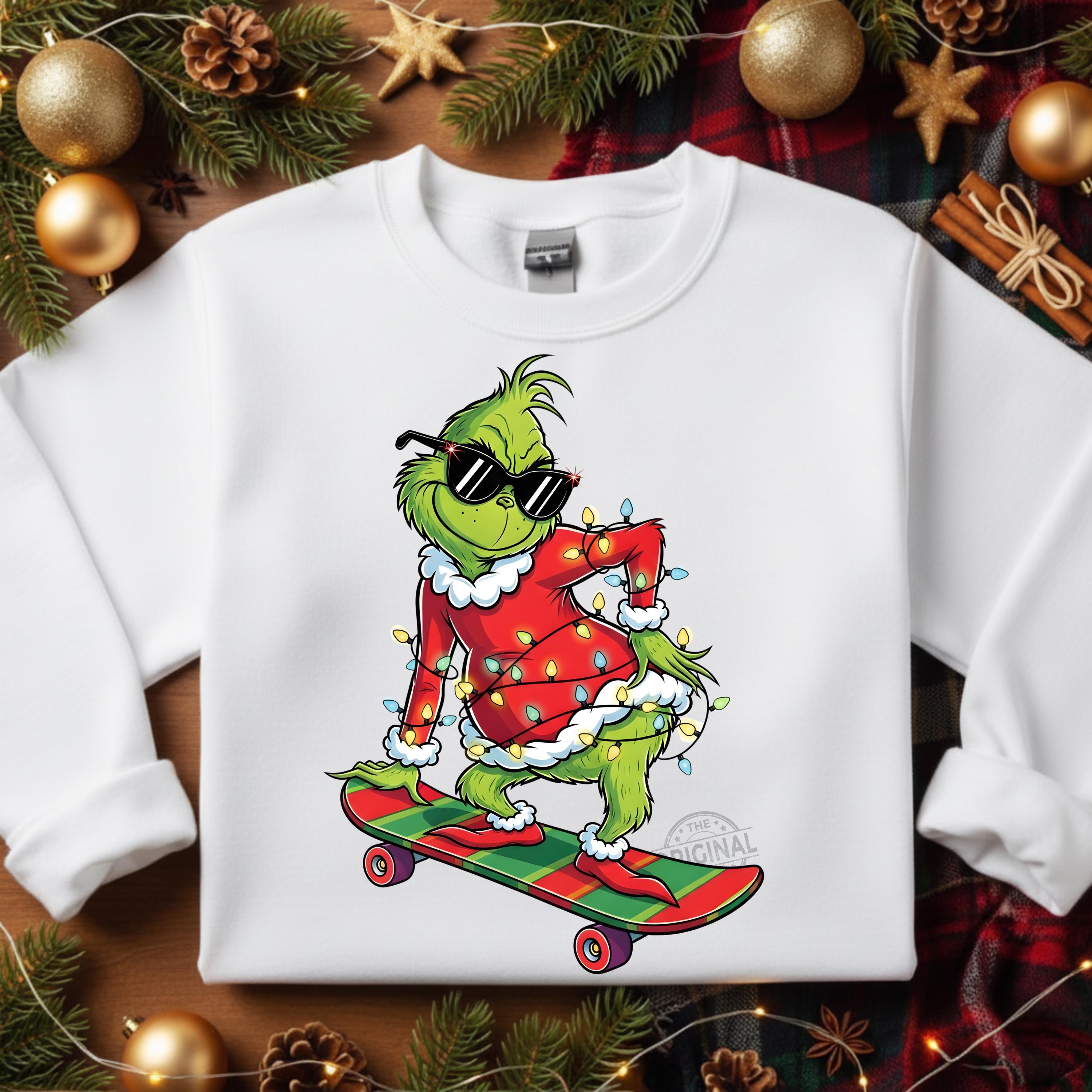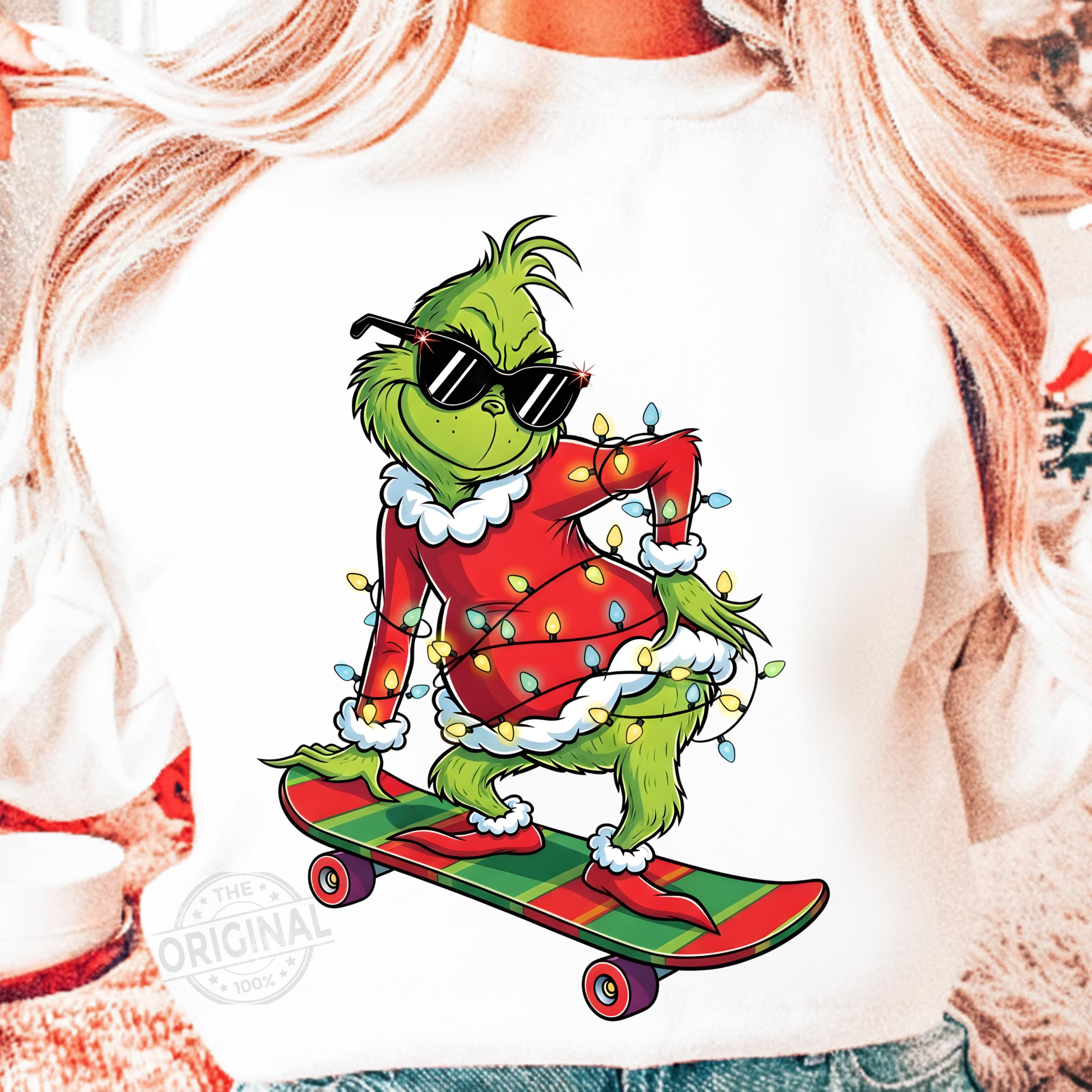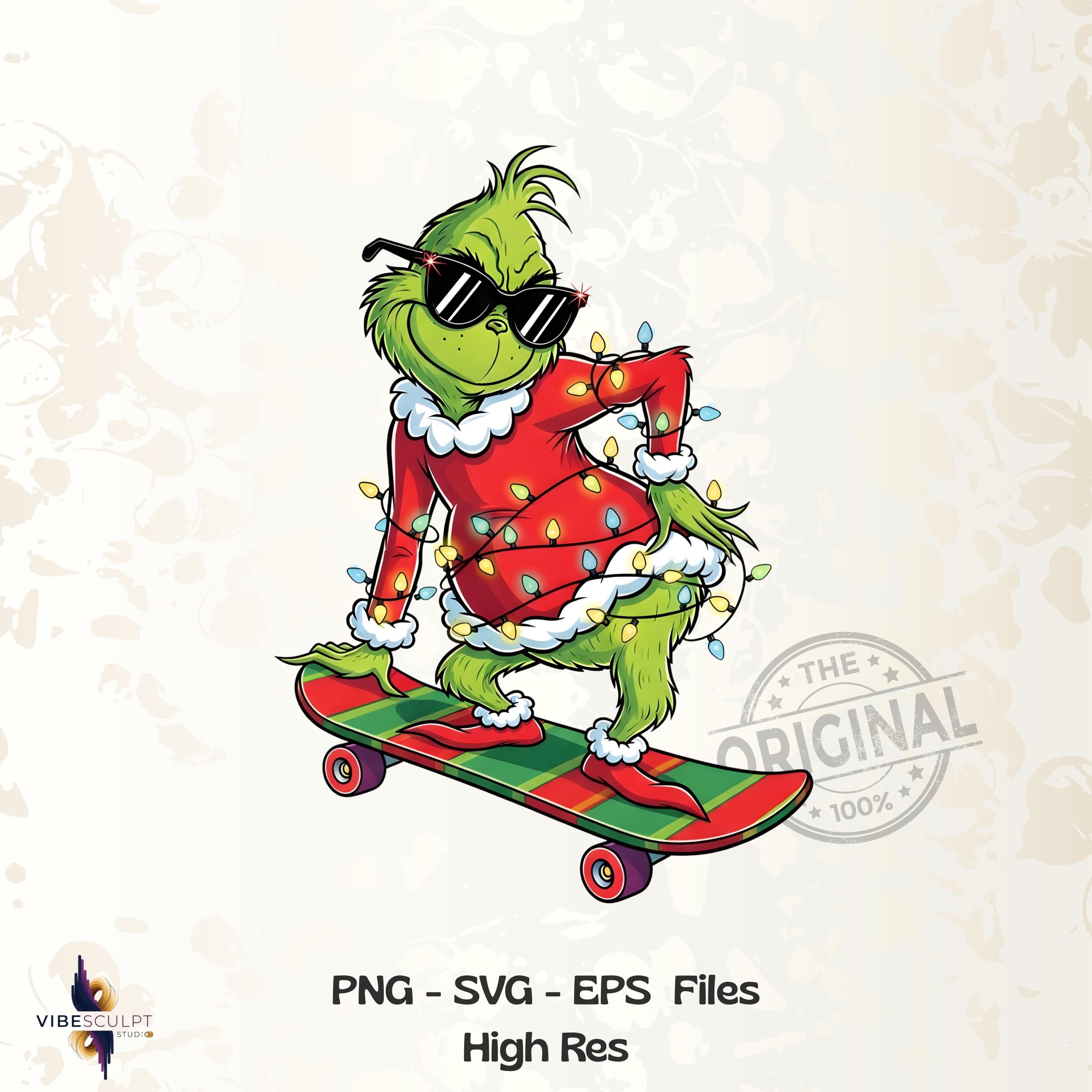 Cool Grinch Skateboarding PNG β Retro Christmas Grinch Clipart, Funny Grinchmas PNG, Green Christmas Character Art (Digital Download)