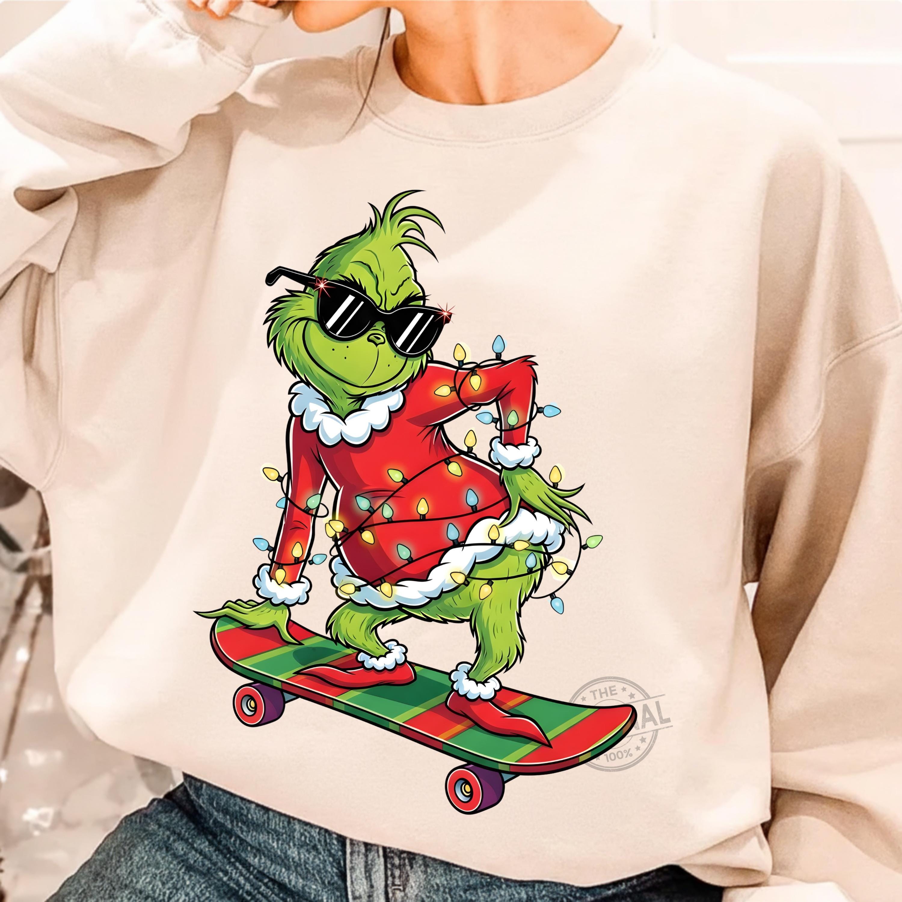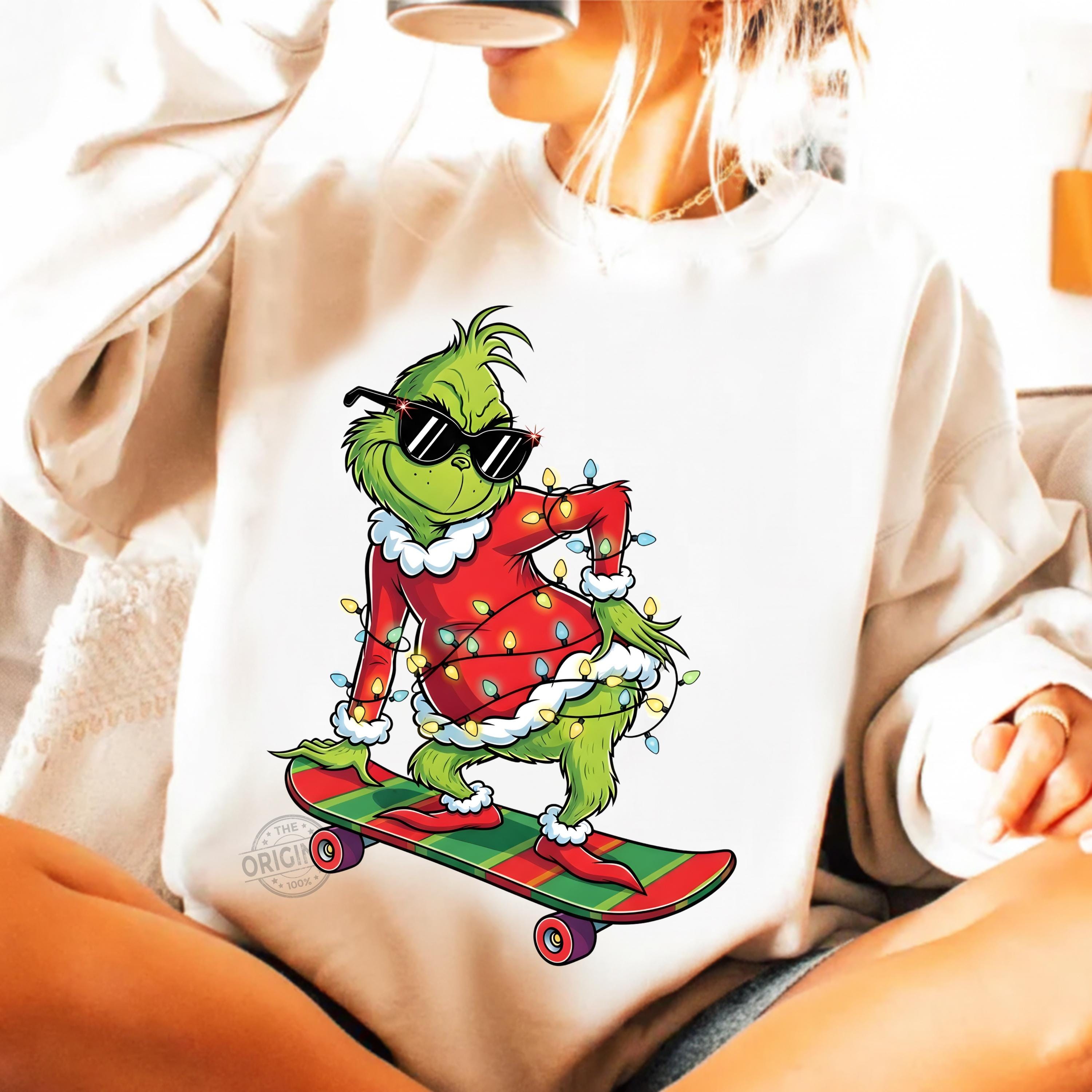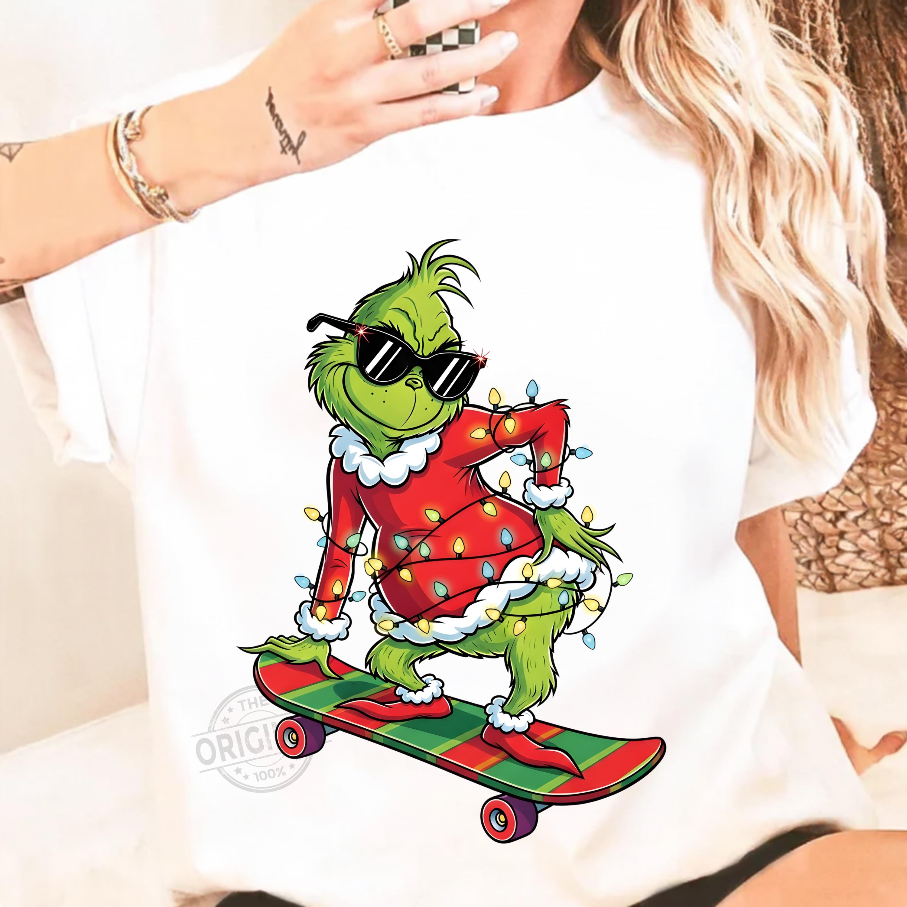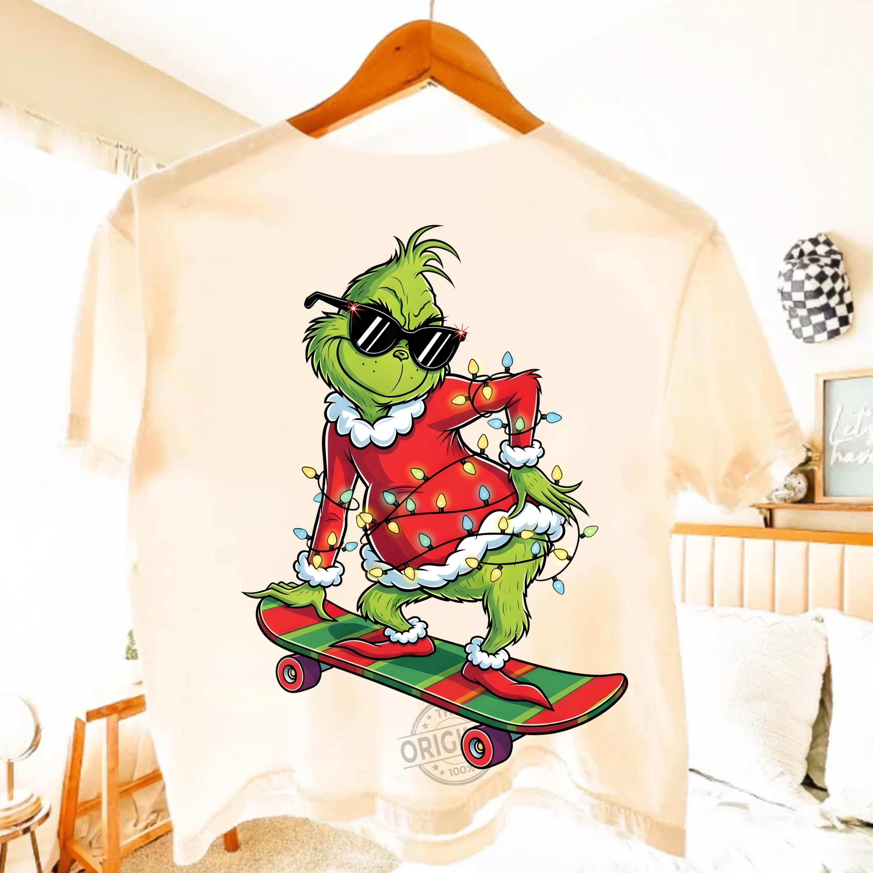Cool Grinch Skateboarding PNG β Retro Christmas Grinch Clipart, Funny Grinchmas PNG, Green Christmas Character Art (Digital Download)
