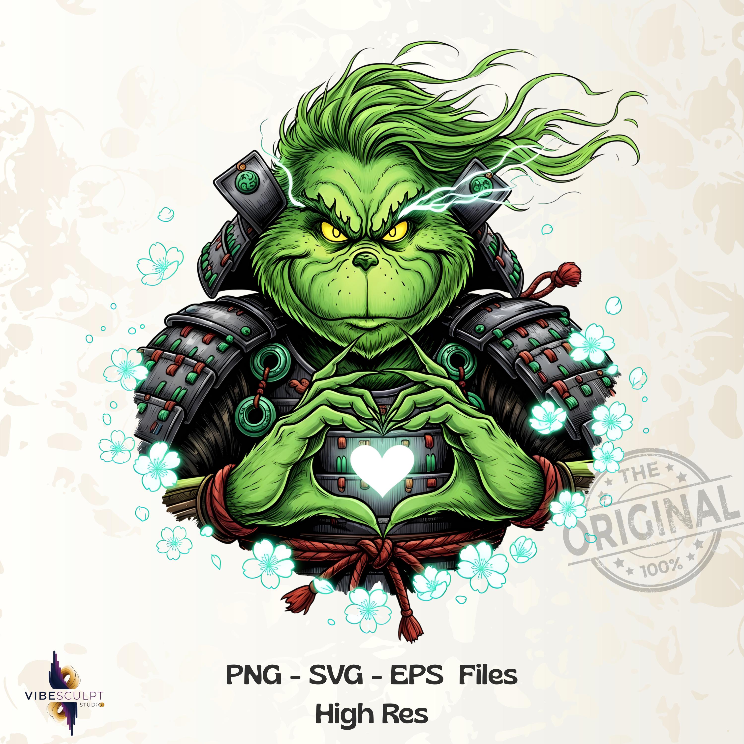 Instant download Grinch Samurai Heart PNG & SVG for crafting, sublimation, t-shirt design, stickers, mugs, print-on-demand and more.