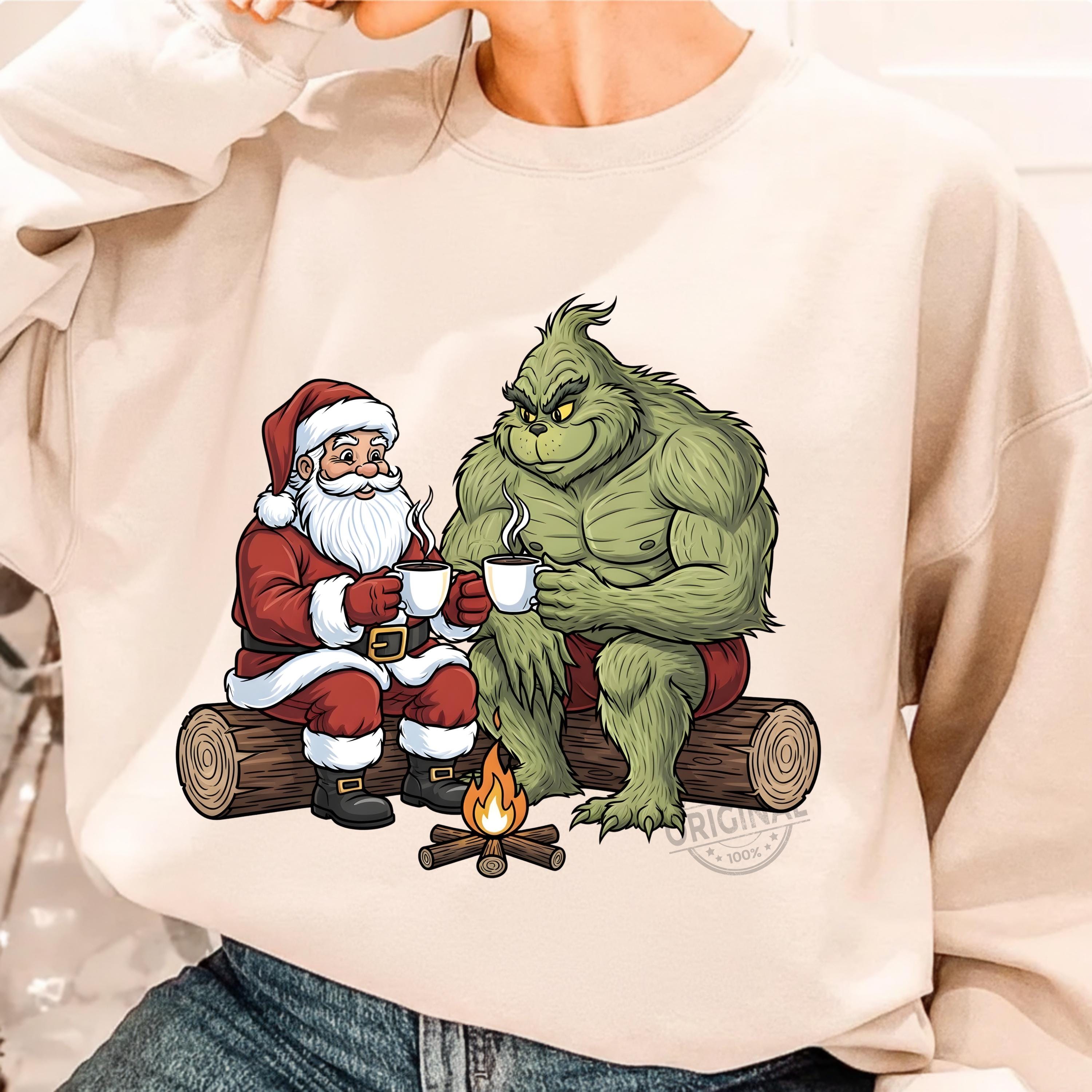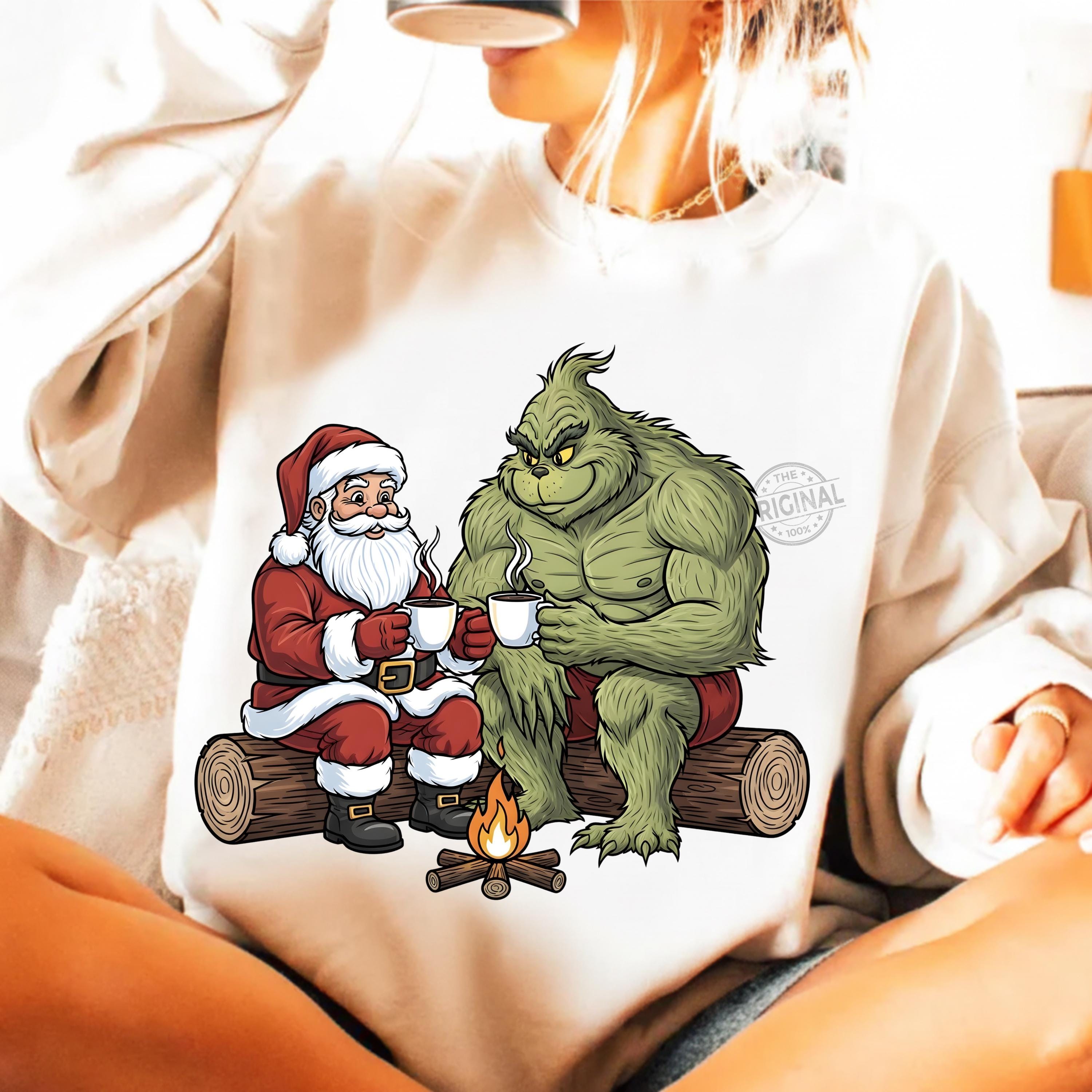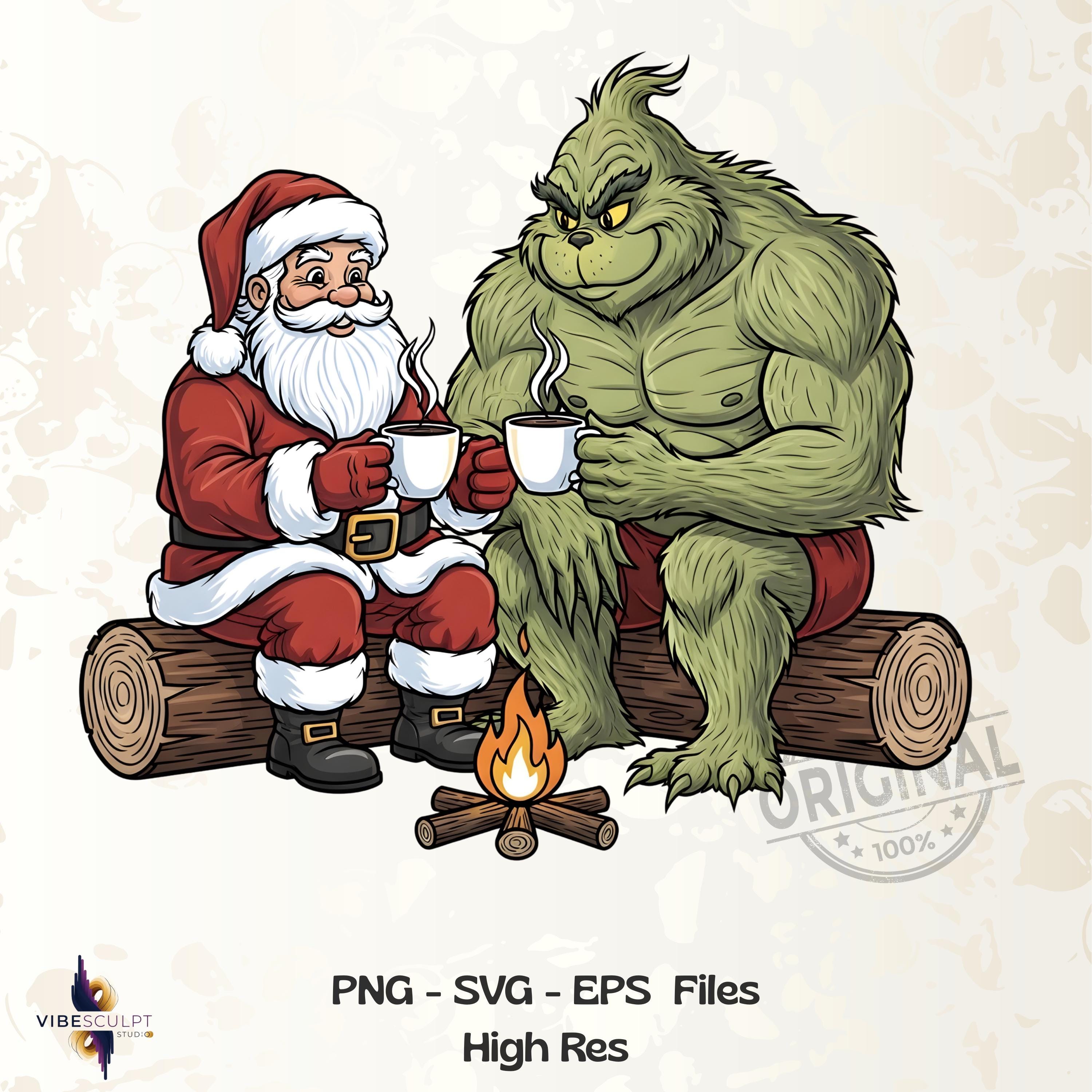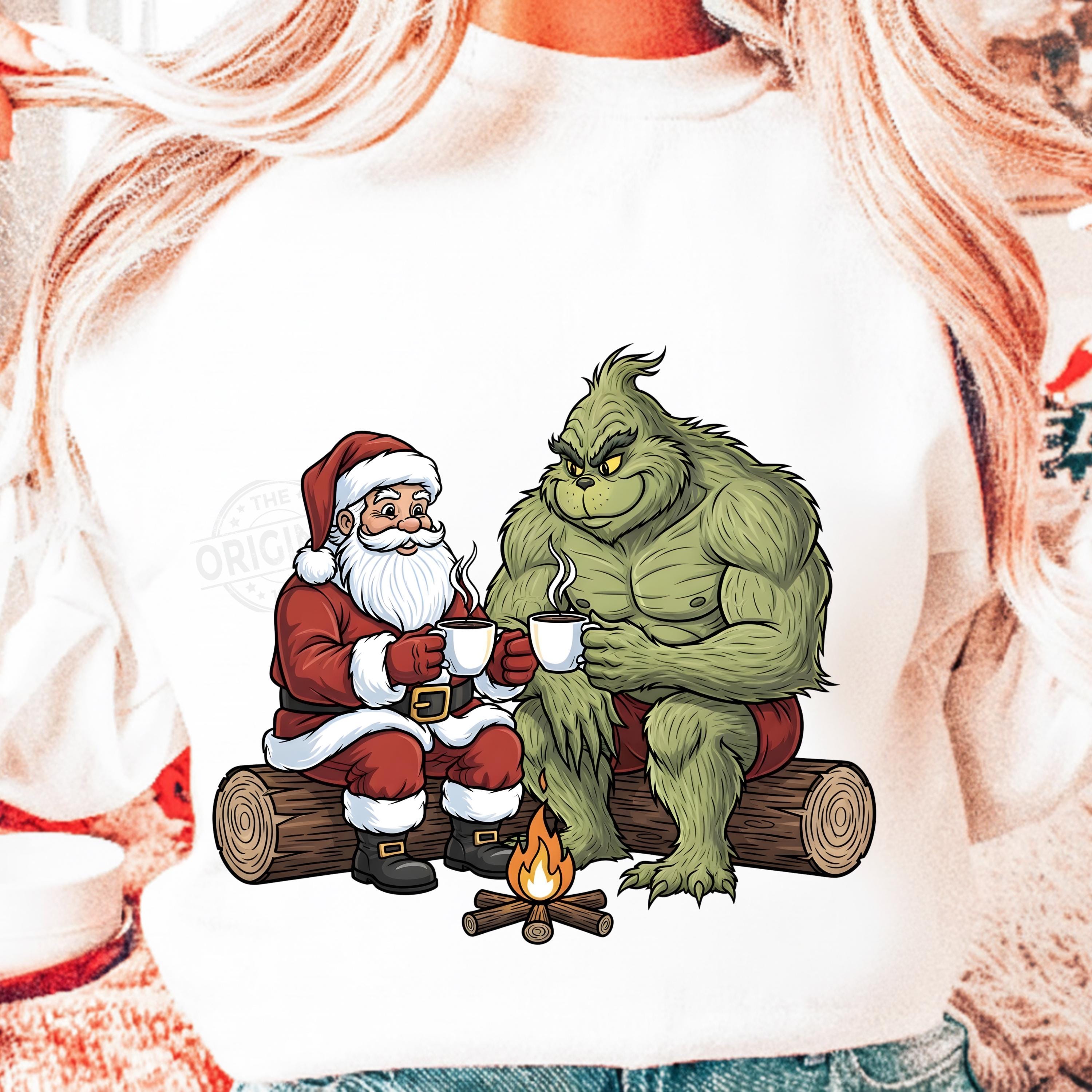 Santa and Grinch Christmas PNG, Funny Hot Cocoa Campfire Design, grinch svg files, grinch png, girly grinch png, Christmas Characters png
