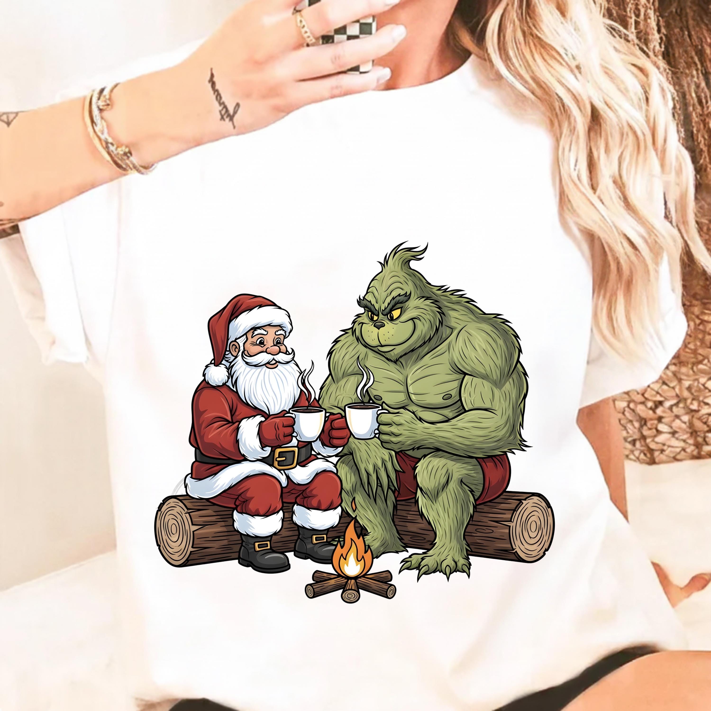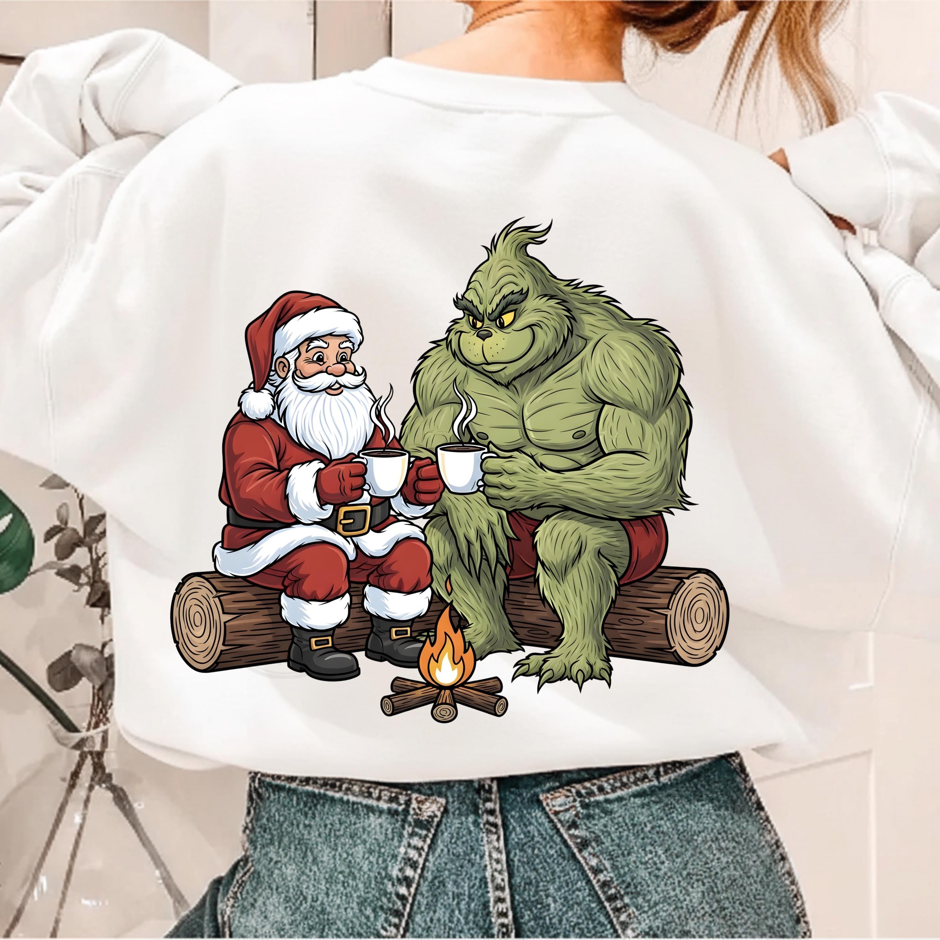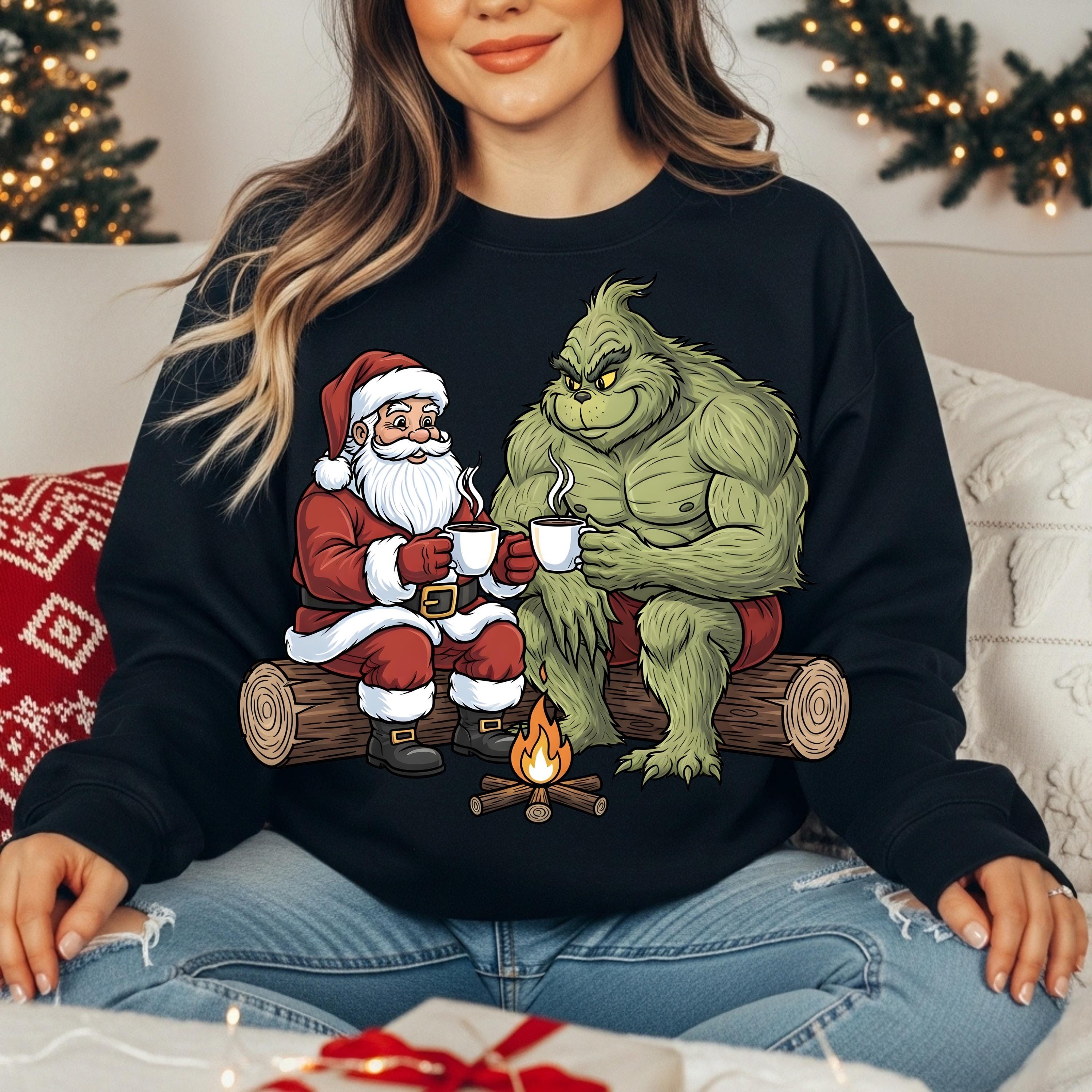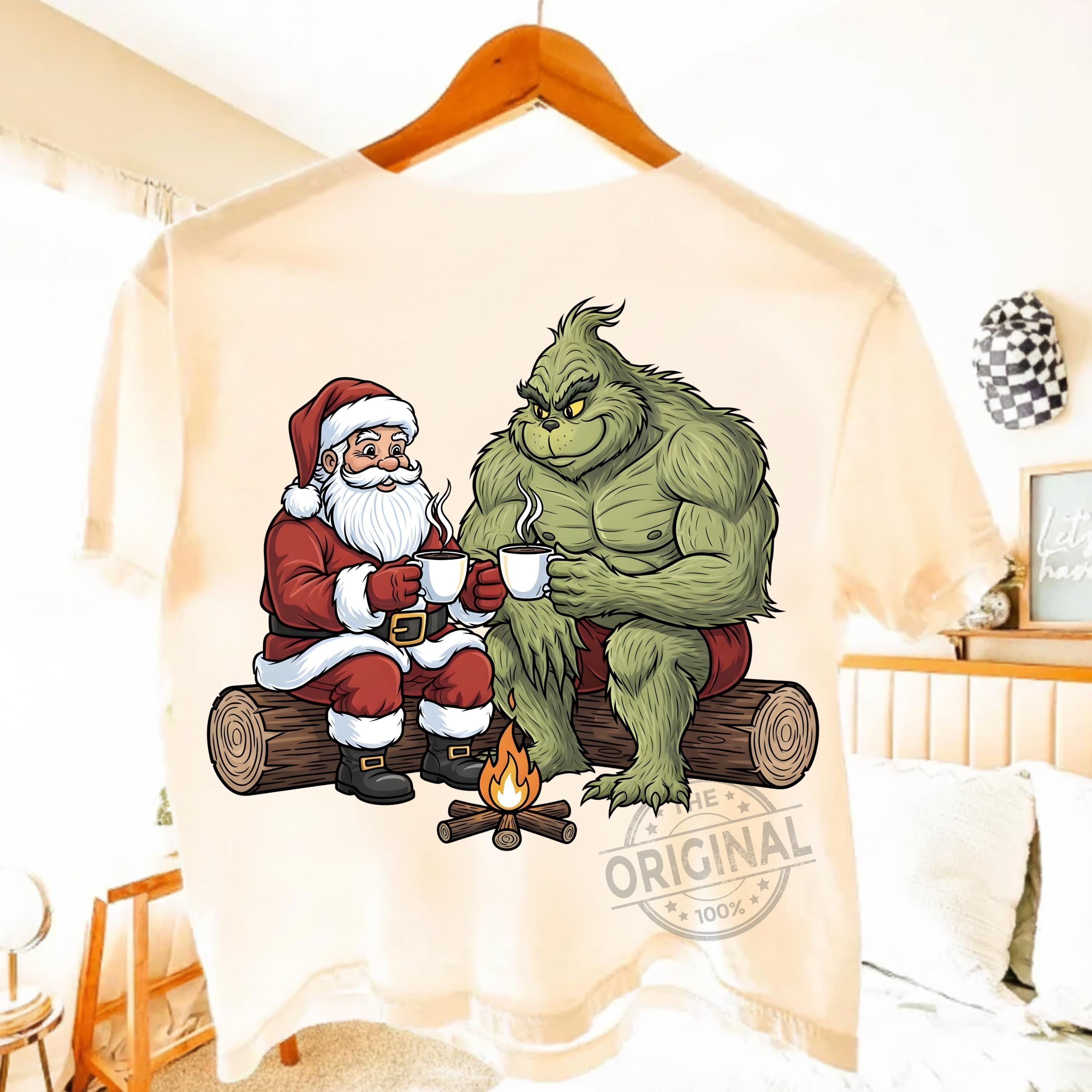 Santa and Grinch Christmas PNG, Funny Hot Cocoa Campfire Design, grinch svg files, grinch png, girly grinch png, Christmas Characters png