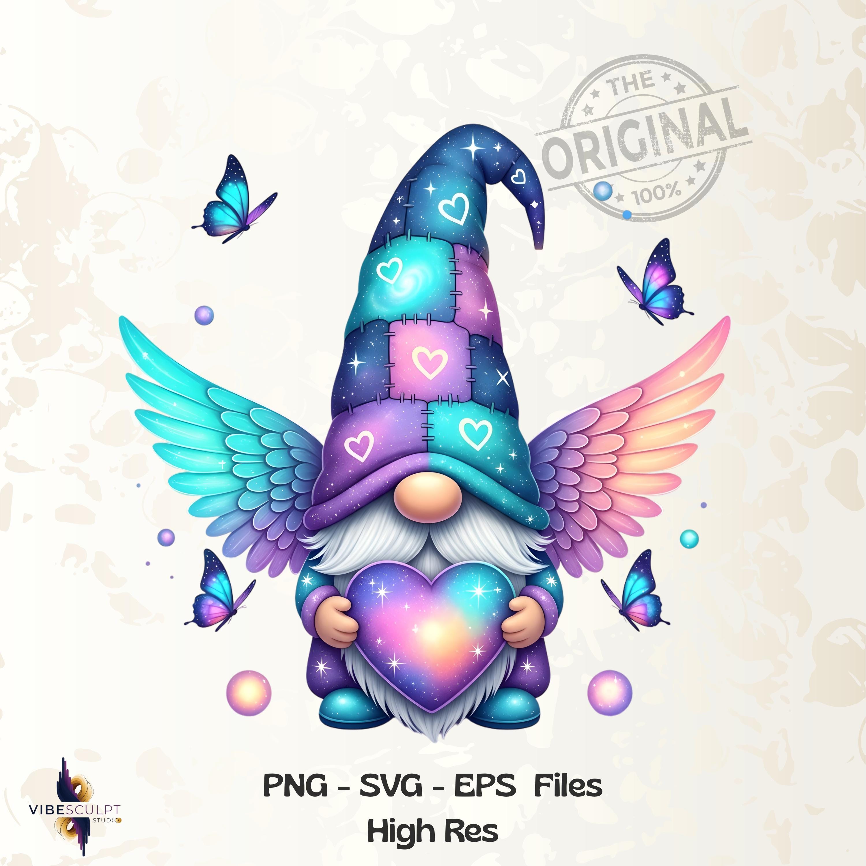 A dreamy gnome with stained-glass style wings, crystal butterflies and icy pastel details. Ultra-detailed textures and magical lighting create an enchanting fantasy moment.