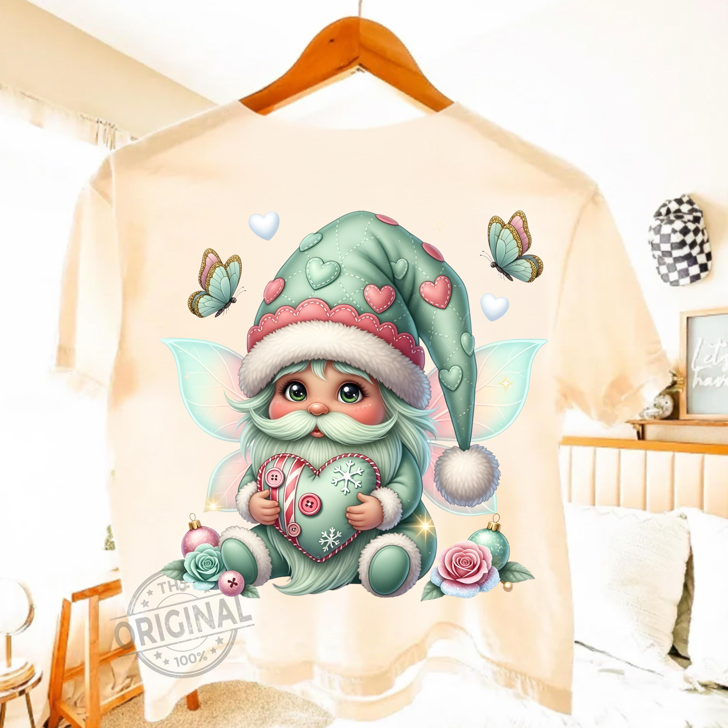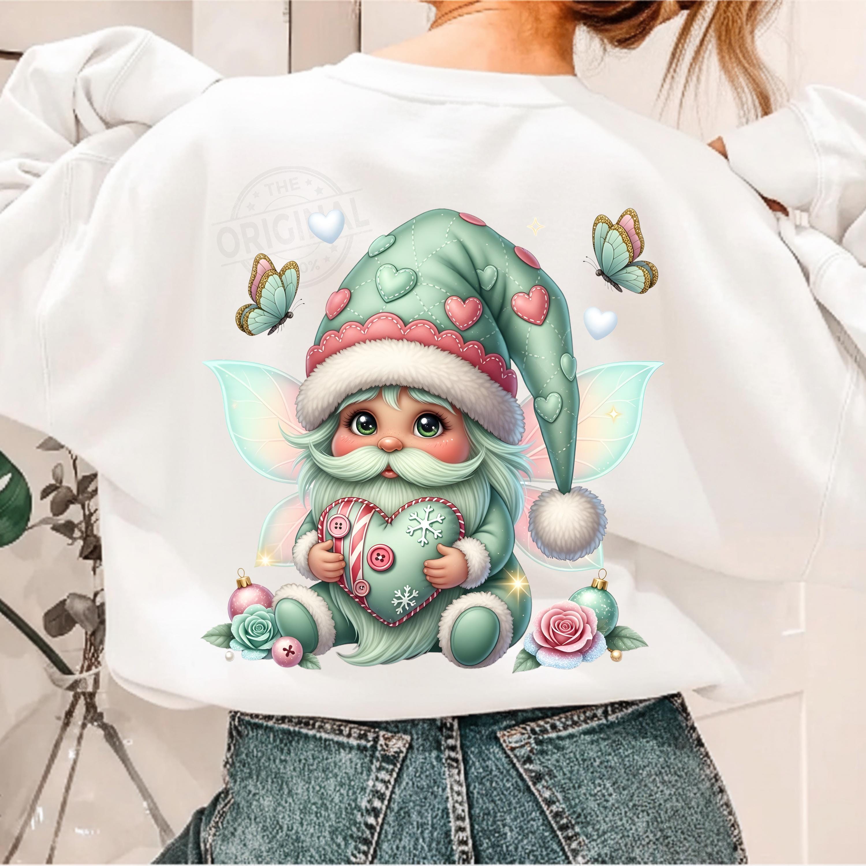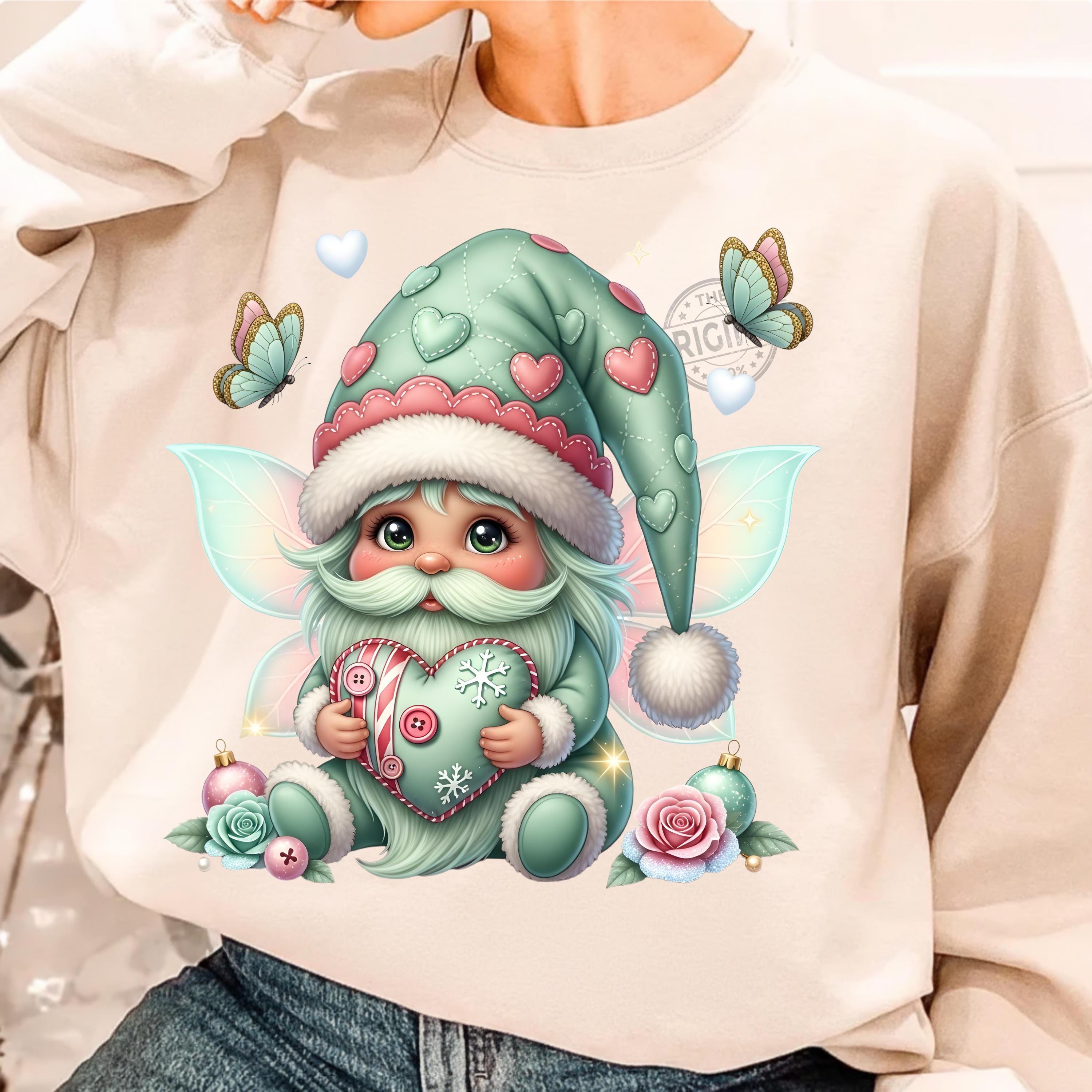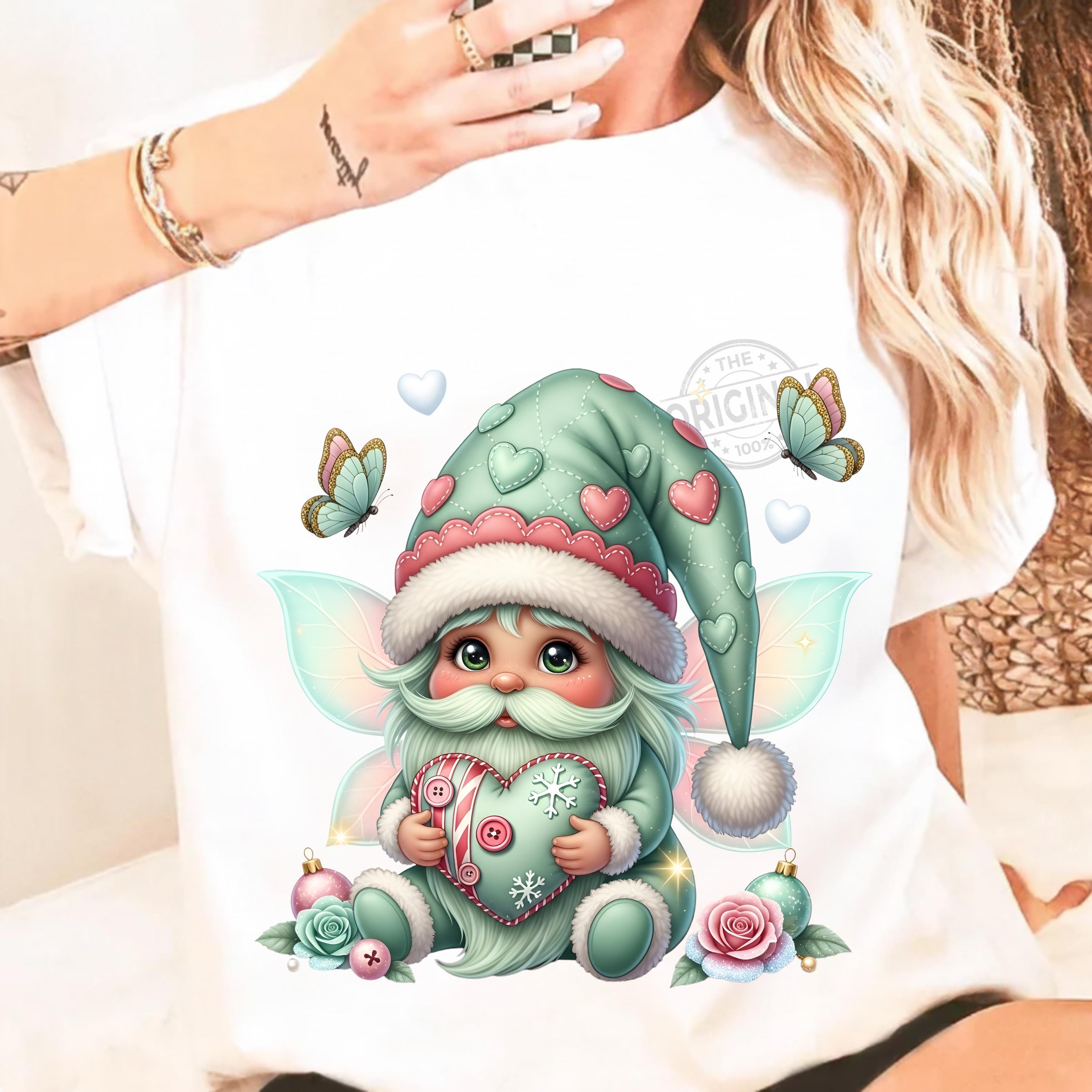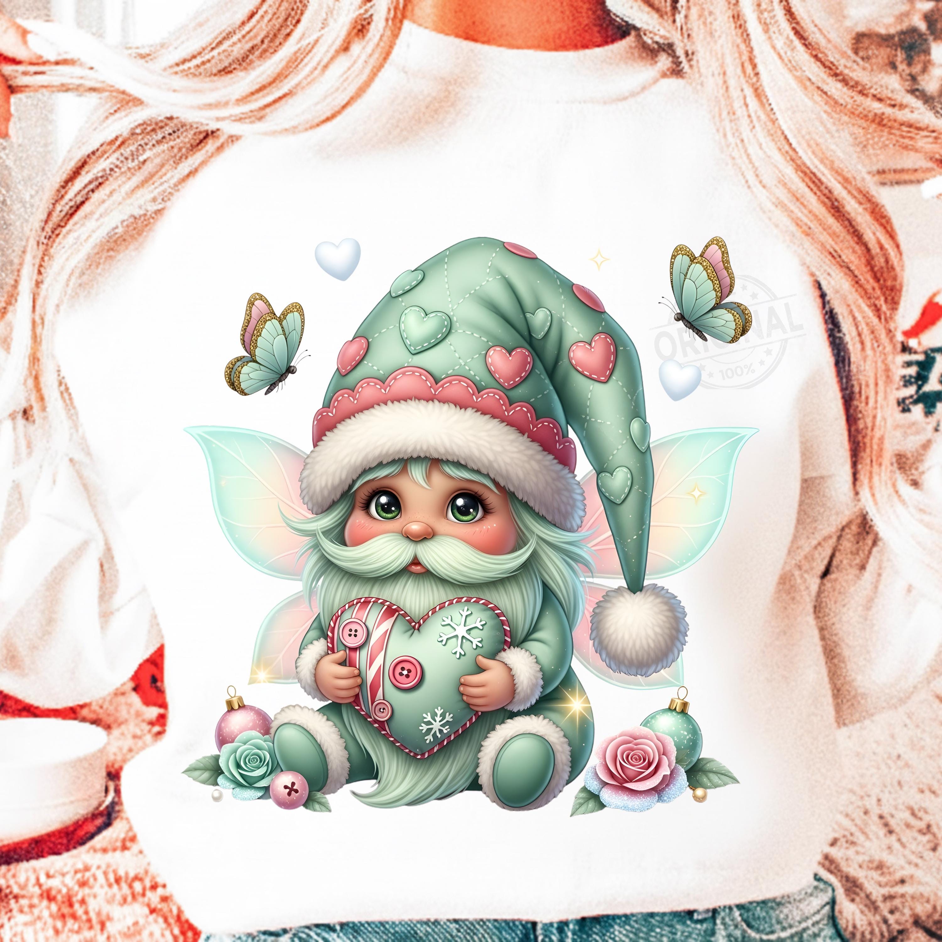 A super cute baby gnome with glowing wings, a fluffy mint beard, . Magical butterflies complete this adorable ultra-detailed scene.