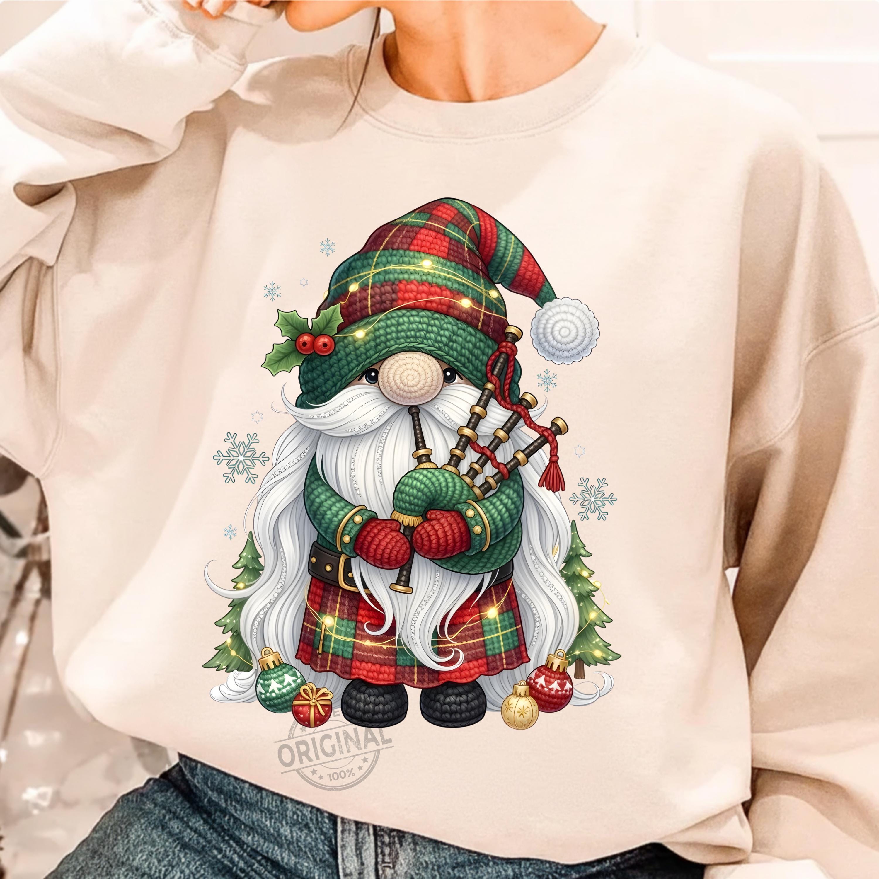 Scottish Christmas Gnome PNG, SVG, Highland Gnome Clipart, Cute Tartan Gnome, Crochet Yarn Gnomes PNG, Holiday Craft Design, Winter Clipart