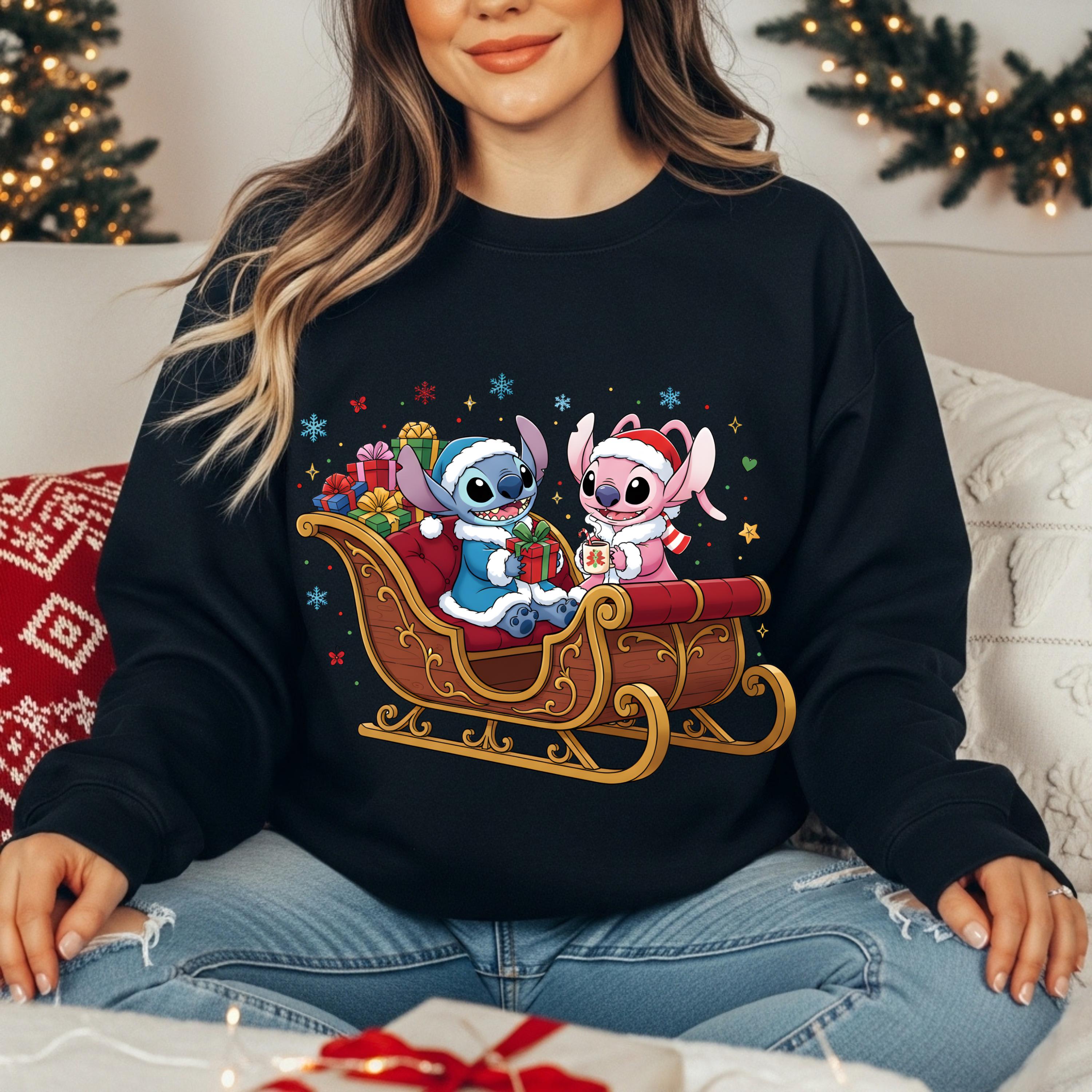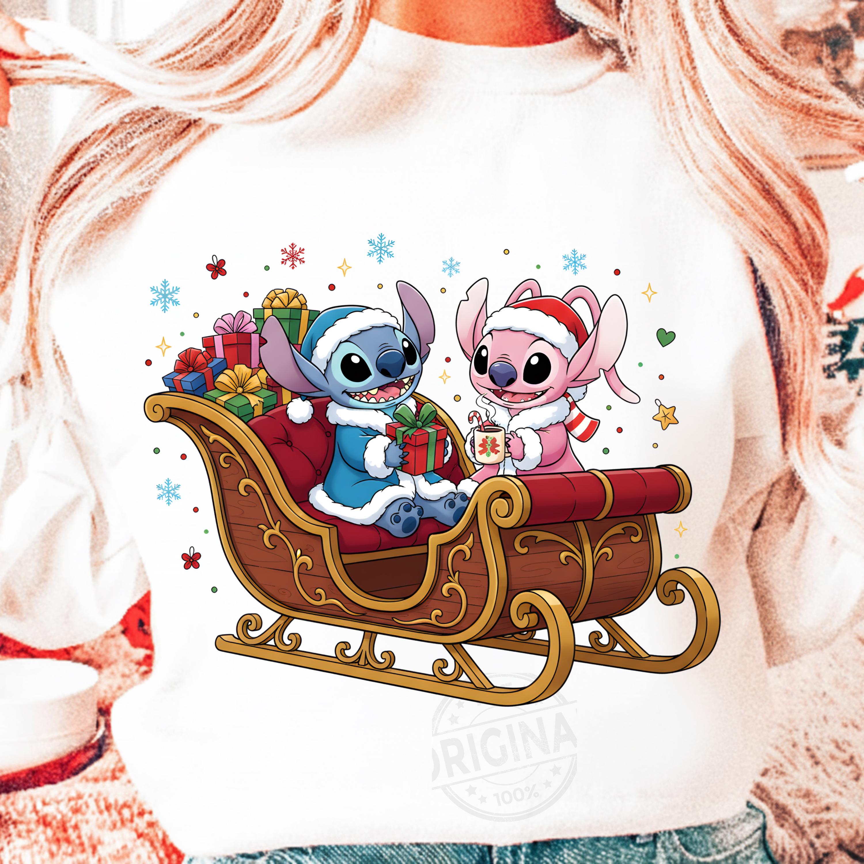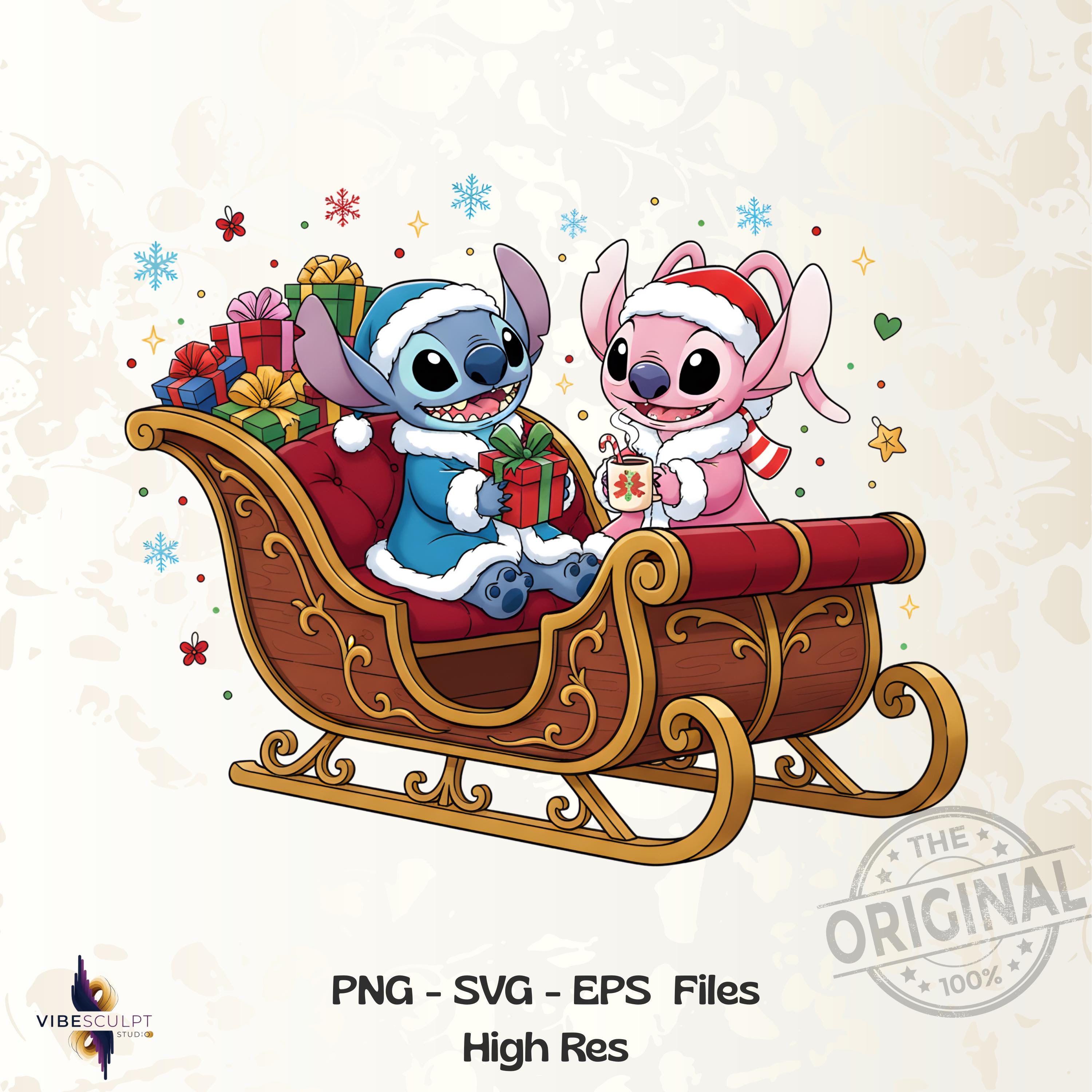 Cute Stitch Christmas PNG, Stitch Santa Sleigh Clipart, Kawaii Stitch Holiday PNG, Christmas Sleigh Stitch Design