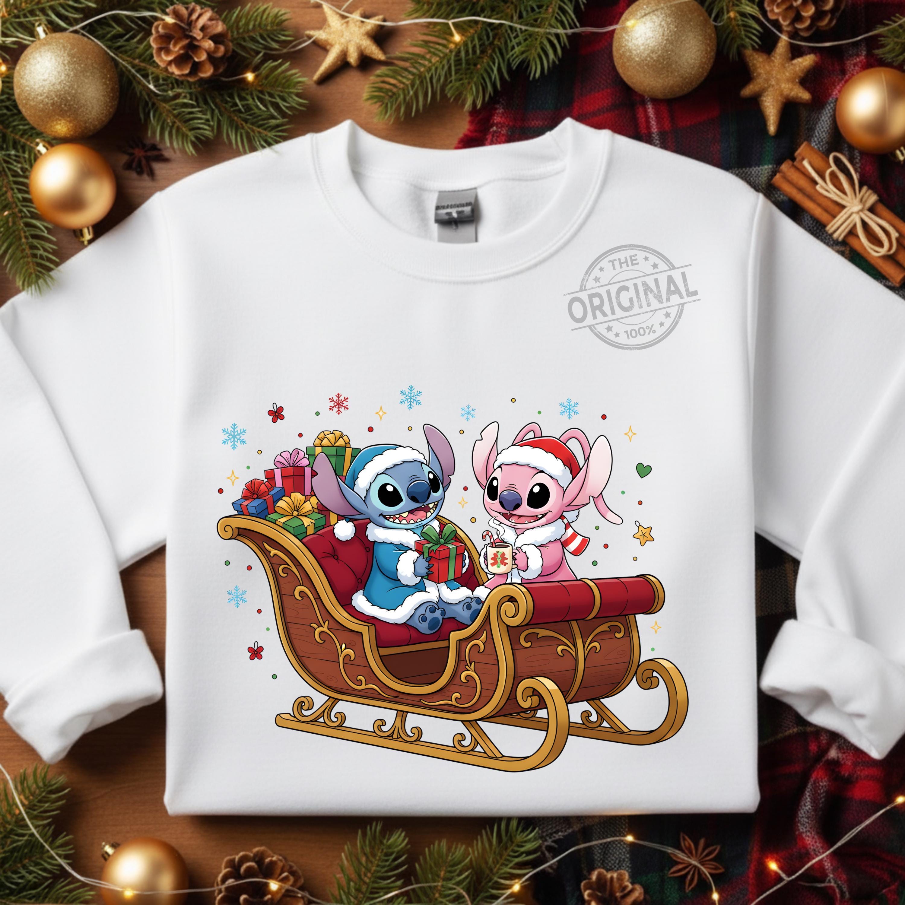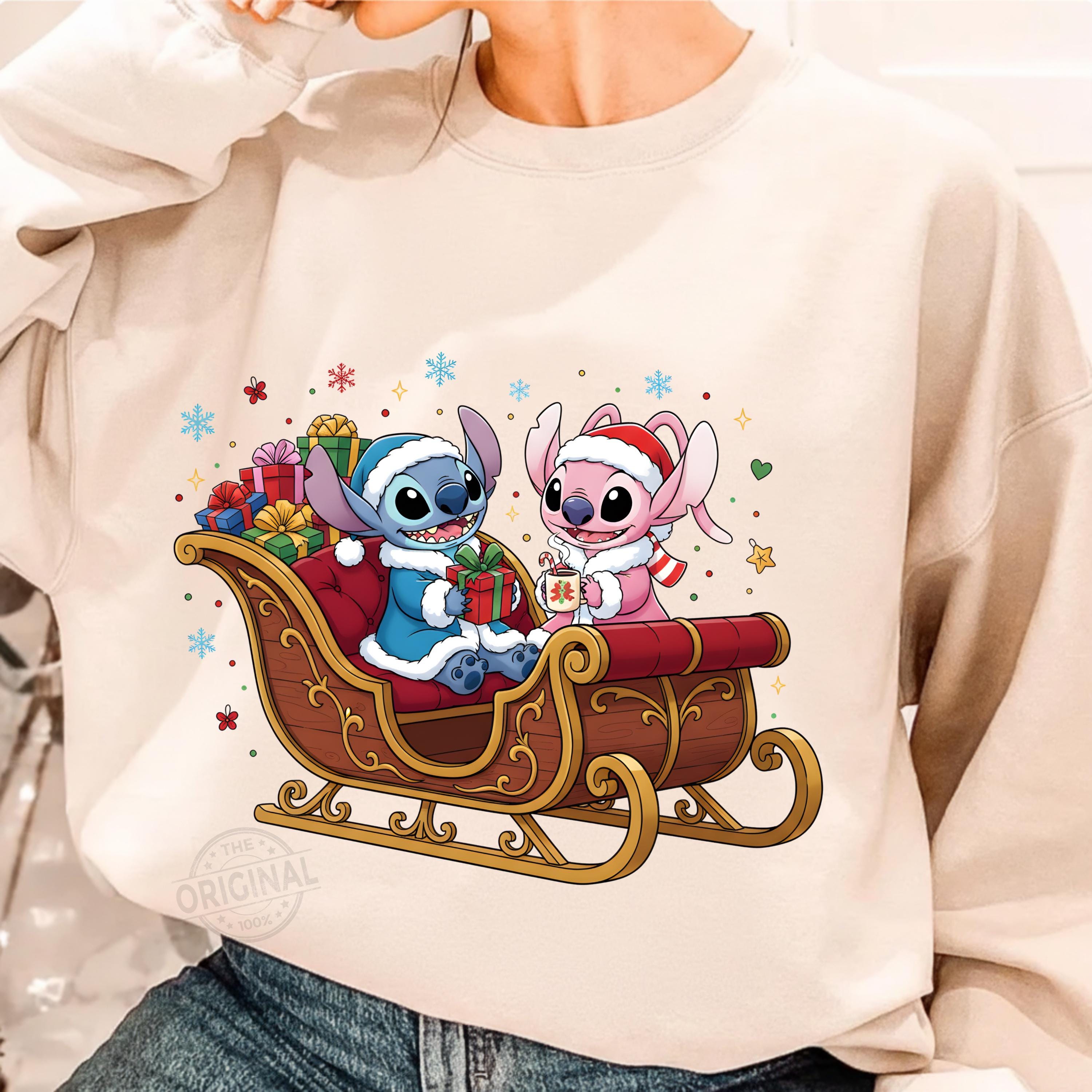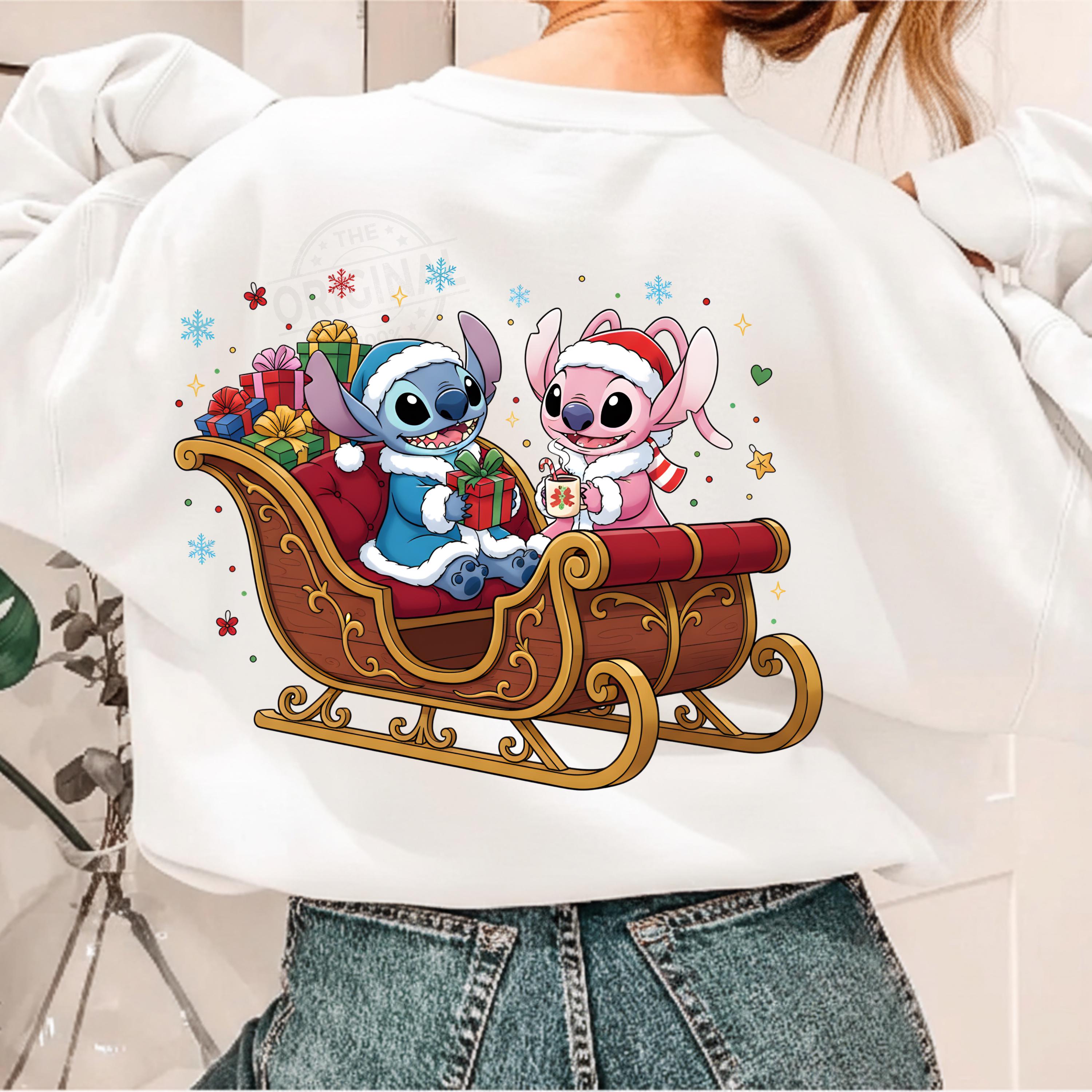 Cute Stitch Christmas PNG, Stitch Santa Sleigh Clipart, Kawaii Stitch Holiday PNG, Christmas Sleigh Stitch Design
