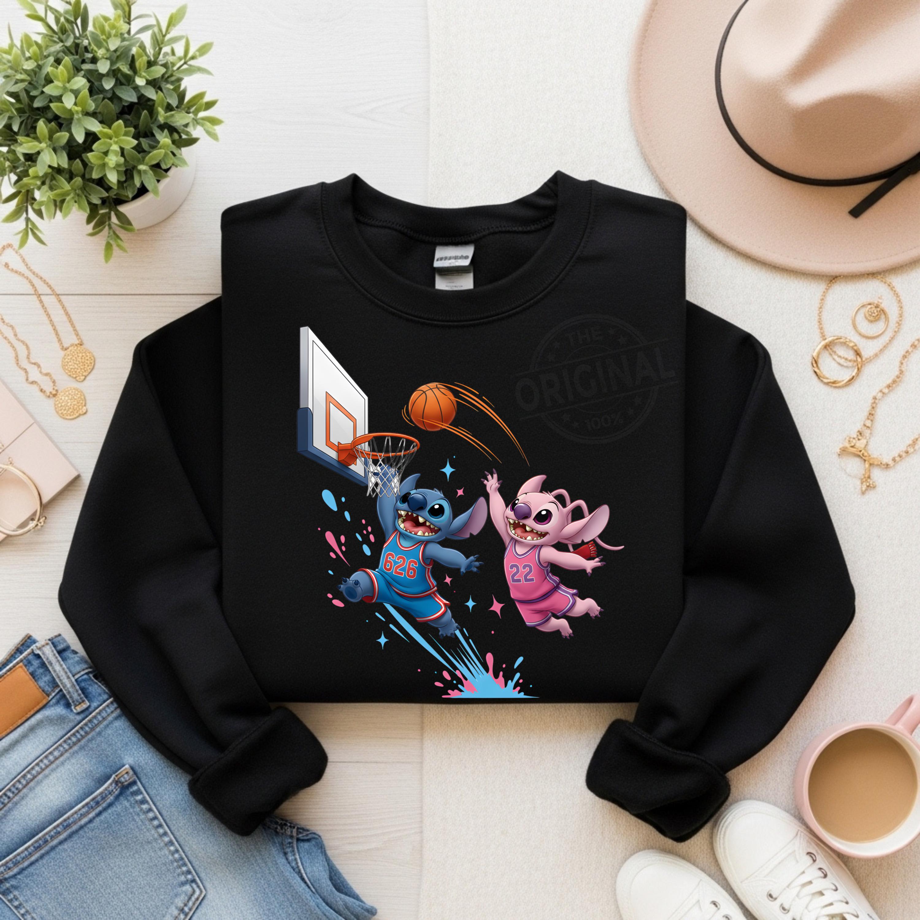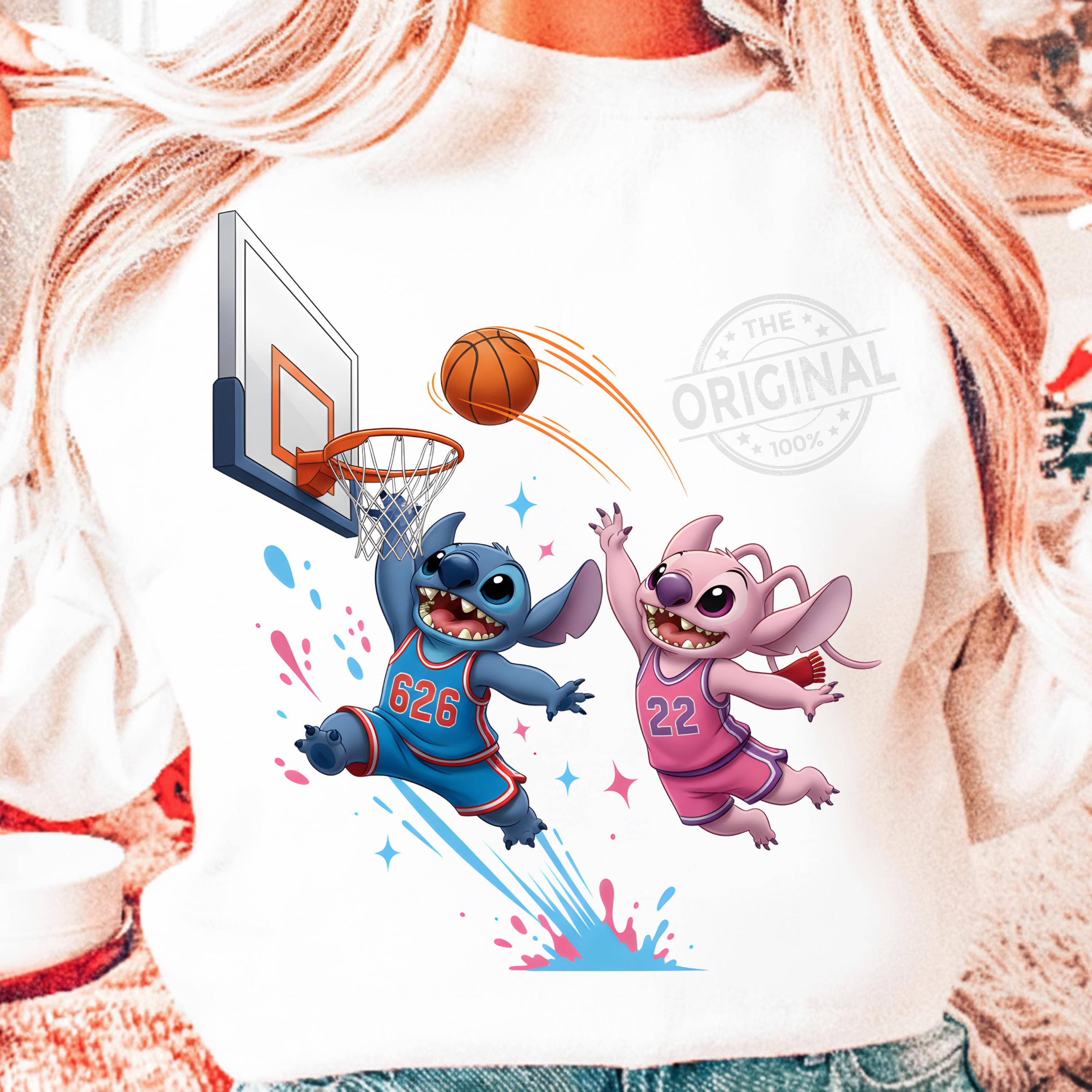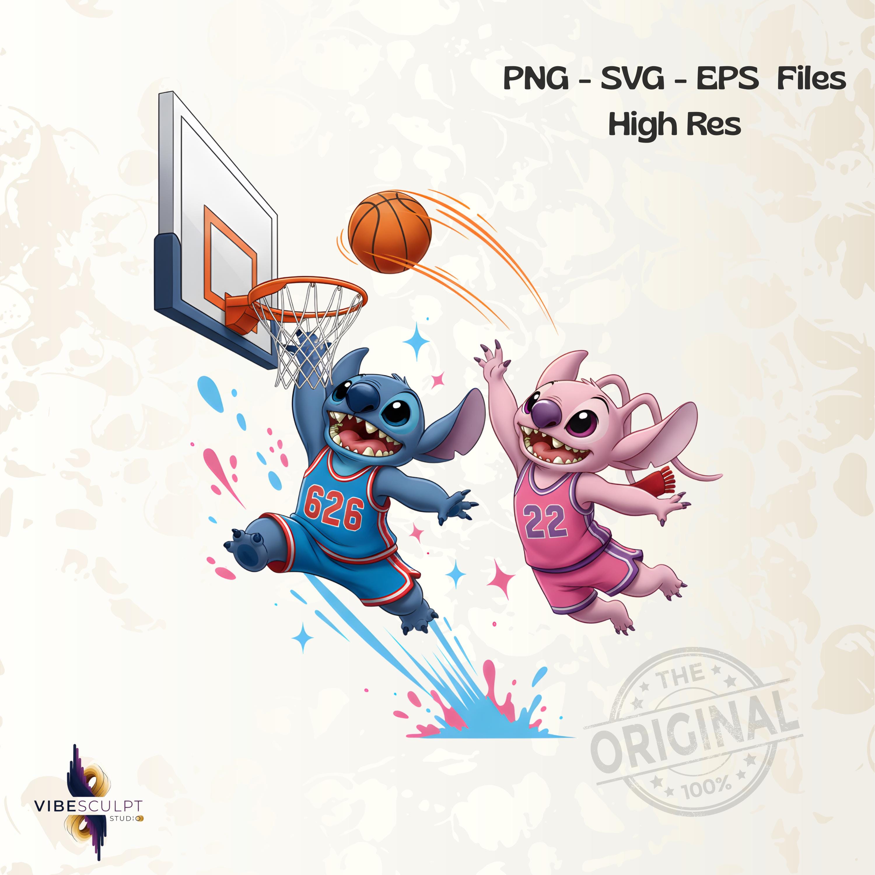 Cute Stitch Basketball PNG, Cartoon Basketball Player Sublimation, Retro Sports Mascot PNG, Basketball Shirt Design Perfect For T-shirts, sweaters, mugs, stickers, cards, tumblers, and all holiday crafting