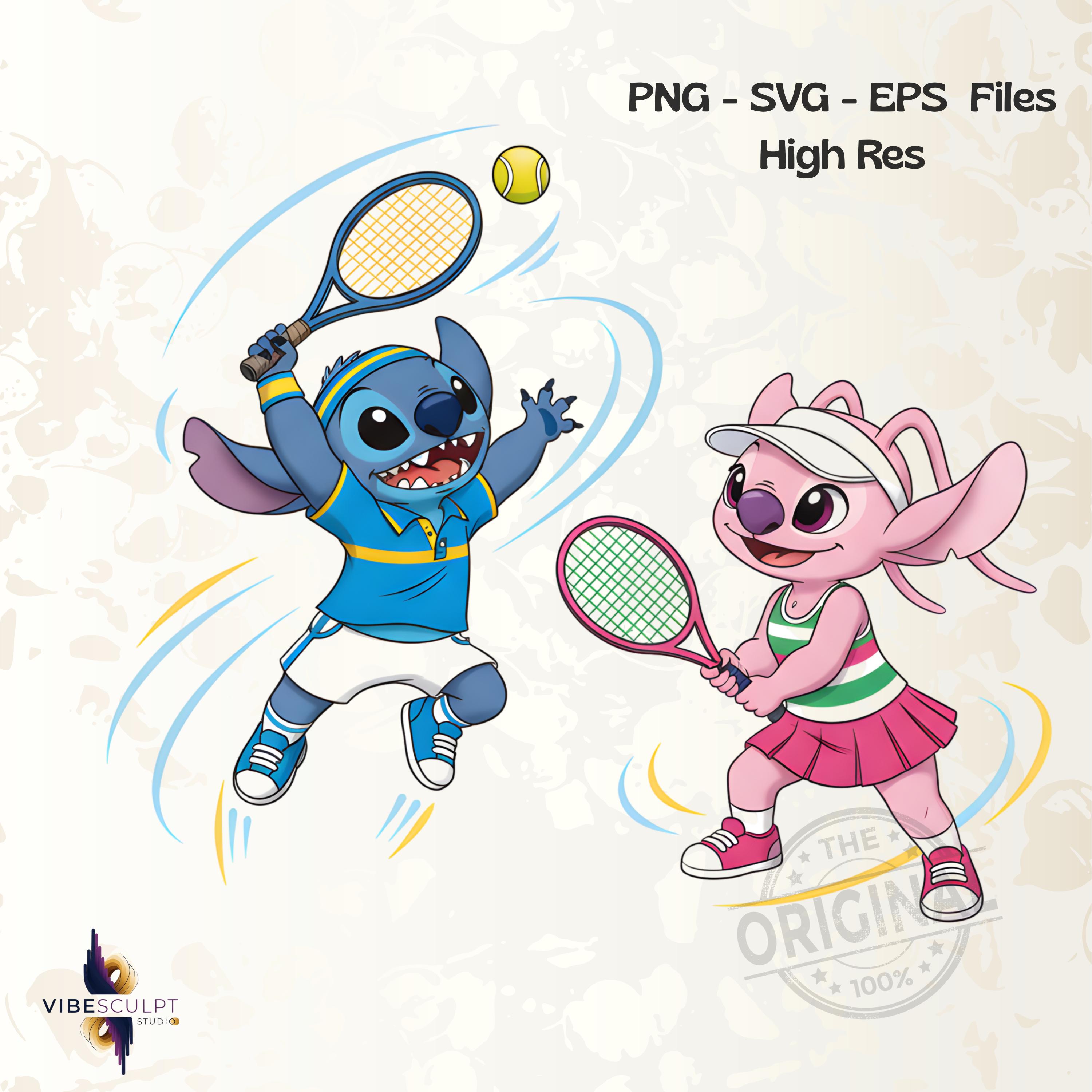 Cute Stitch Tennis PNG, Retro Stitch PNG, Cartoon Tennis Player Sublimation, Sport Mascot PNG, Retro Tennis Shirt Design, Digital Download Perfect For T-shirts, sweaters, mugs, stickers, cards, tumblers, and all holiday crafting
