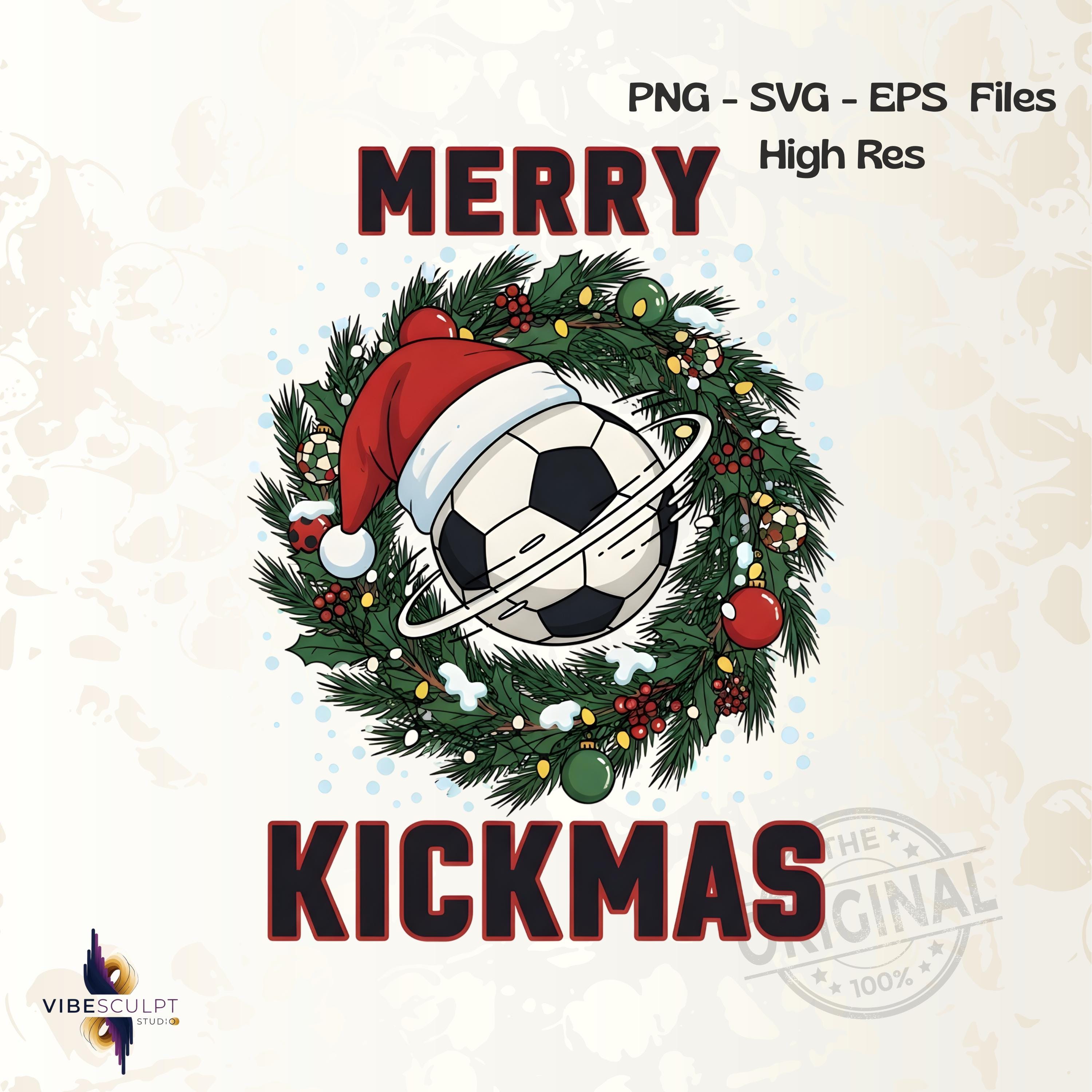Merry Kickmas Soccer PNG SVG EPS | Christmas Soccer Sublimation | Holiday Football Digital Download | Funny Sports Xmas Clipart Perfect For T-shirts, sweaters, mugs, stickers, cards, winter classroom décor, teacher apparel, cozy sweaters, festive crafts, and inspirational seasonal projects, tumblers, and all holiday crafting