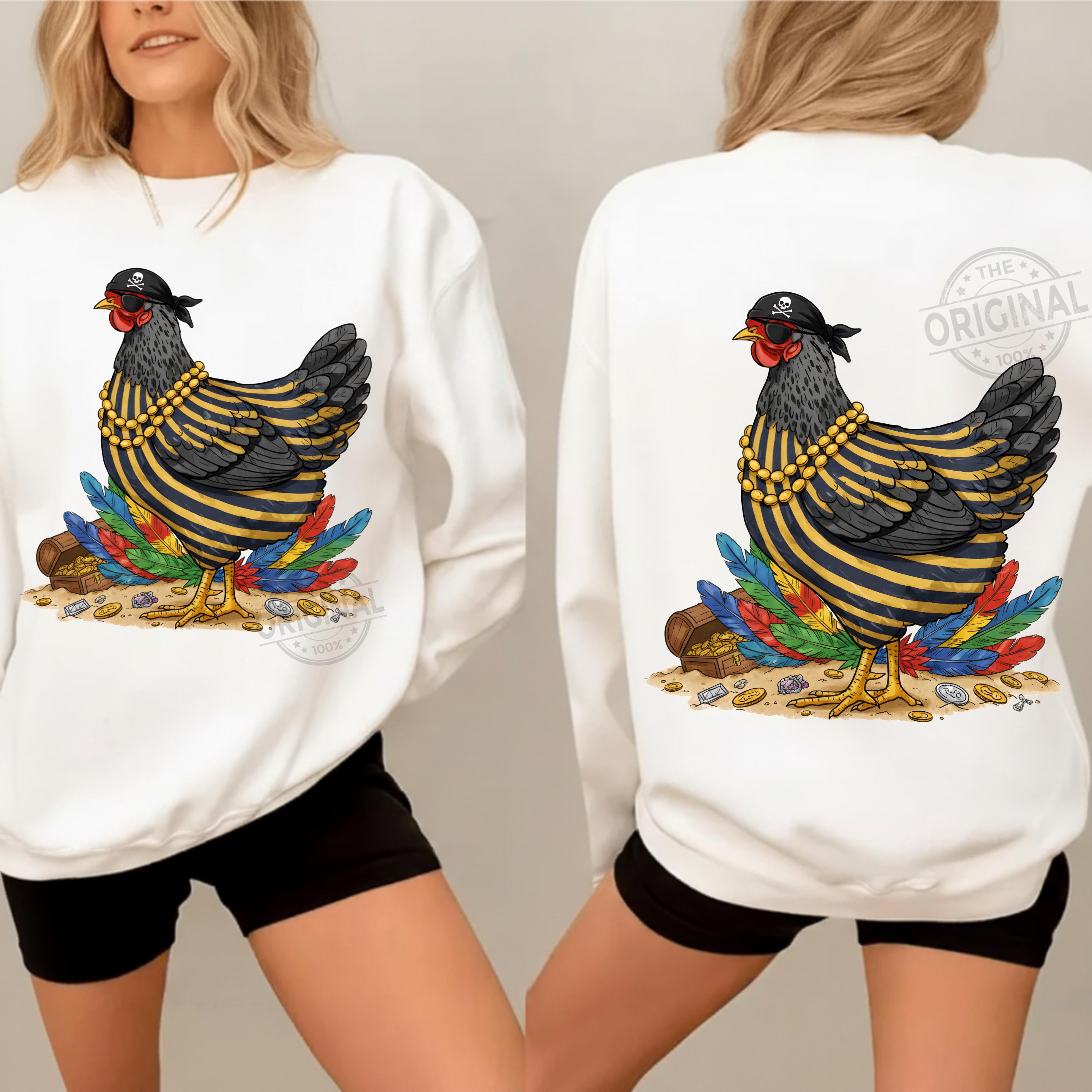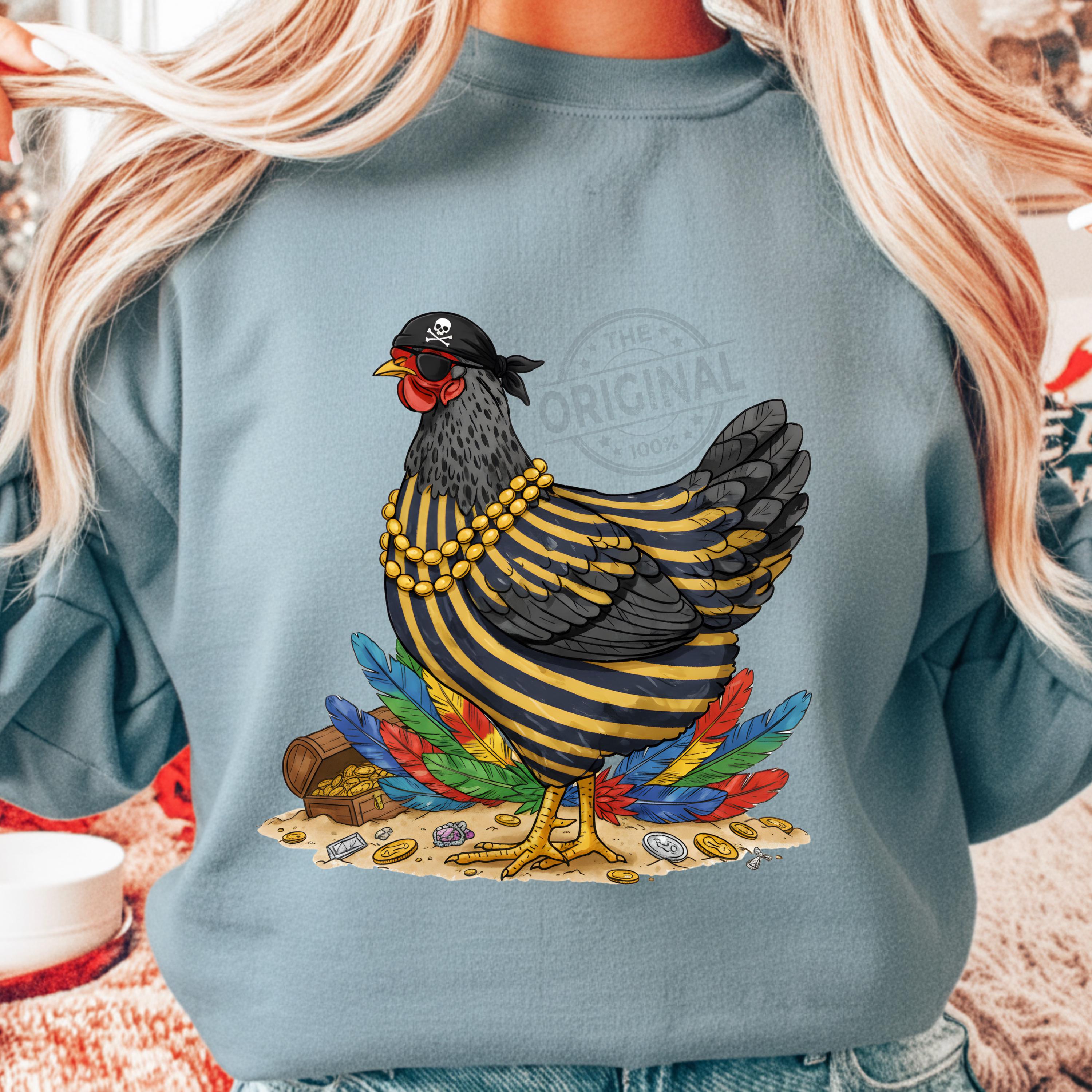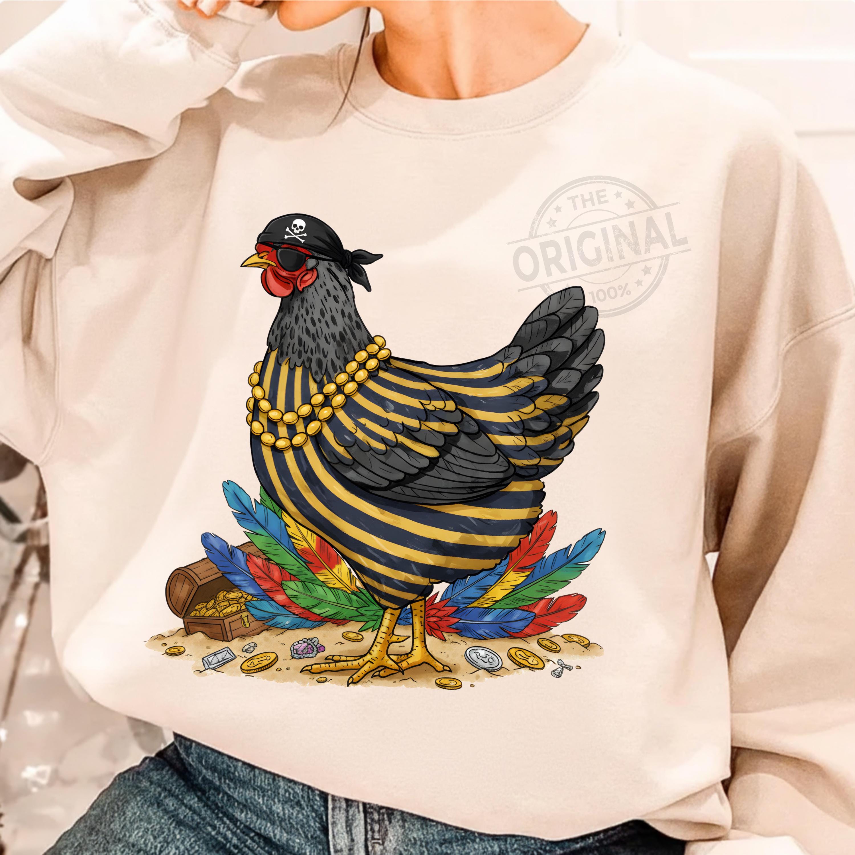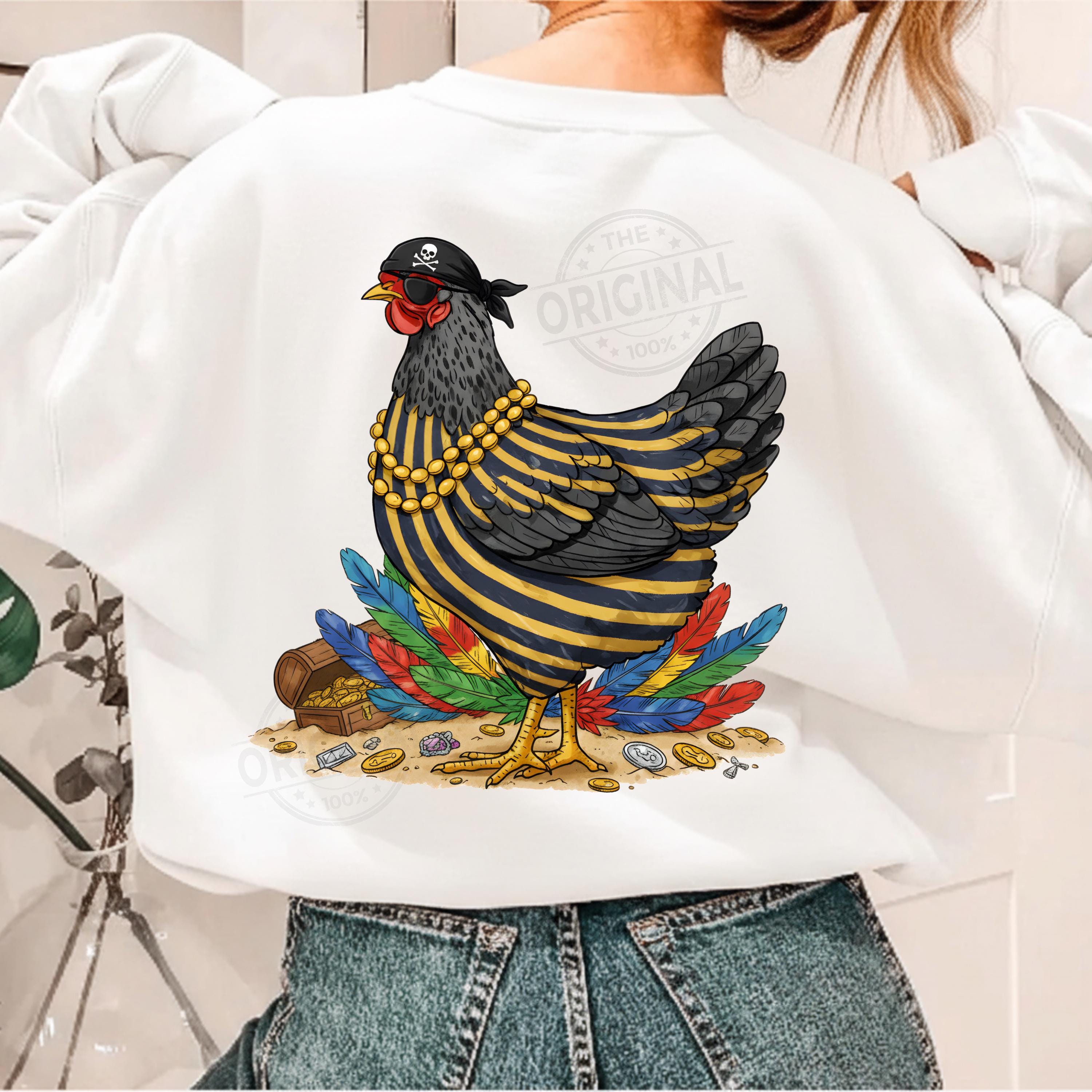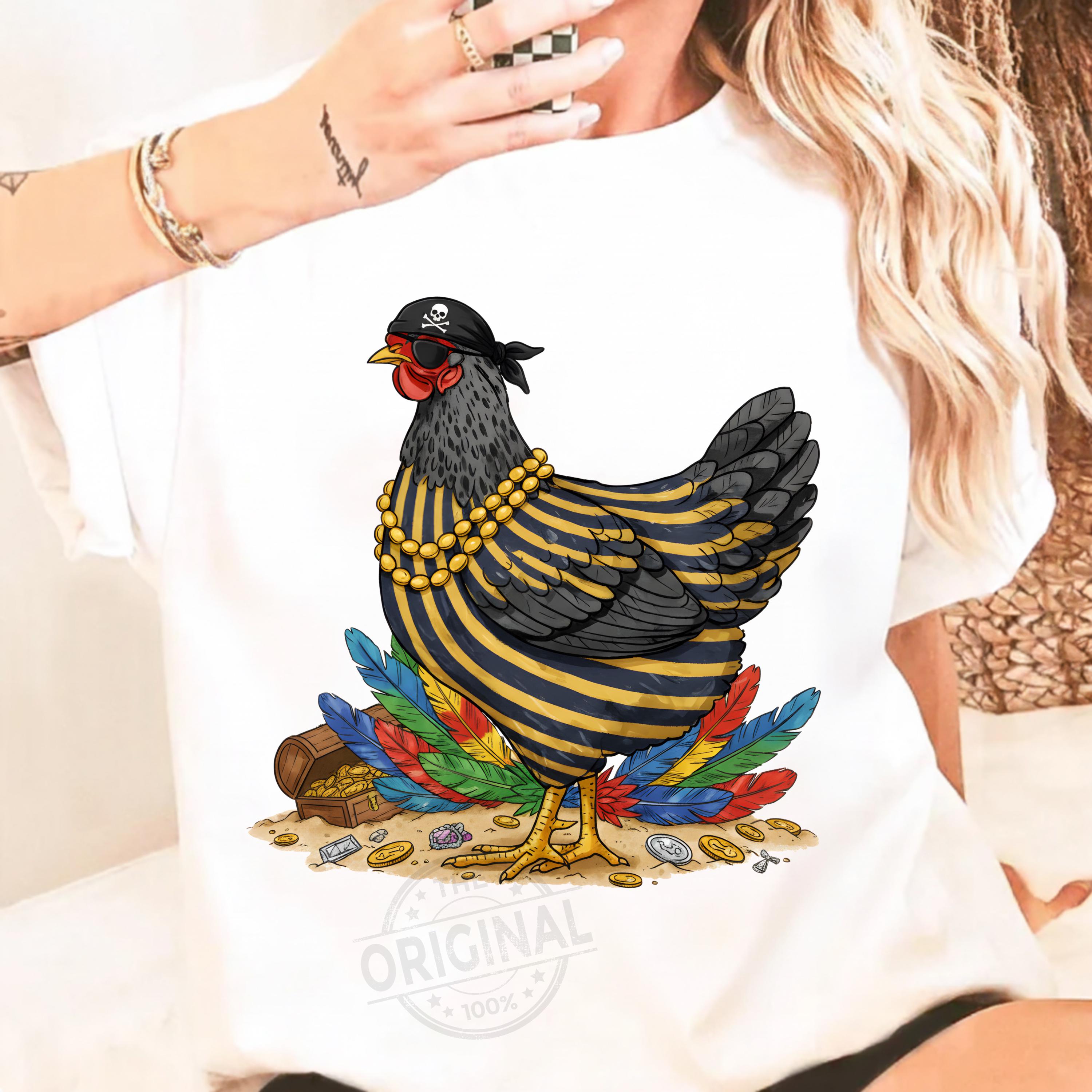 Add warmth and positivity to your holiday projects with this Funny Pirate Chicken PNG, Funny Chicken Sublimation Design, Colorful Feather Hen PNG, Chicken Lover Gift, Farm Humor Shirt PNG Perfect For T-shirts, sweaters, mugs, stickers, cards, winter classroom décor, teacher apparel, cozy sweaters, festive crafts, and inspirational seasonal projects, tumblers, and all holiday crafting