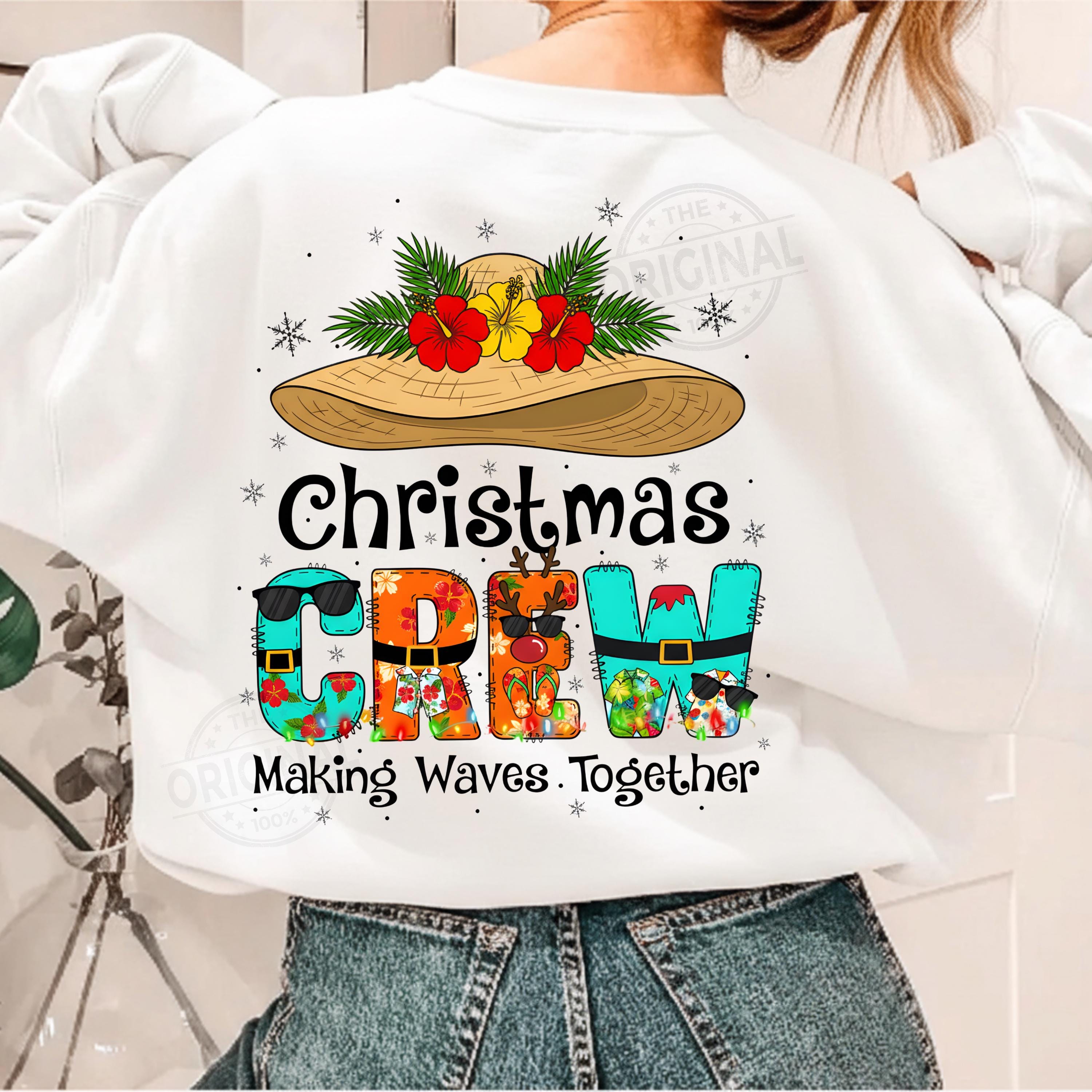Christmas Crew PNG Tropical Beach Matching Family Design Women Gift Girl Gift Santa Reindeer Elf Holiday Sublimation Design Perfect For T-shirts, sweaters, mugs, stickers, cards, winter classroom décor, teacher apparel, cozy sweaters, festive crafts, and inspirational seasonal projects, tumblers, and all holiday crafting