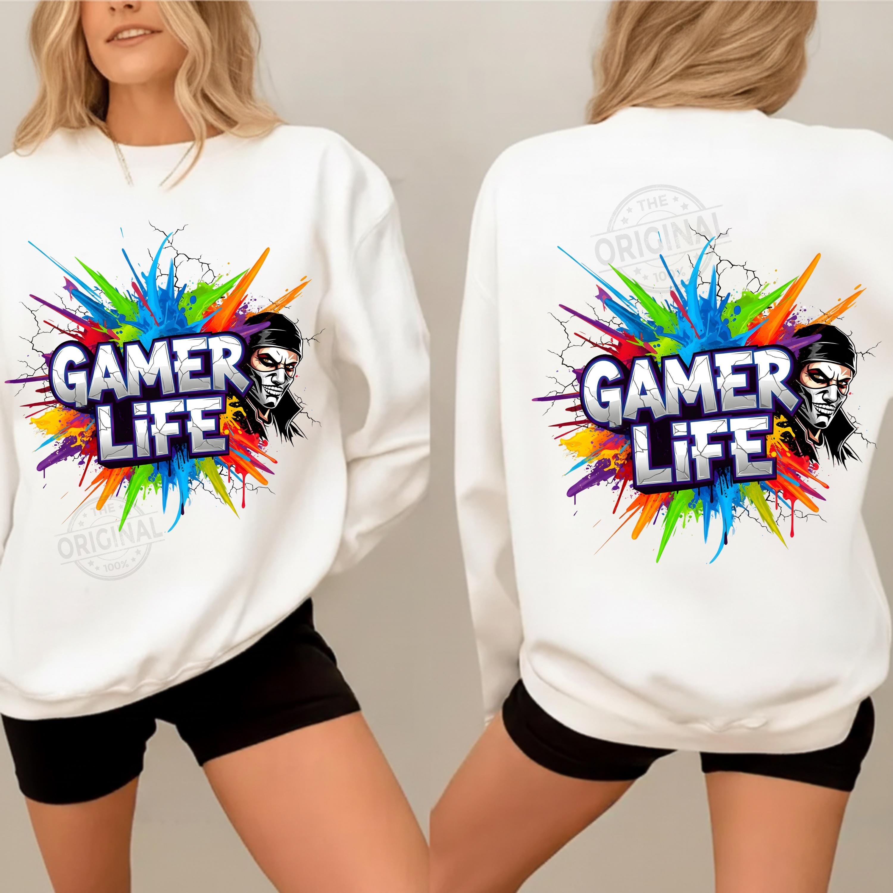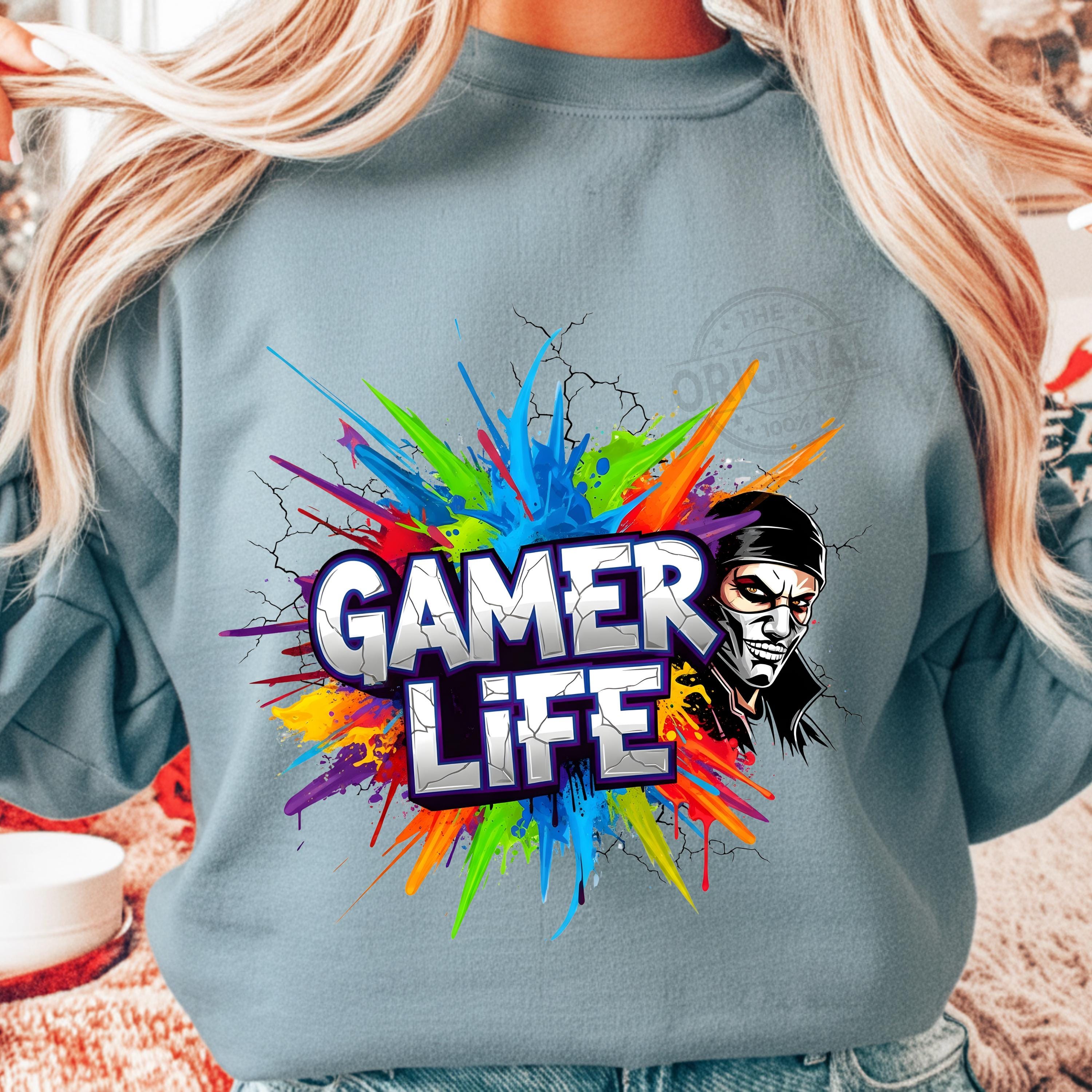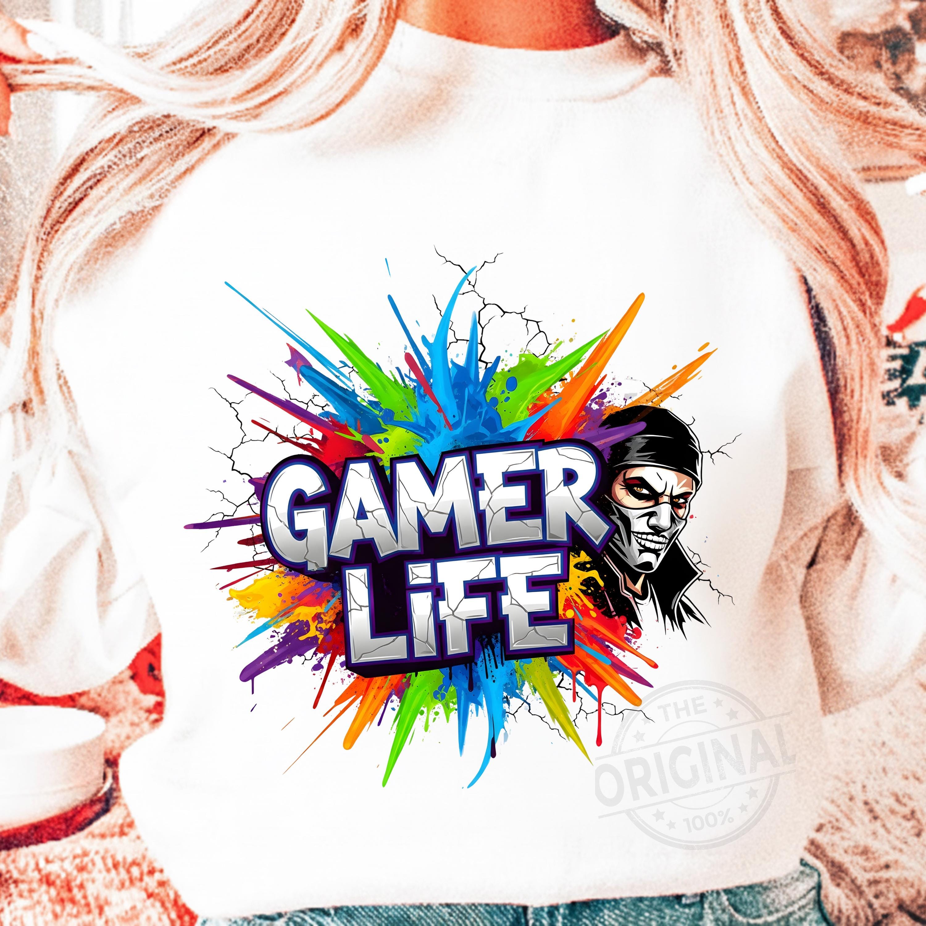 Gamer Life PNG Design, Neon Gamer Graffiti Clipart, Hoodie Player Controller Art, Gaming Shirt Sublimation File