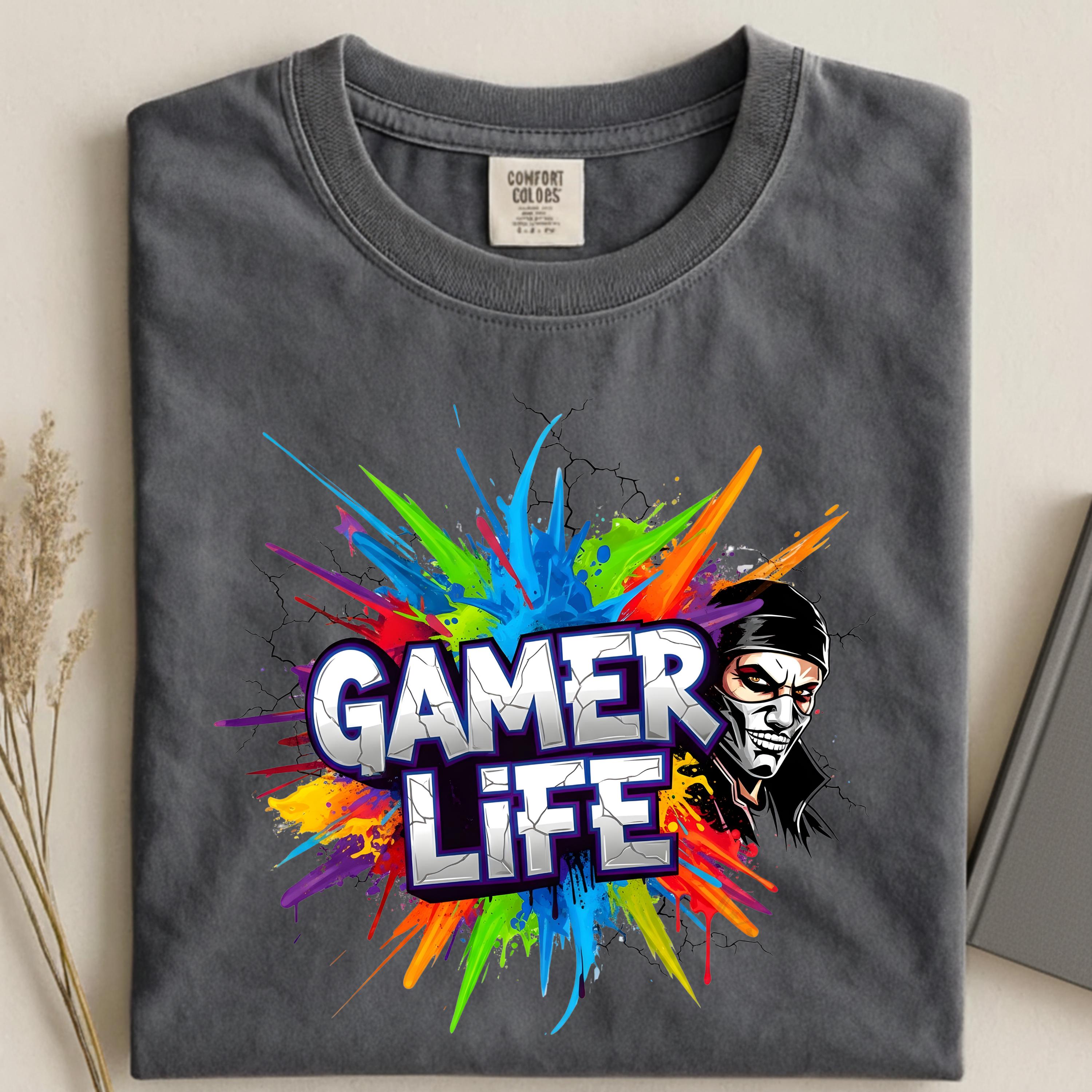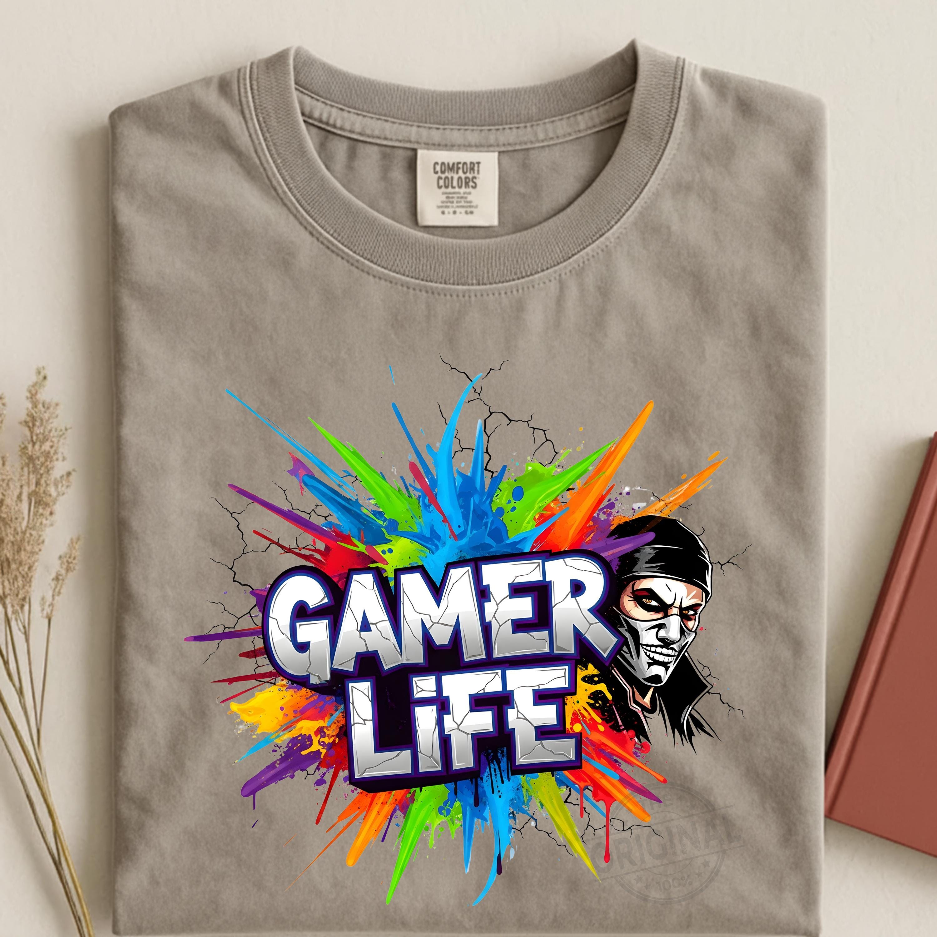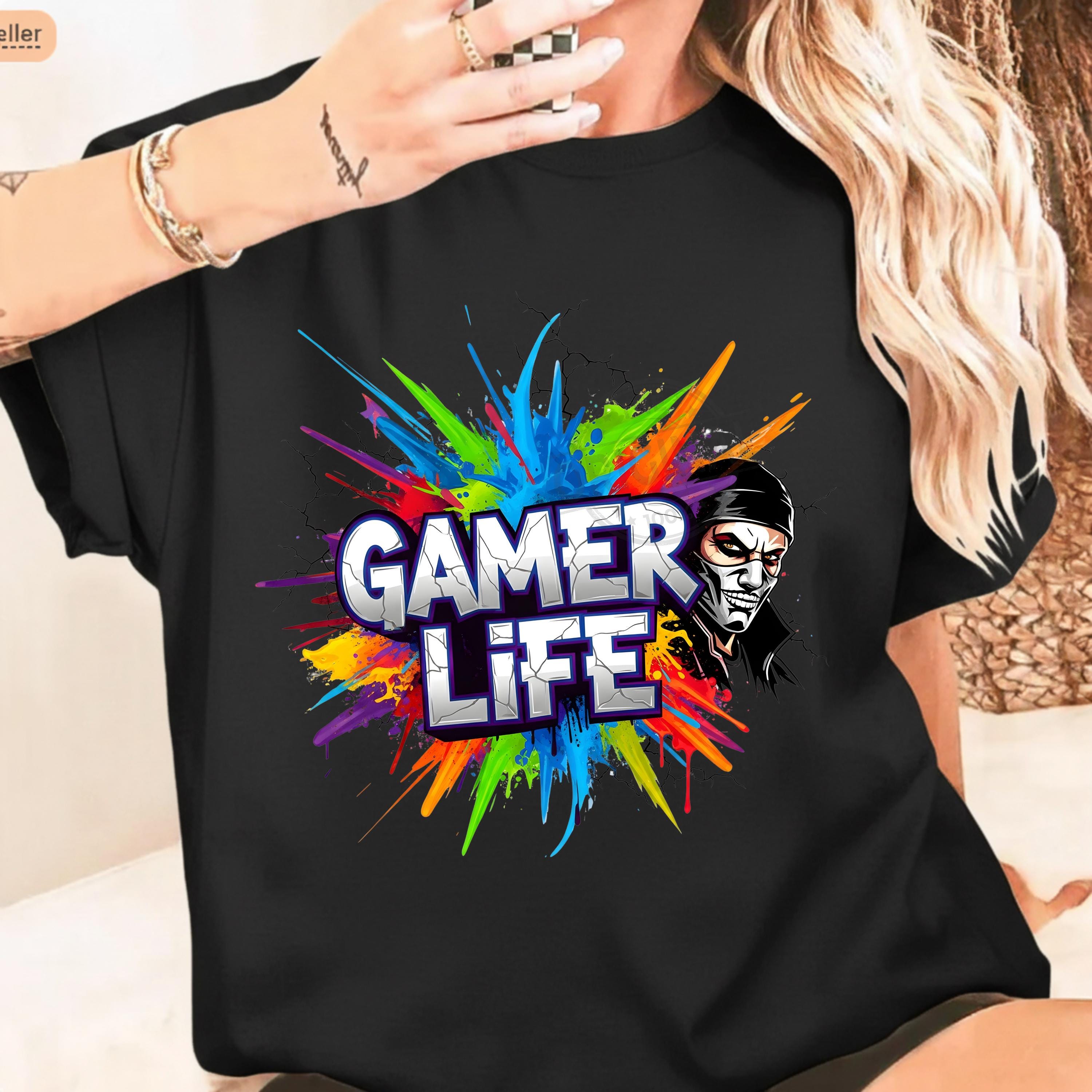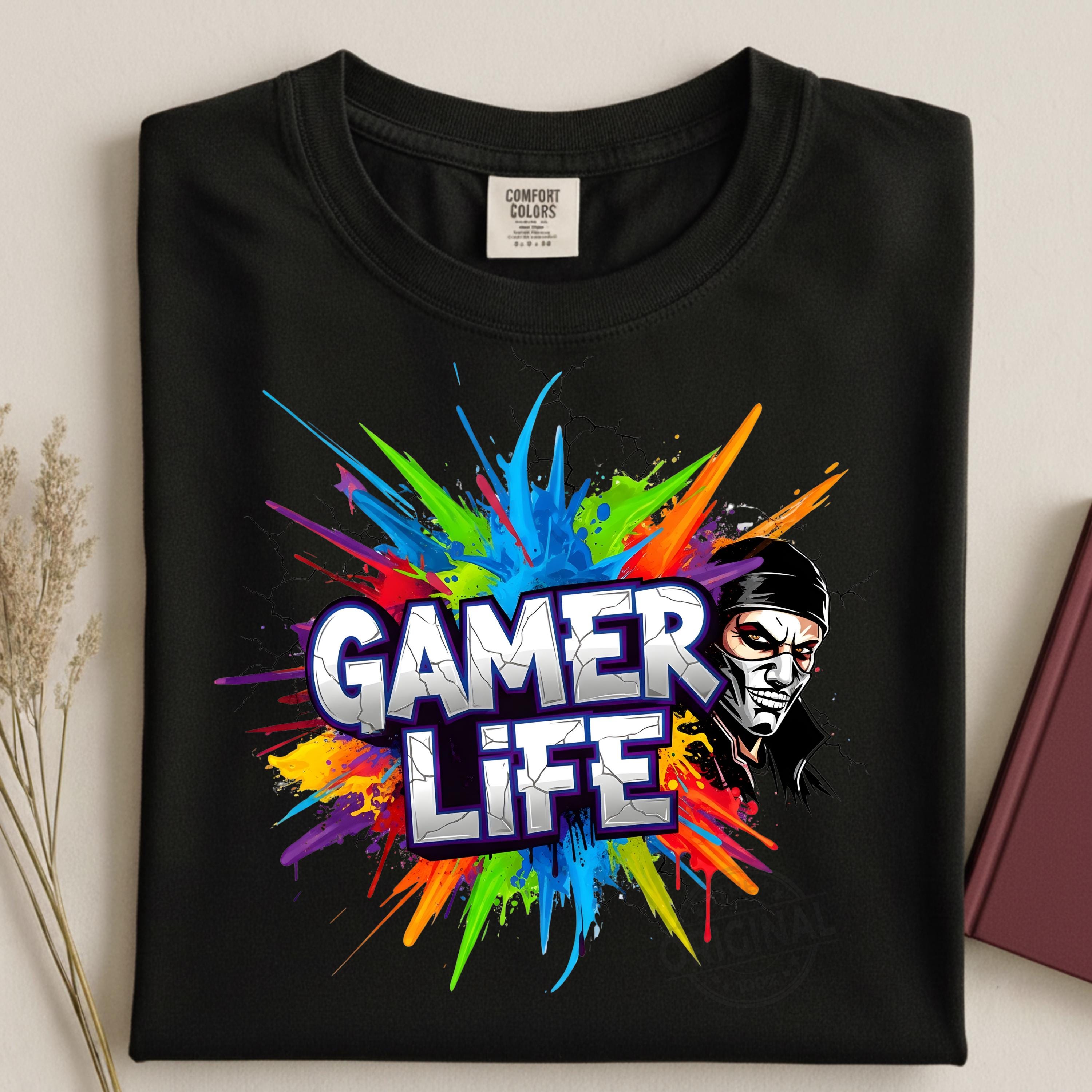 Gamer Life PNG Design, Neon Gamer Graffiti Clipart, Hoodie Player Controller Art, Gaming Shirt Sublimation File