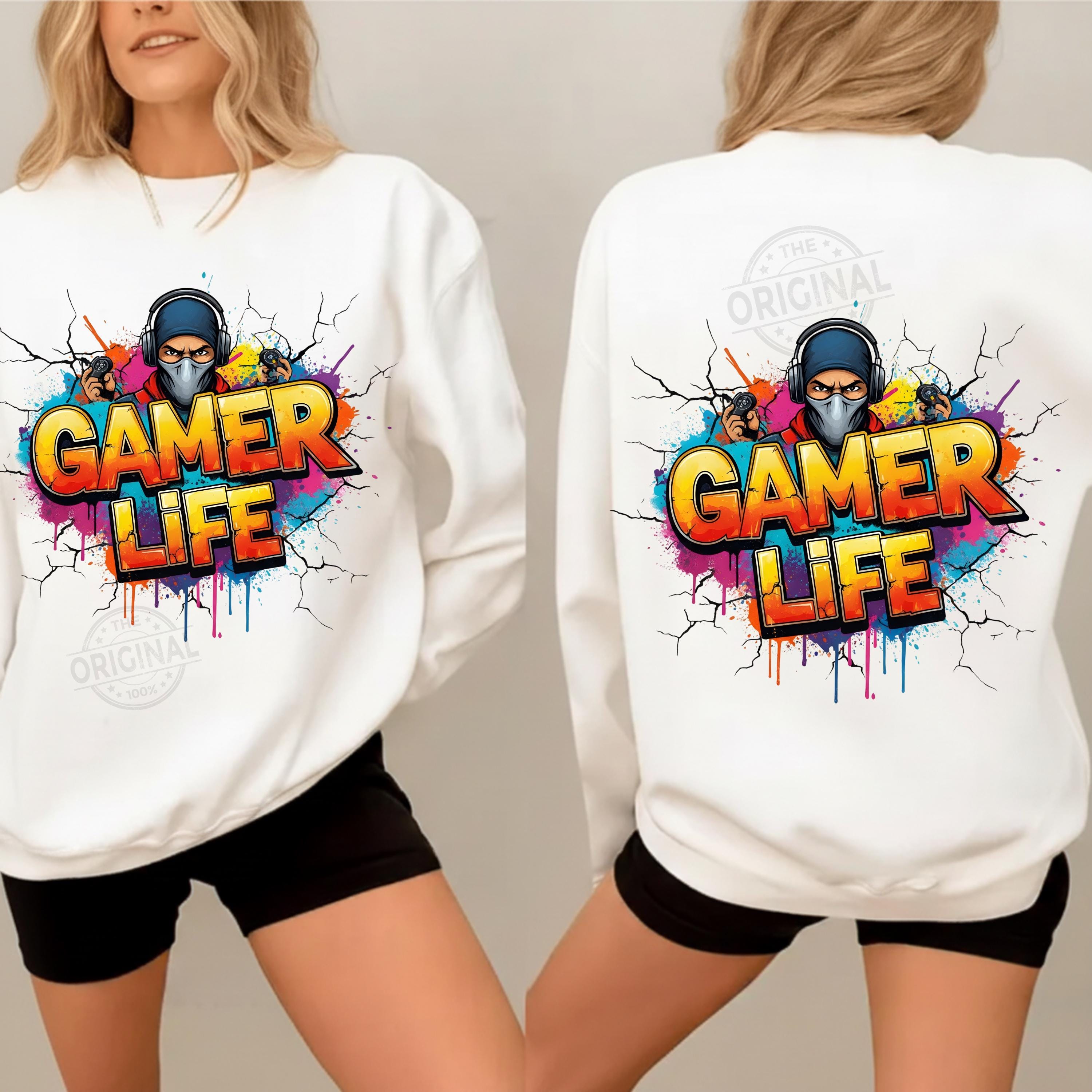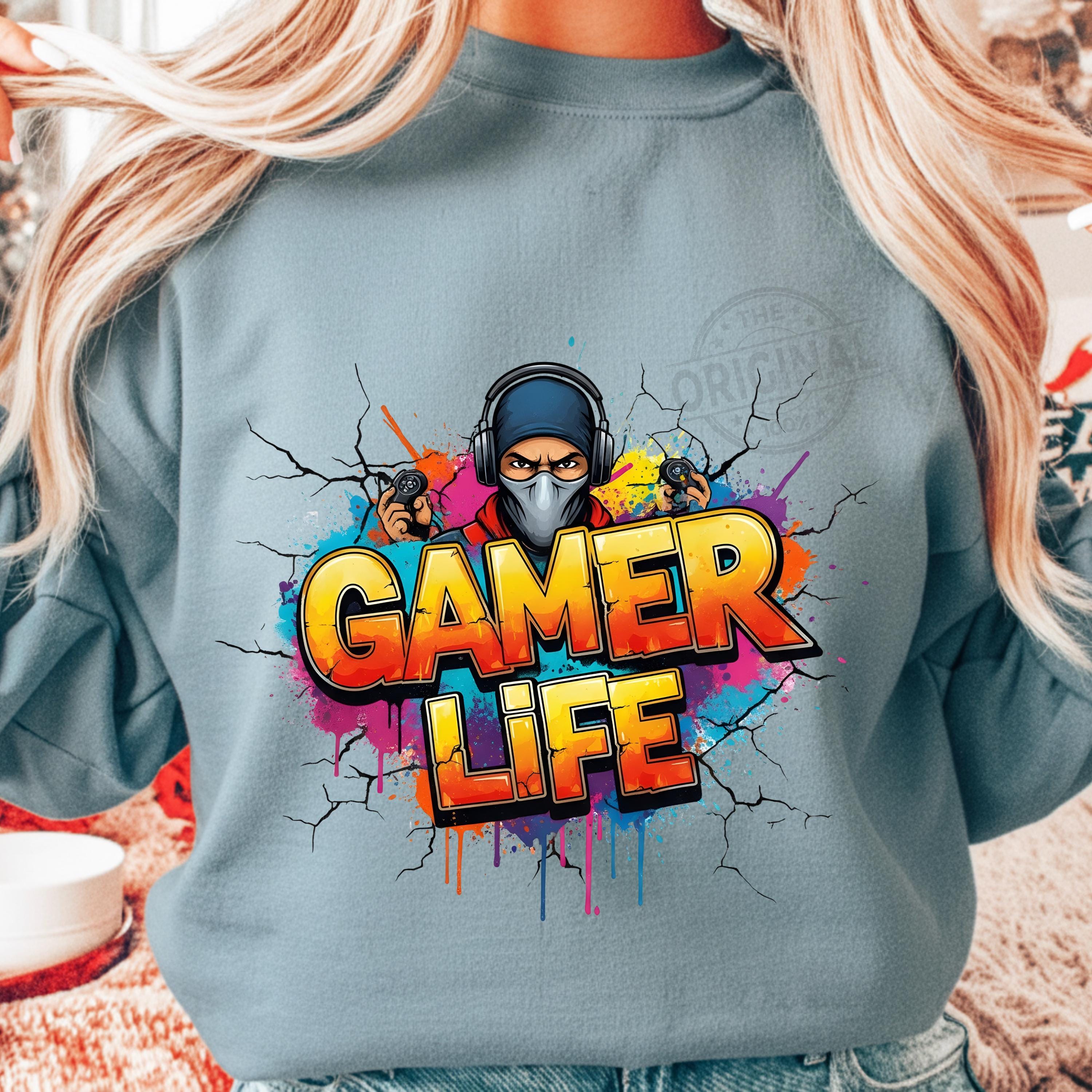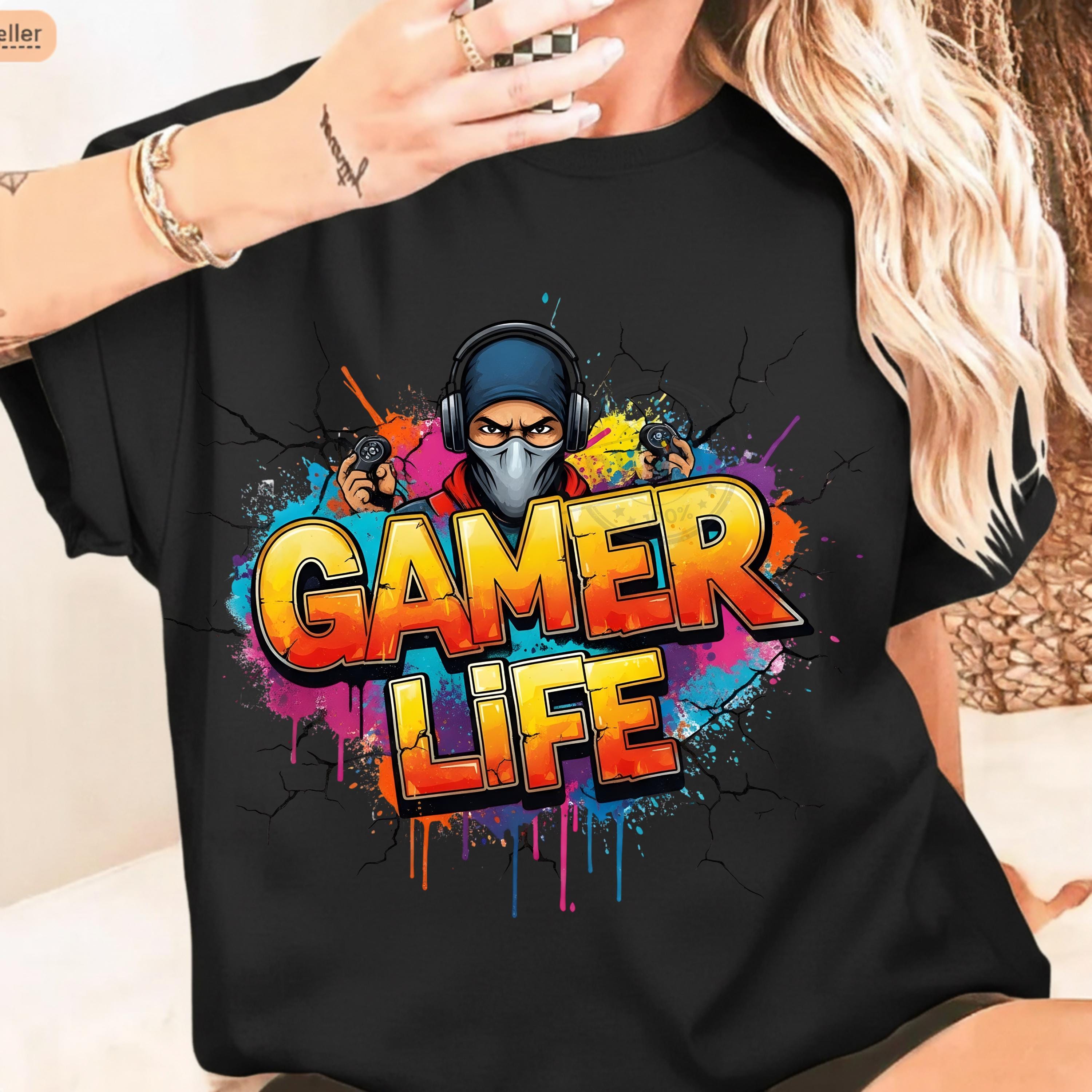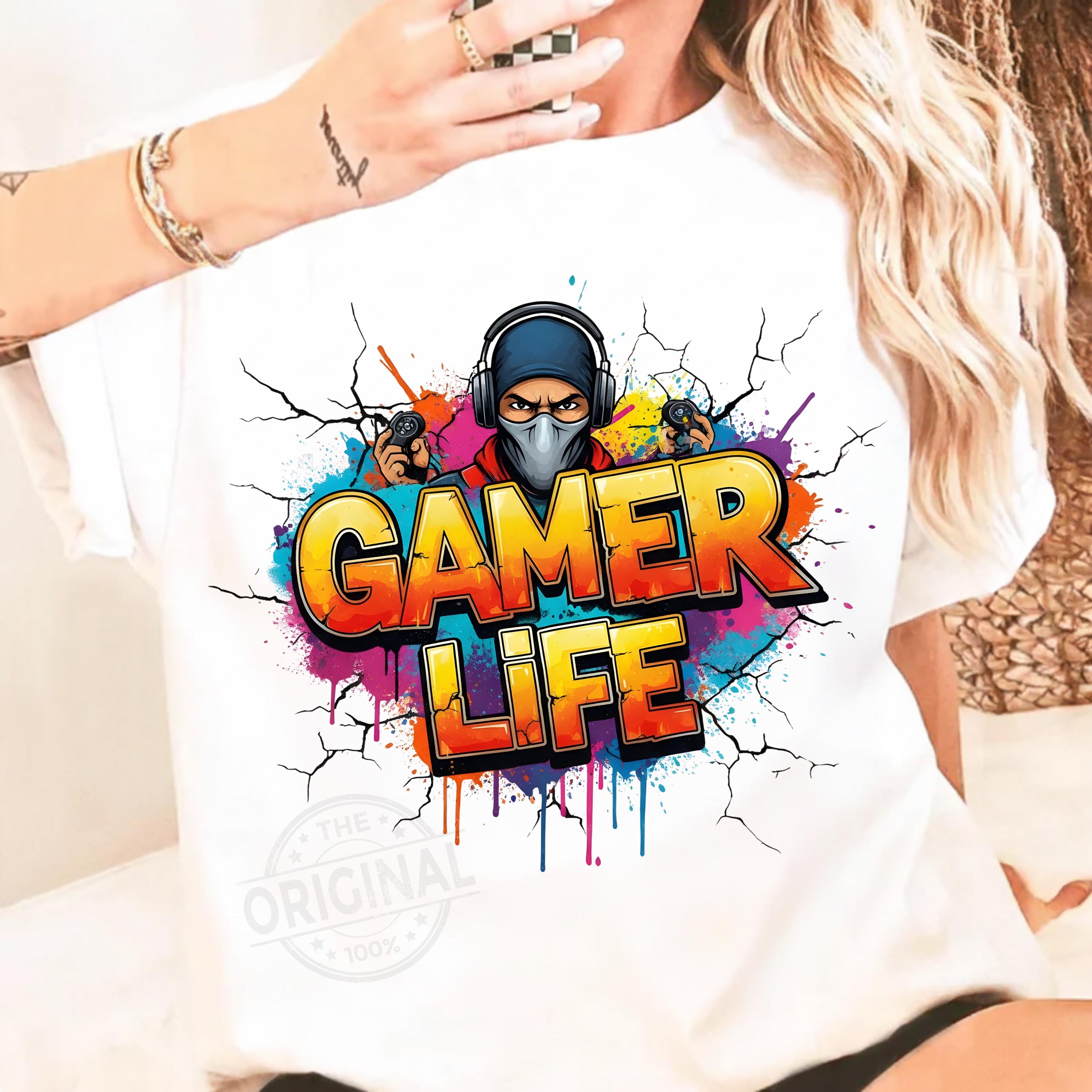 Gamer Life T Shirt Design PNG, Gaming Clipart, Neon Graffiti Gamer, Hooded Controller Art, Sublimation PNG Download