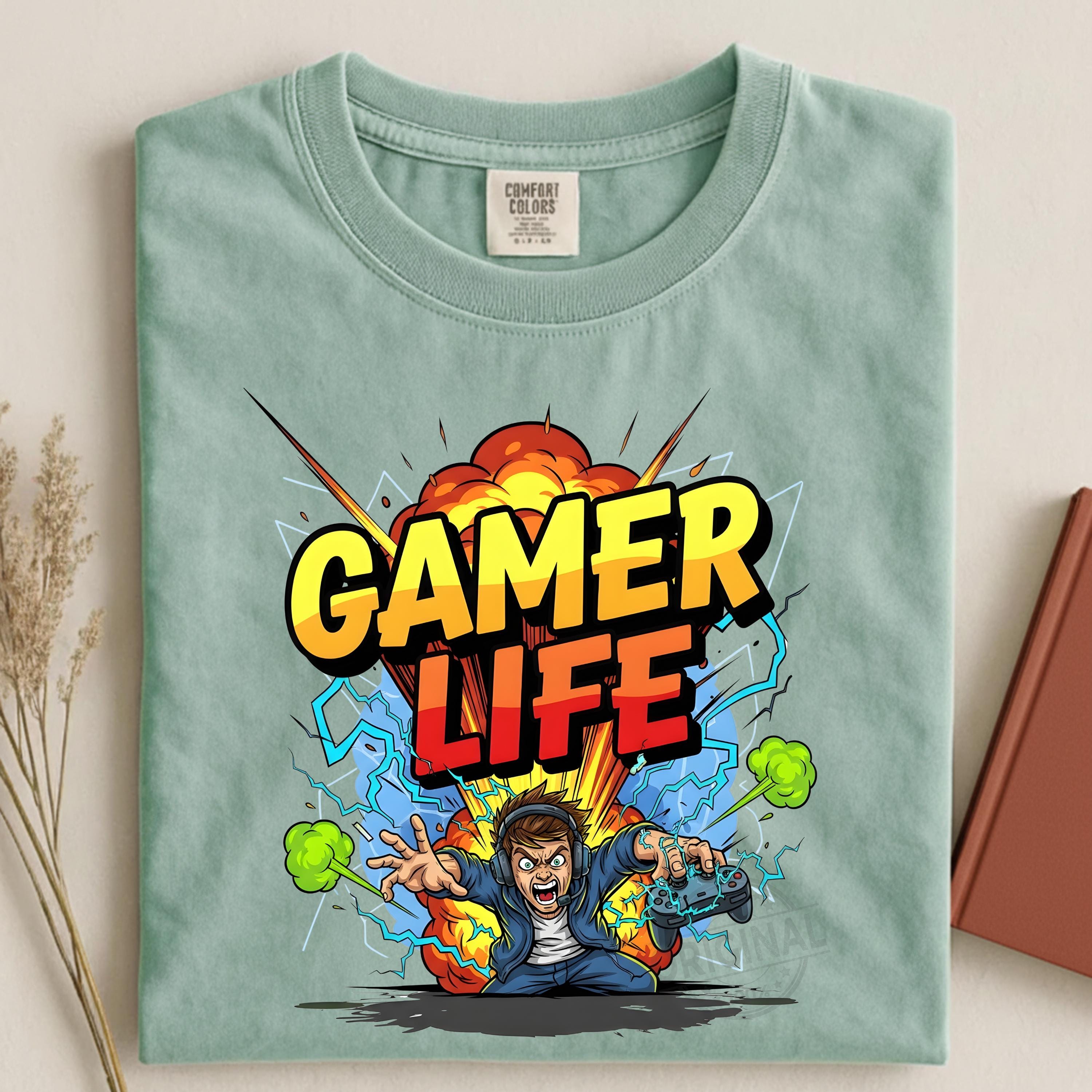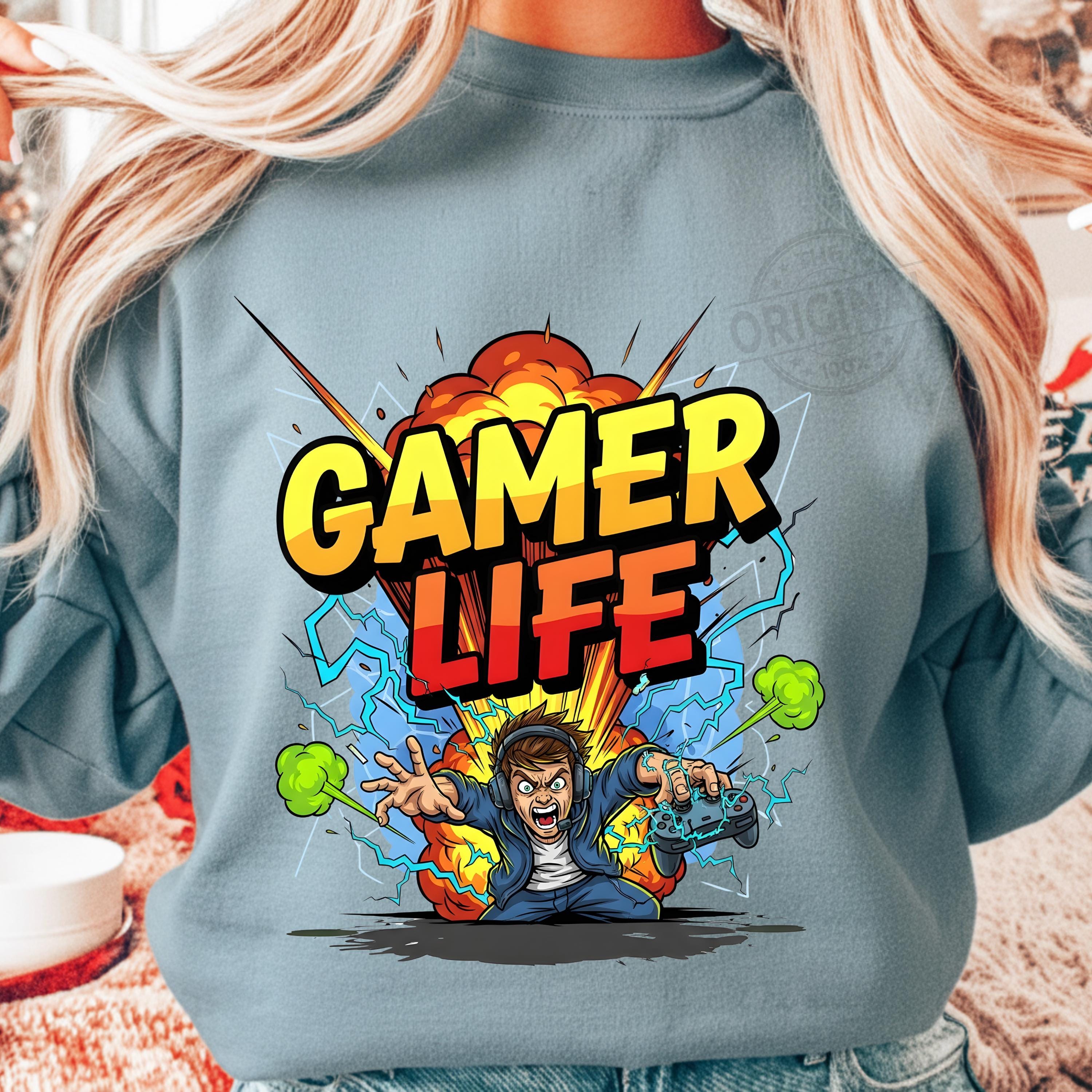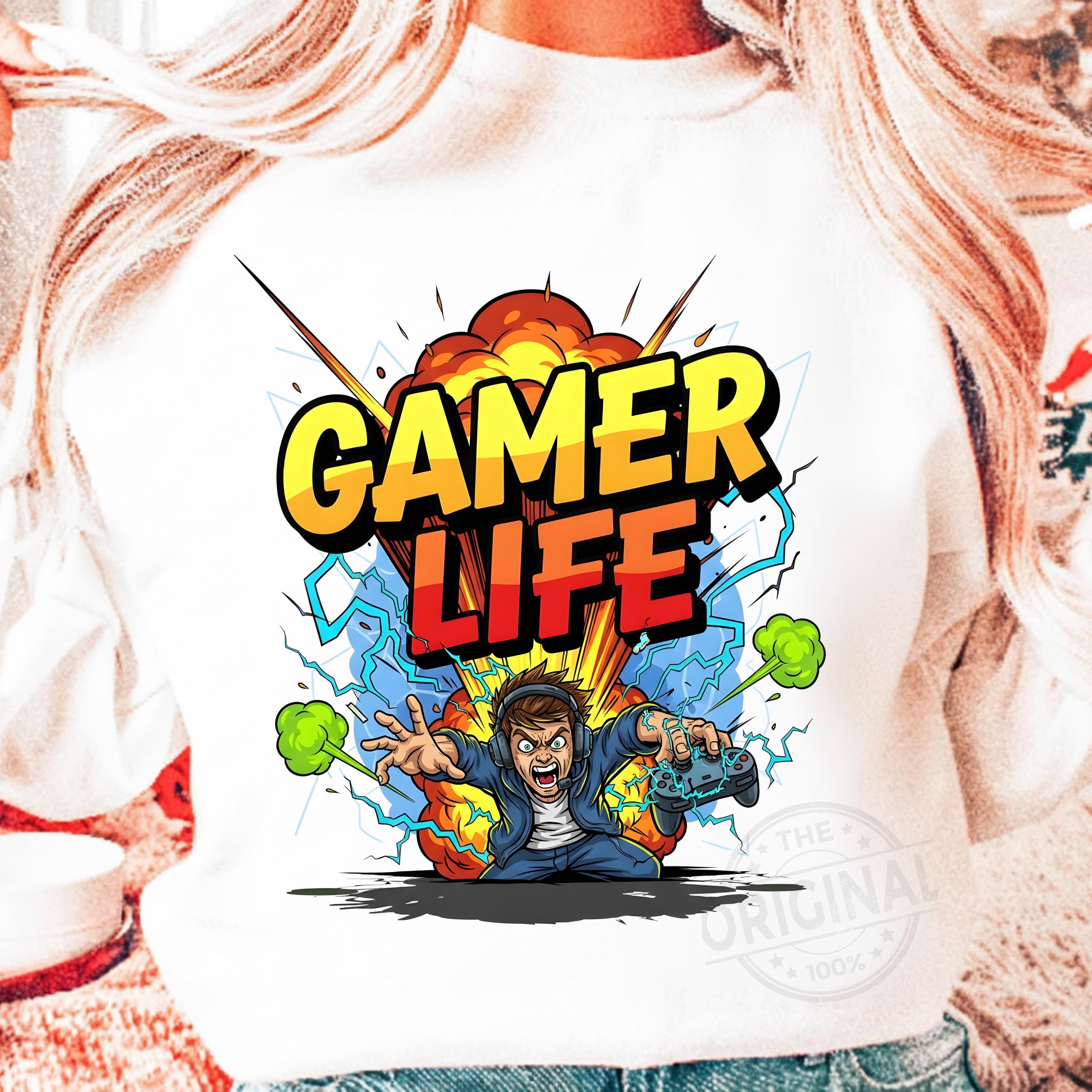 Gaming T Shirt PNG, Gamer Life Neon Graffiti Design, Hoodie Controller Art