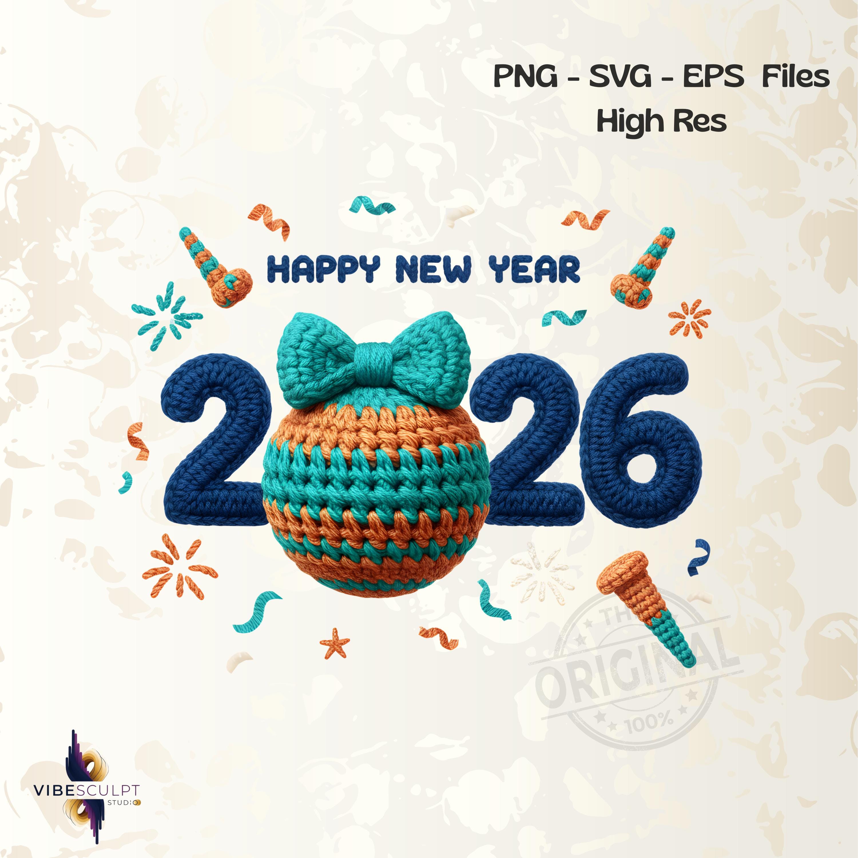 Happy New Year 2026 PNG SVG EPS, Crochet Yarn Christmas png design, New Year Party, Christmas Latch Hook png, Christmas new year