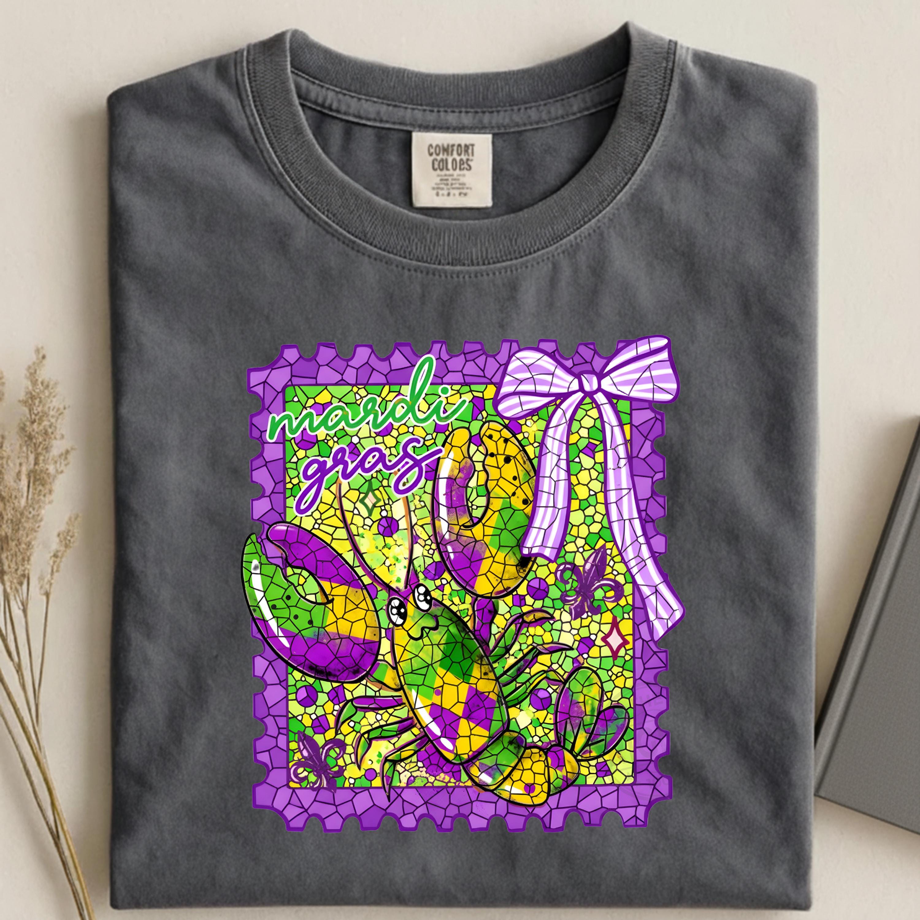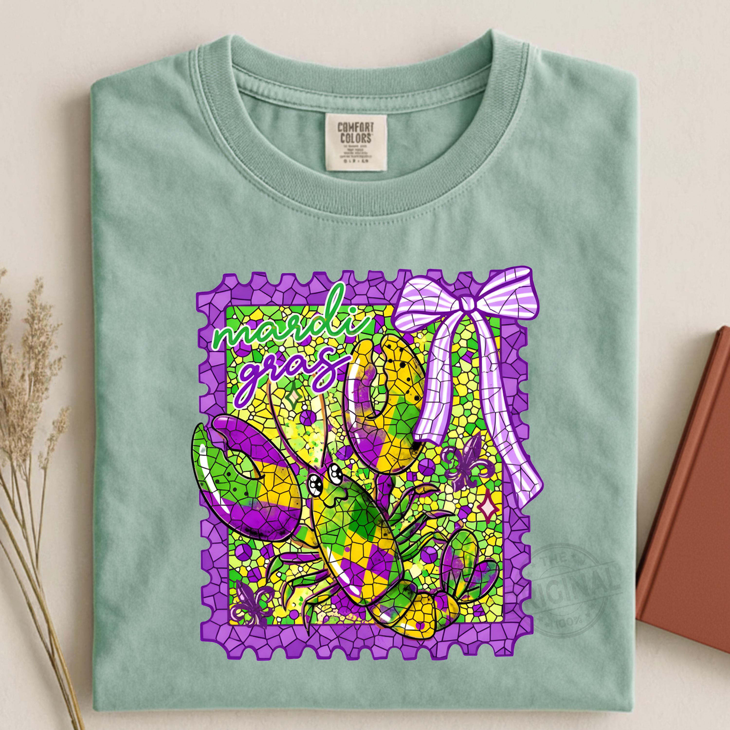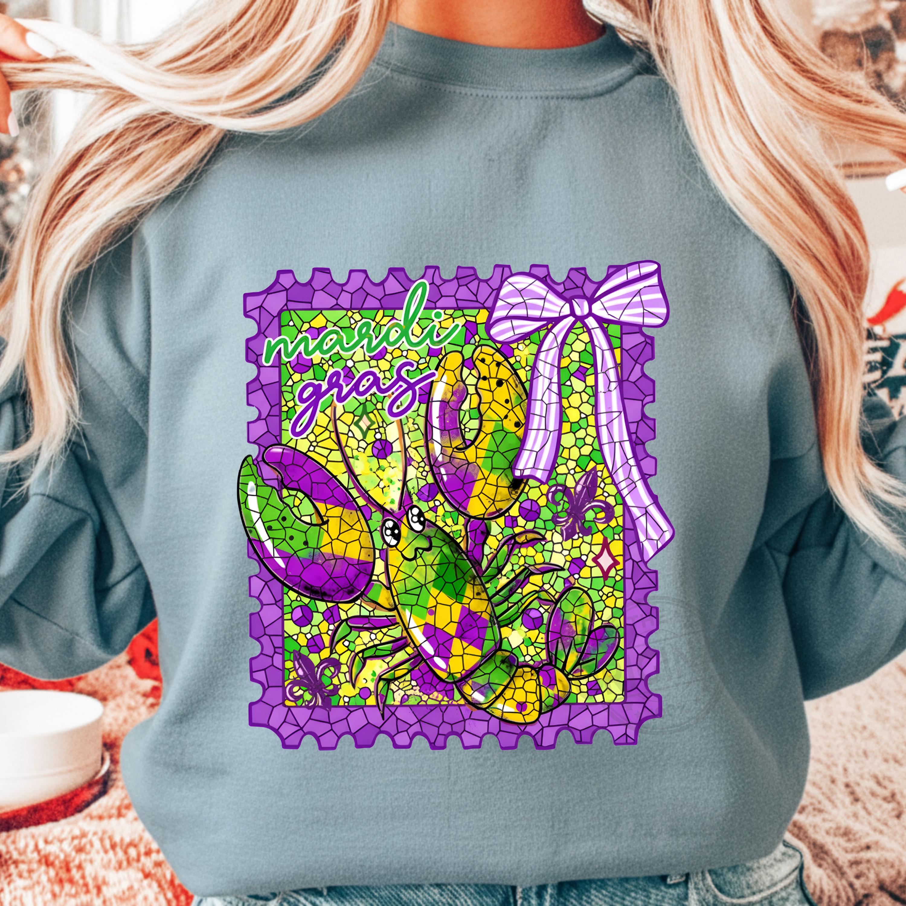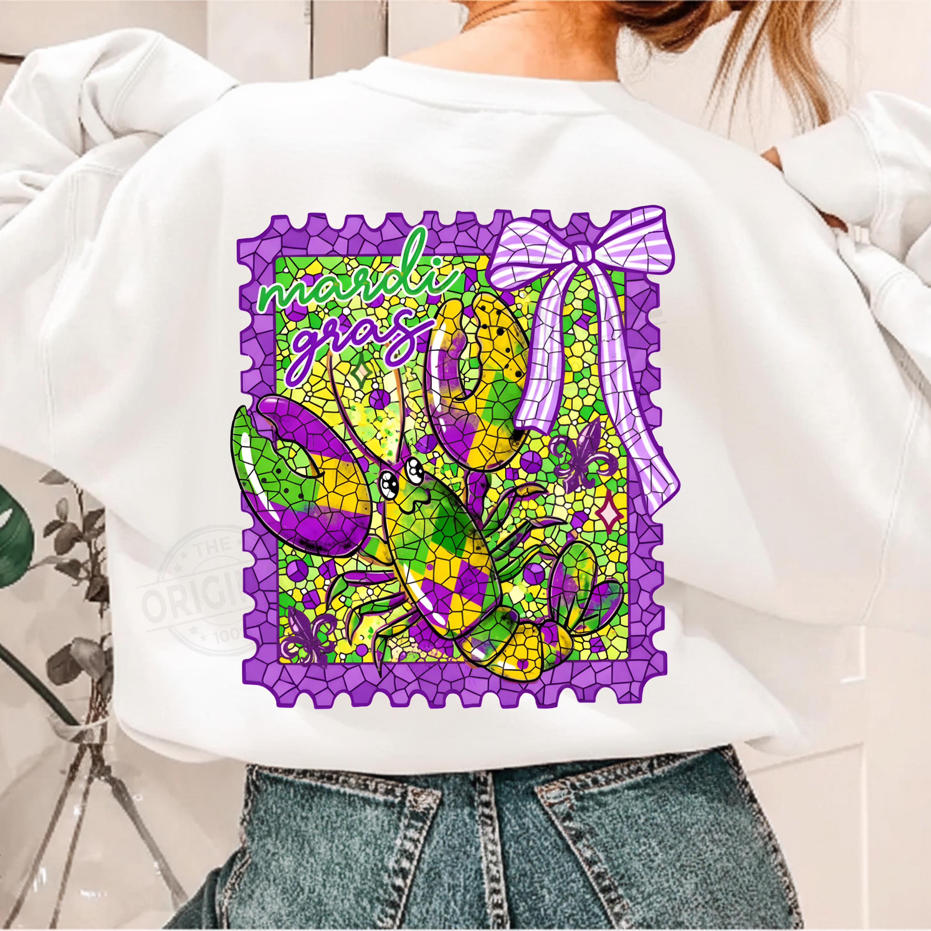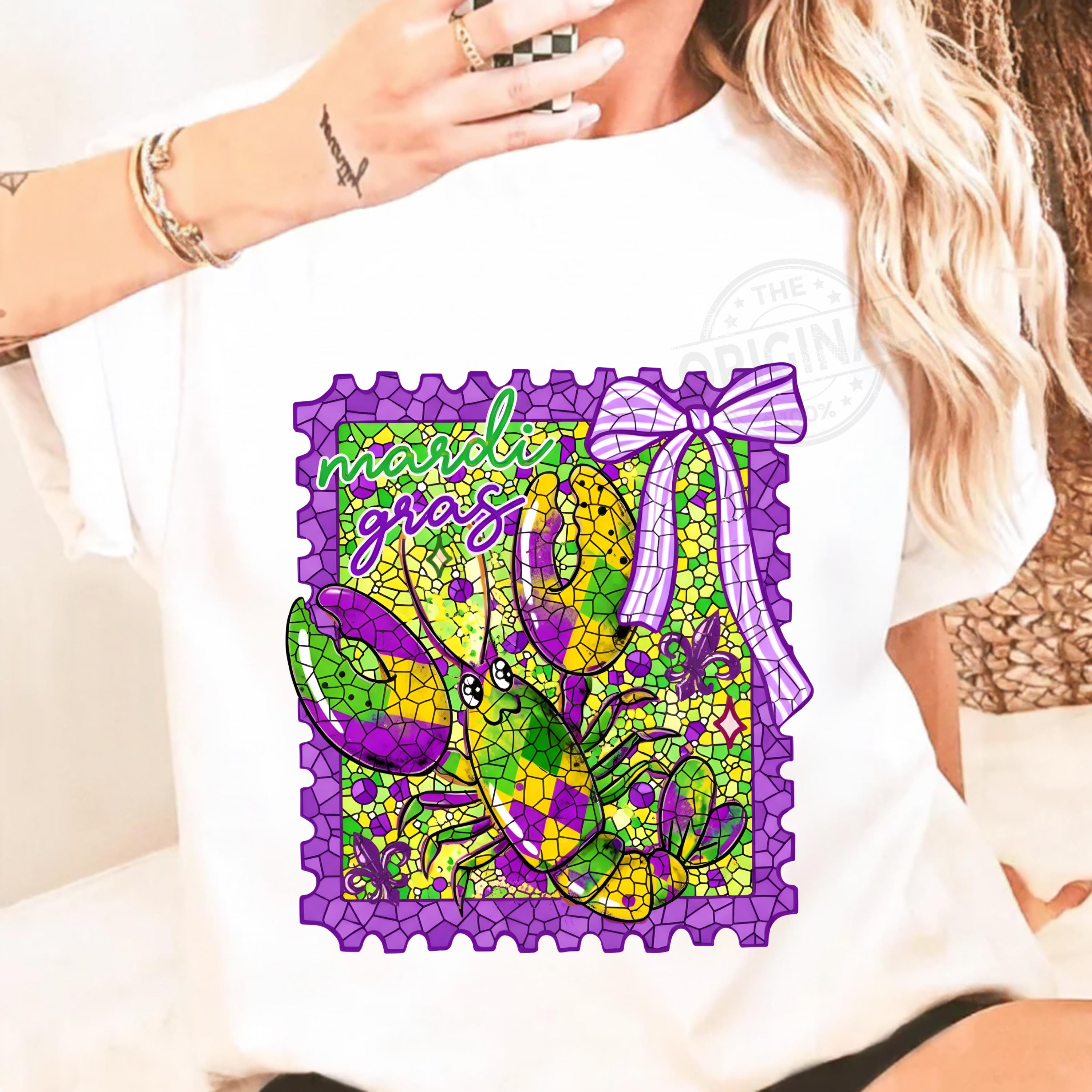 Mardi Gras Preppy Stamp PNG SVG with Bow and Crawfish, Louisiana Carnival Digital Design, Mardi Gras 2026