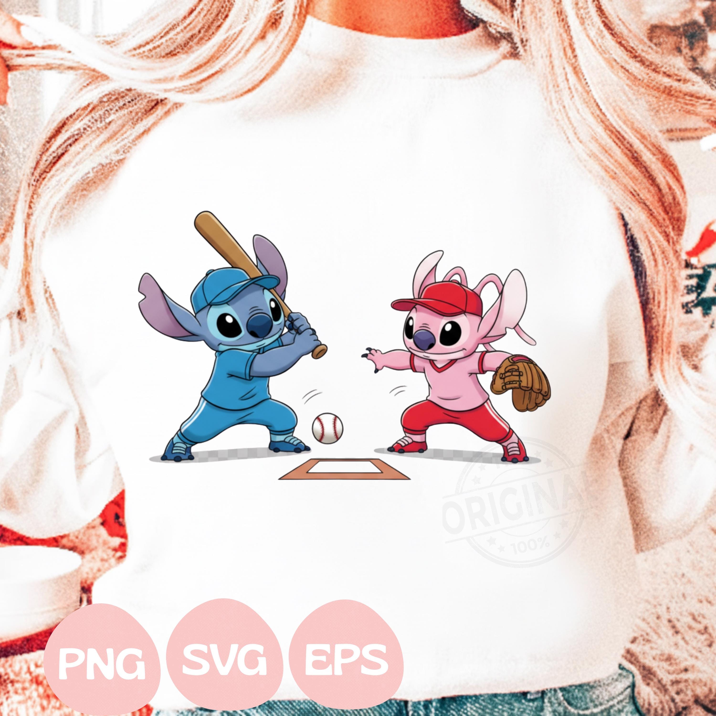 Stitch baseball PNG, Cute Stitch baseball Clipart, Kawaii Stitch Sport PNG, Cartoon baseball Design Perfect For T-shirts, sweaters, mugs, stickers, cards, tumblers, and all holiday crafting