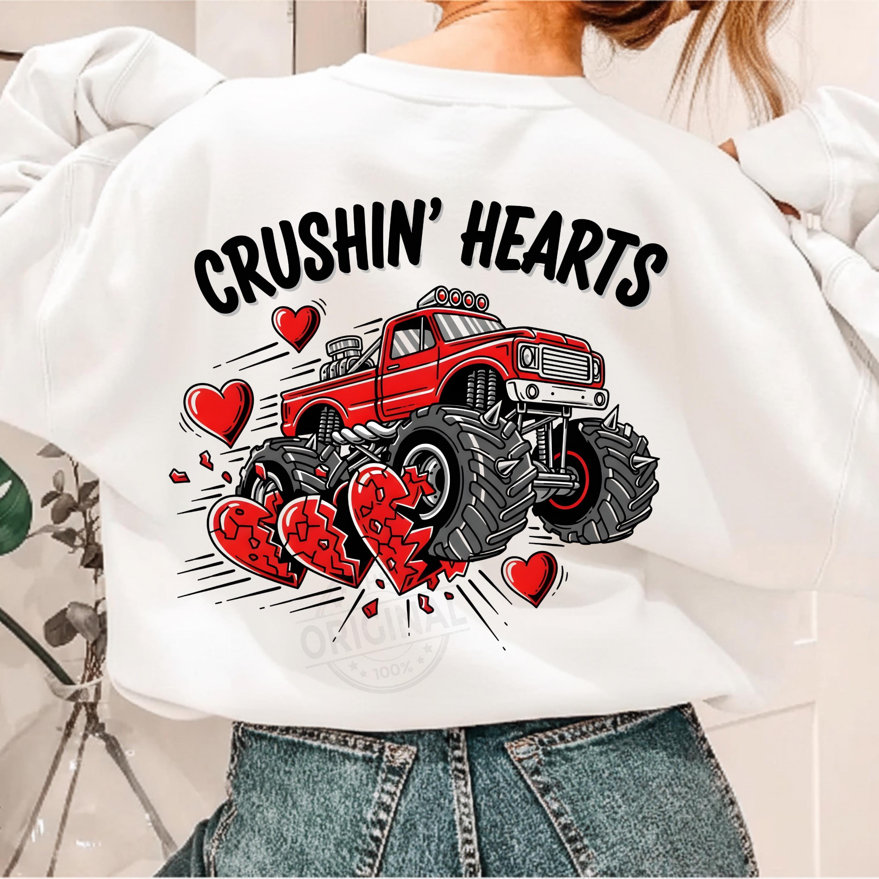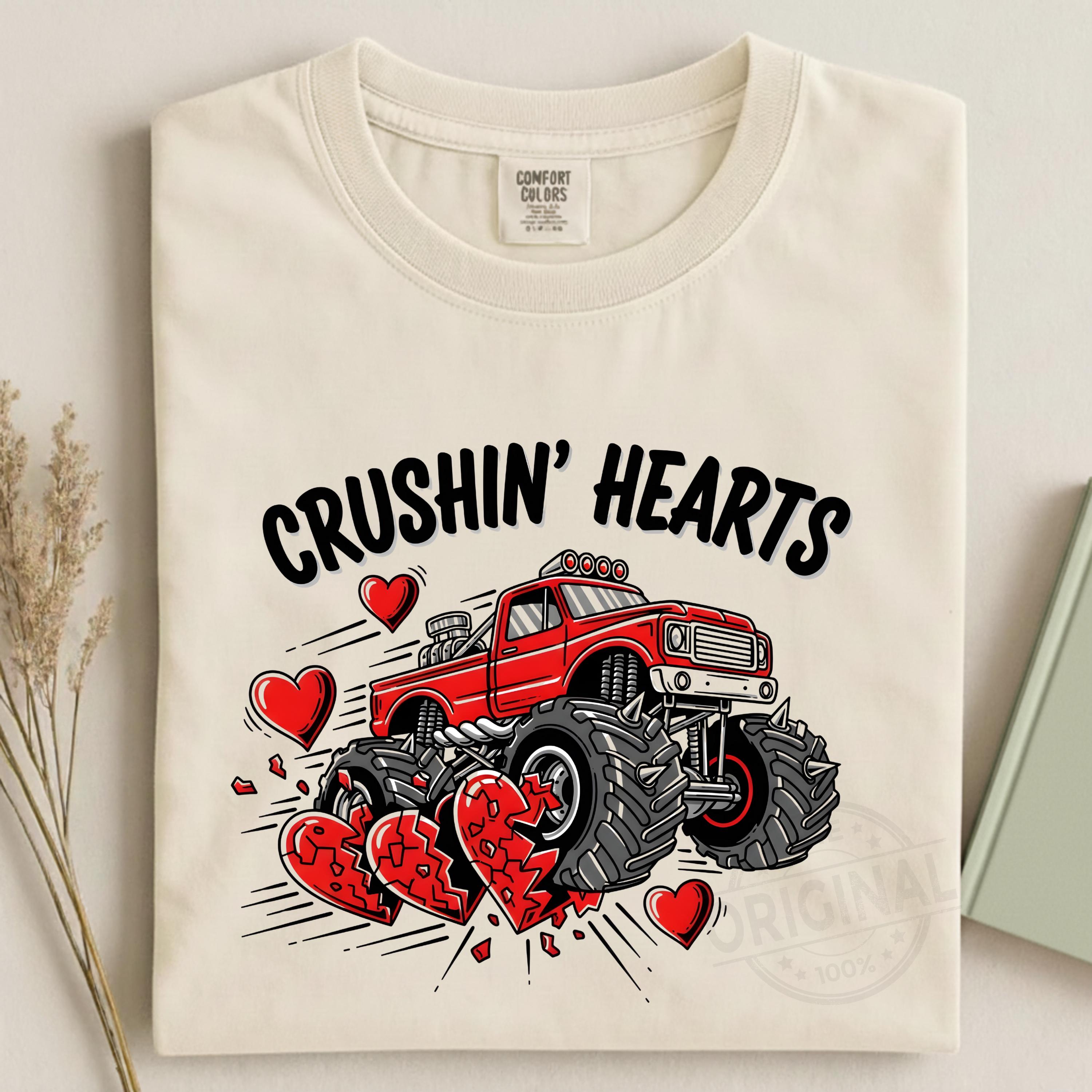 Boy Valentine Monster Truck PNG SVG, Crushin Hearts Toddler Design, Valentine png, Valentines day png, Valentine Svg, XOXO Love VDay