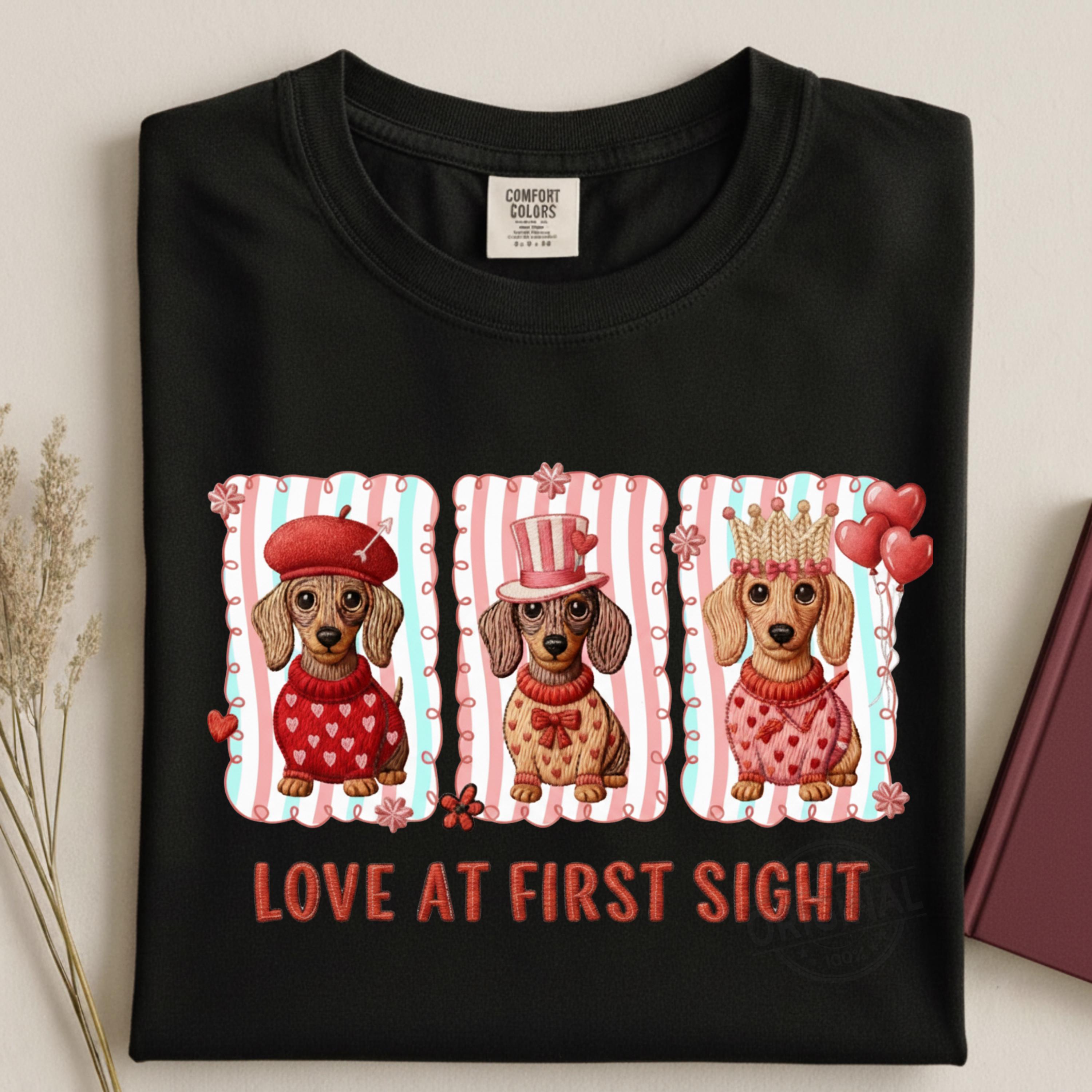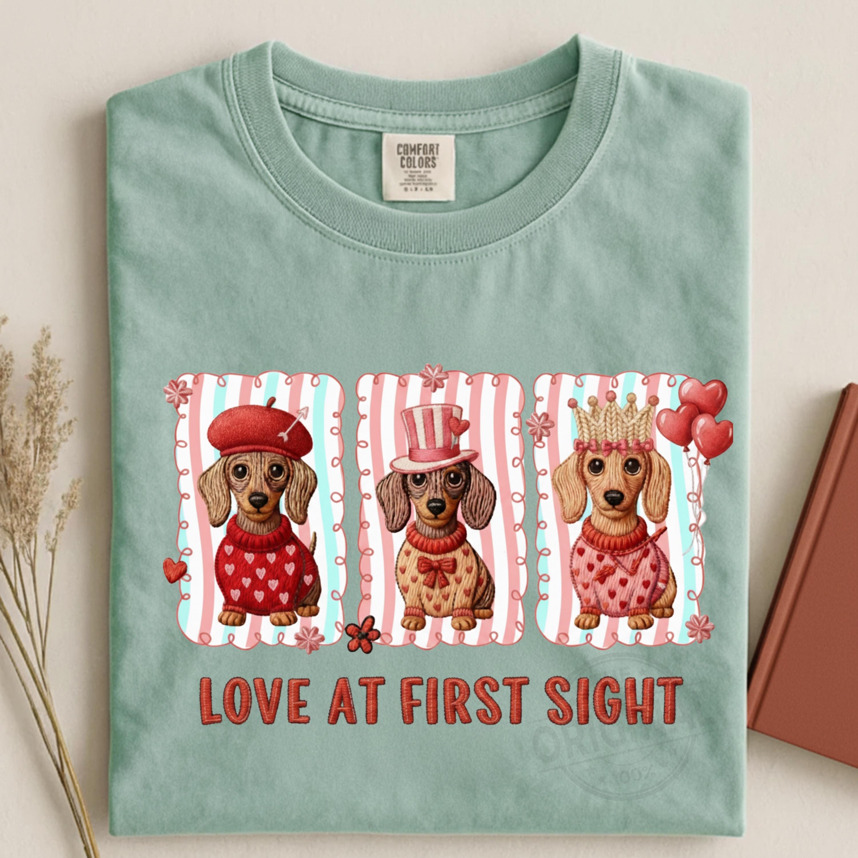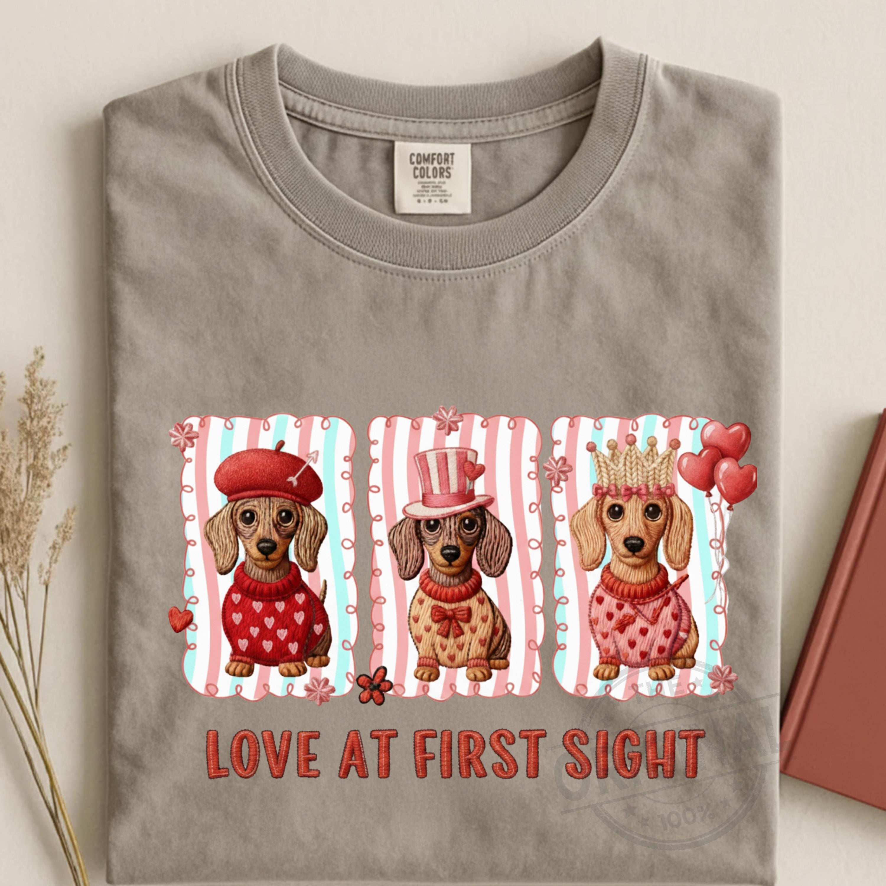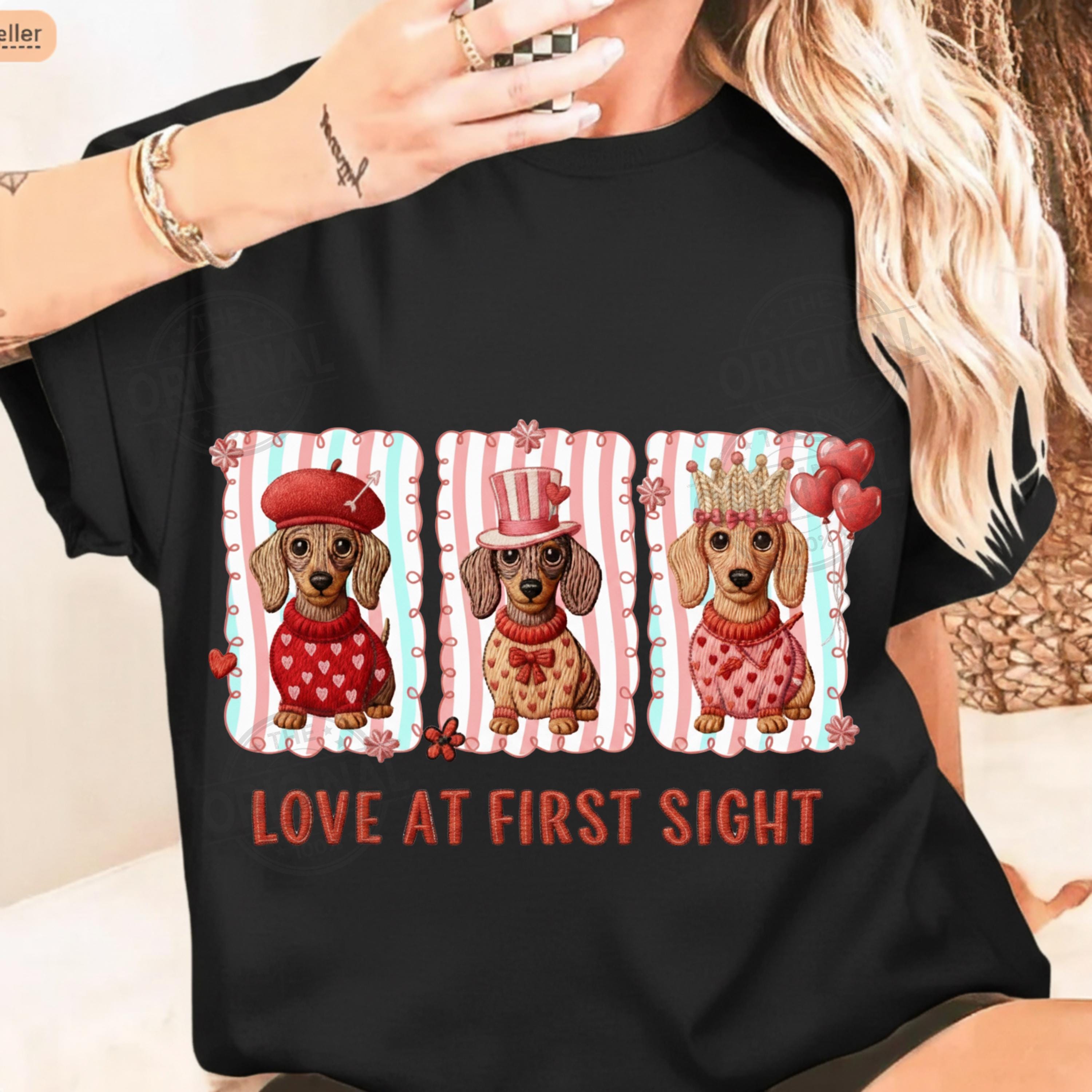 Faux Embroidery Dachshund Valentine PNG SVG Design for Retro Dog Mom Shirts, Preppy Coquette Puppy, Heart Love Png, Dog Lover PNG Perfect For T-shirts, sweaters, mugs, stickers, cards, tumblers, and all holiday crafting