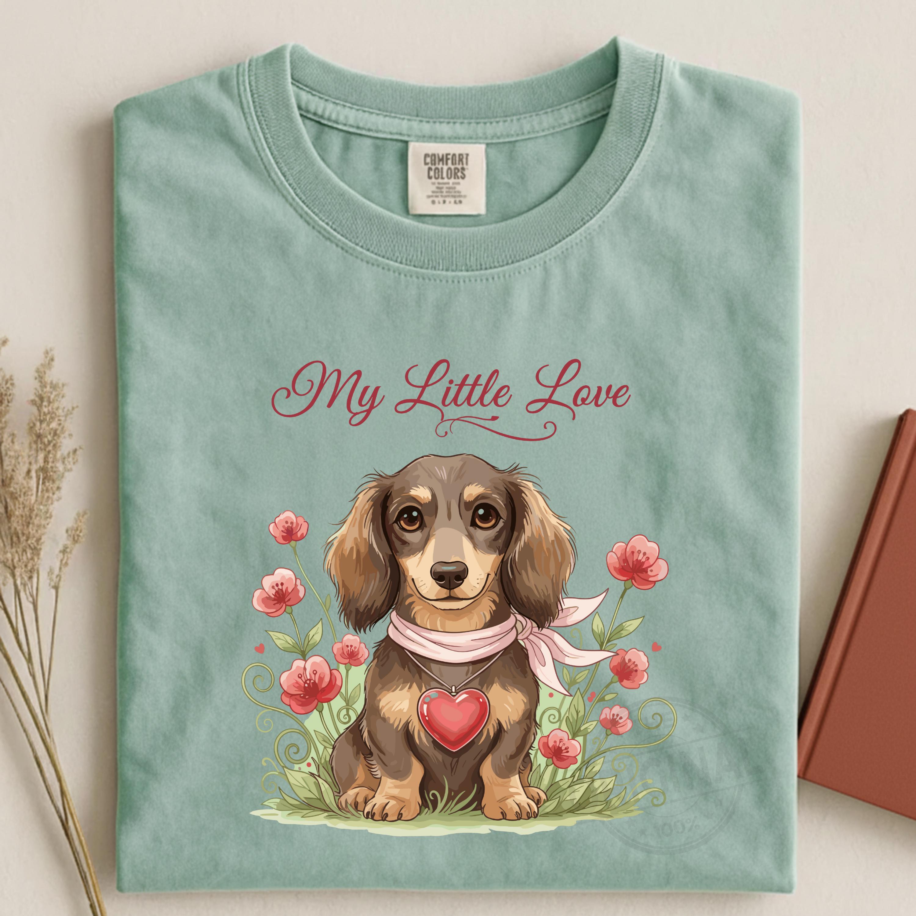 Faux Embroidery Dachshund Valentine PNG, Retro Dog Mom Shirts, Preppy Coquette Puppy Love Graphic, Latch Hook Style, Valentine Bow Png