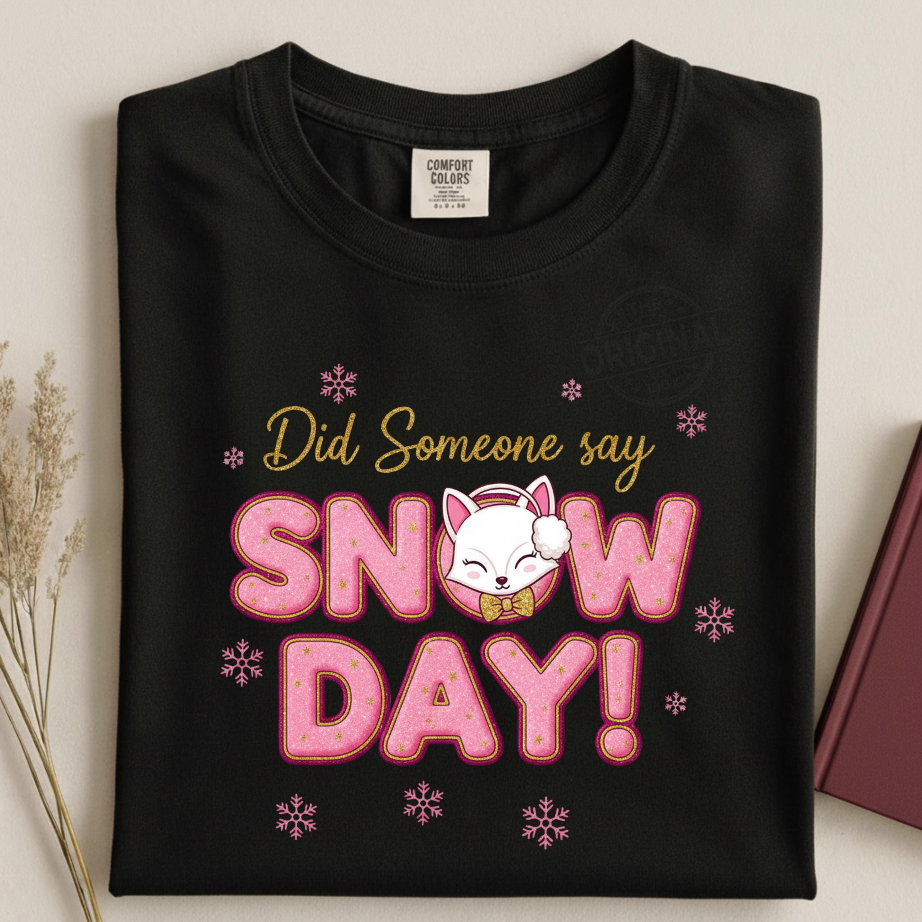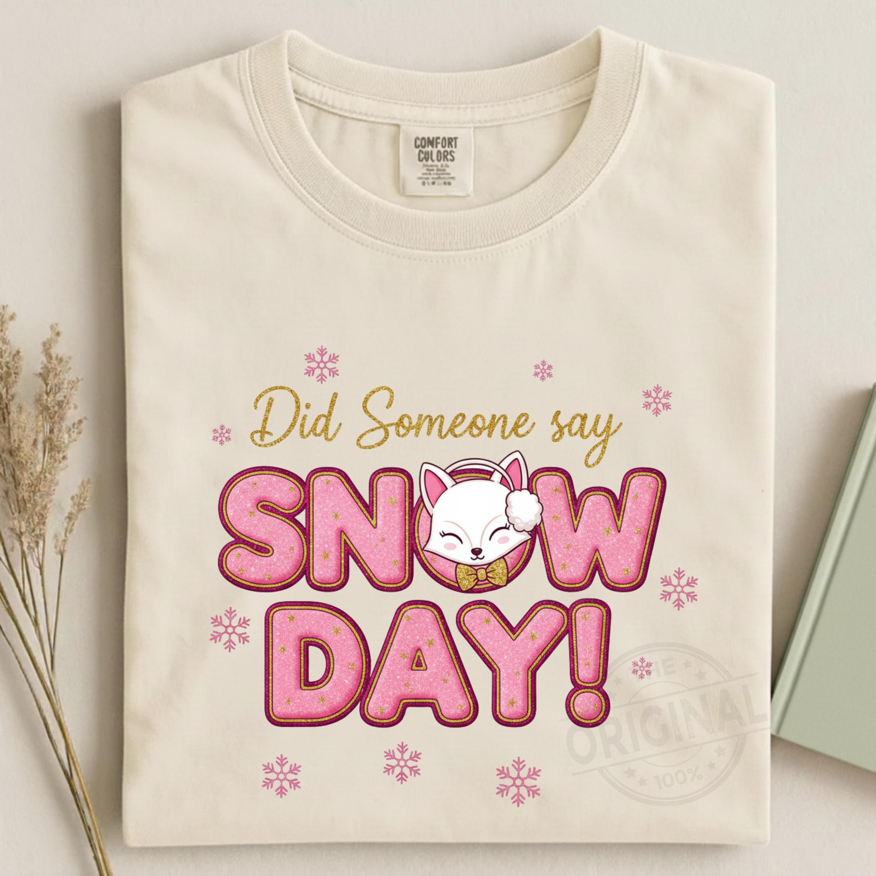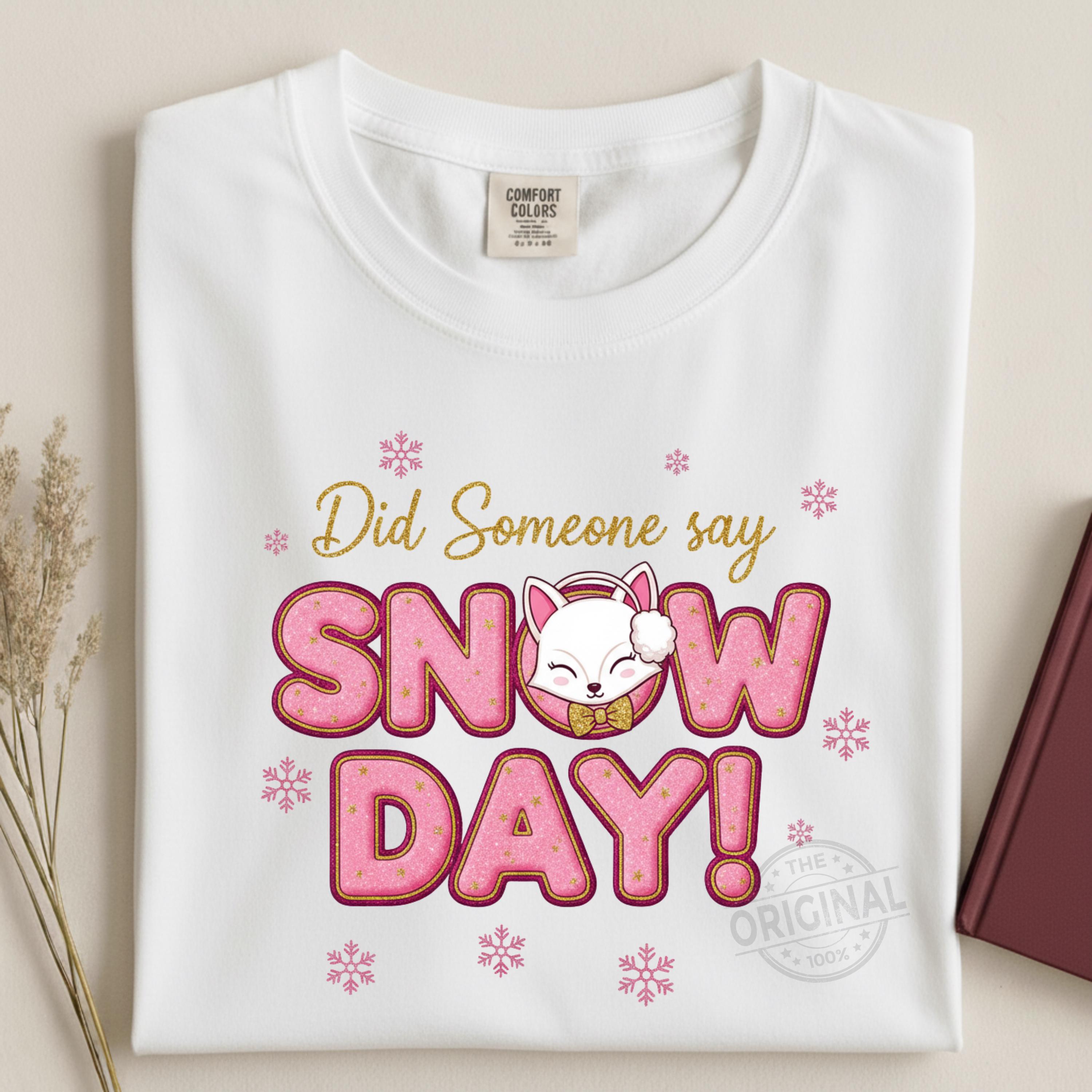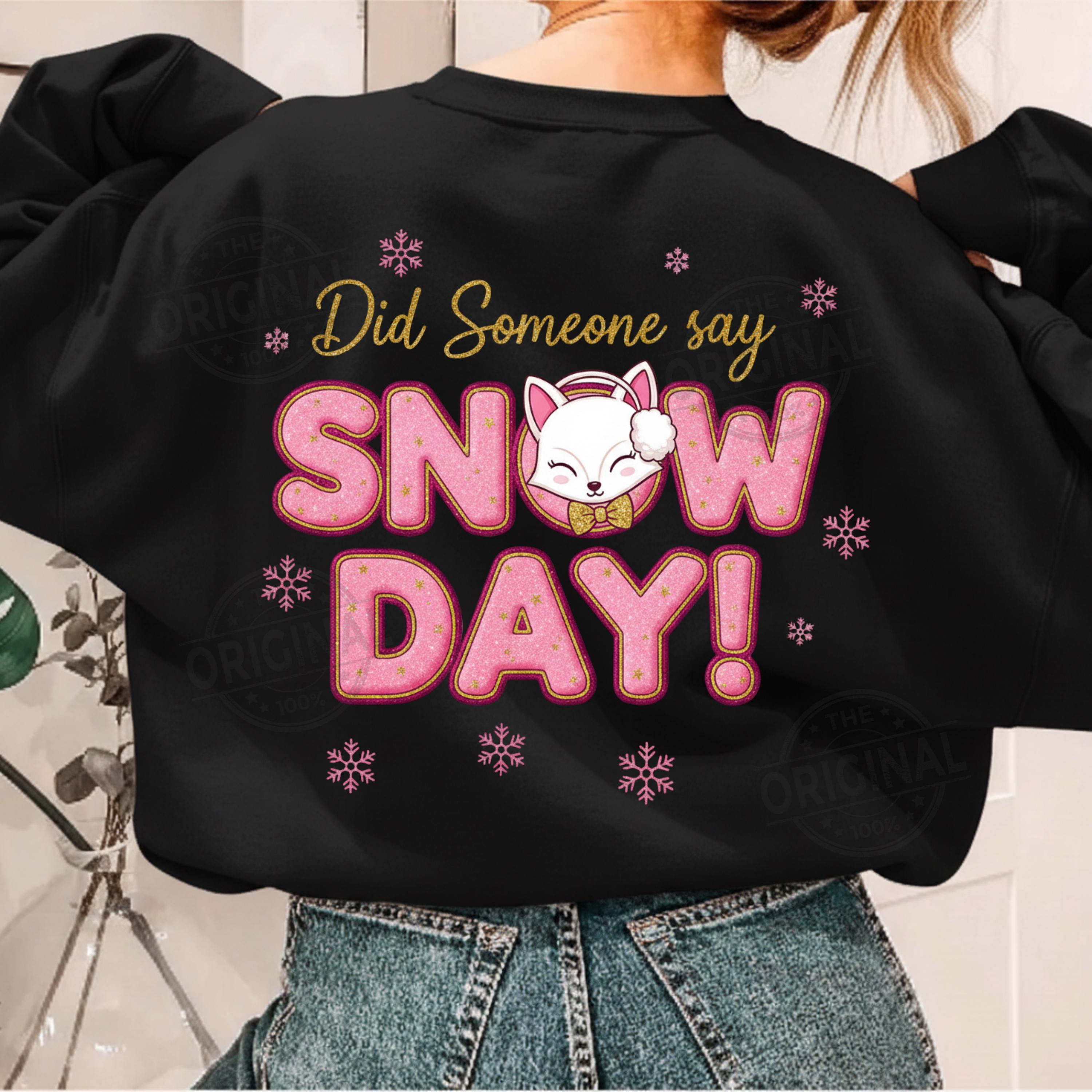 Snow Day PNG SVG, Pink Snowflake with Cat, Holiday Snow Day Design, Winter Teacher Quote PNG, embroidery png, Cozy Winter Sublimation