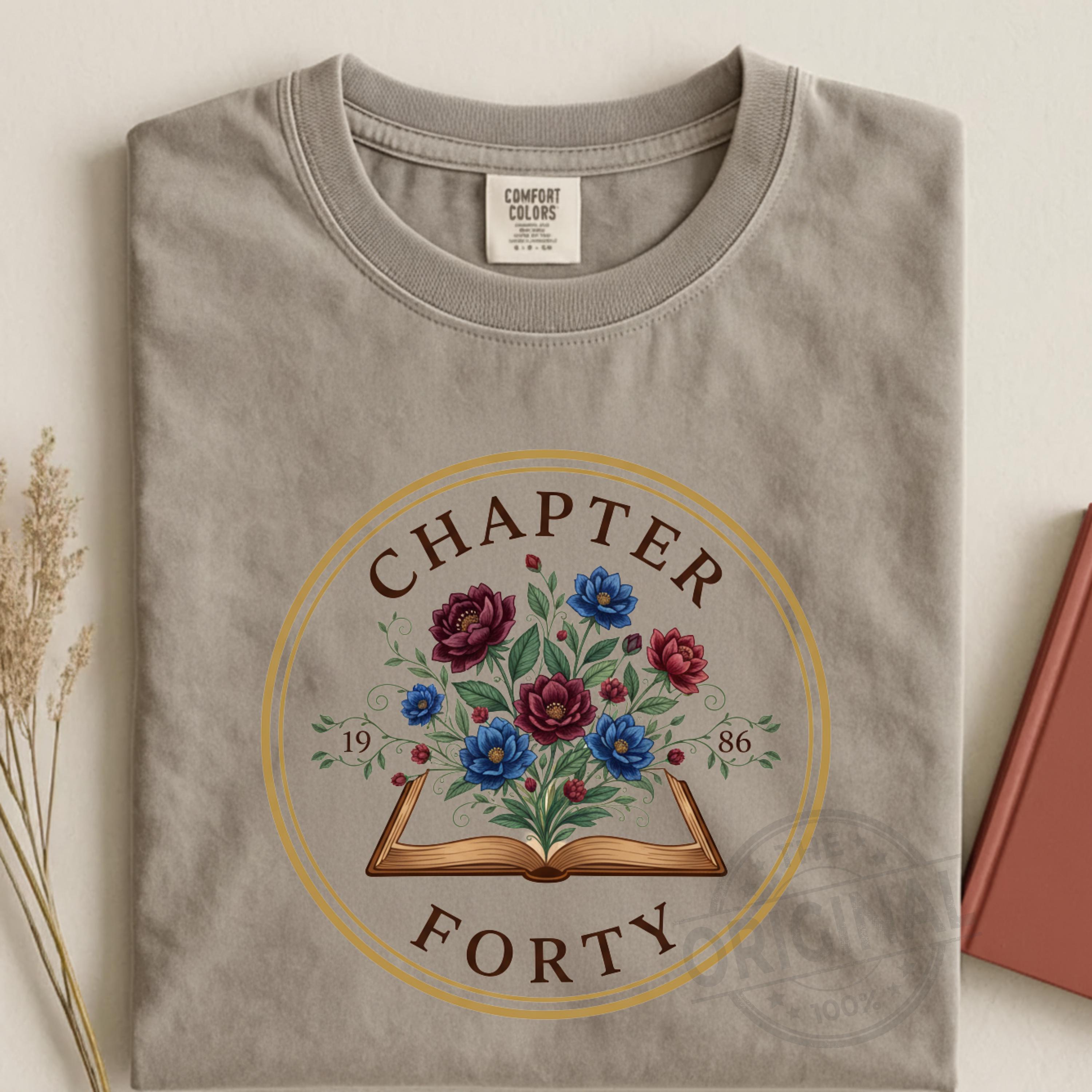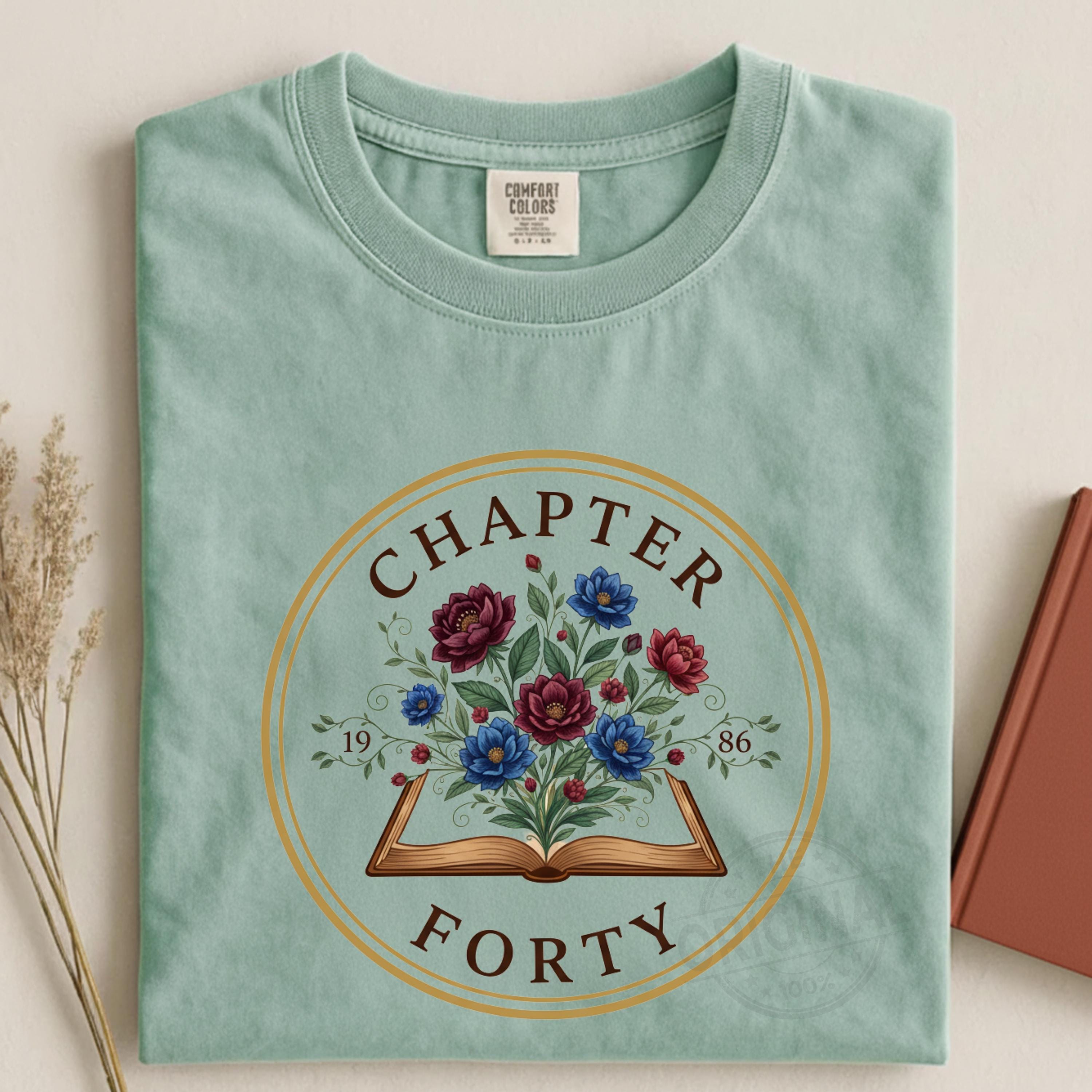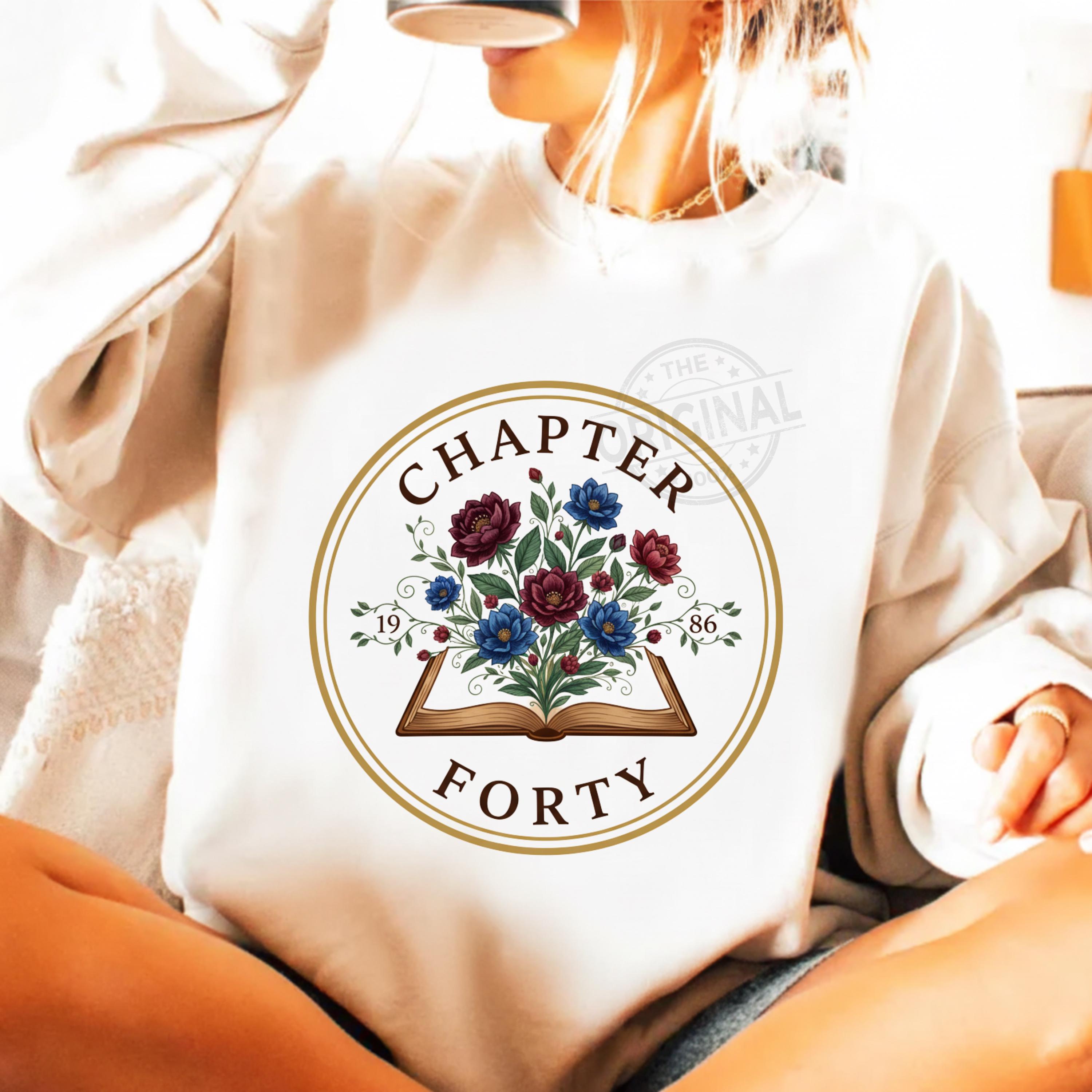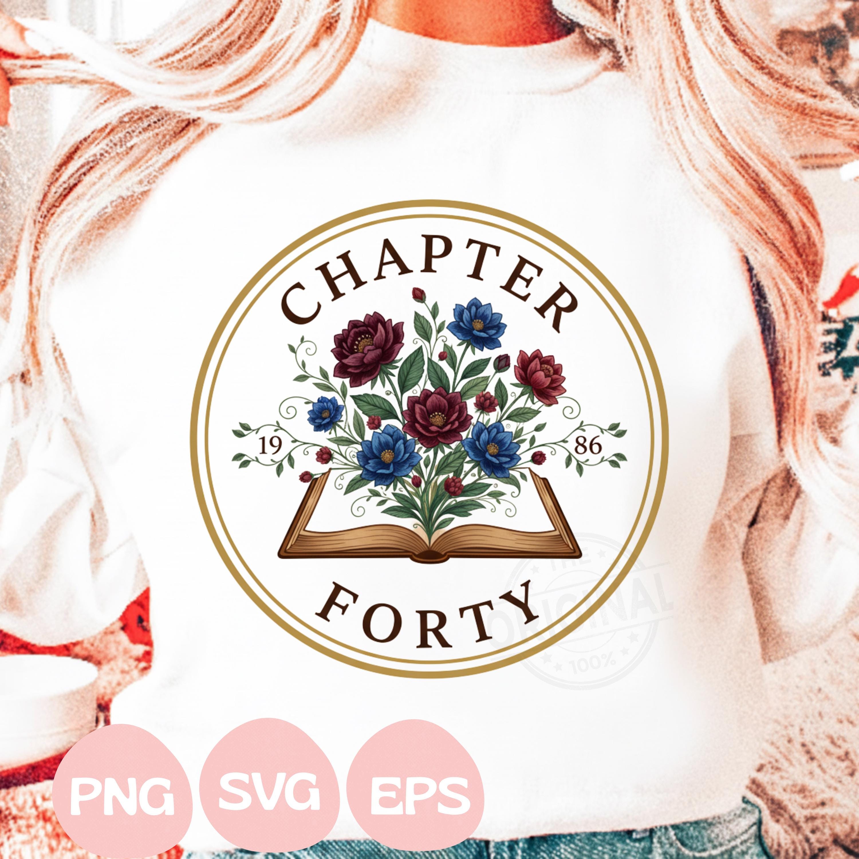 Celebrate four decades of growth, beauty, and wisdom with this “1985 Chapter Forty” digital design! This beautiful PNG, SVG, and EPS file set features a vintage floral theme and open book motif Perfect For T-shirts, sweaters, mugs, stickers, cards, tumblers, and all holiday crafting