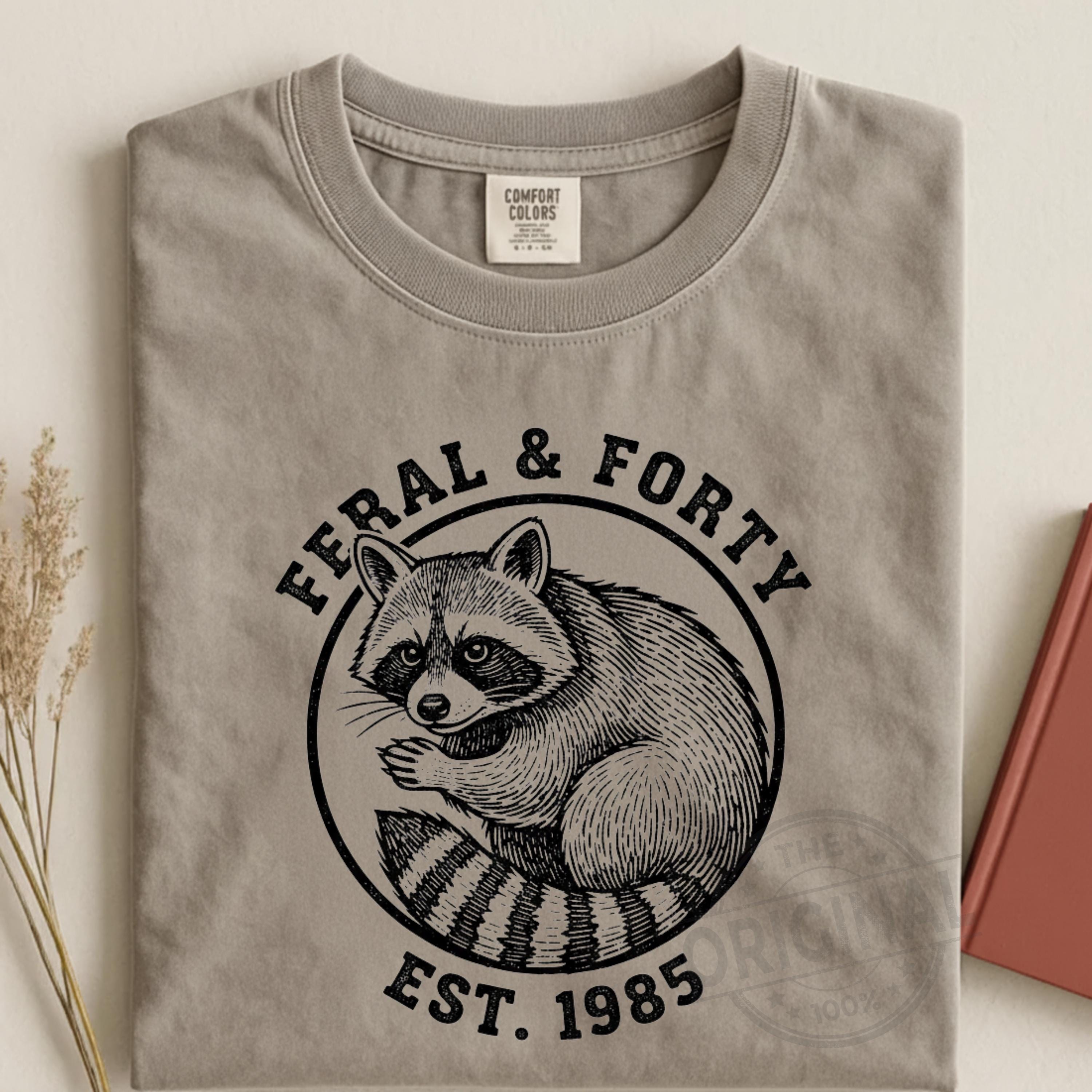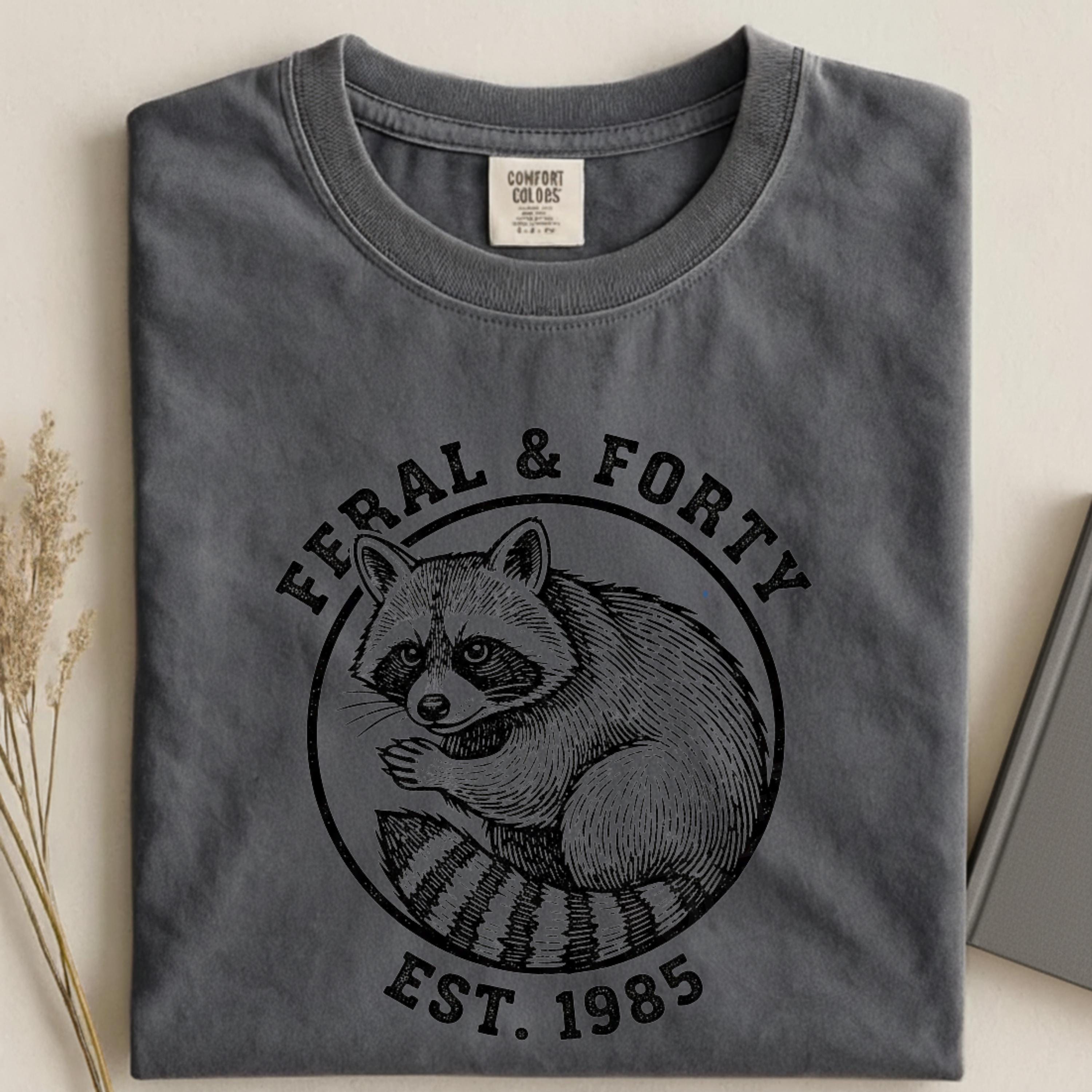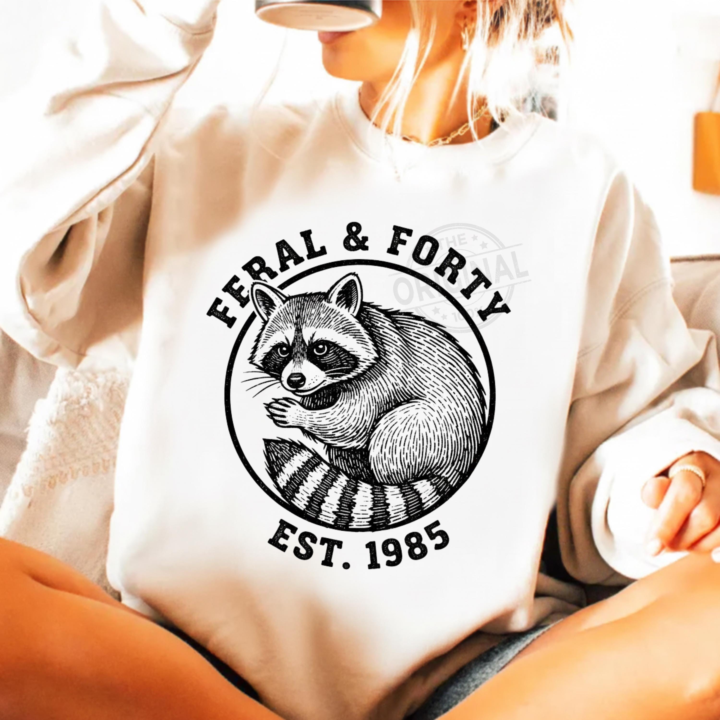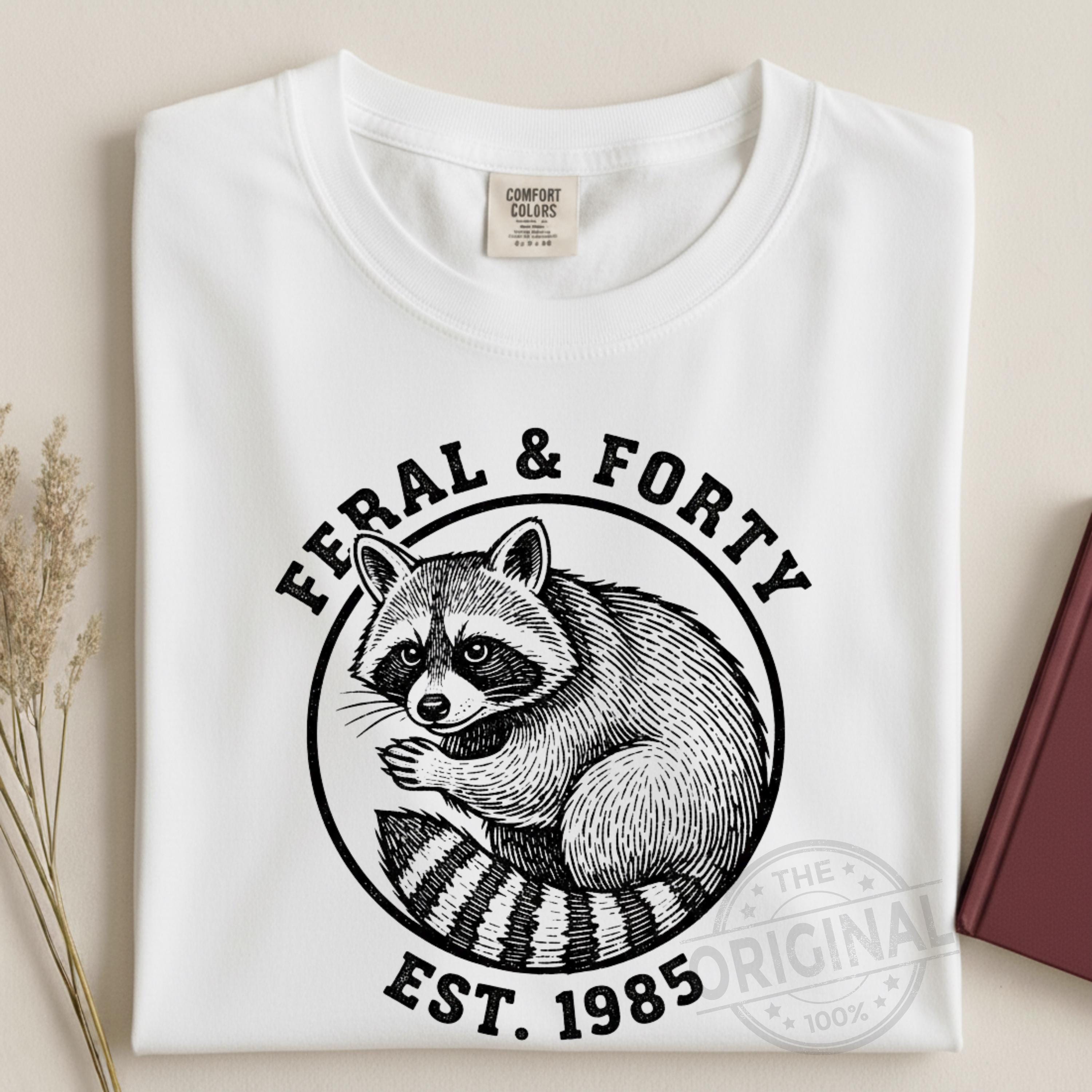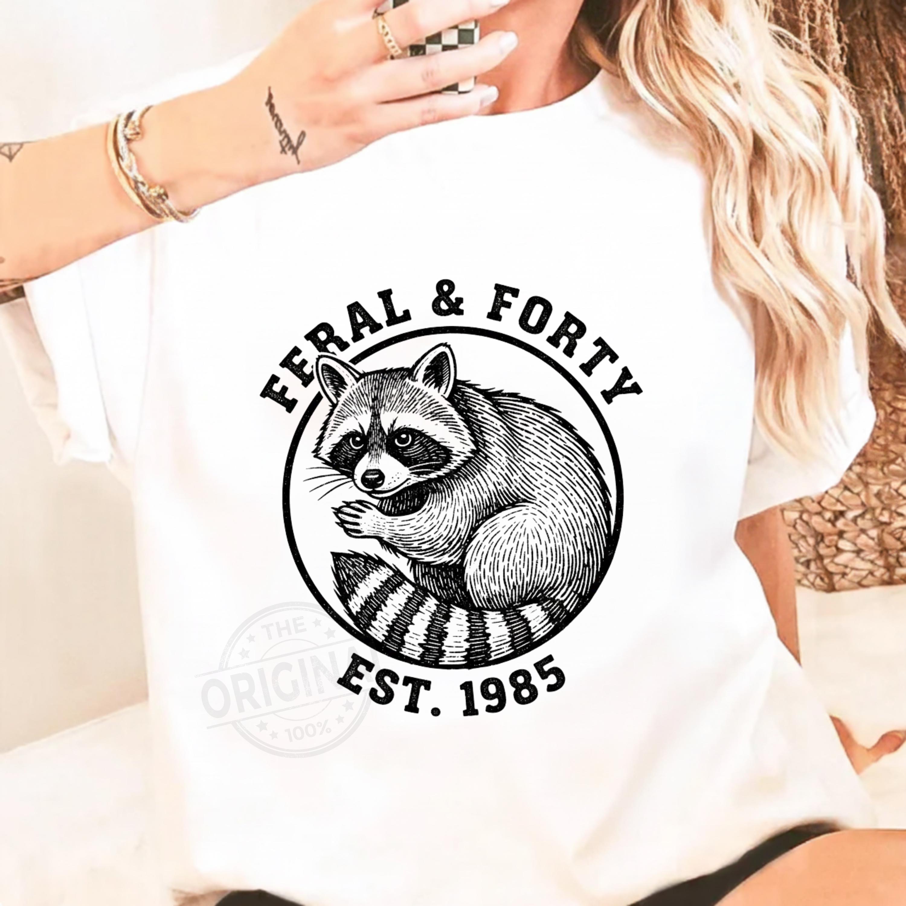 Celebrate your 40th birthday with attitude and humor! This Feral & Forty funny raccoon digital design is perfect for bold women turning 40 who proudly embrace their wild side. Featuring a cheeky raccoon and playful vibe, this design is ideal for a 40th birthday party, girls trip, funny birthday gift, or a memorable surprise for anyone born in 1985. A must-have digital download for t-shirts, mugs, tote bags, or party decorations—perfect for adding sass, laughs, and personality to any fortieth birthday celebration.