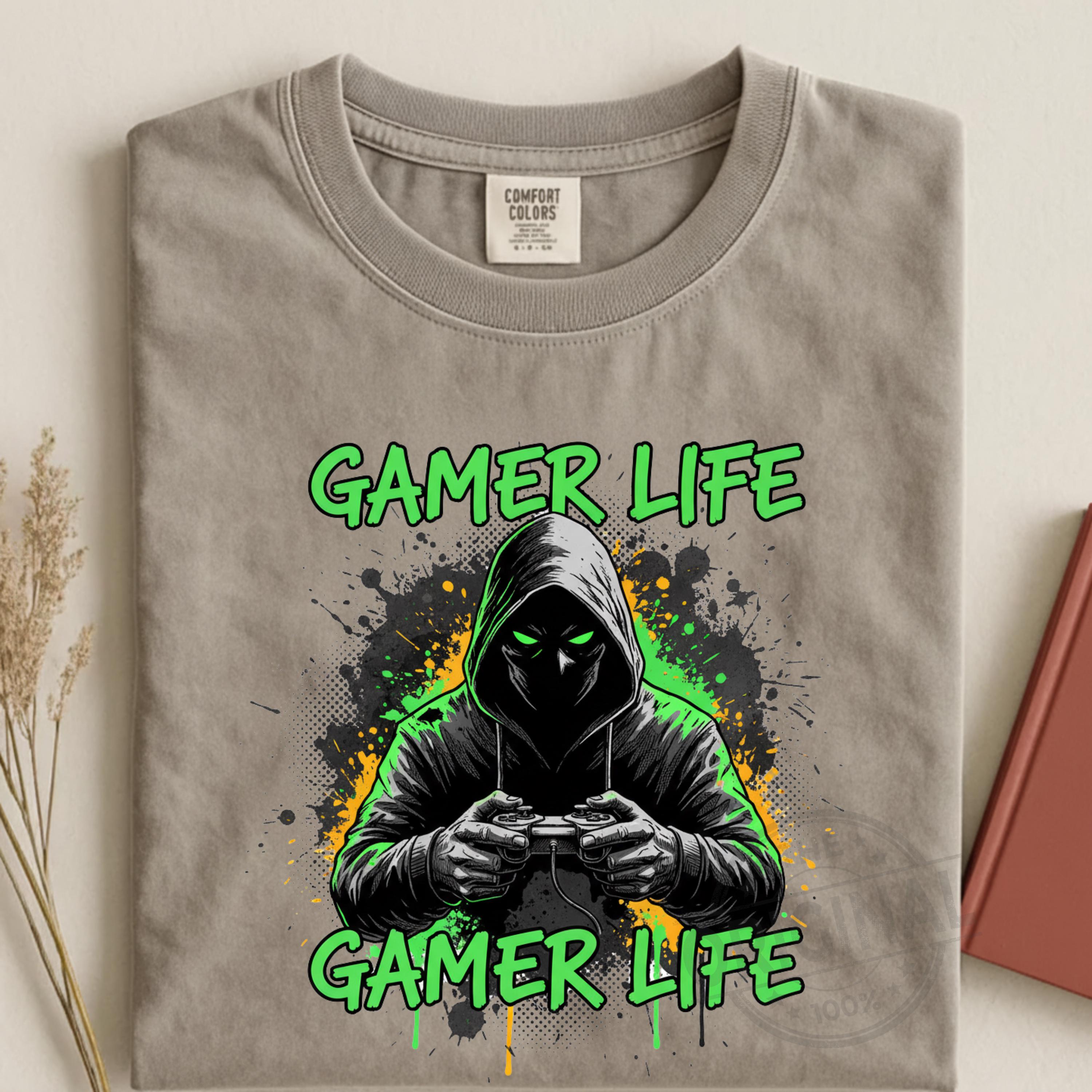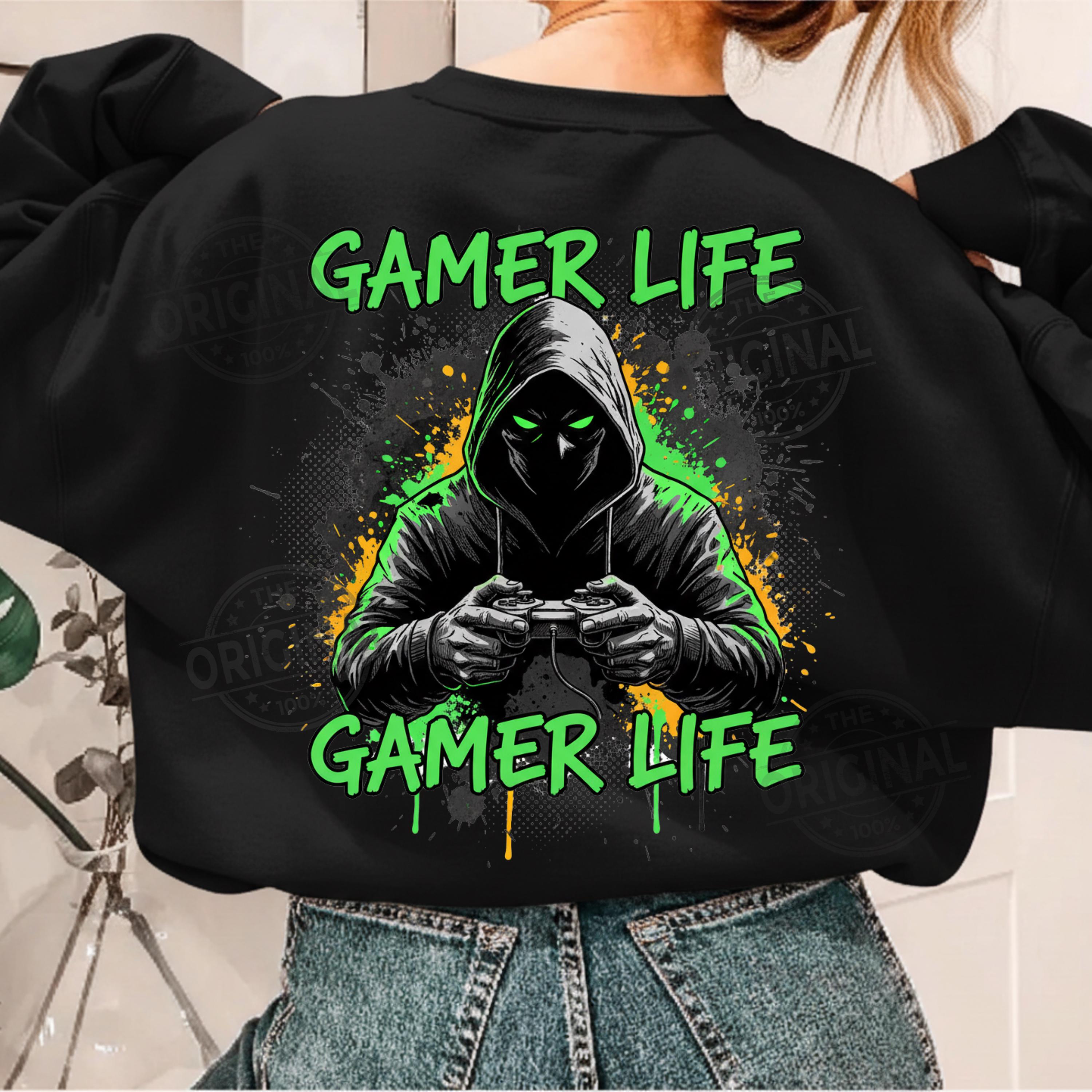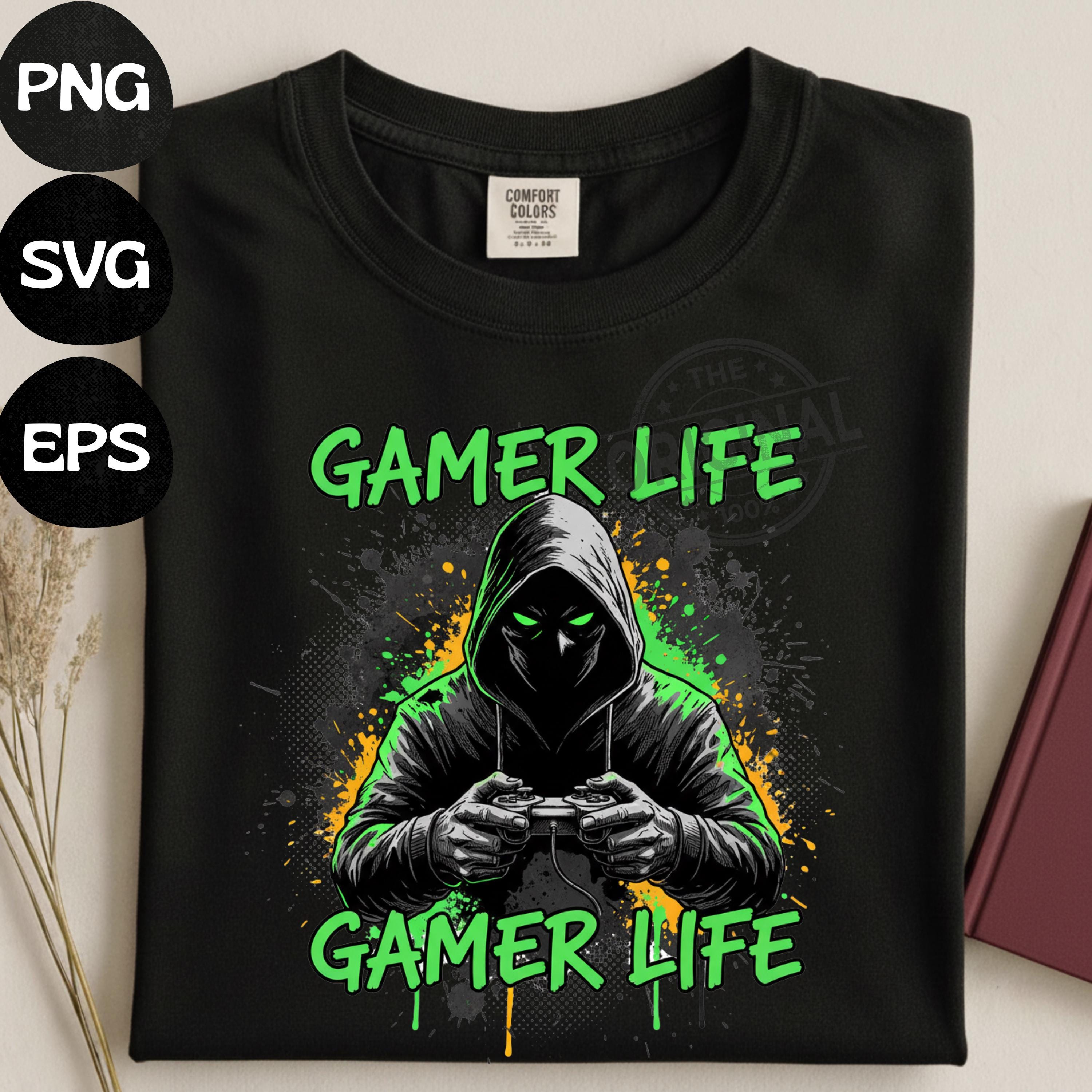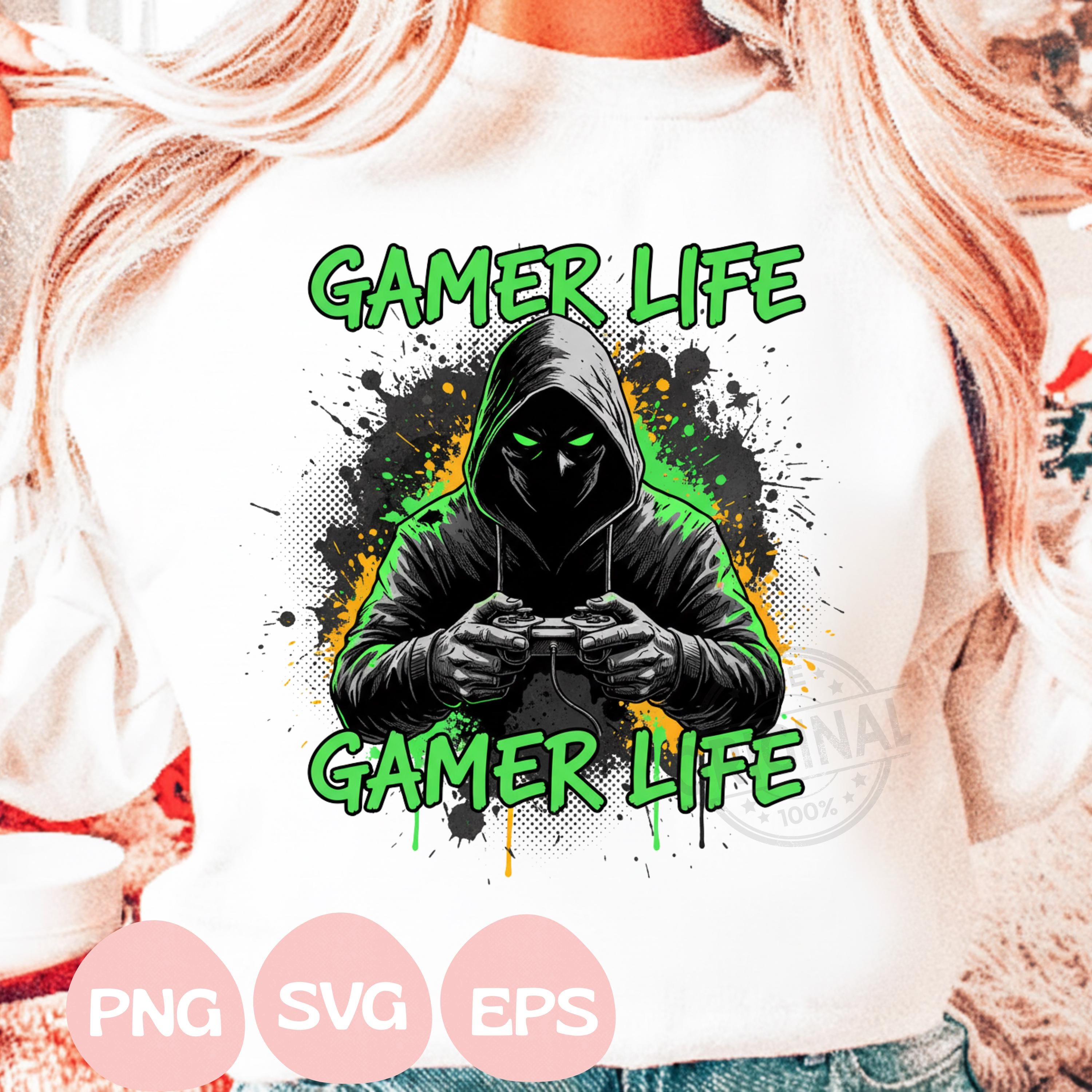 Gamer Life Dark Hoodie Design PNG SVG EPS, Hardcore Gamer Shirt Graphic, Video Game Controller Art, Gaming Gift for Him, Gamer Streetwear