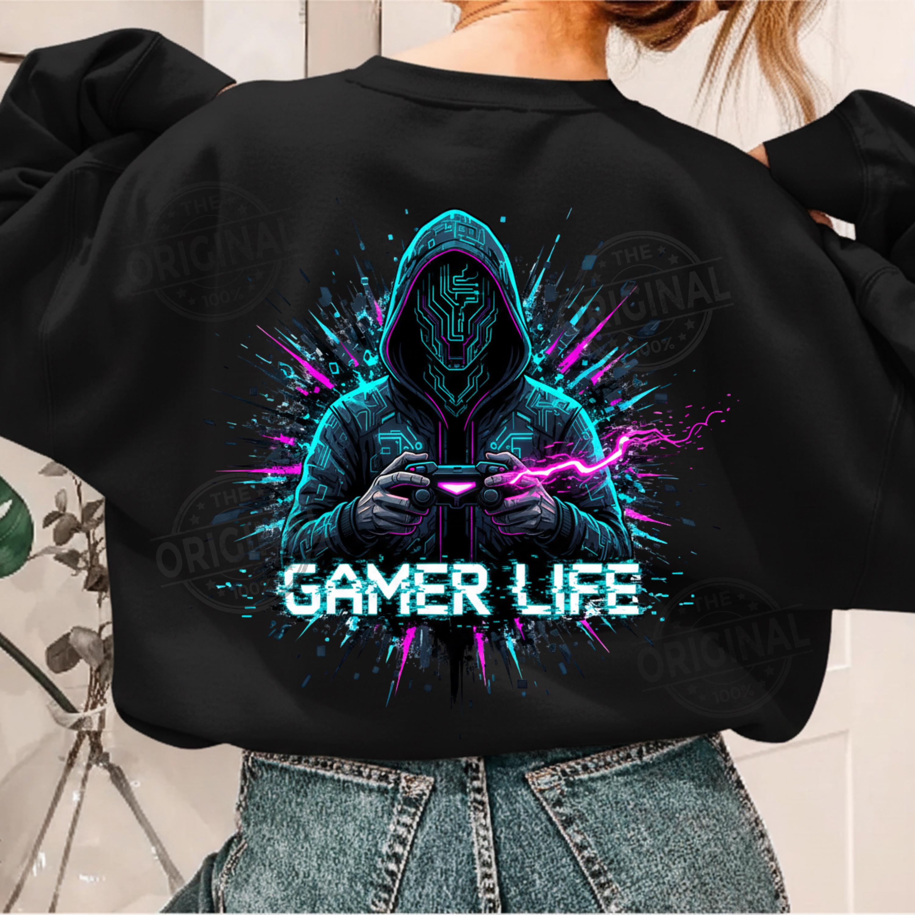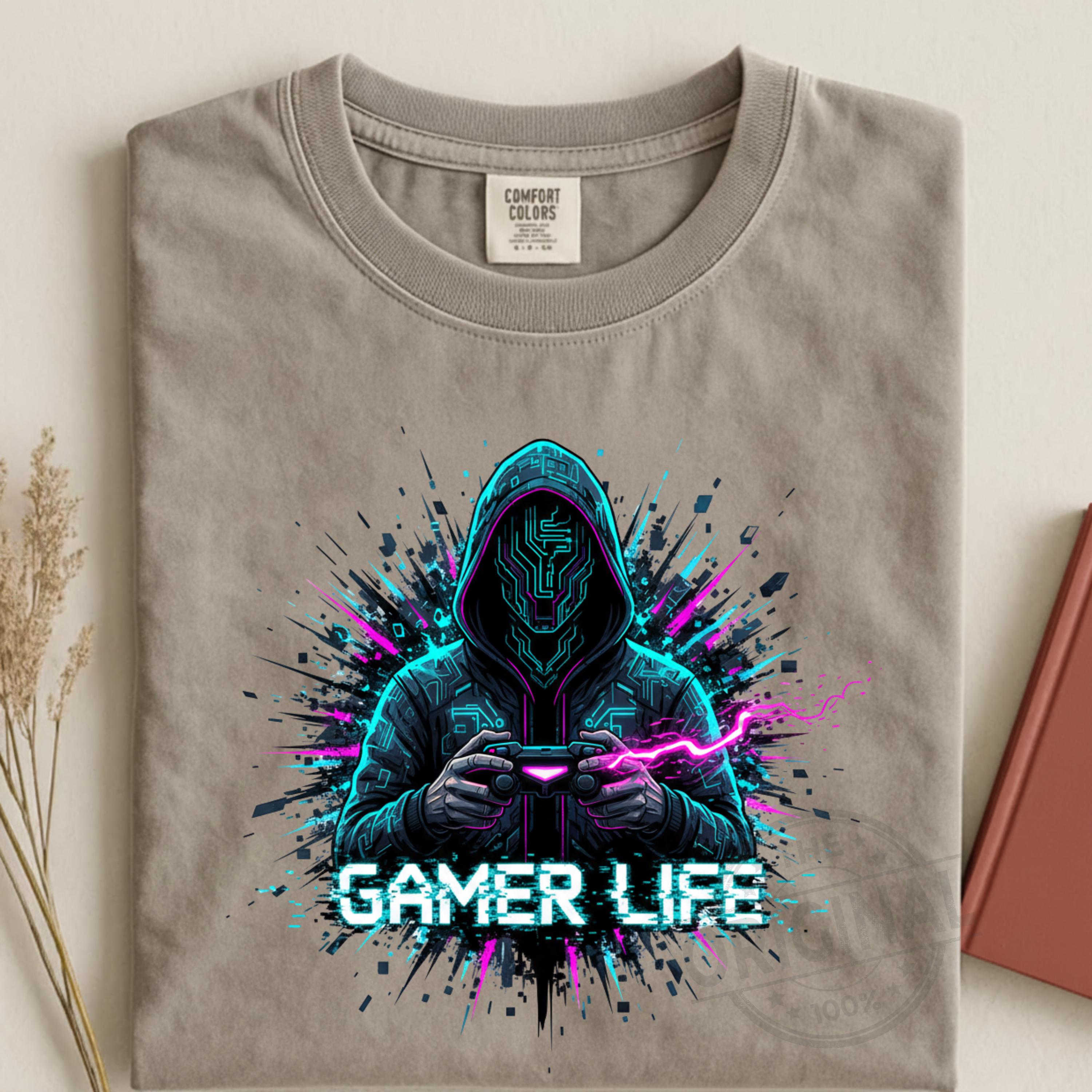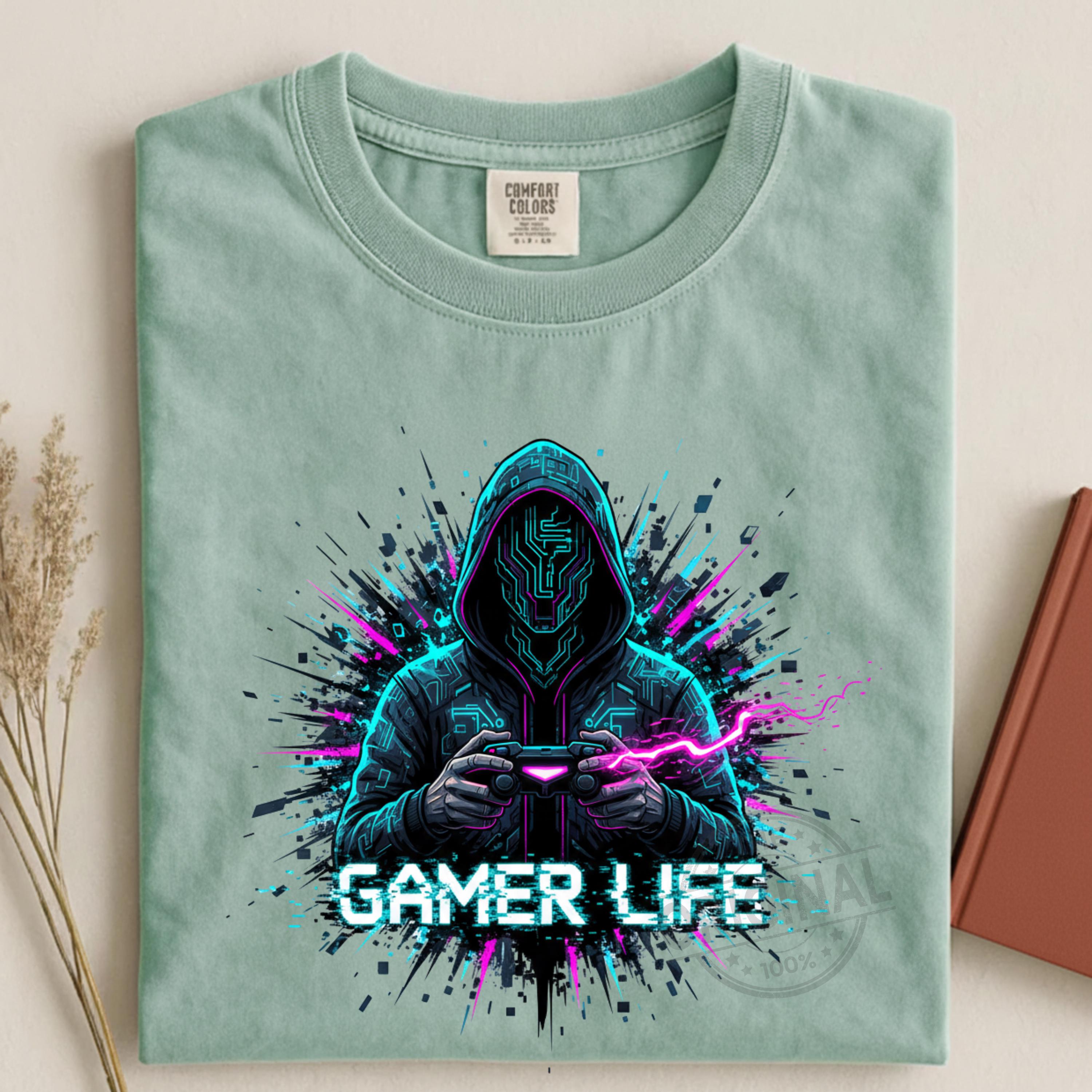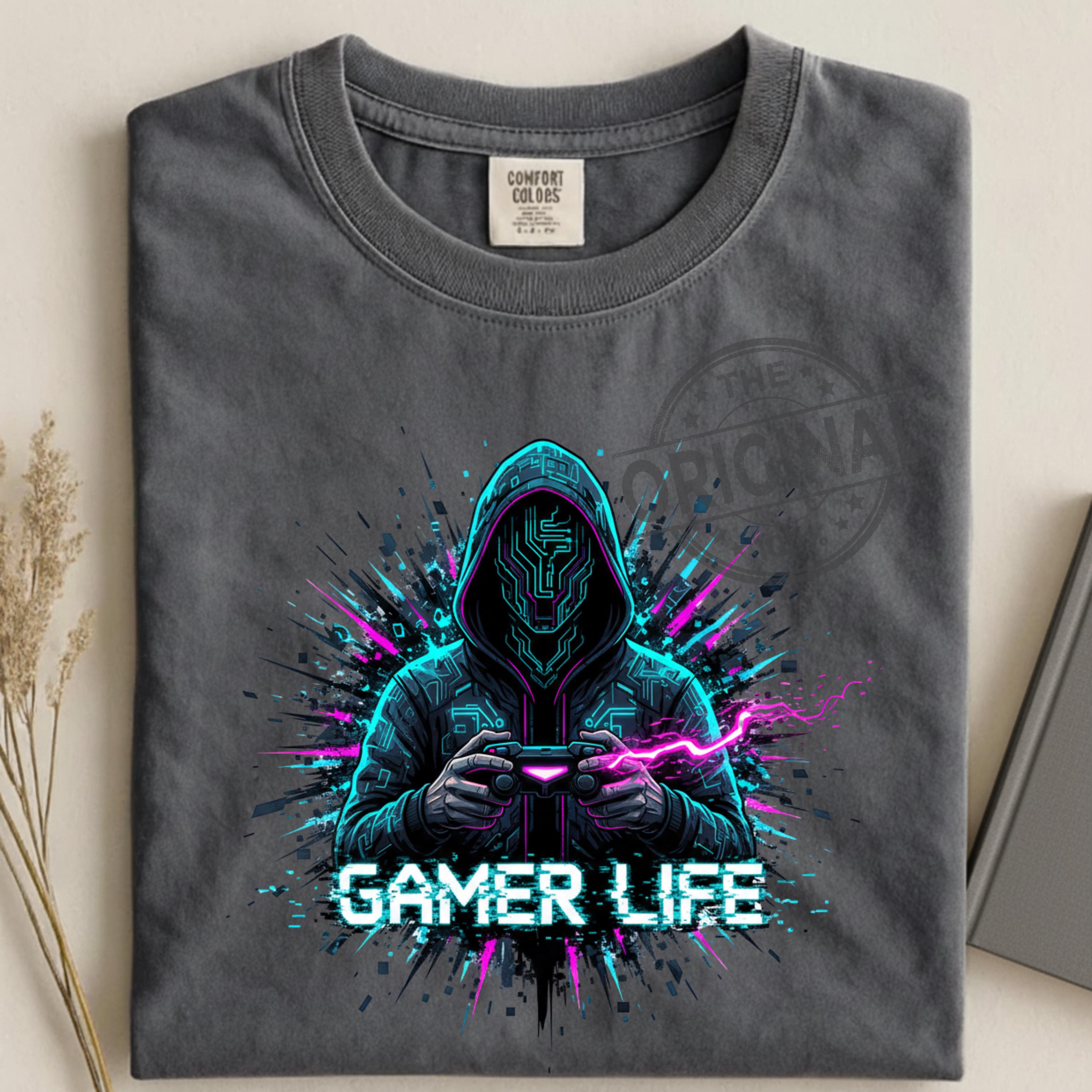 Neon Gamer Life Shirt Design PNG SVG EPS, Cyberpunk Gamer Clipart, Glitch Video Game Controller Art, Gaming Gift for Teens