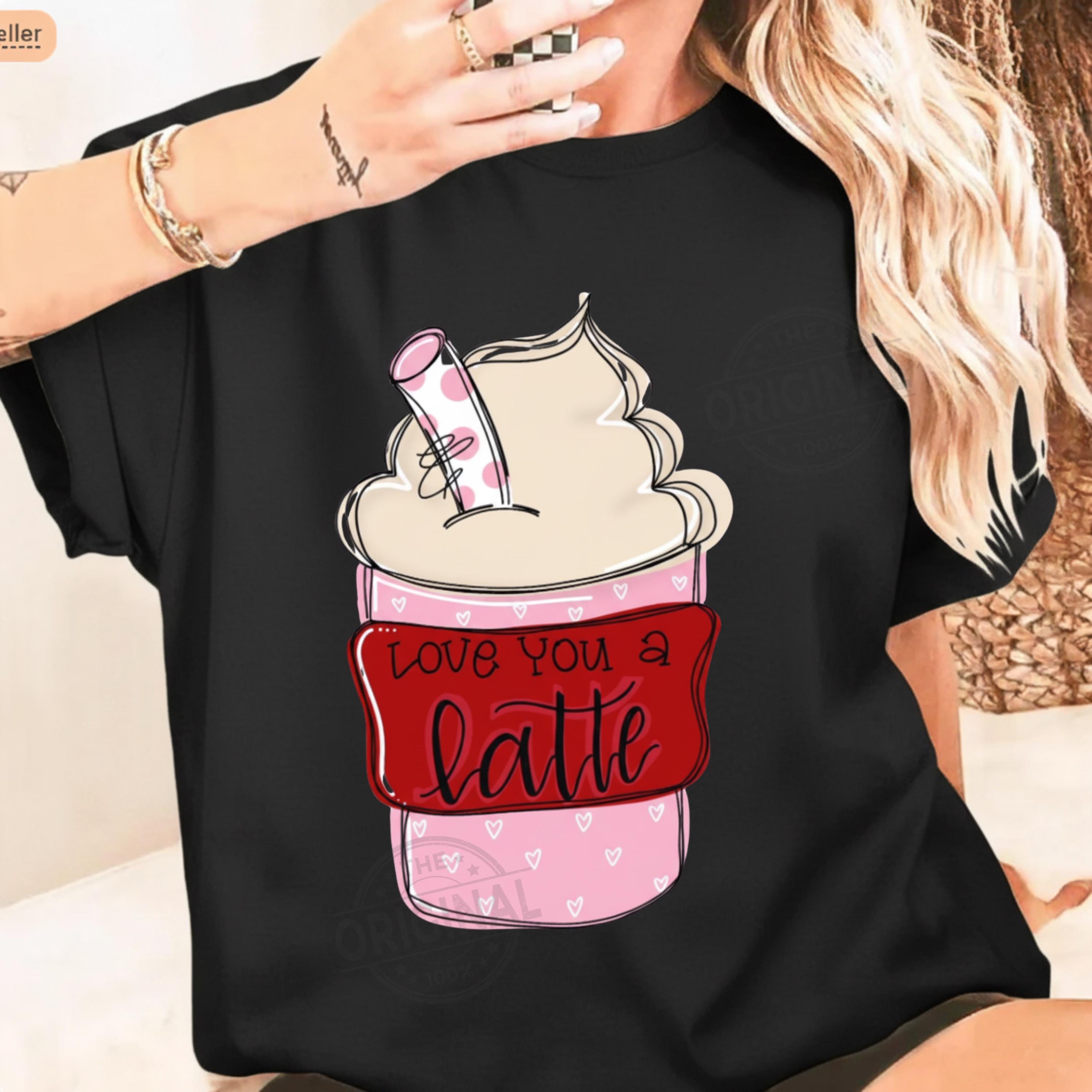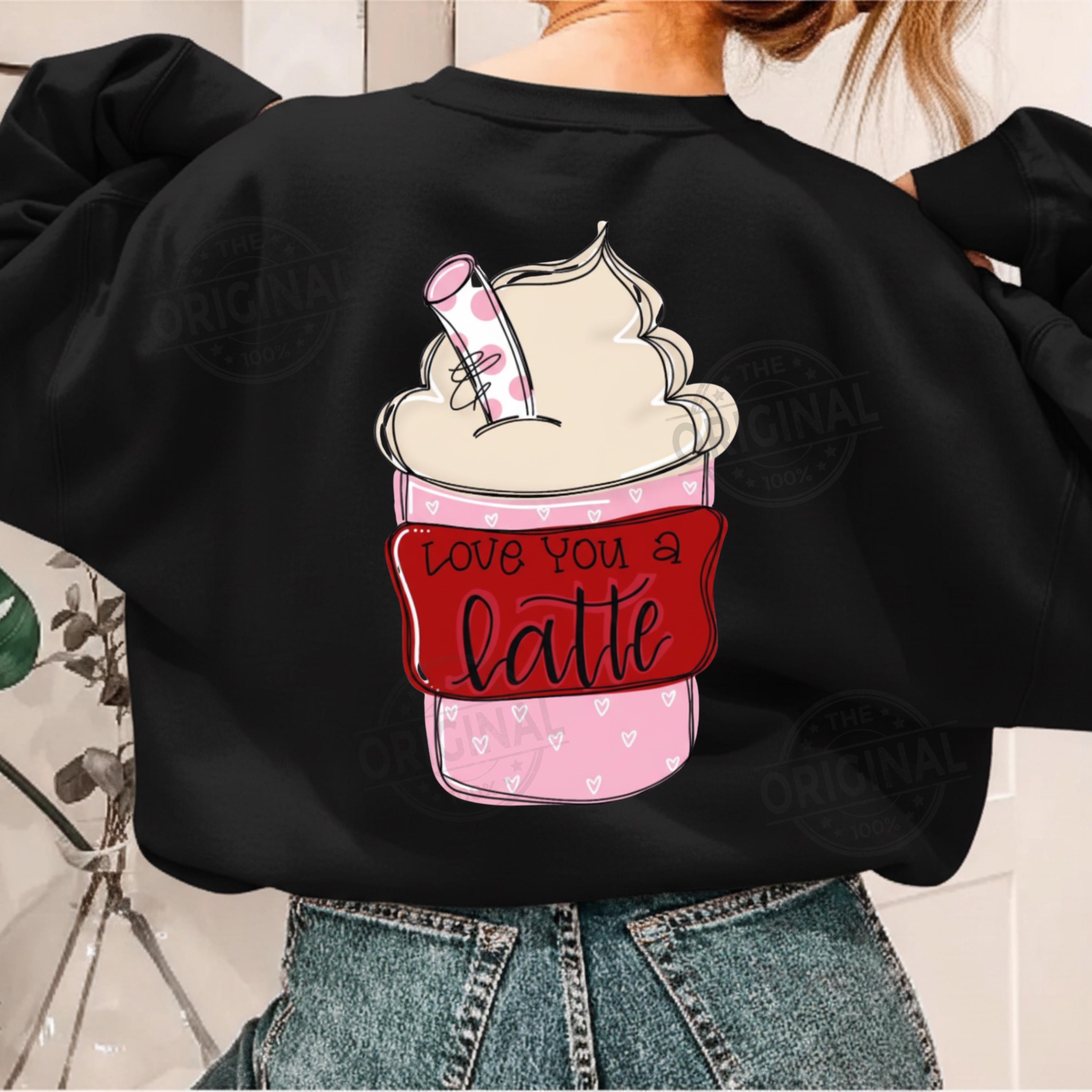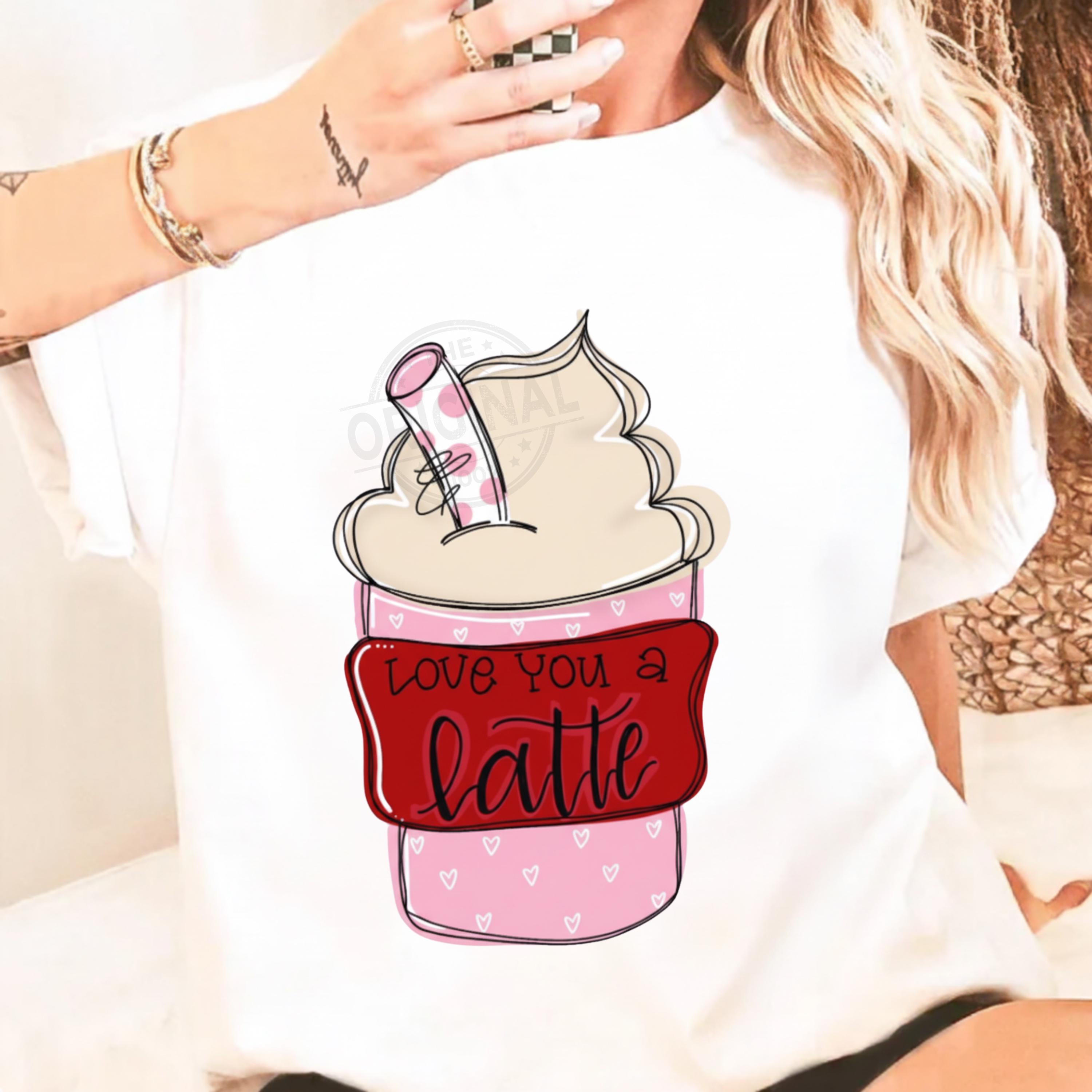 Love You A Latte Valentine PNG Funny Coffee Lover Png Sassy Iced Coffee Png Retro Checker Png Preppy Trendy womens shirt design