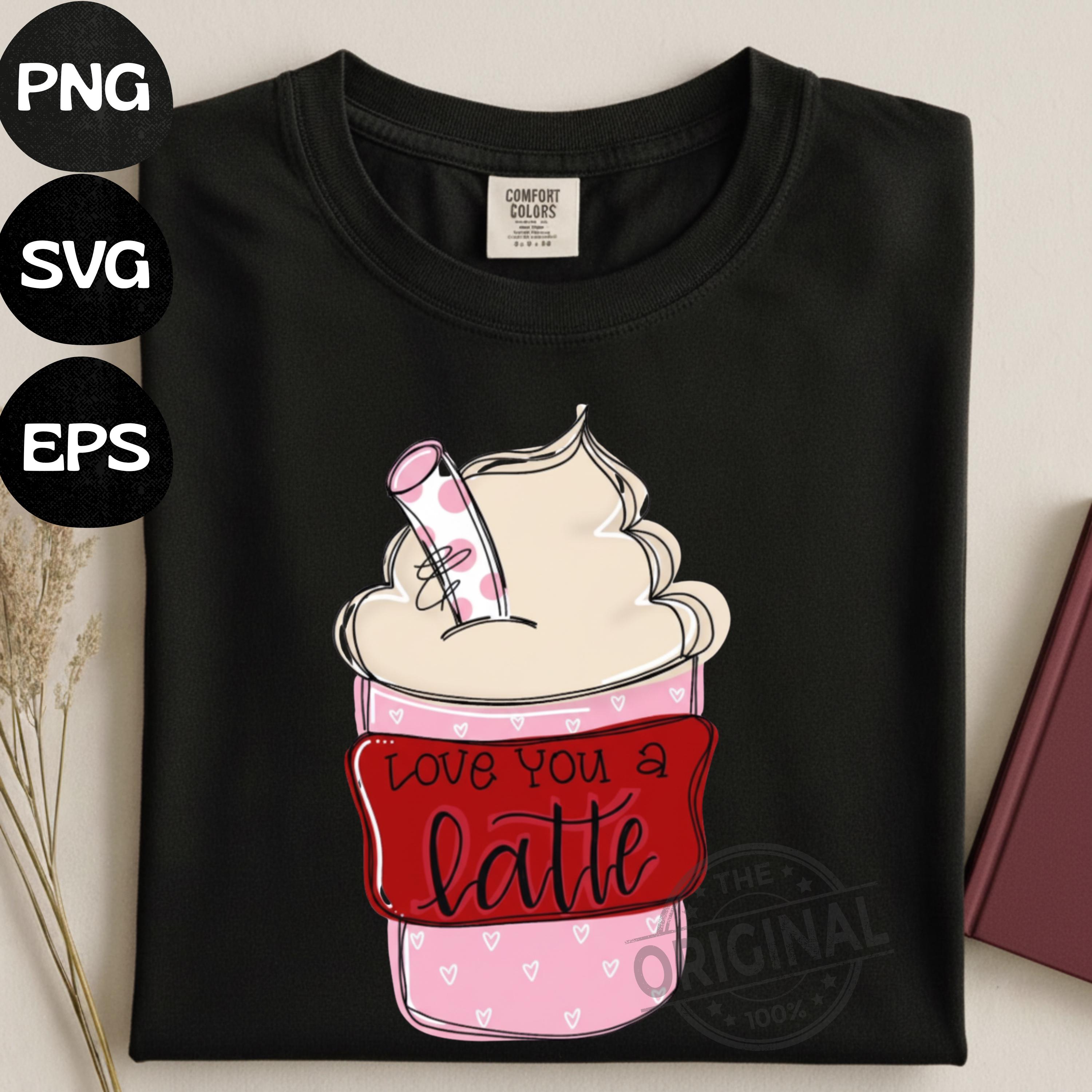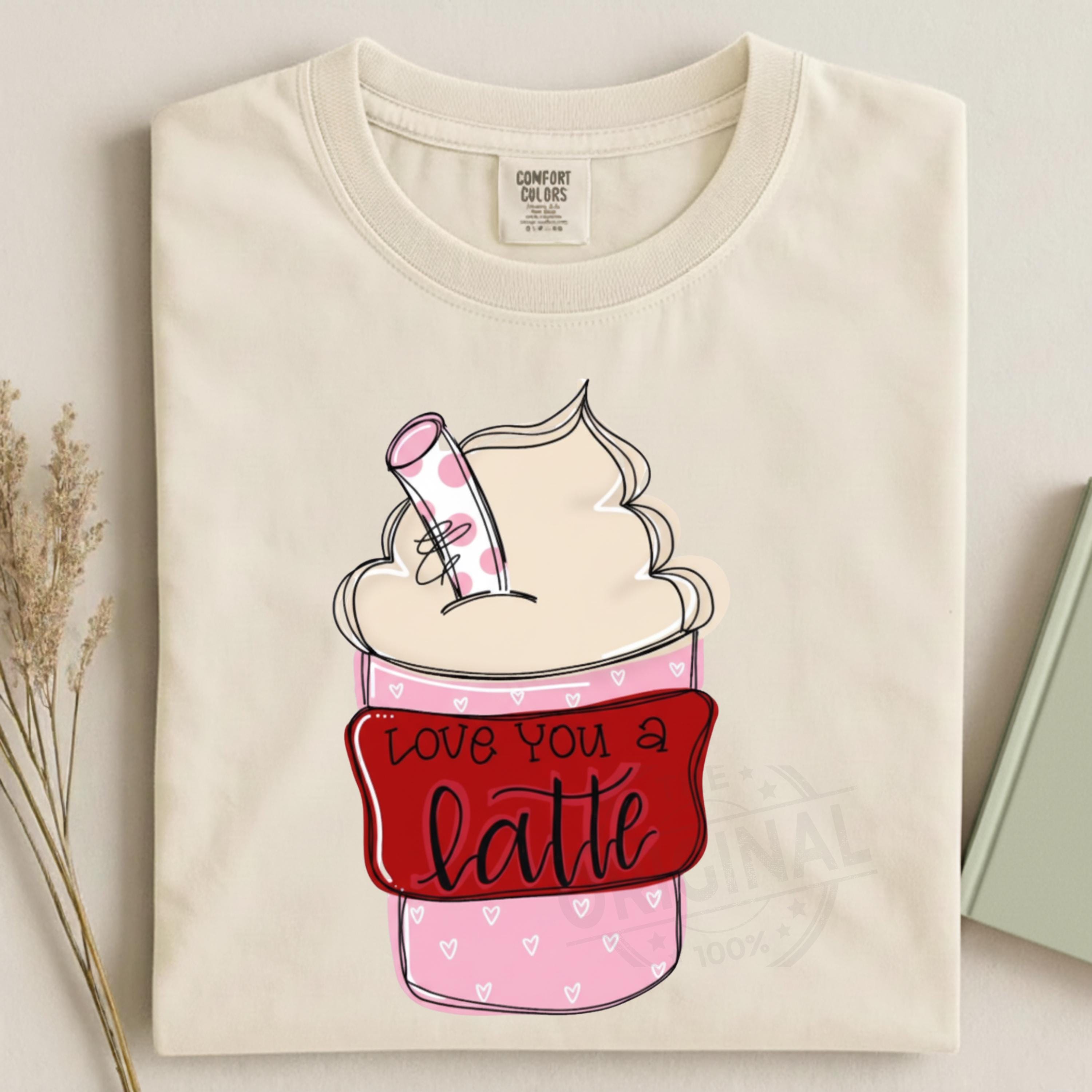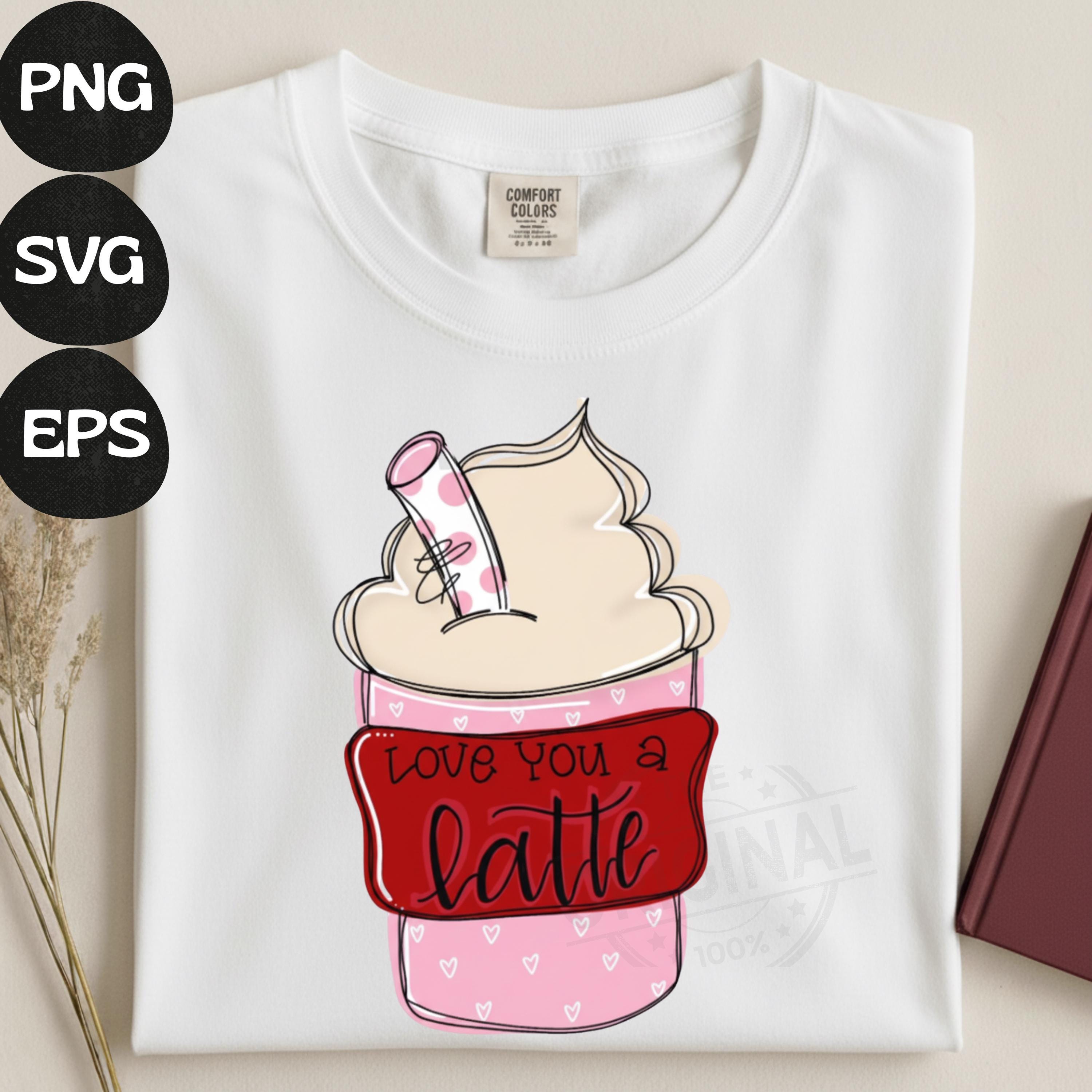 Love You A Latte Valentine PNG Funny Coffee Lover Png Sassy Iced Coffee Png Retro Checker Png Preppy Trendy womens shirt design