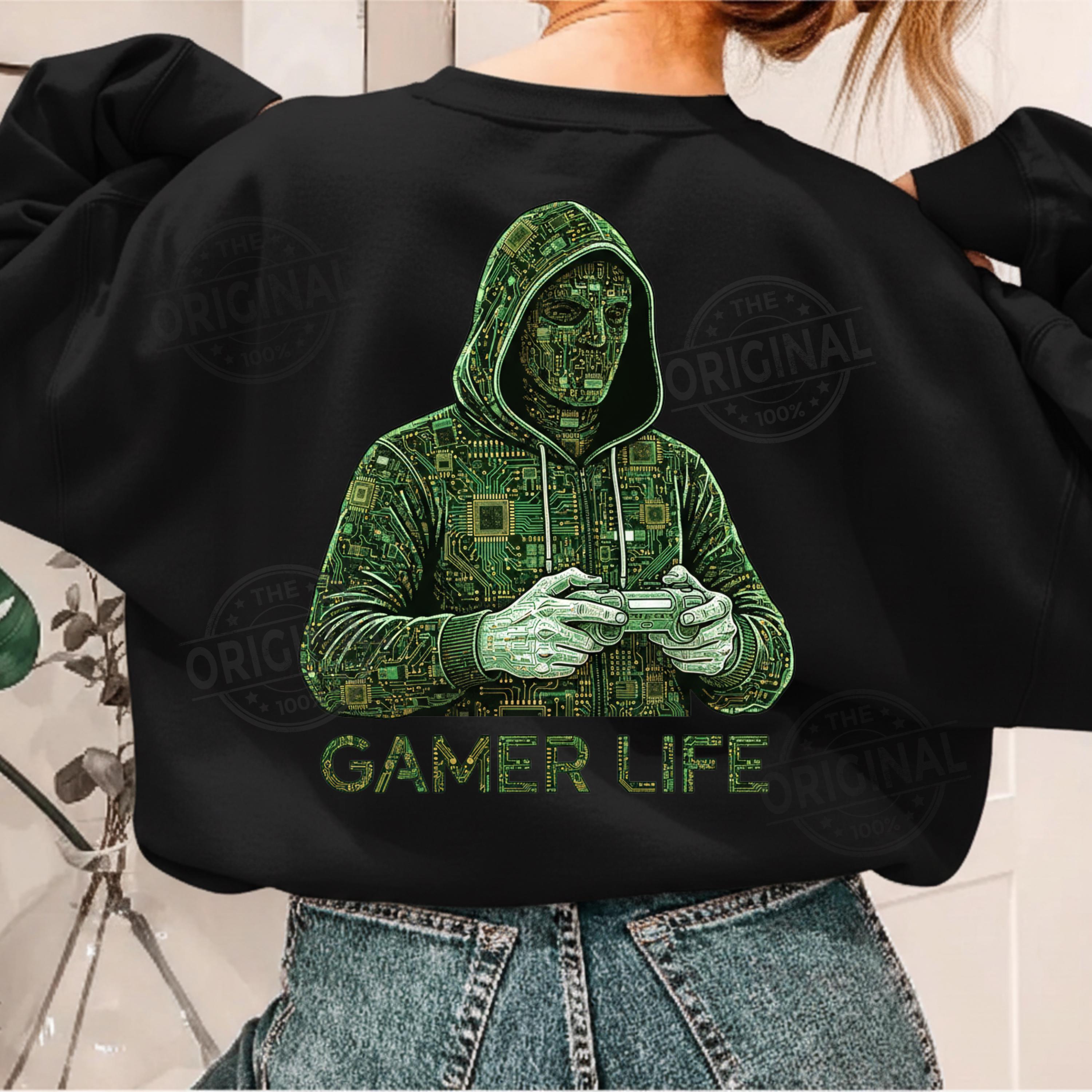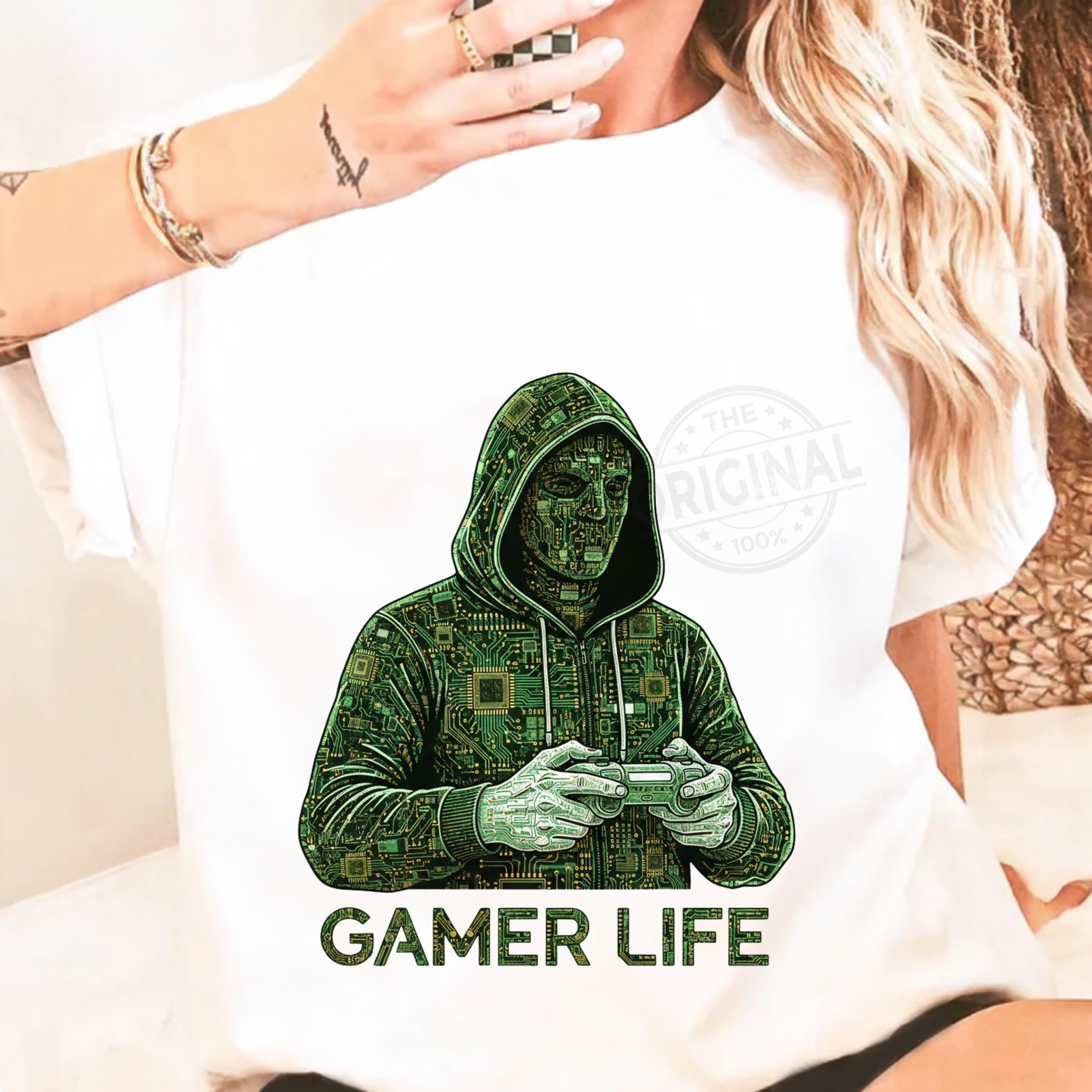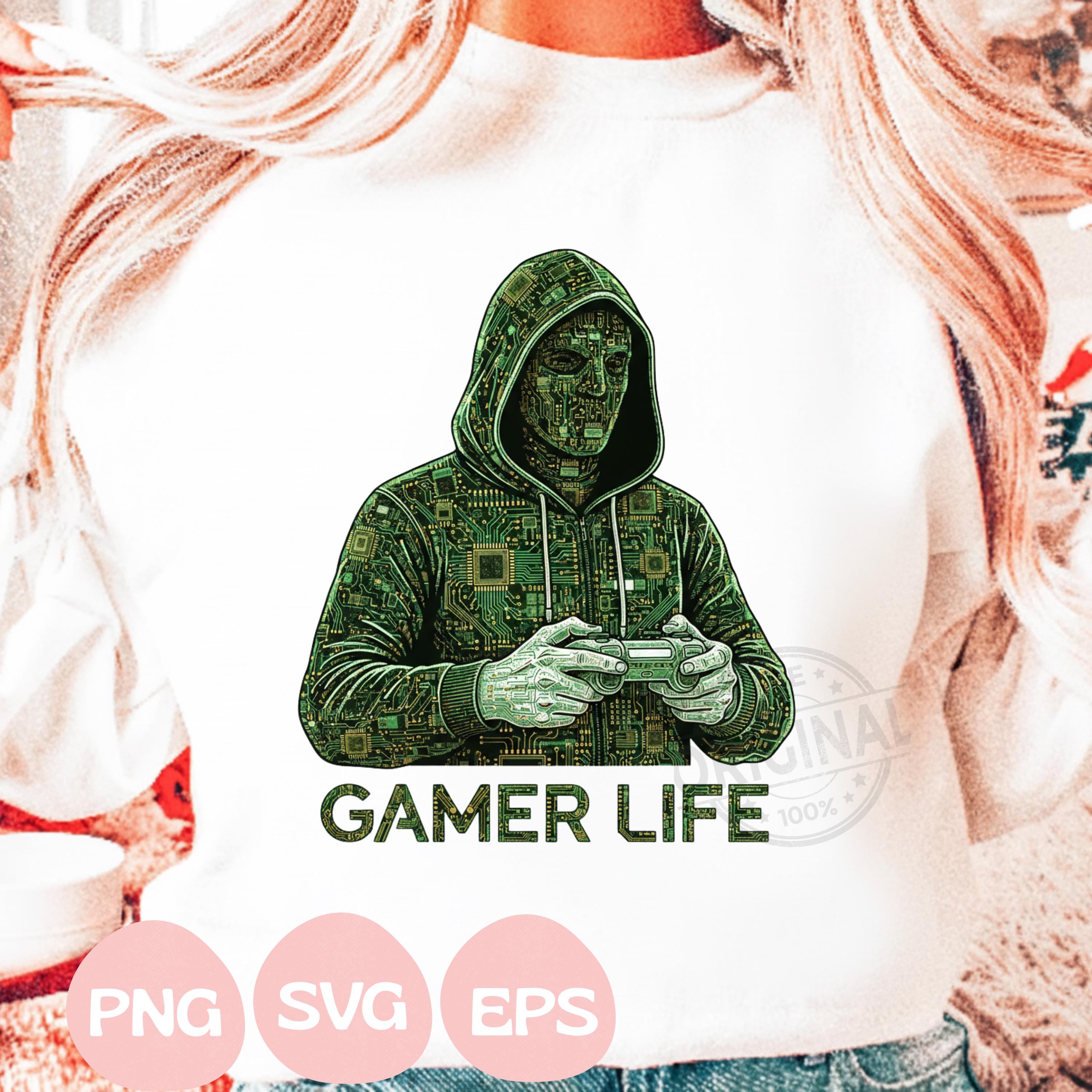 Gamer Life T-Shirt PNG SVG EPS, Graffiti Gamer Clipart, Hooded Player Controller Art, Gaming Shirt Sublimation Design