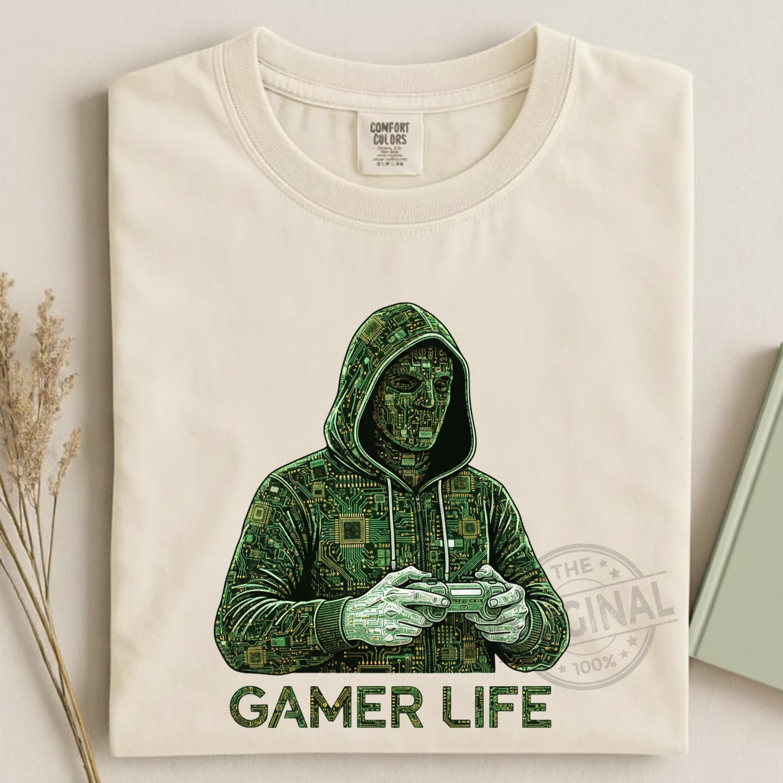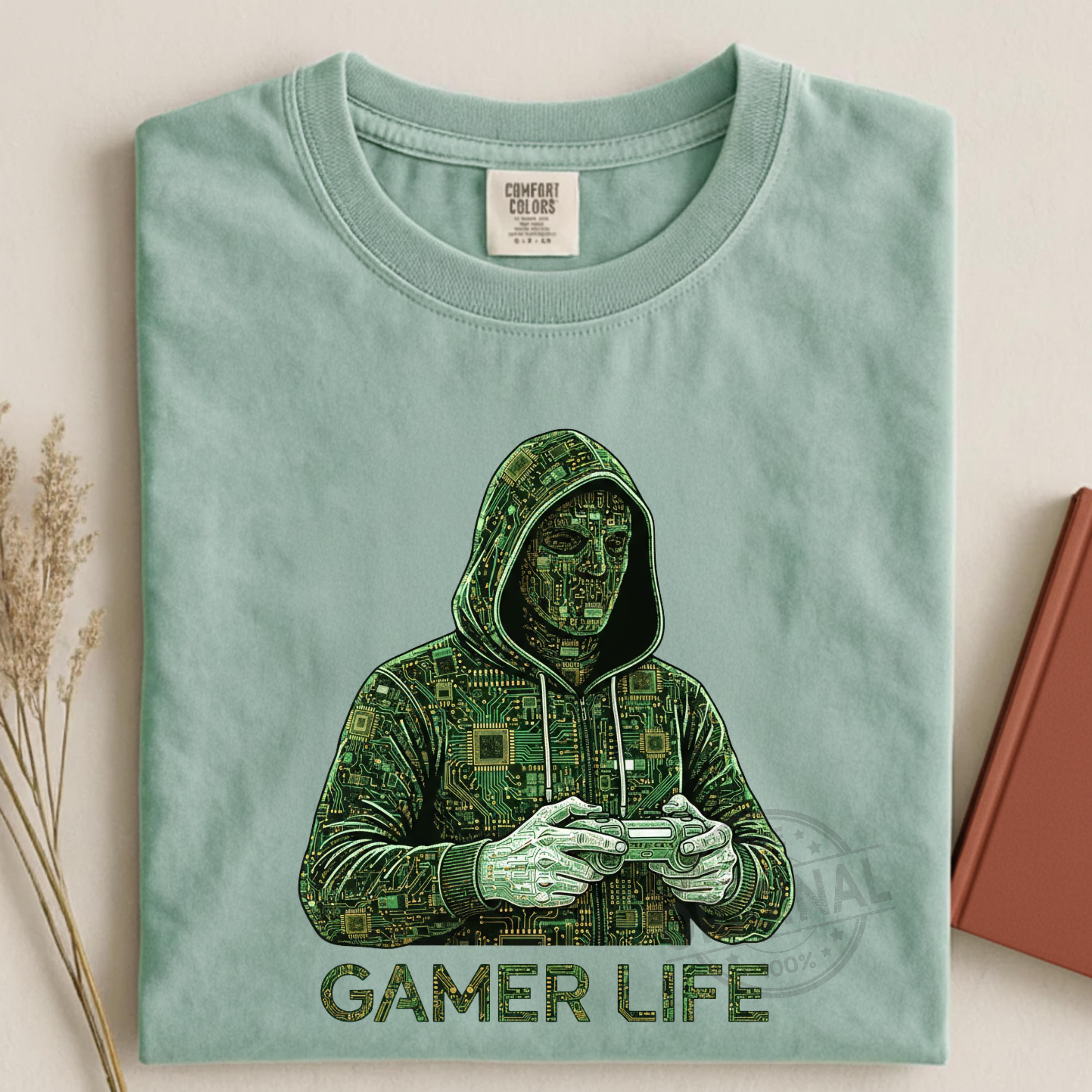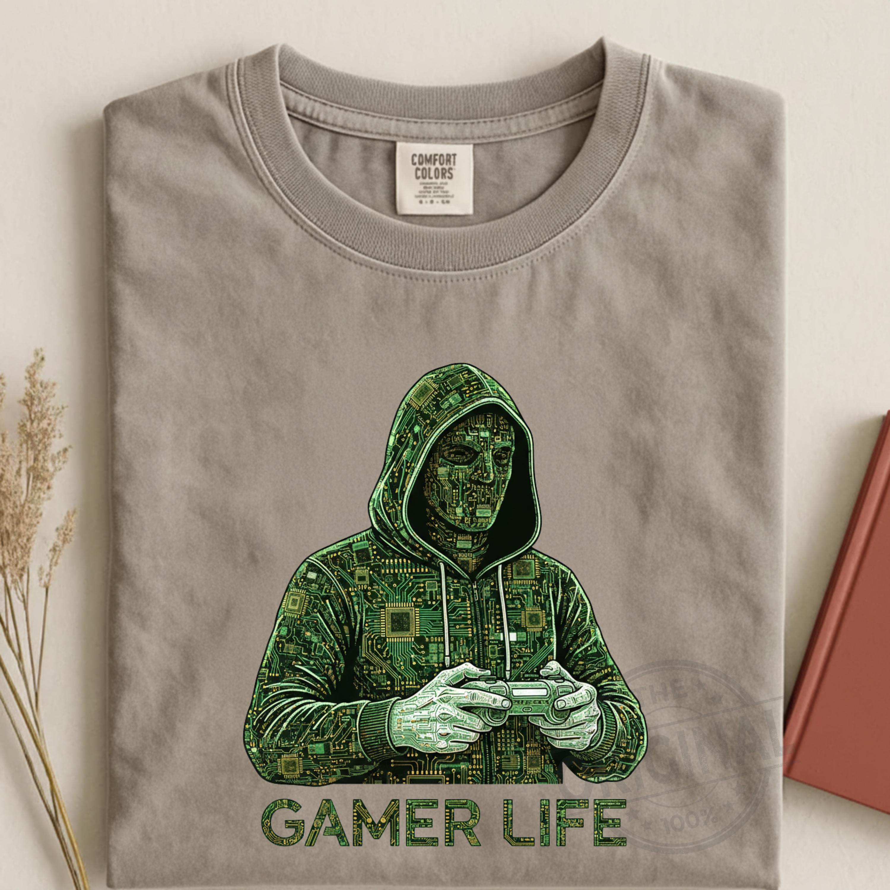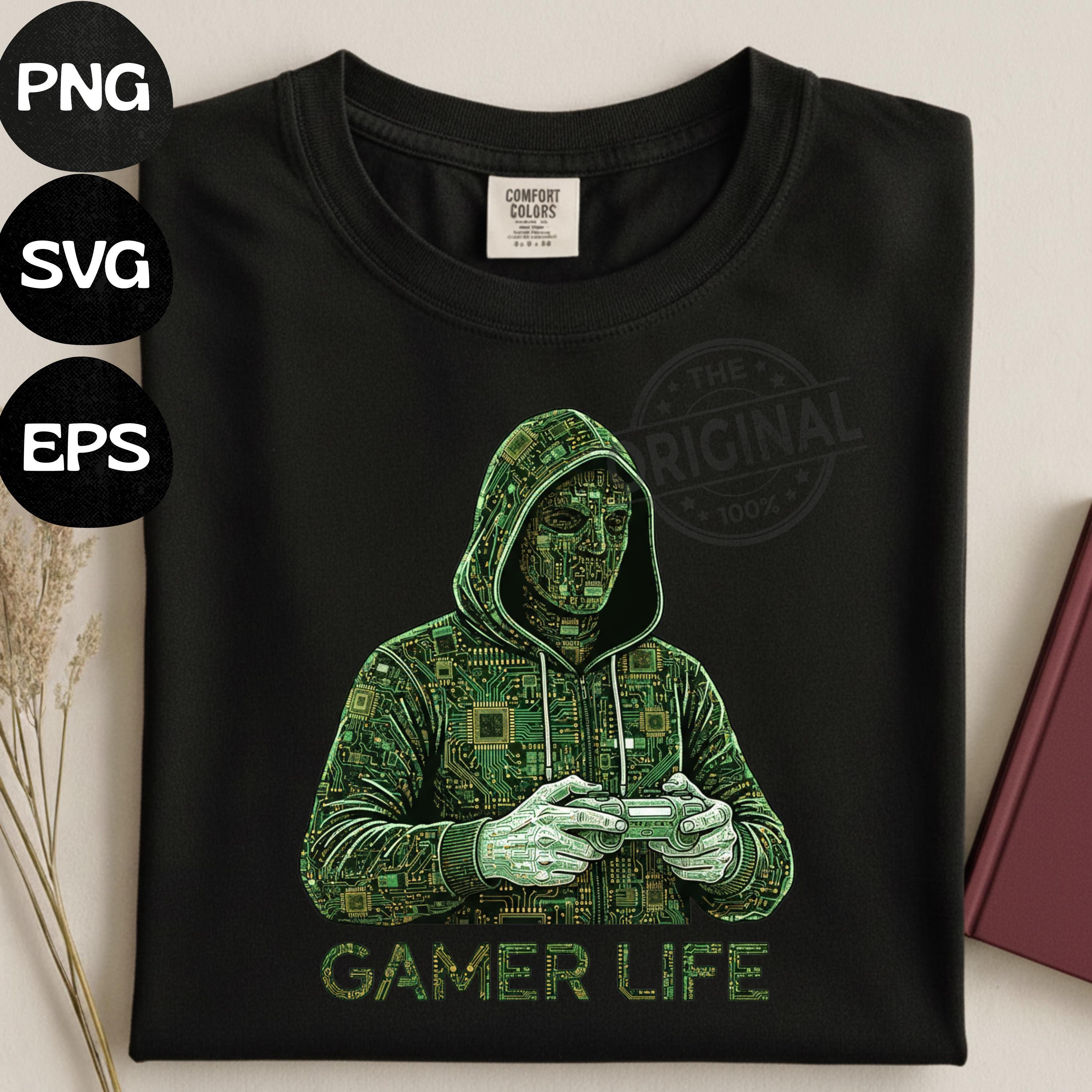 Gamer Life T-Shirt PNG SVG EPS, Graffiti Gamer Clipart, Hooded Player Controller Art, Gaming Shirt Sublimation Design