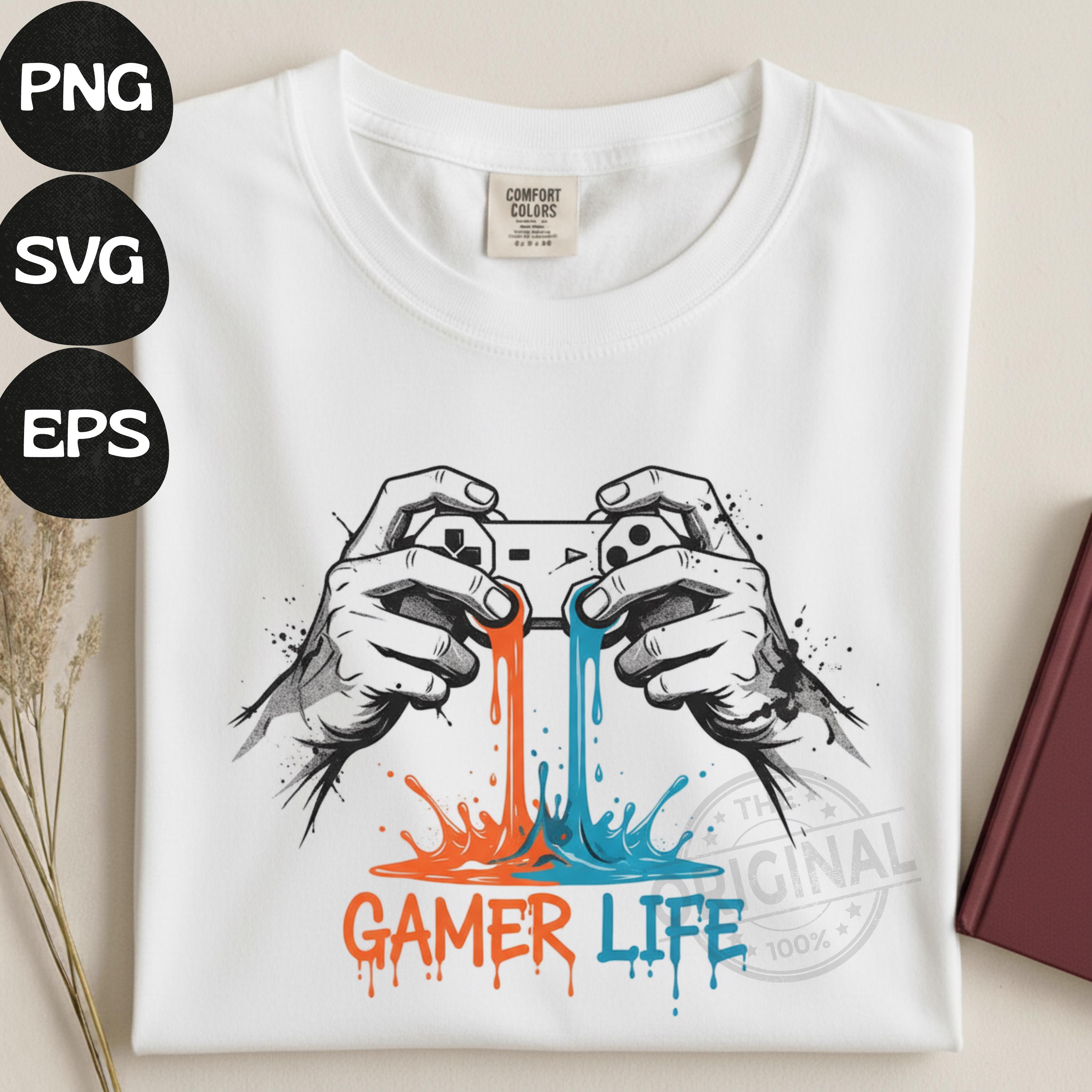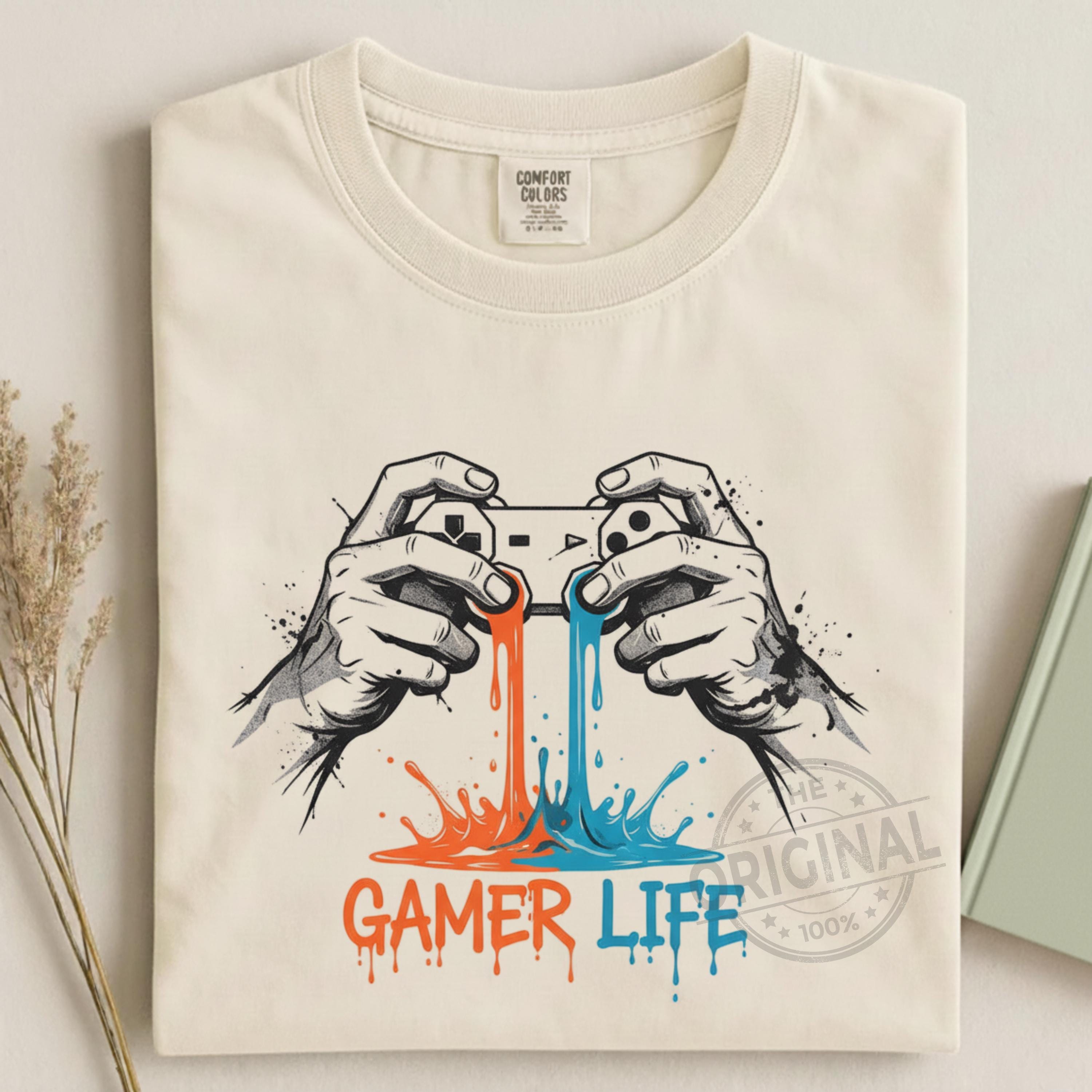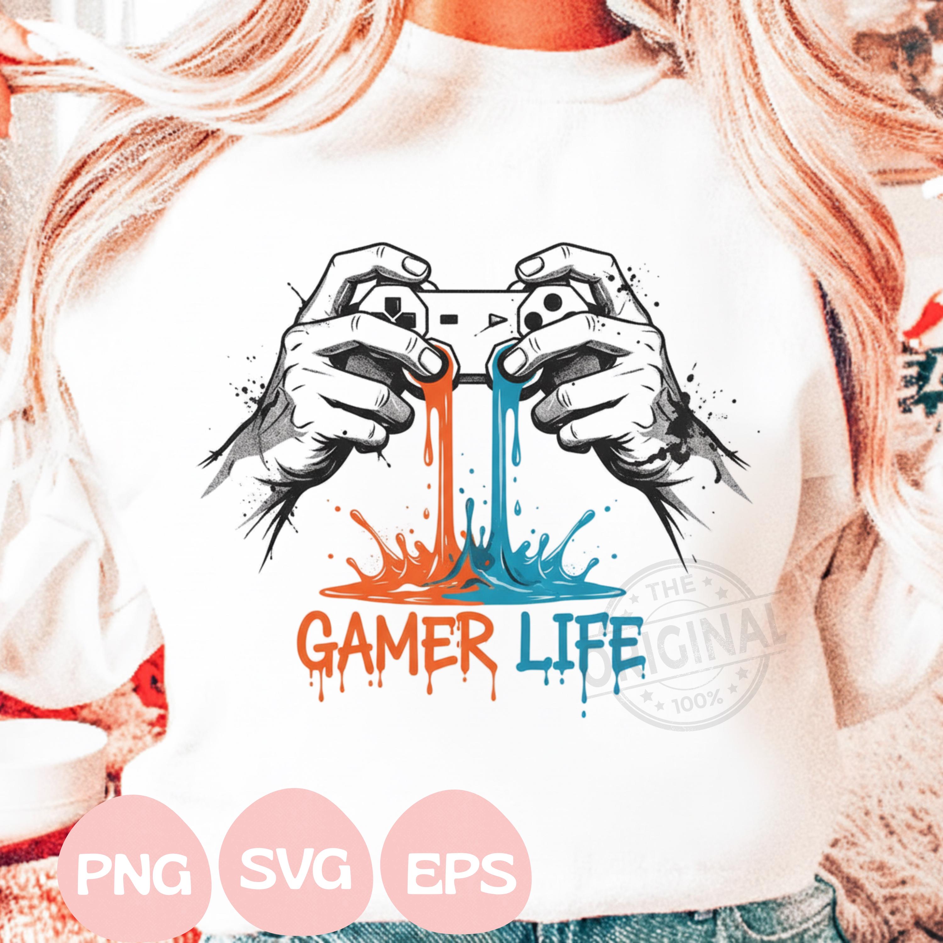 Gamer Life T-Shirt PNG, Graffiti Gamer Clipart, Hooded Player Controller Art, Gaming Shirt Sublimation Design