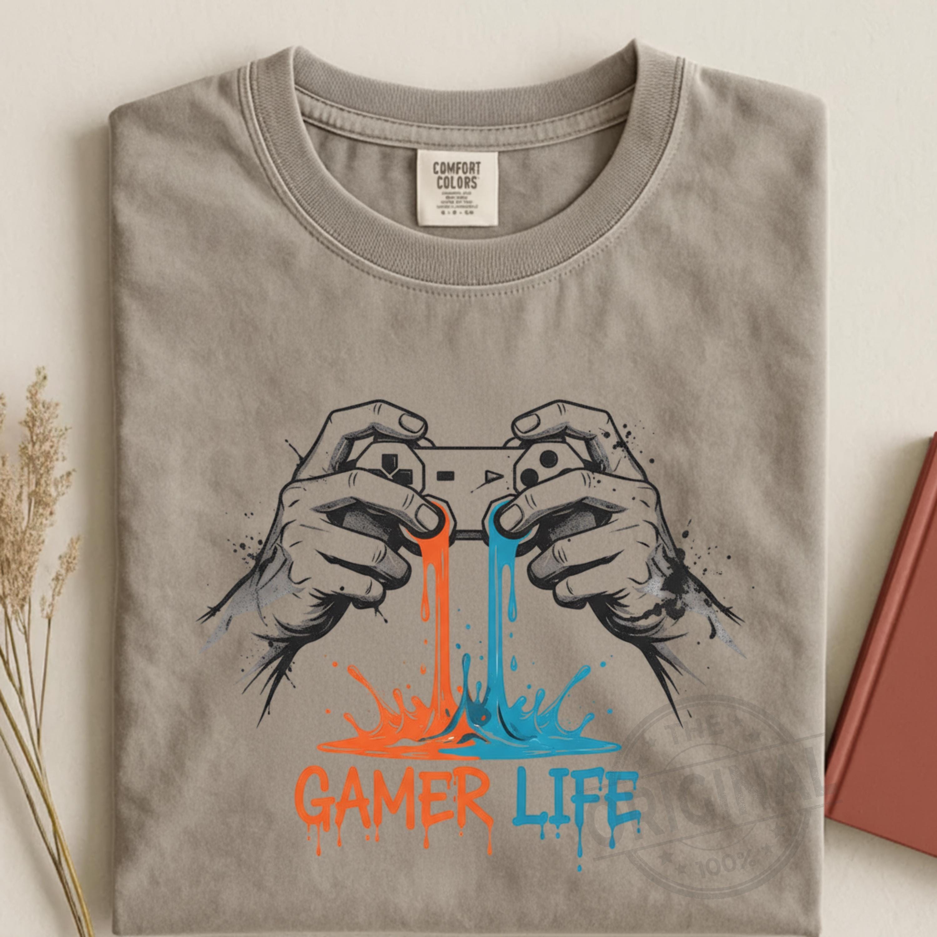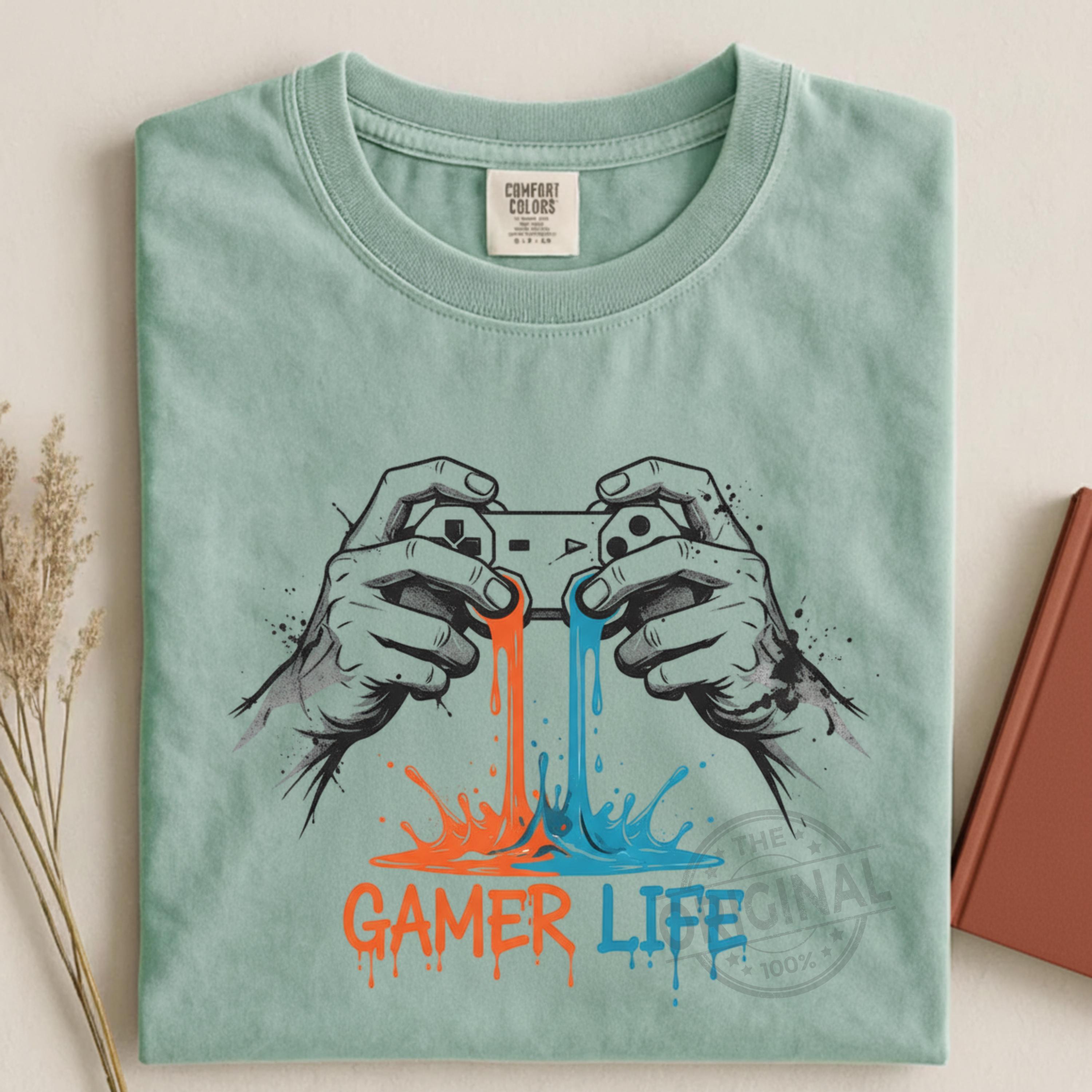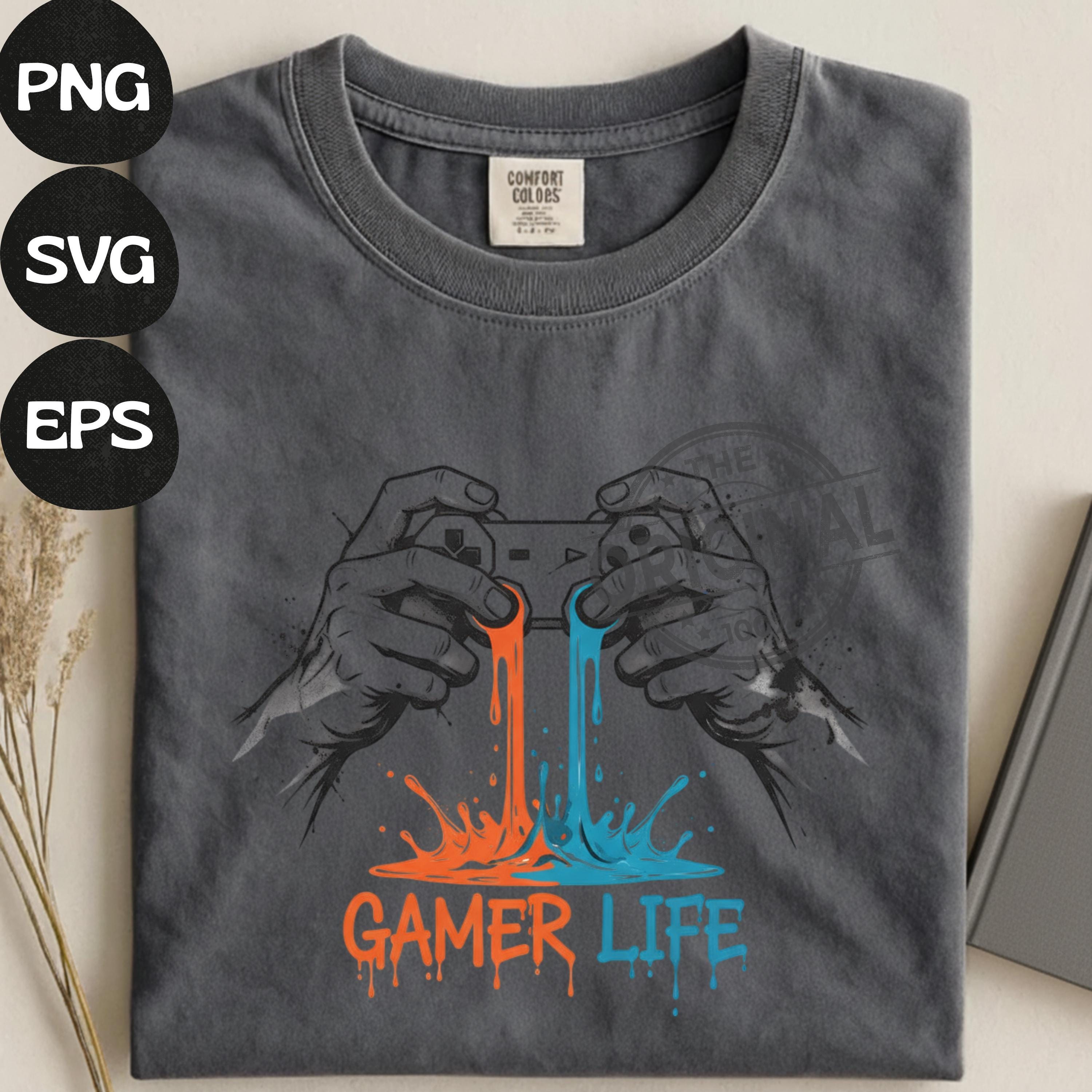 Gamer Life T-Shirt PNG, Graffiti Gamer Clipart, Hooded Player Controller Art, Gaming Shirt Sublimation Design