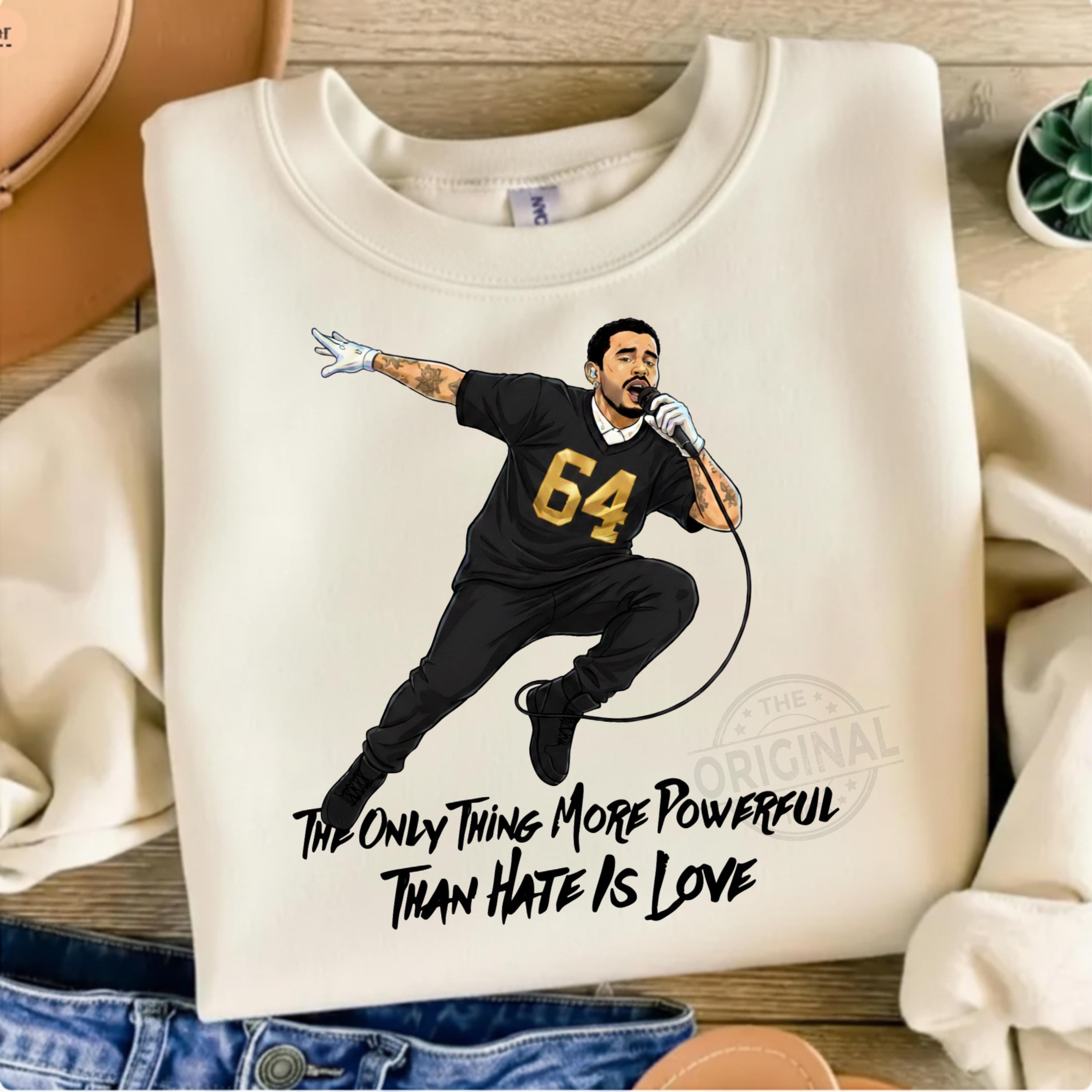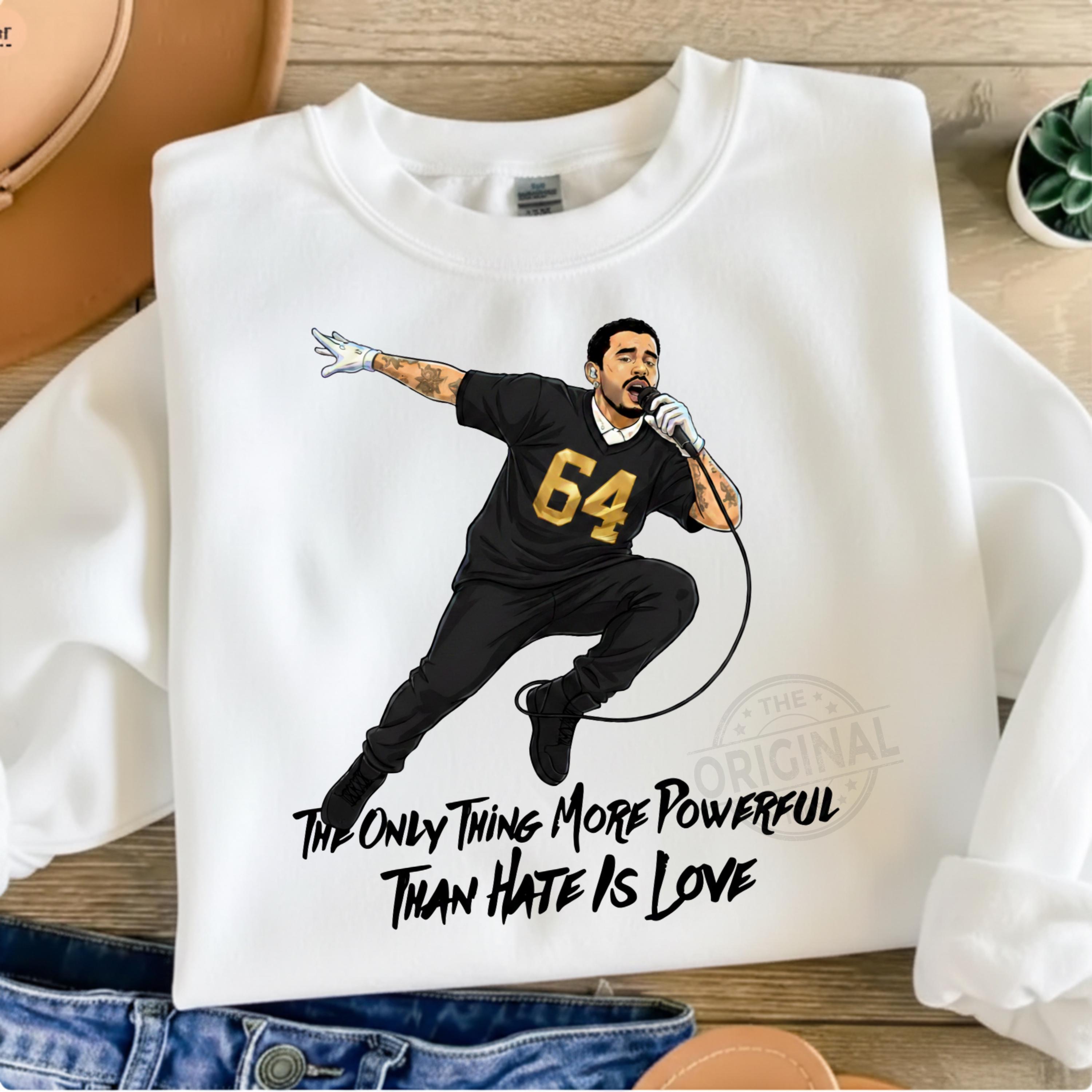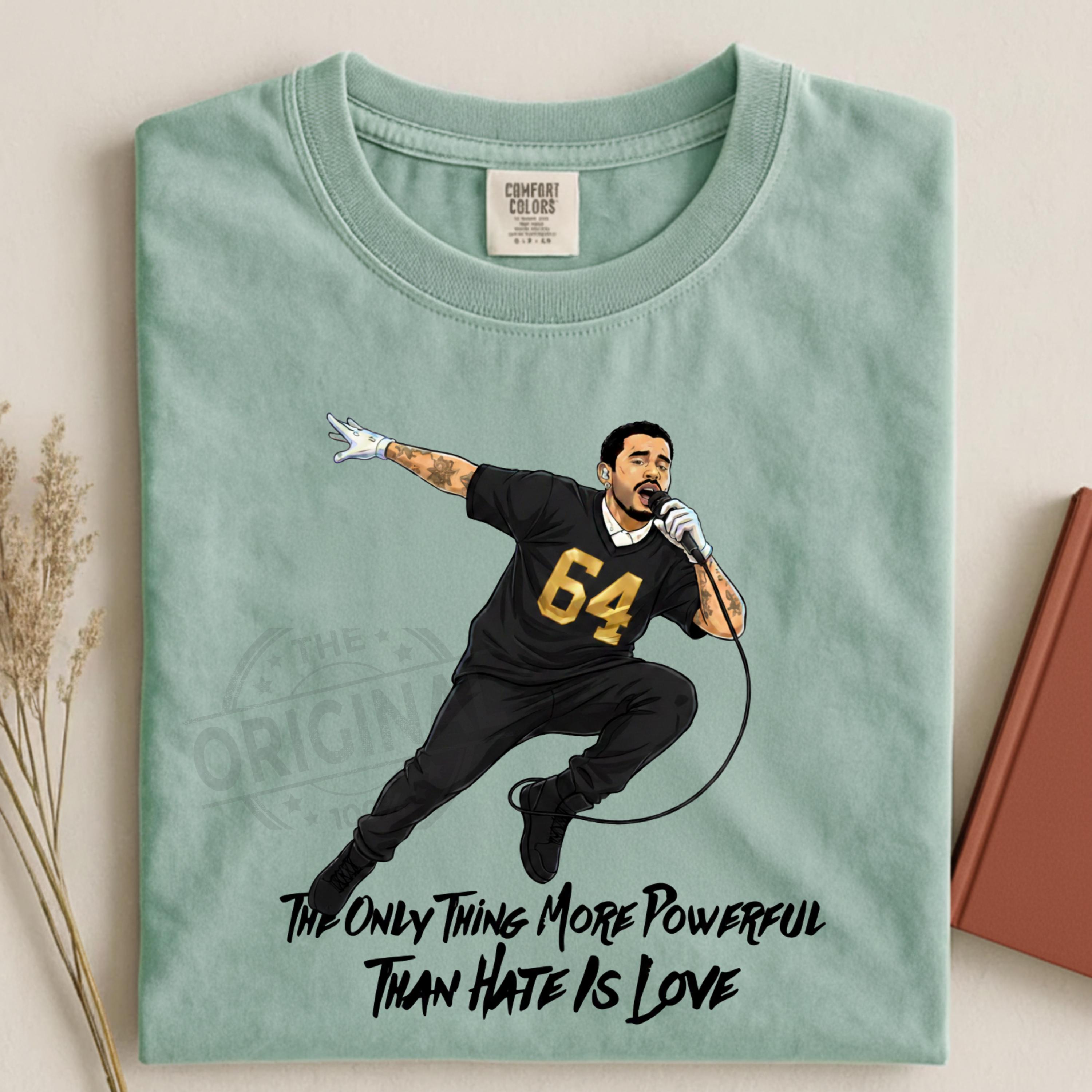 Bad Bunny Quote PNG The Only Thing More Powerful Than Hate Is Love | Superbowl | Benito | Together We Are America | DTF PNG Perfect For T-shirts, sweaters, mugs, stickers, cards, tumblers, and all holiday crafting