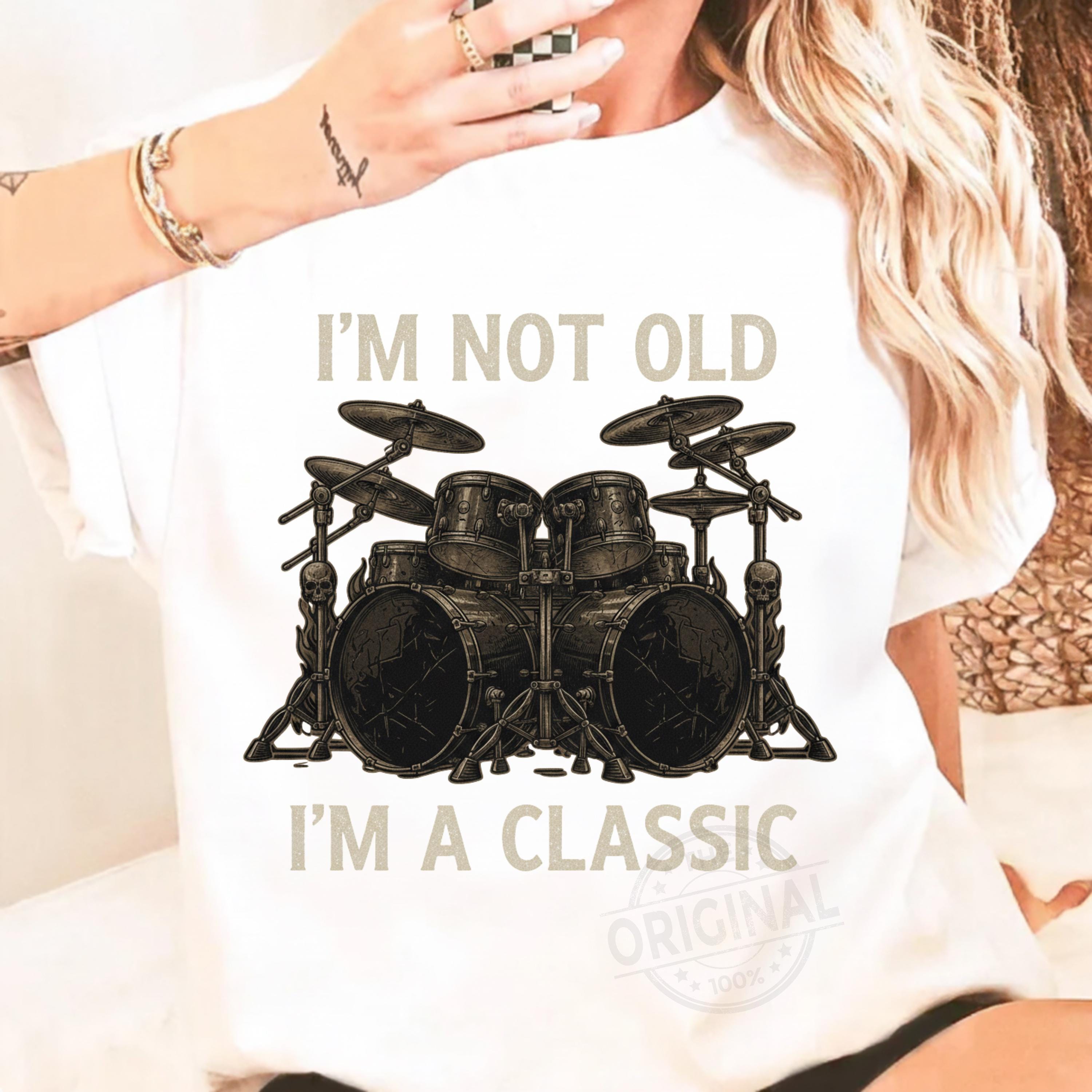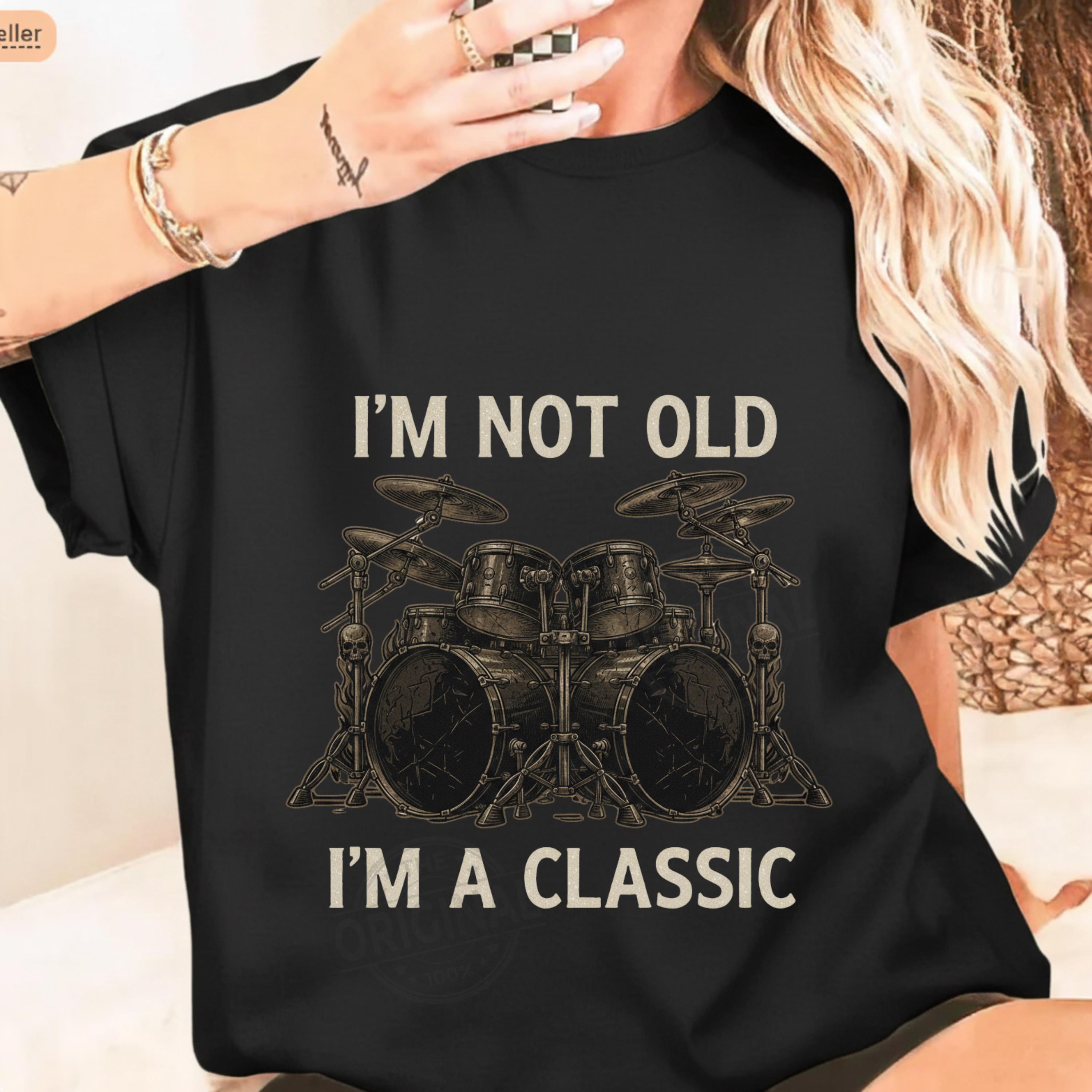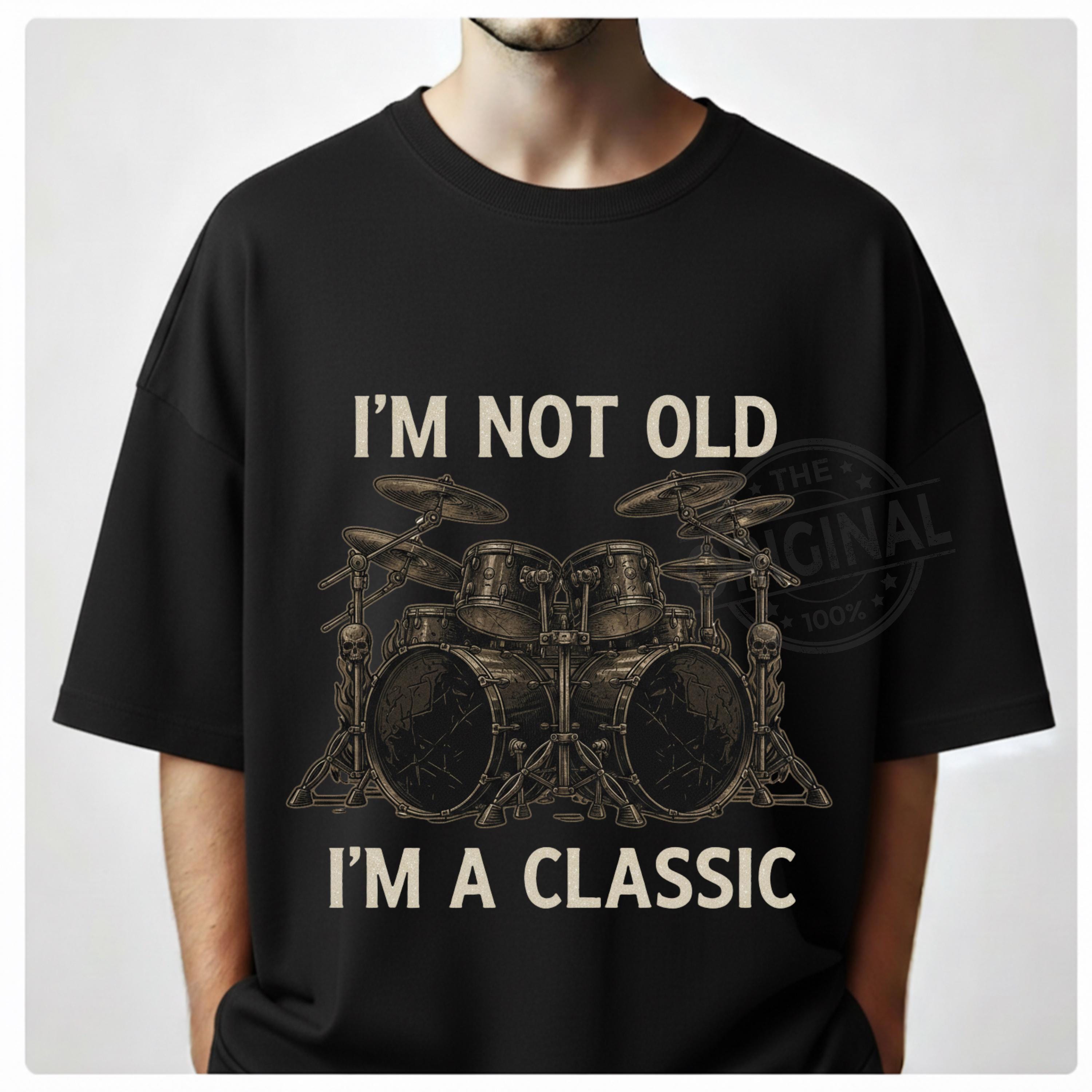 This powerful I'm Not Old I'm a Classic Drums design is perfect for drummers, musicians, and rock music lovers. Featuring a detailed vintage drum kit illustration, this design is ideal for creating unique T-shirts and merchandise.
