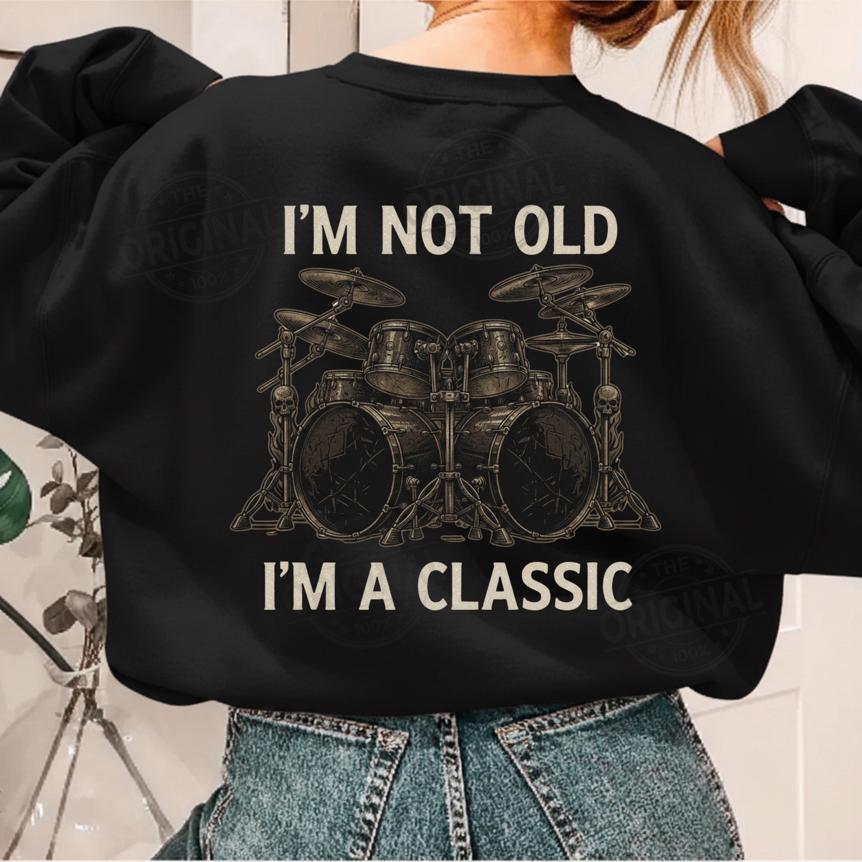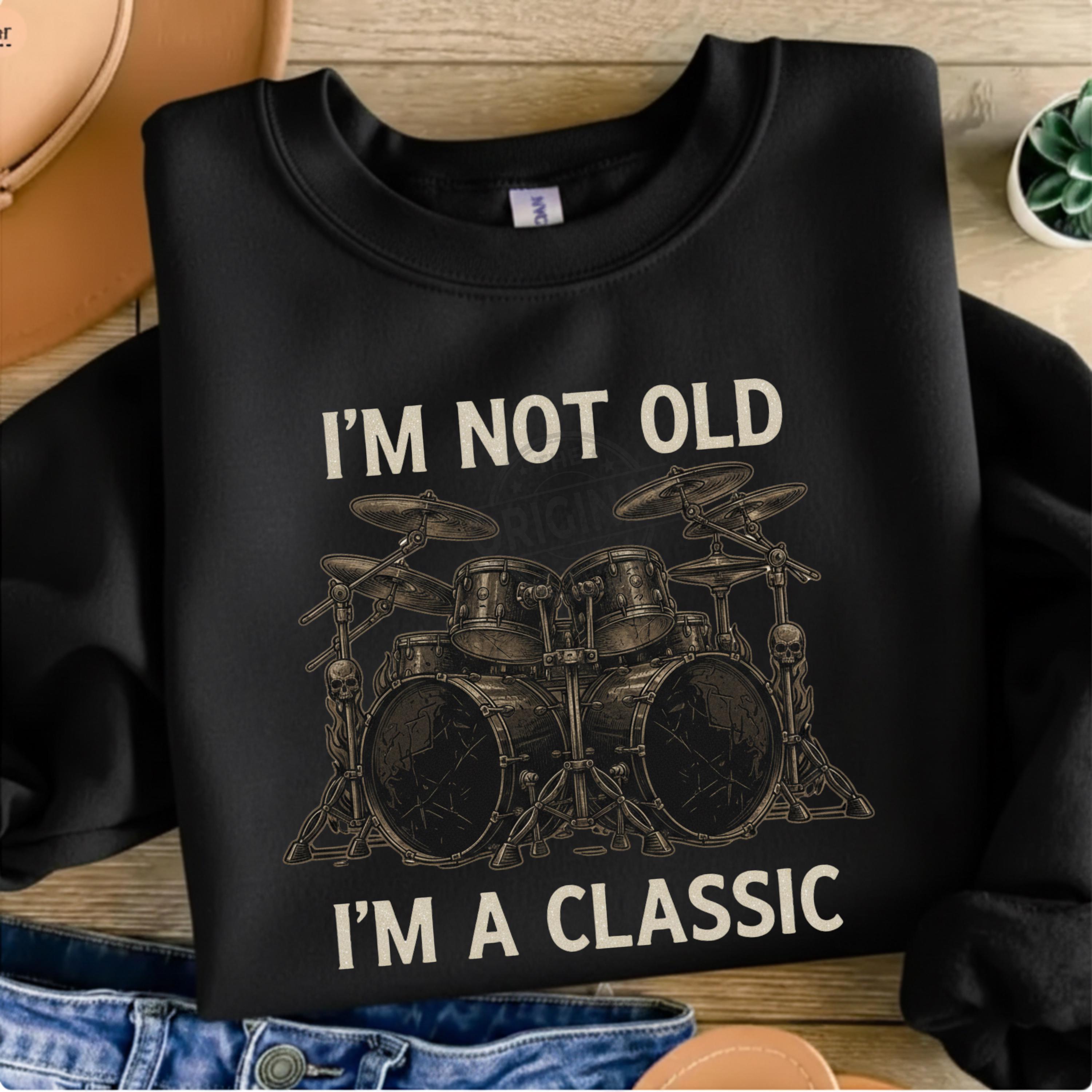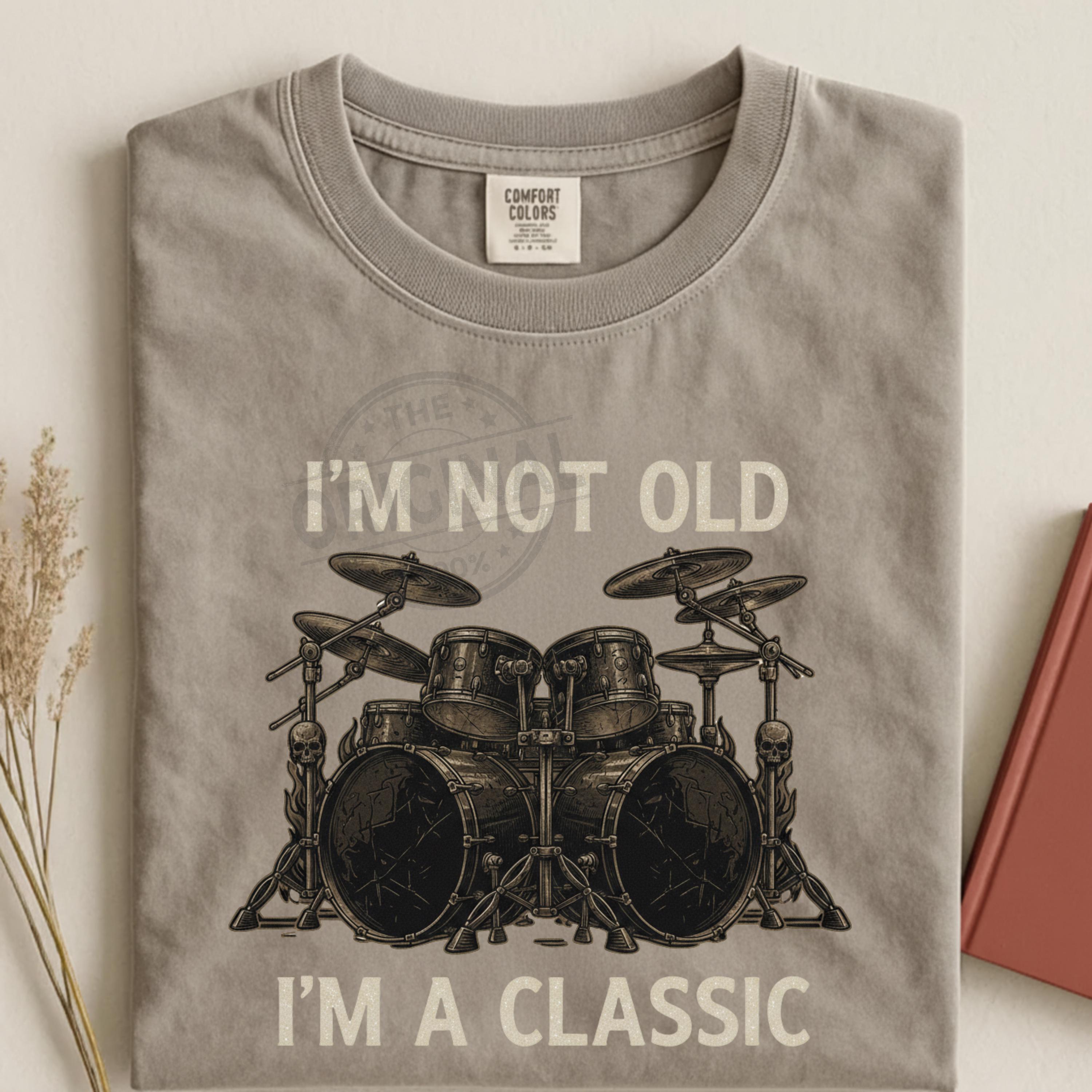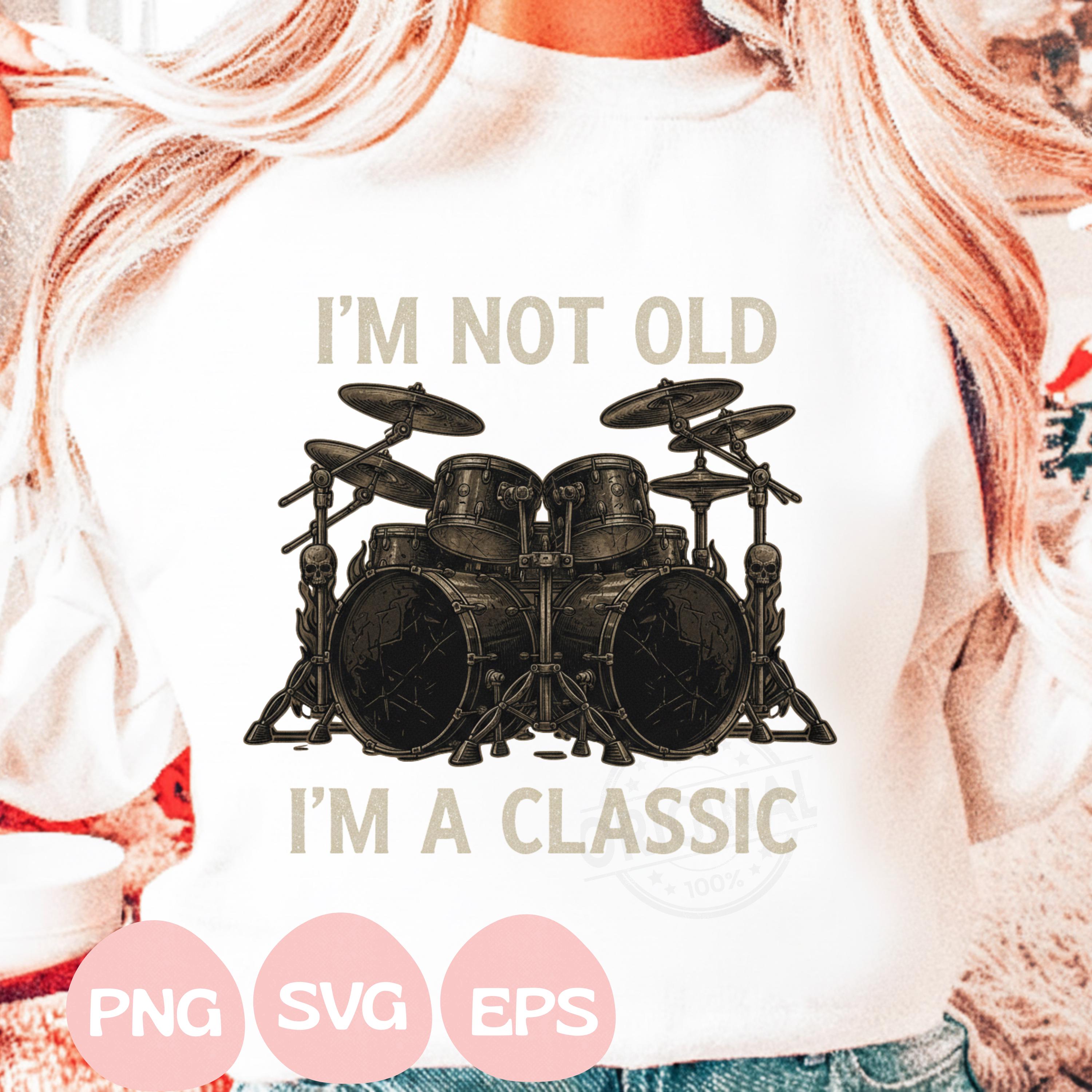 This powerful I'm Not Old I'm a Classic Drums design is perfect for drummers, musicians, and rock music lovers. Featuring a detailed vintage drum kit illustration, this design is ideal for creating unique T-shirts and merchandise.