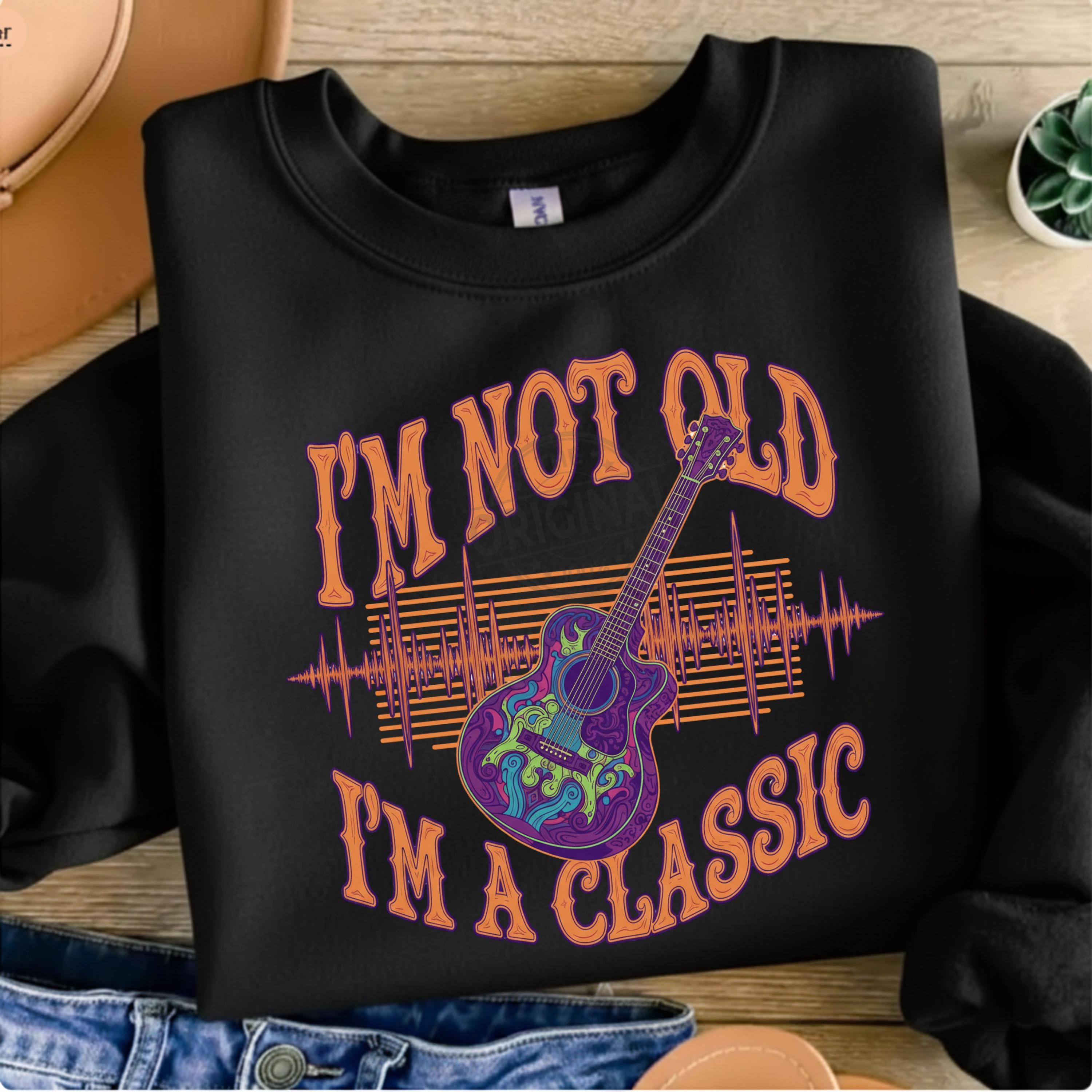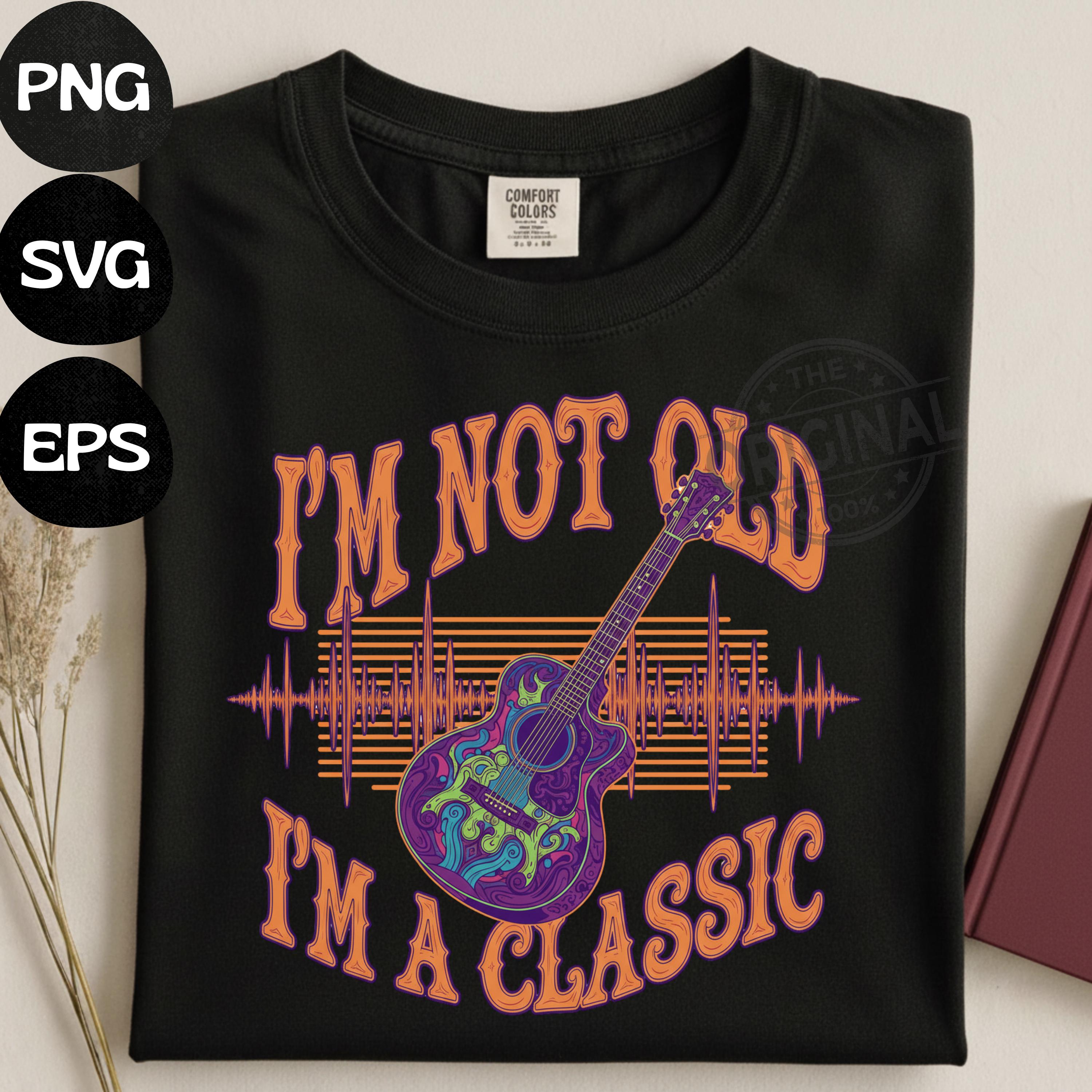 Celebrate timeless style with this Guitar I’m Not Old I’m A Classic digital design — perfect for musicians, guitar lovers, dads, grandpas, music teachers, and anyone who appreciates vintage humor. This retro music-themed artwork is crisp, high-quality, and ideal for tees, posters, mugs, decals, and digital craft projects.