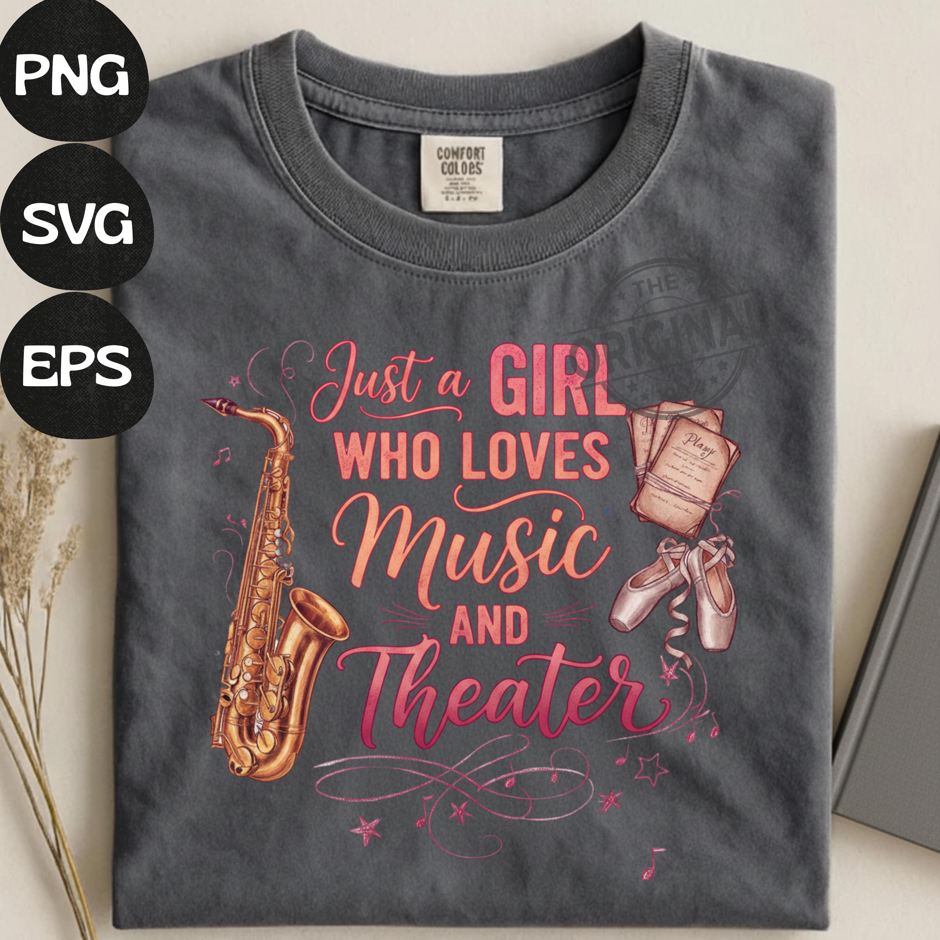 Show off your artistic passion with this Just a Girl Who Loves Music and Theater digital design — perfect for musical lovers, theater fans, drama students, performers, choir members, and creative girls who adore the stage. This stylish and expressive design works beautifully for shirts, mugs, posters, stickers, scrapbooking, and digital crafting projects.
